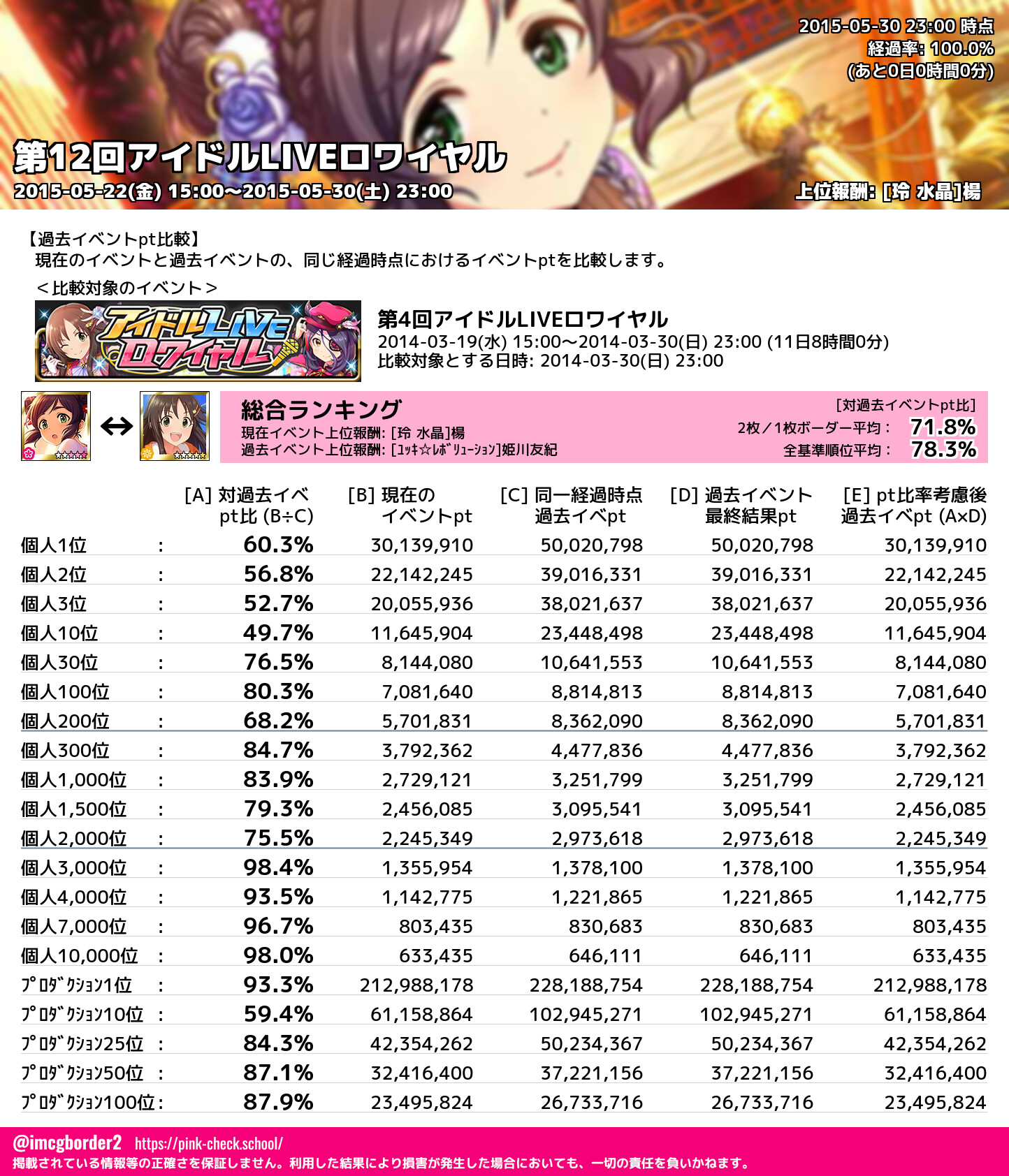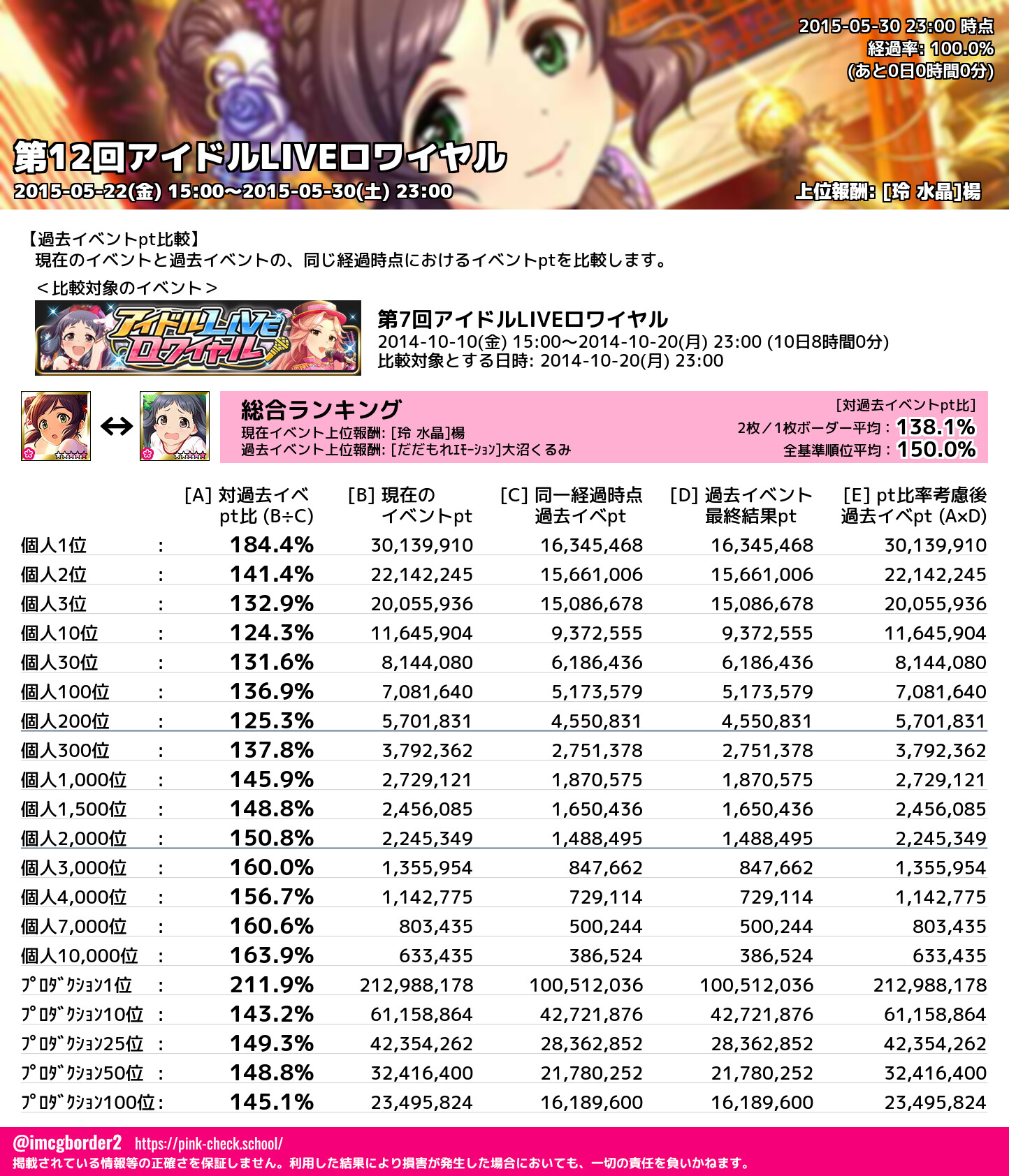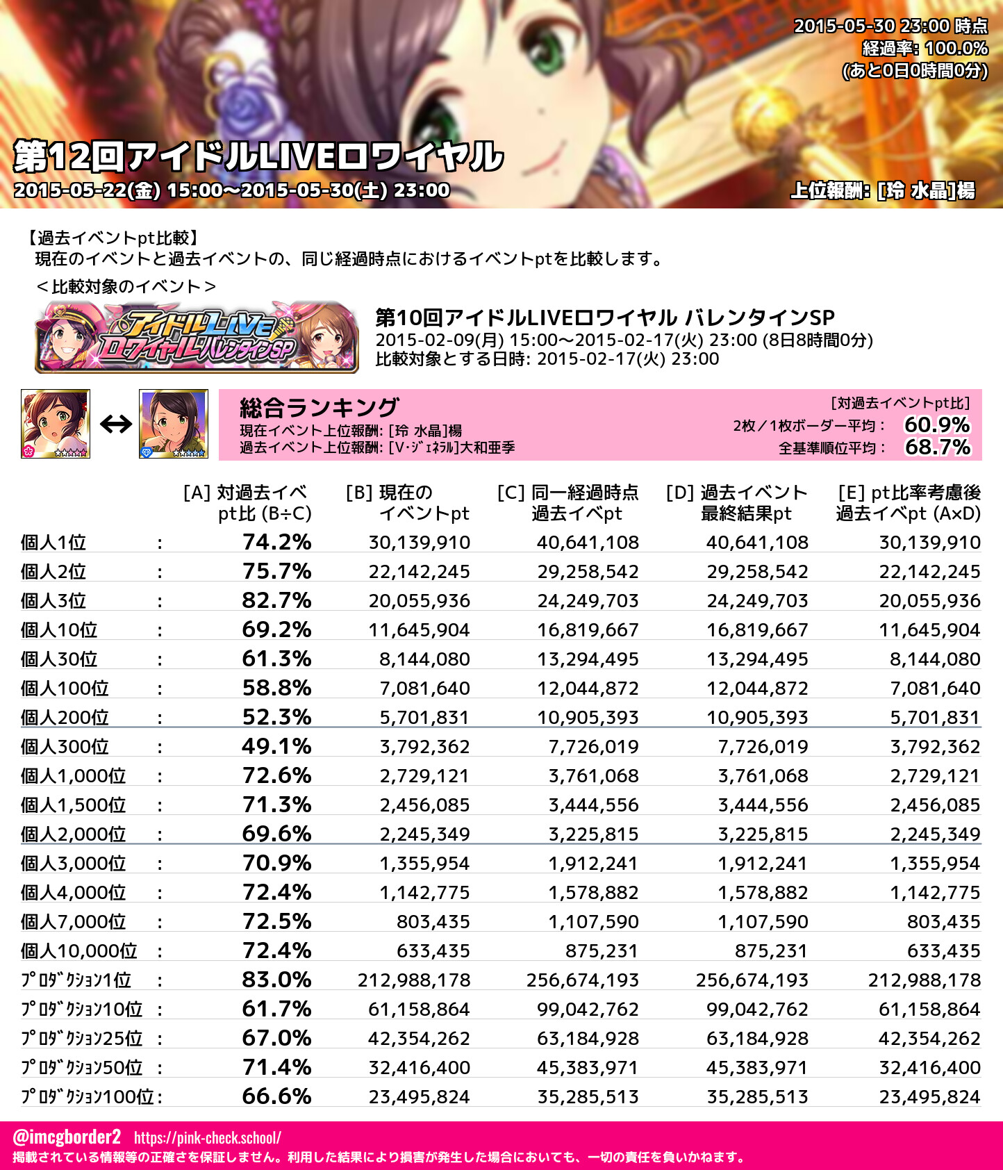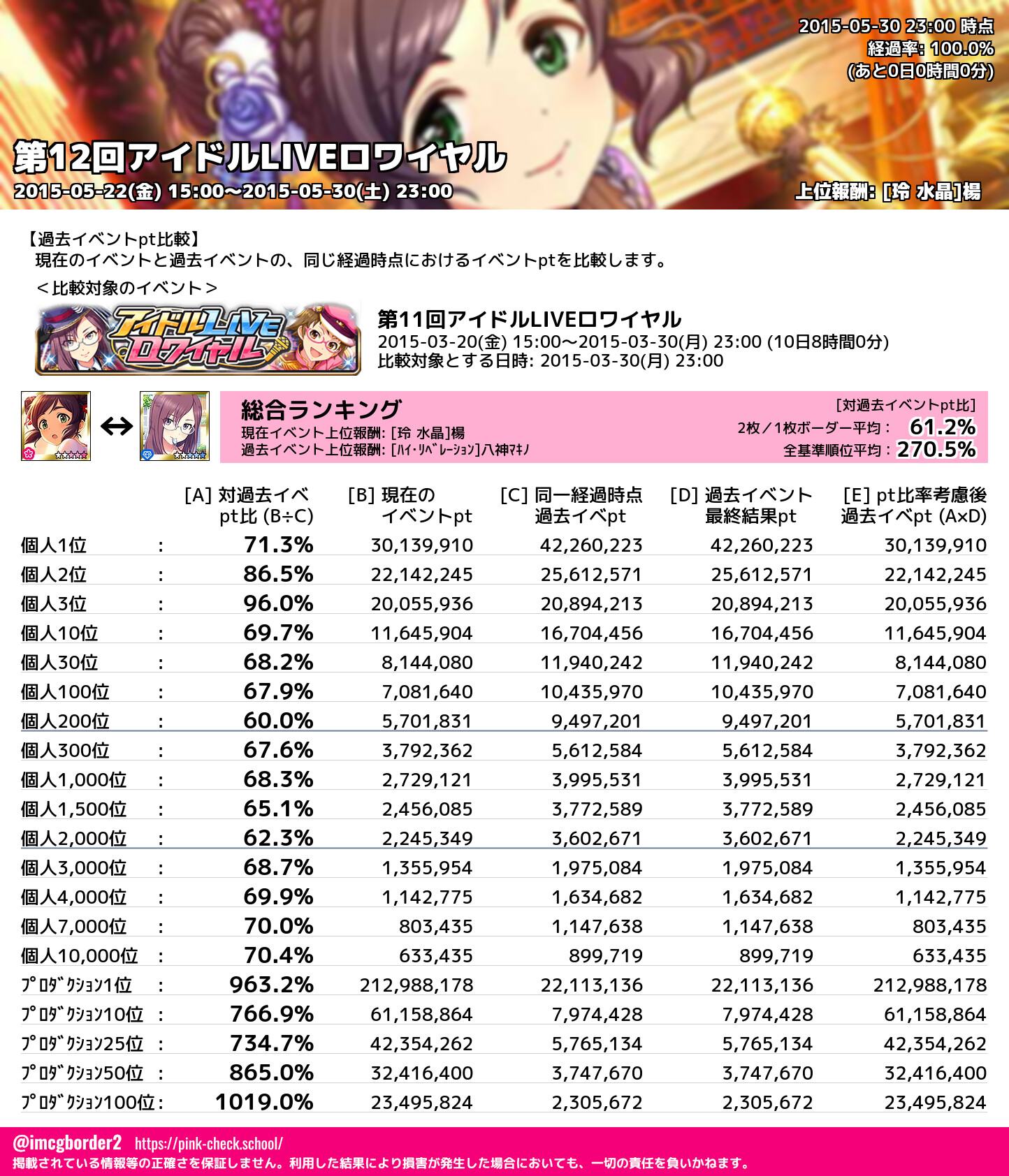 上位プロデューサースコア (2015-05-30 23:00 時点)
