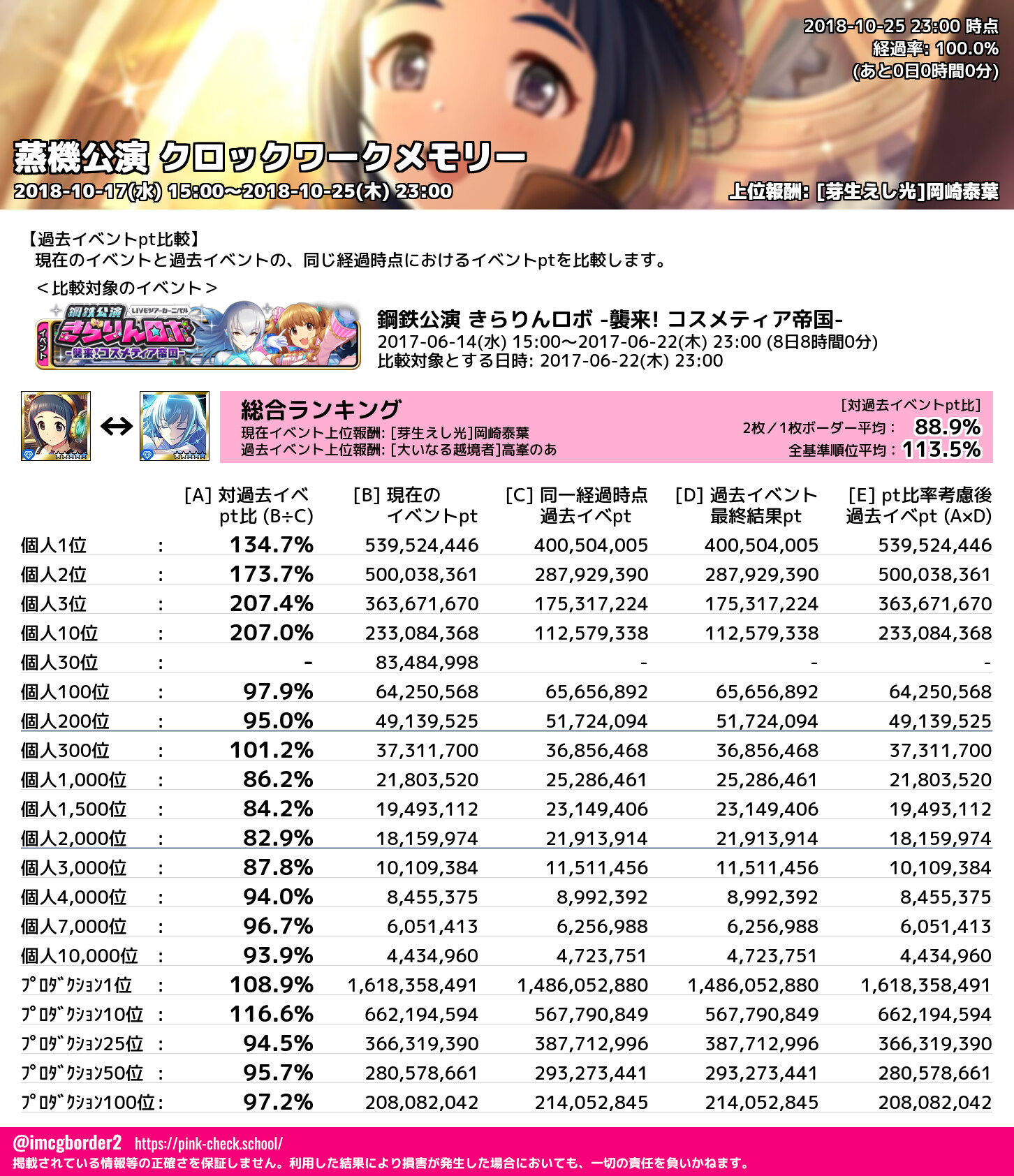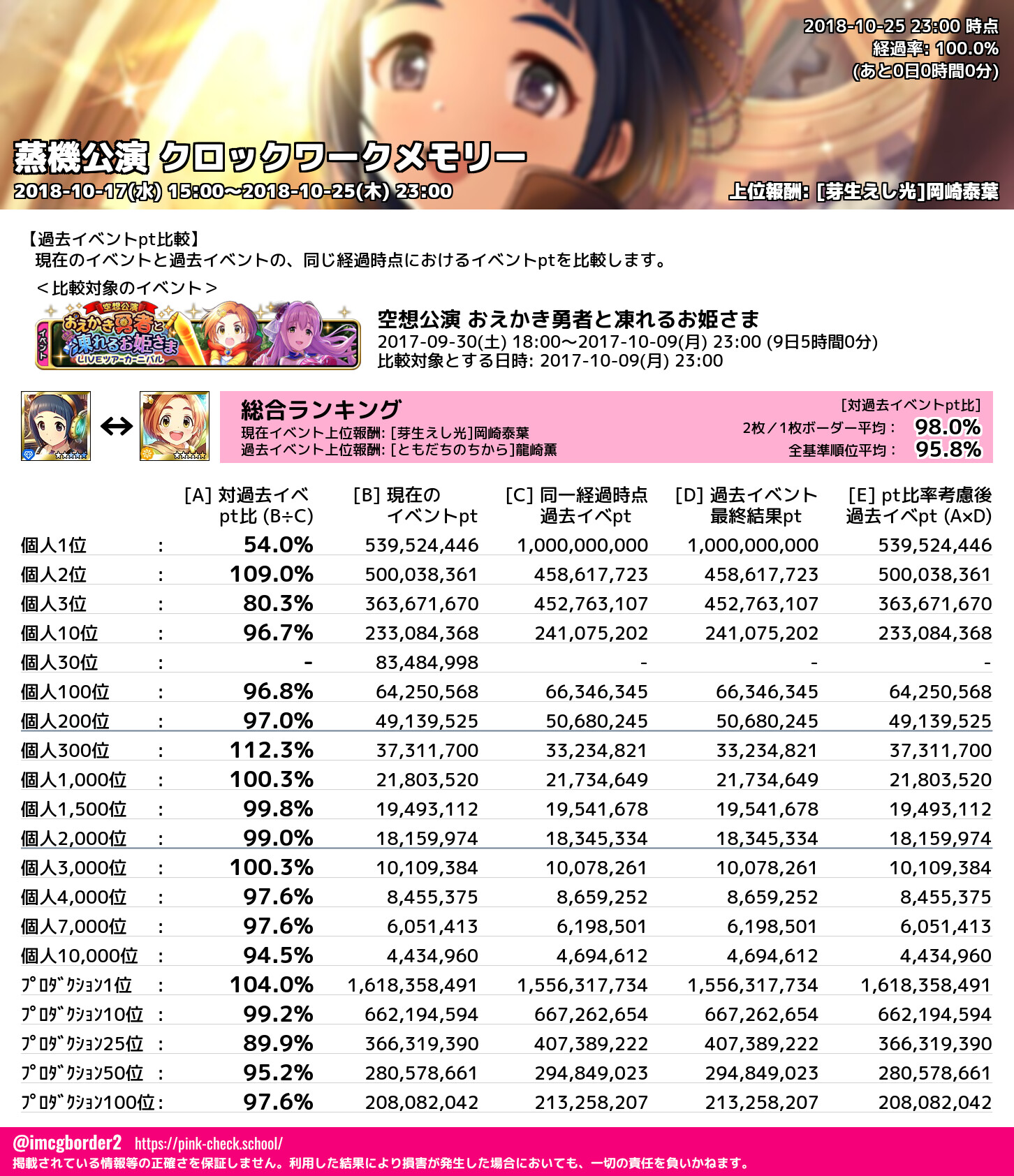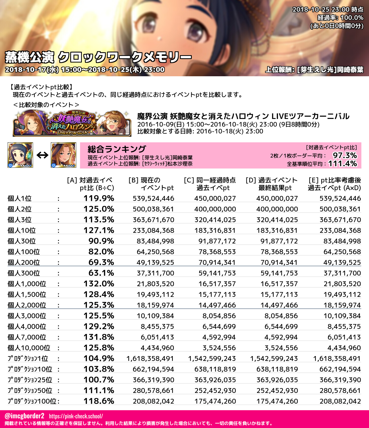 蒸機公演 クロックワークメモリー 結果集計完了