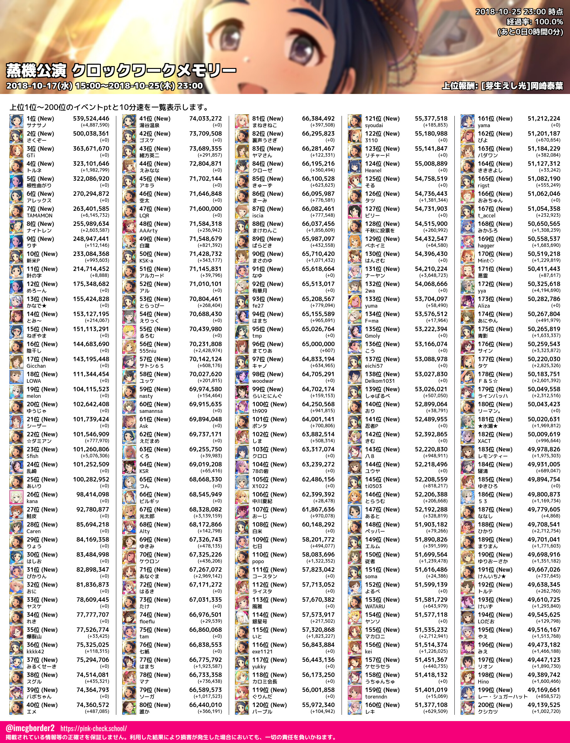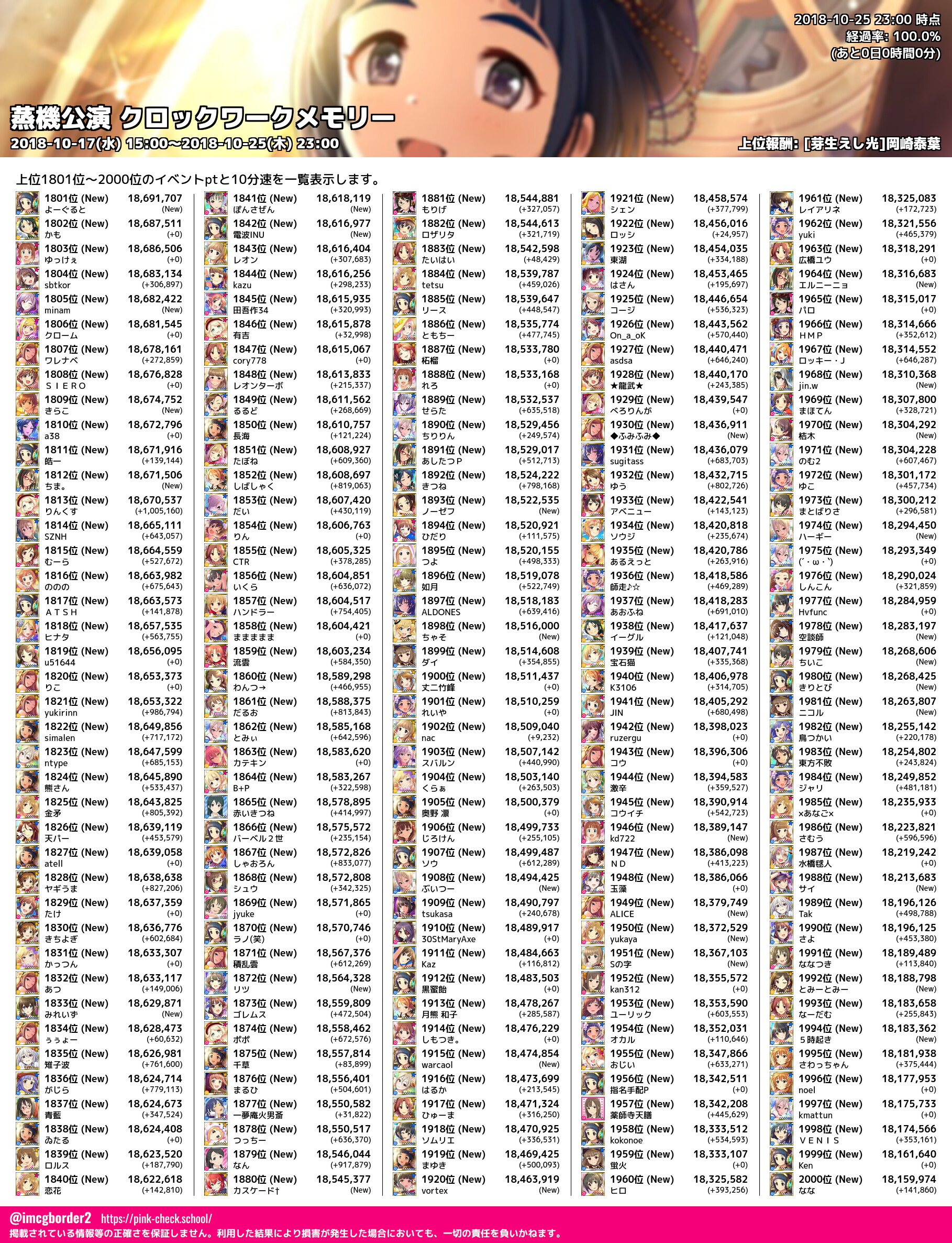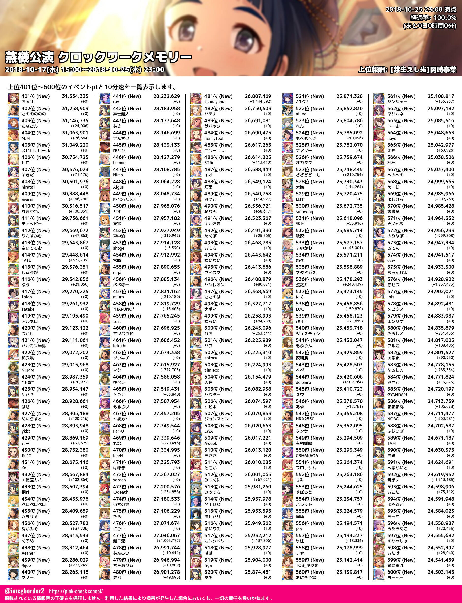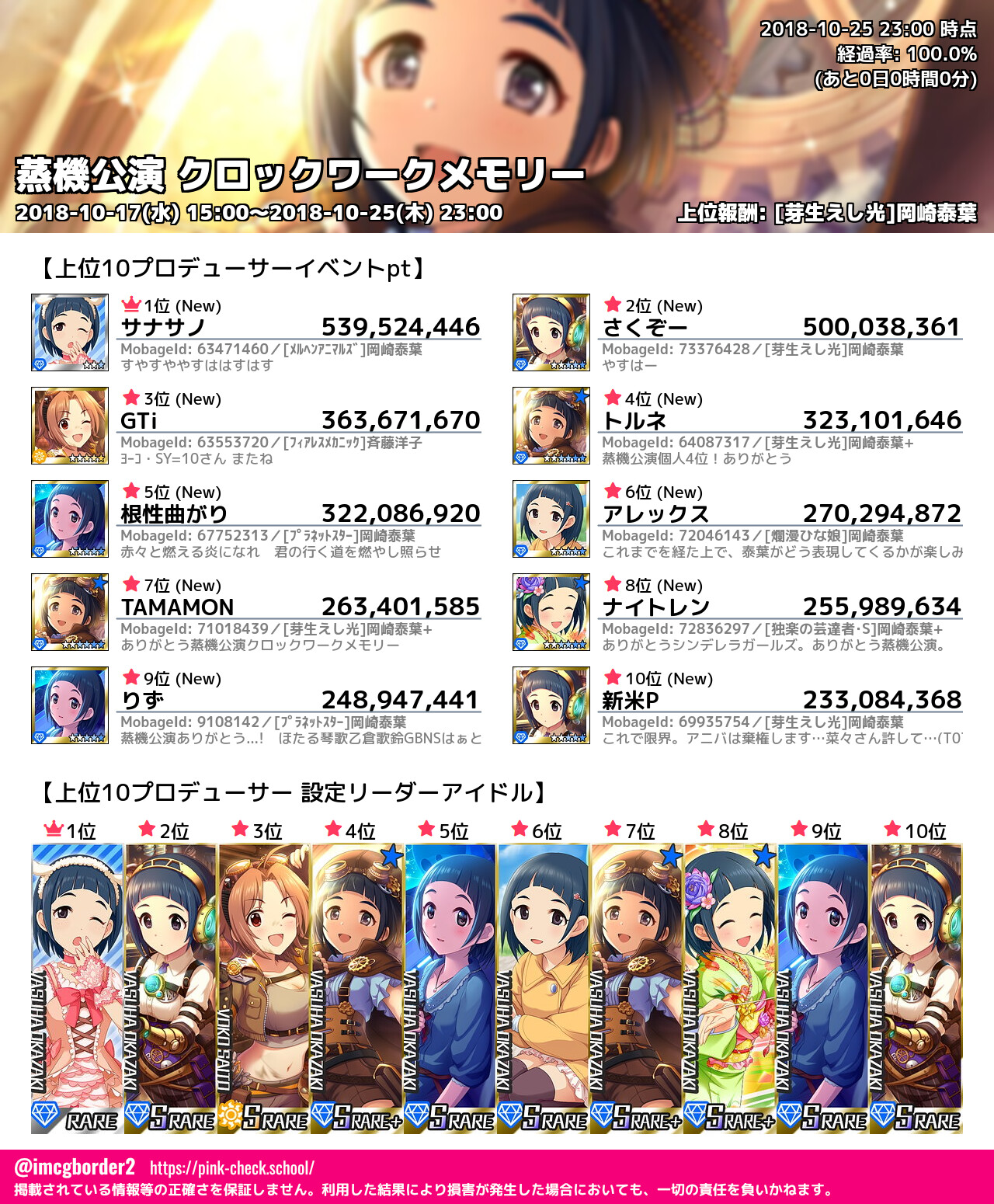 上位プロデューサースコア (2018-10-25 23:00 時点)