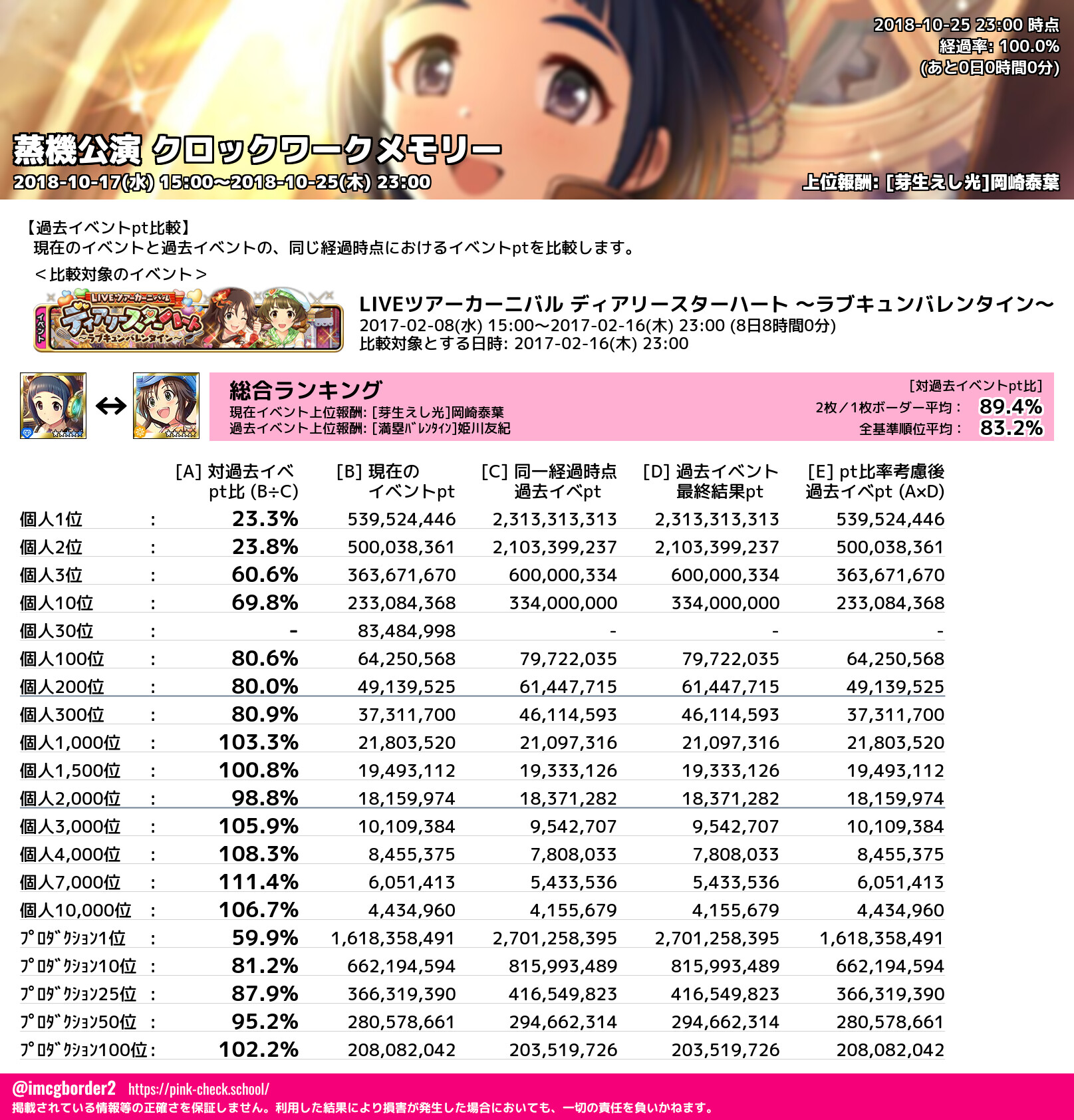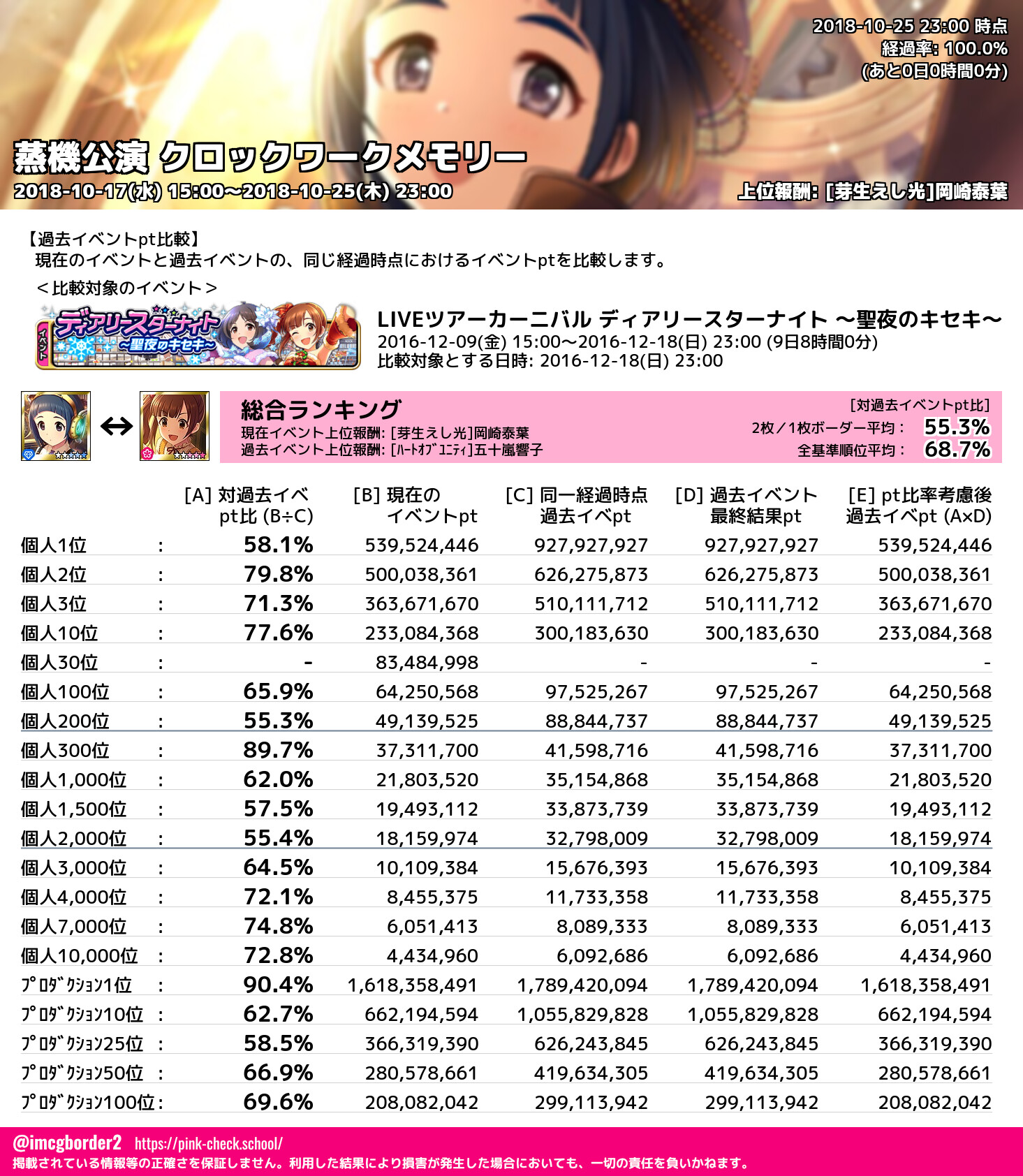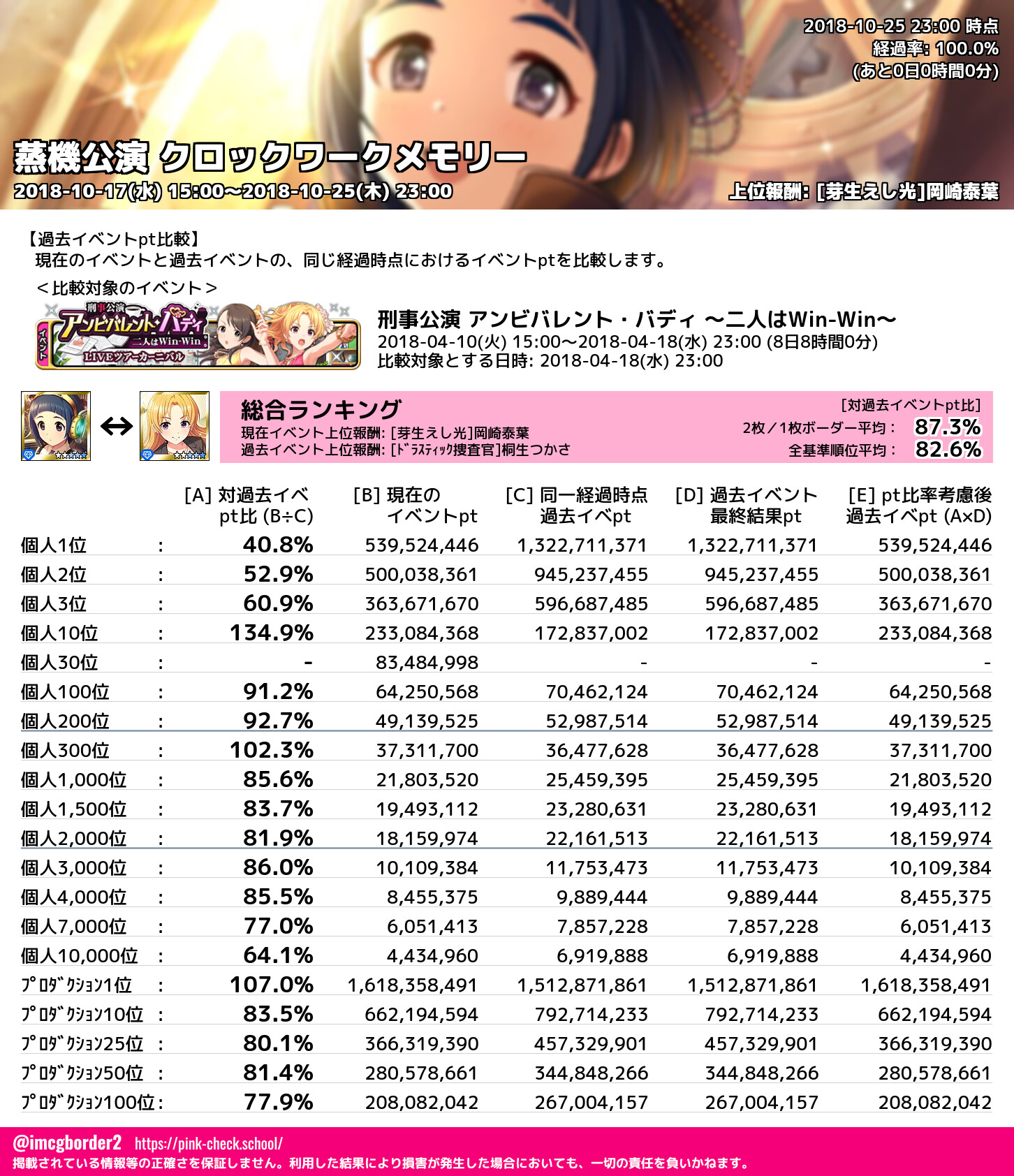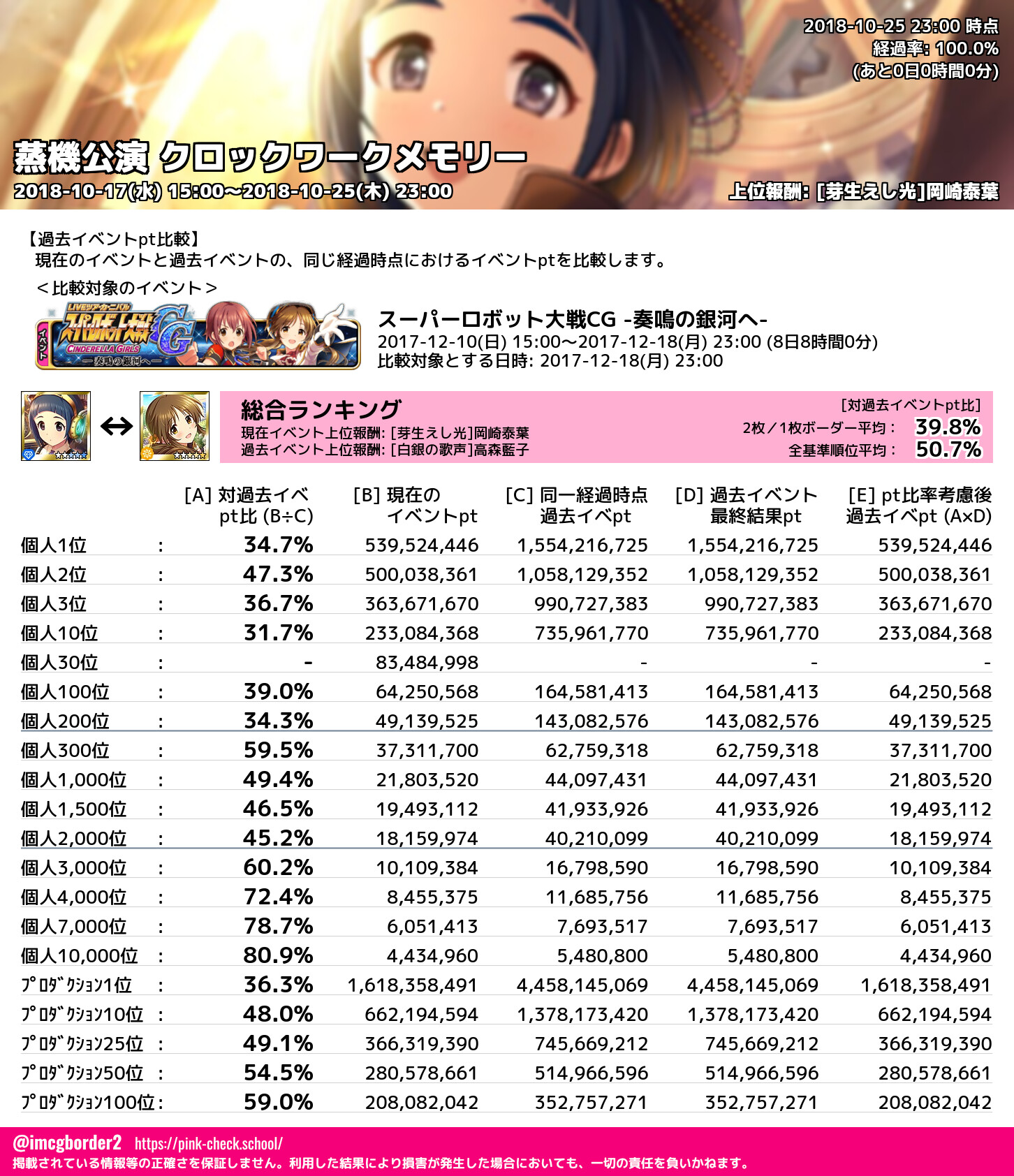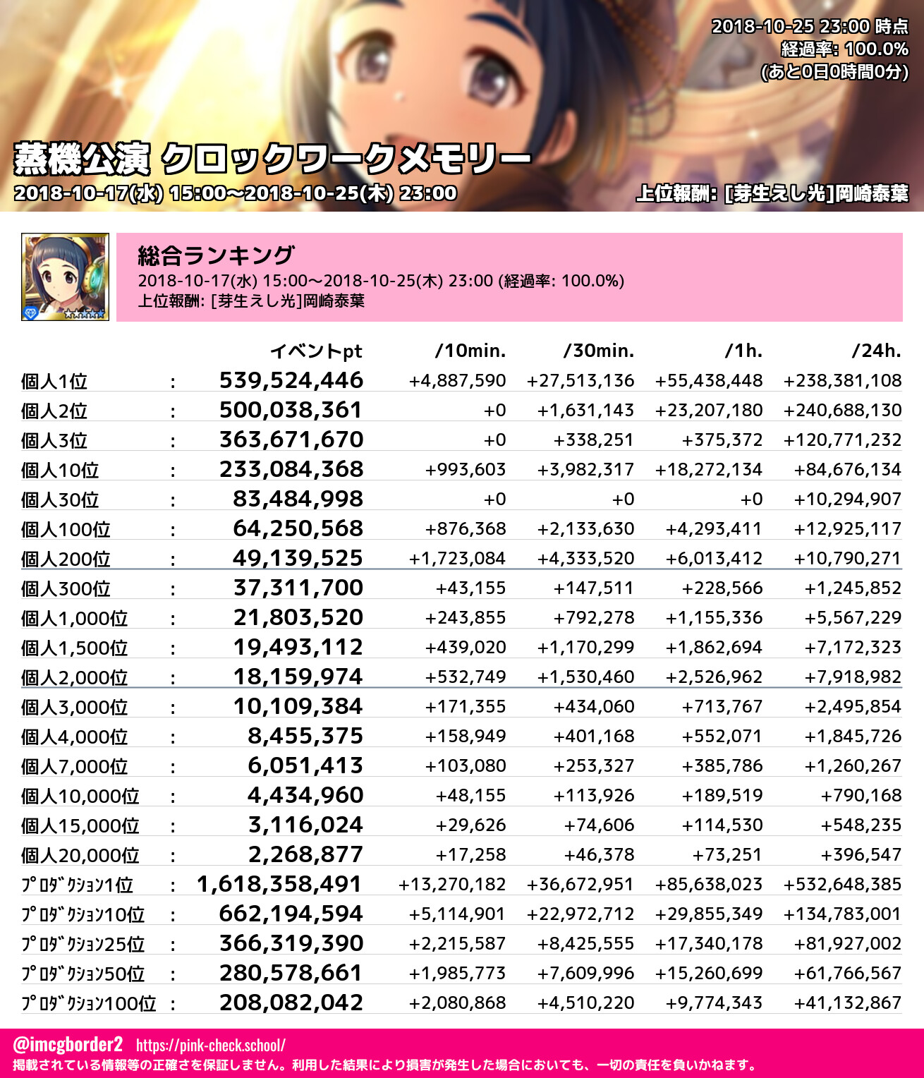 上位プロデューサースコア (2018-10-25 23:00 時点)