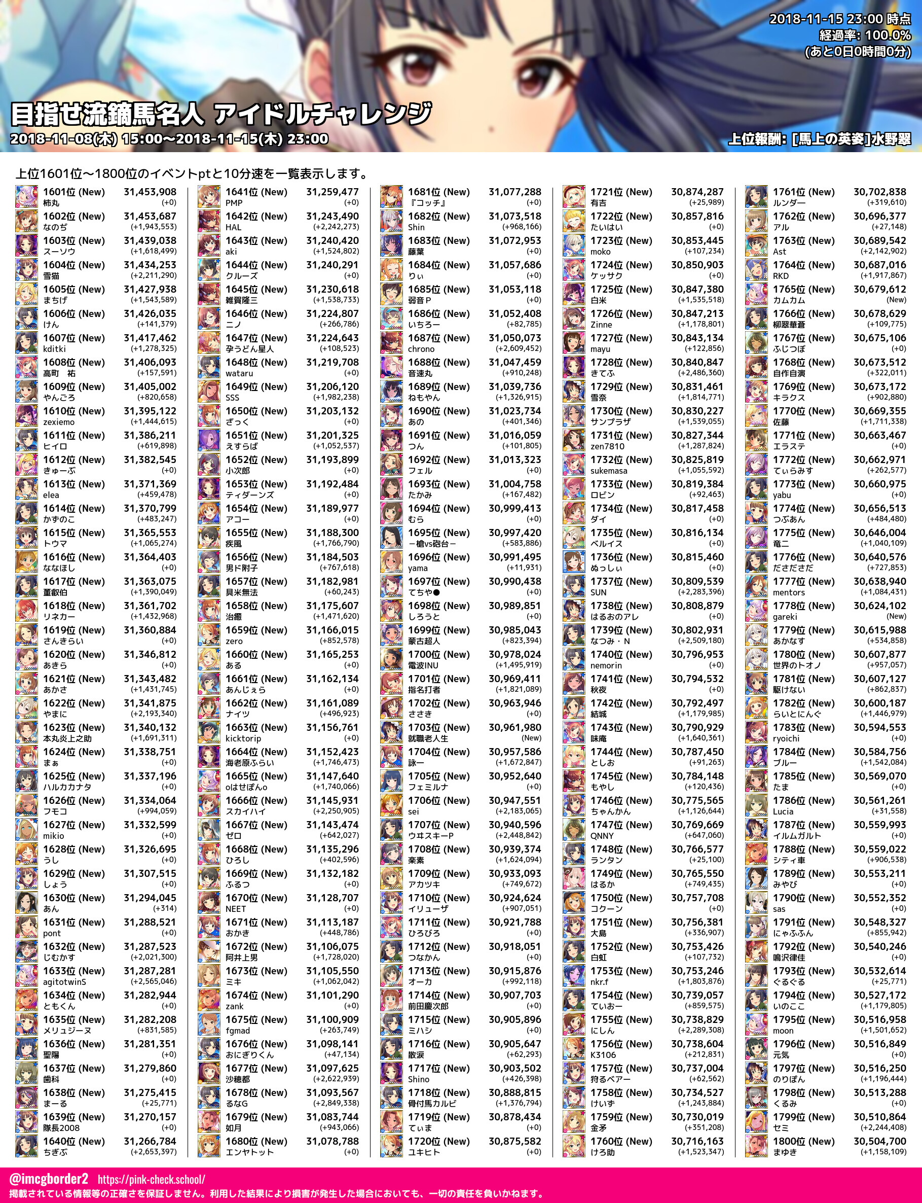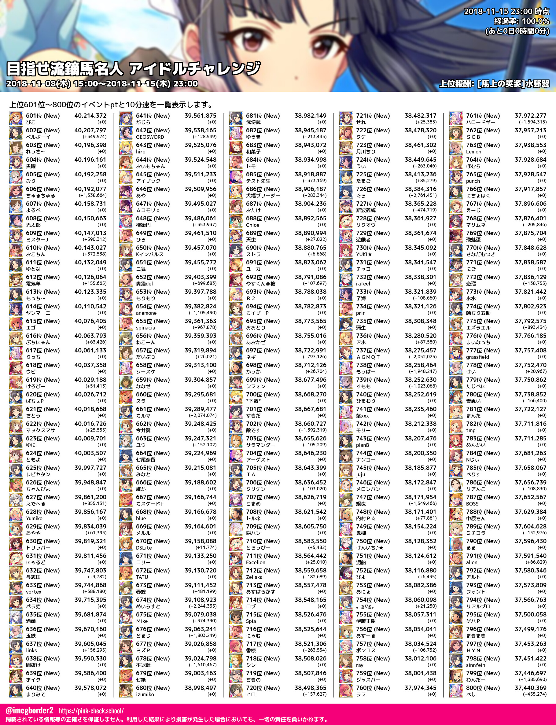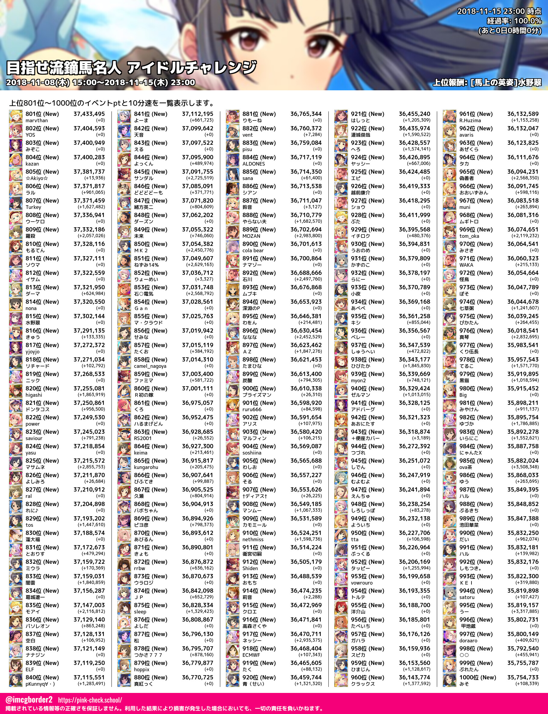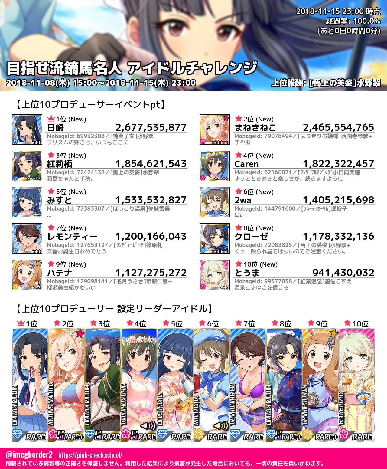 上位プロデューサースコア (2018-11-15 23:00 時点)