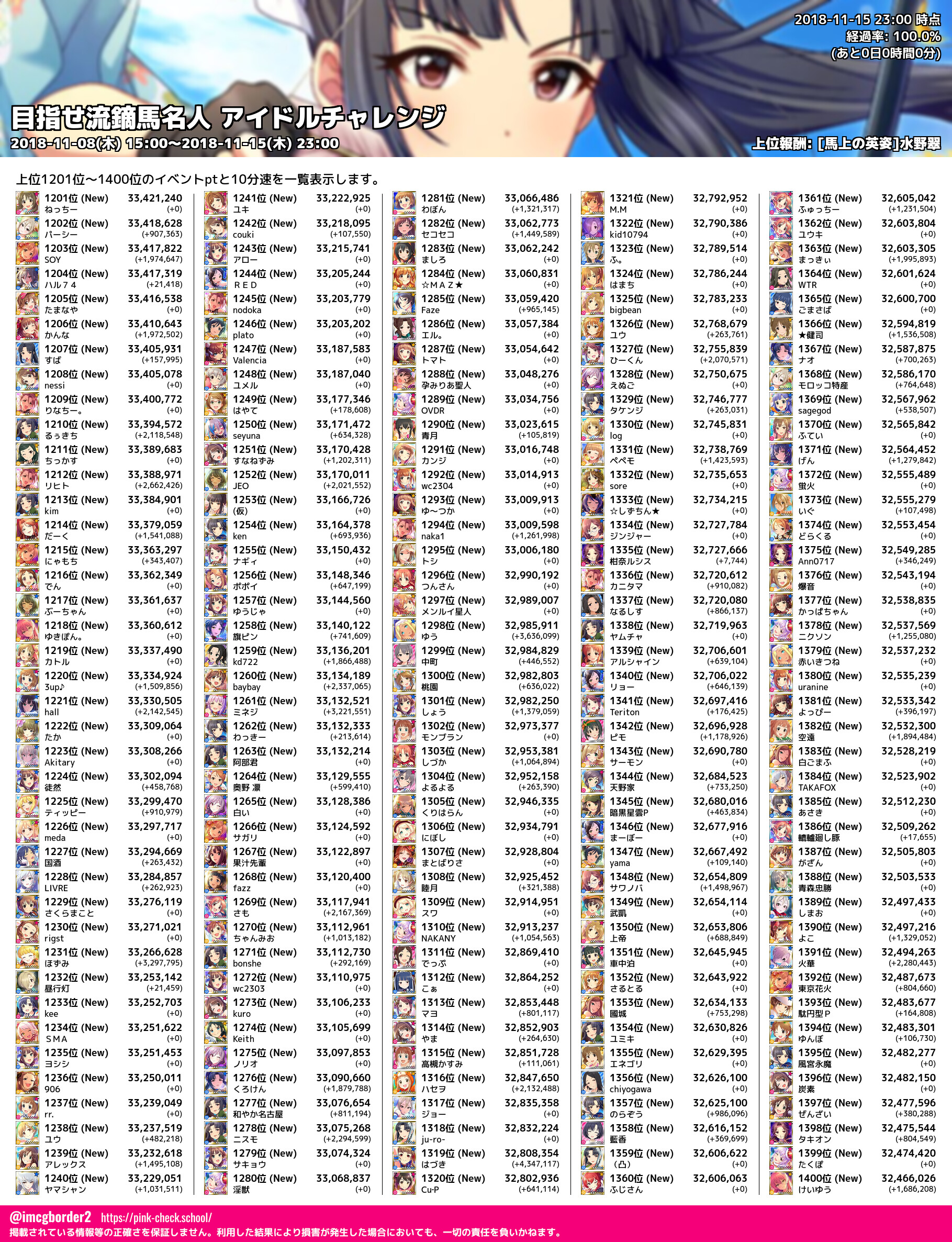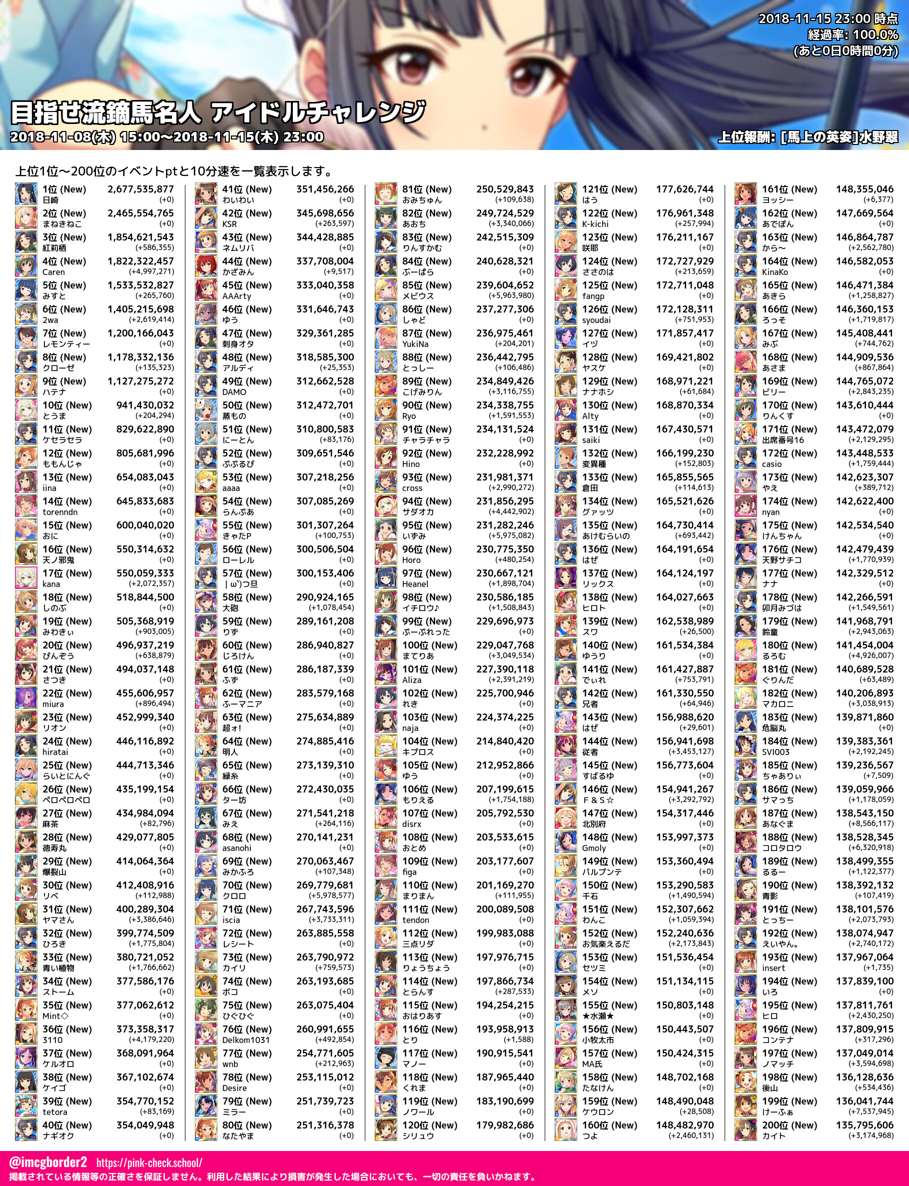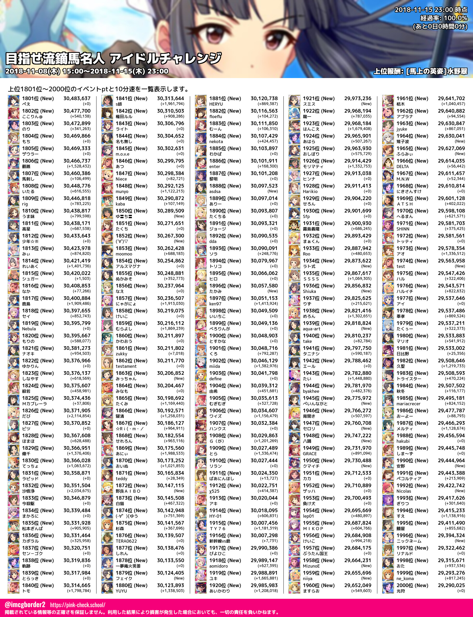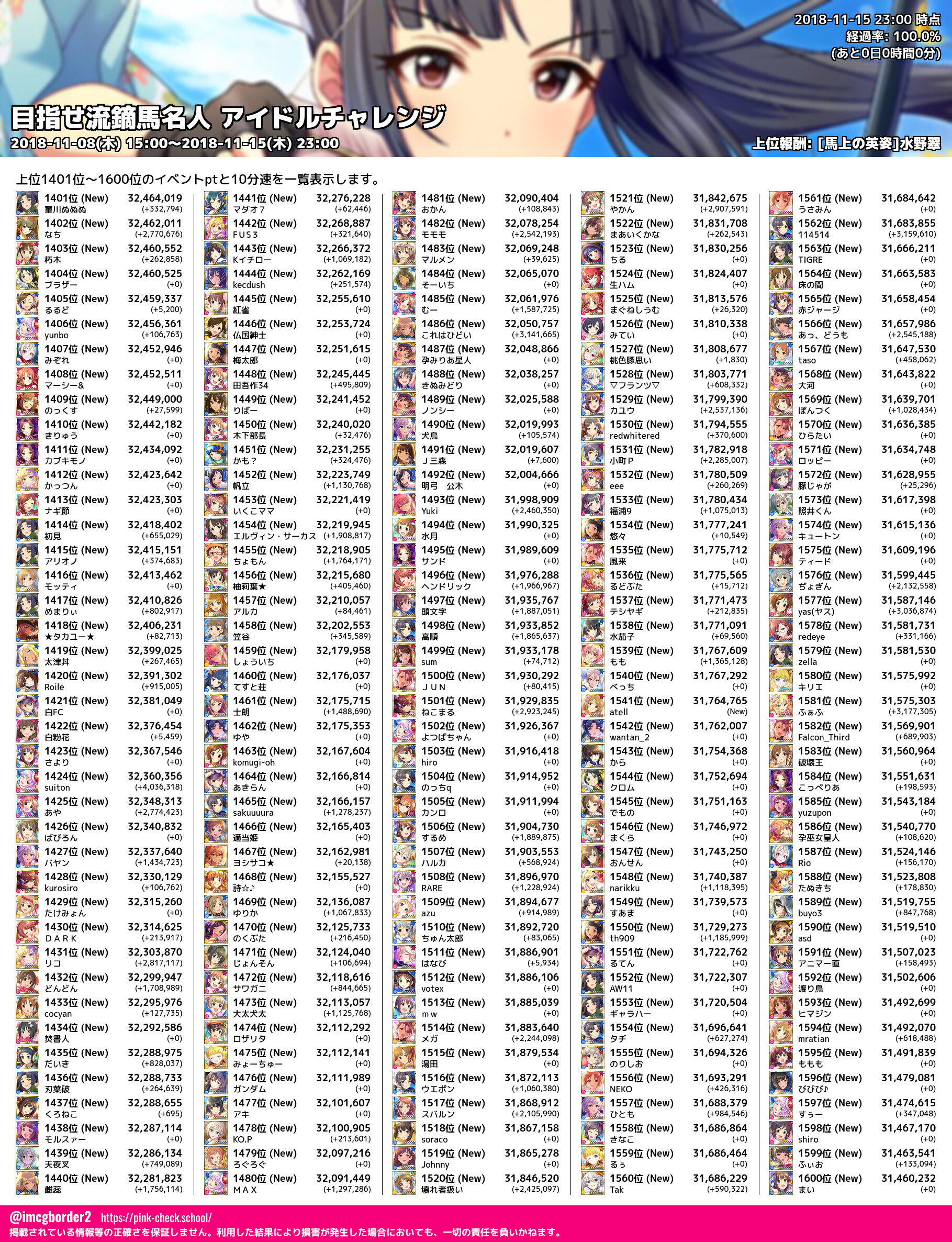 上位プロデューサースコア (2018-11-15 23:00 時点)