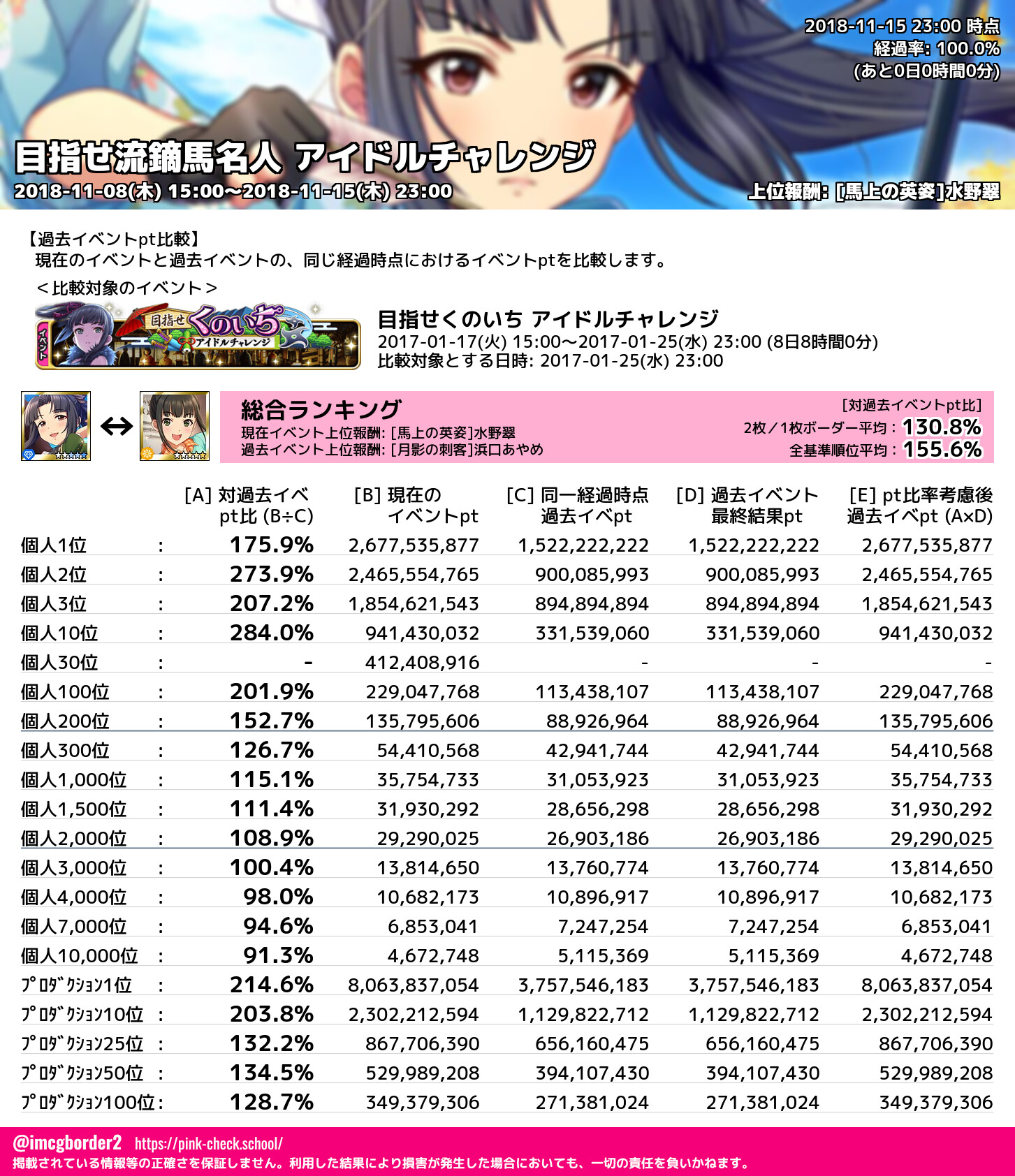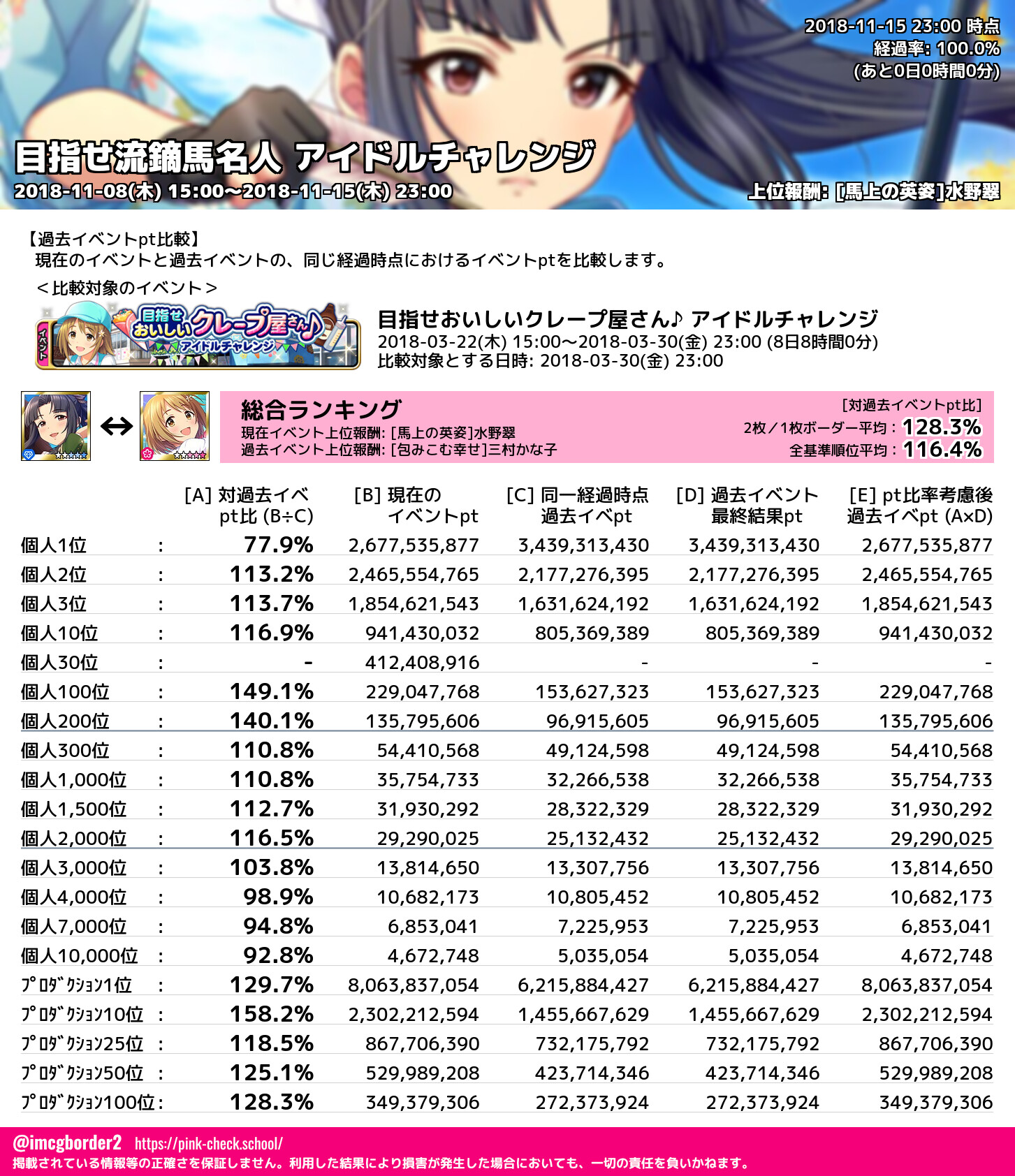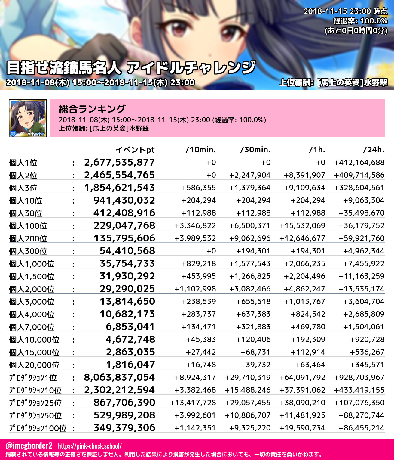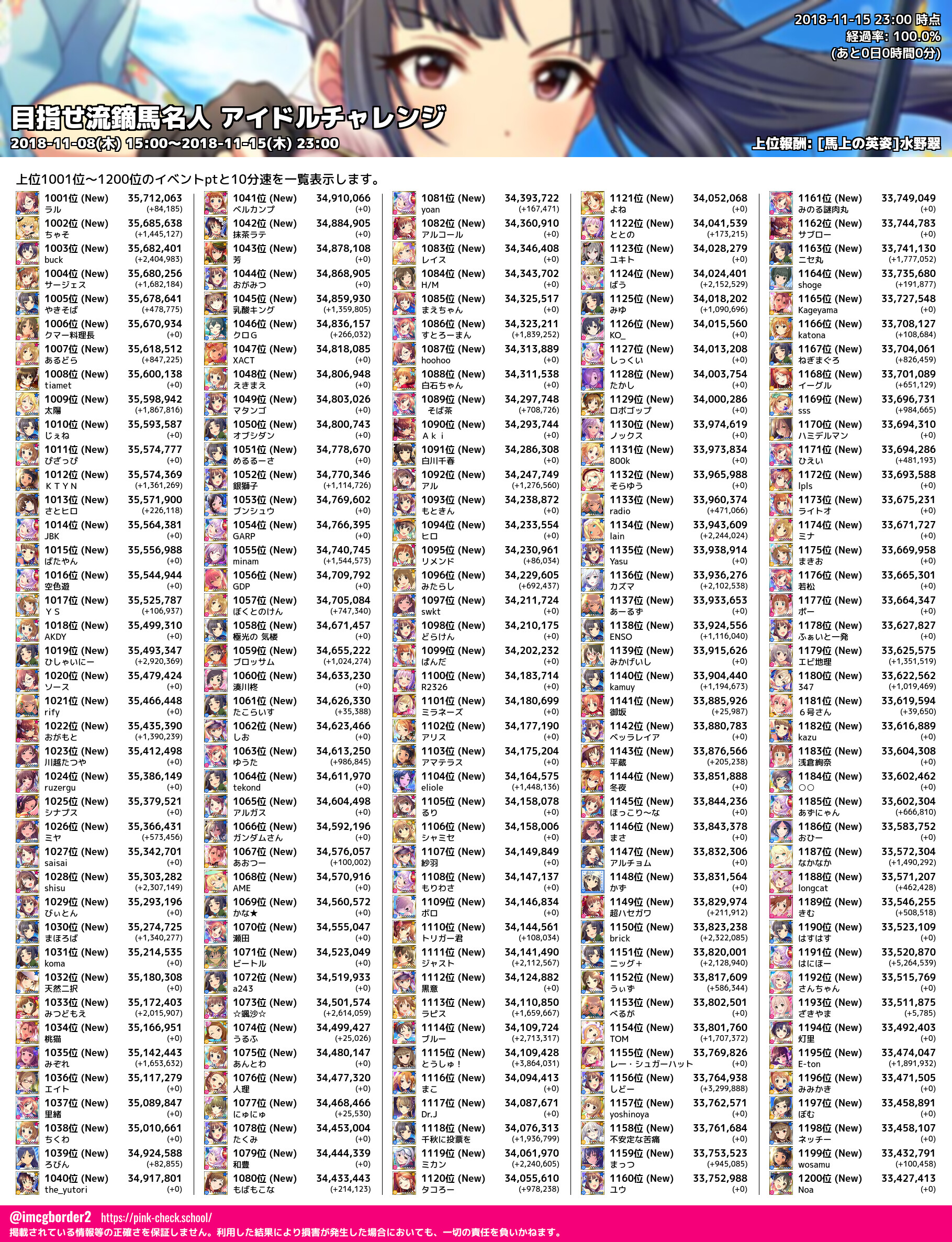 上位プロデューサースコア (2018-11-15 23:00 時点)