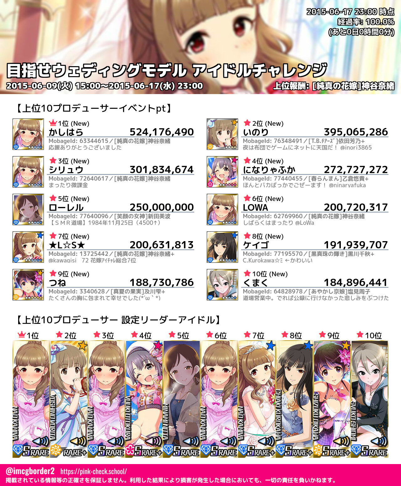 上位プロデューサースコア (2015-06-17 23:00 時点)