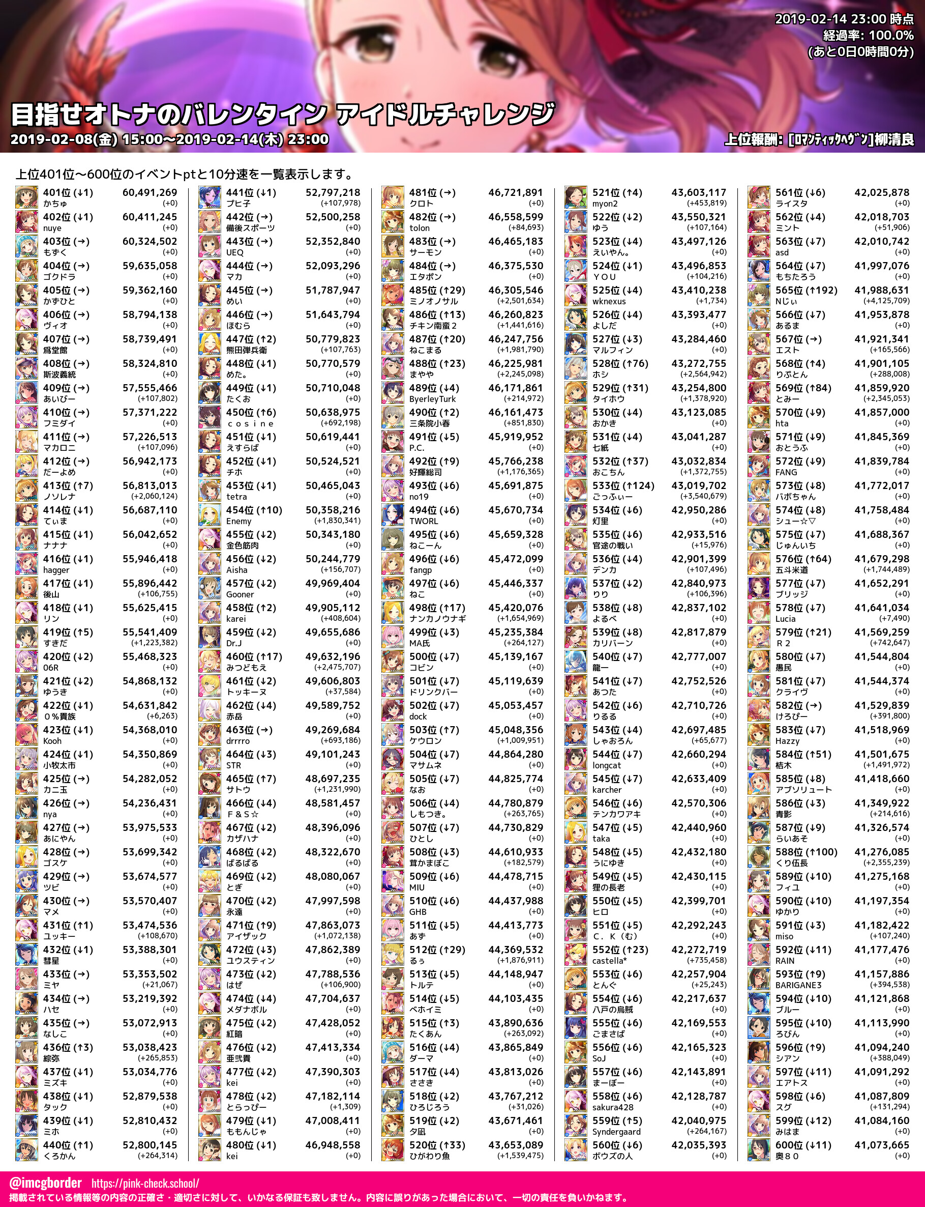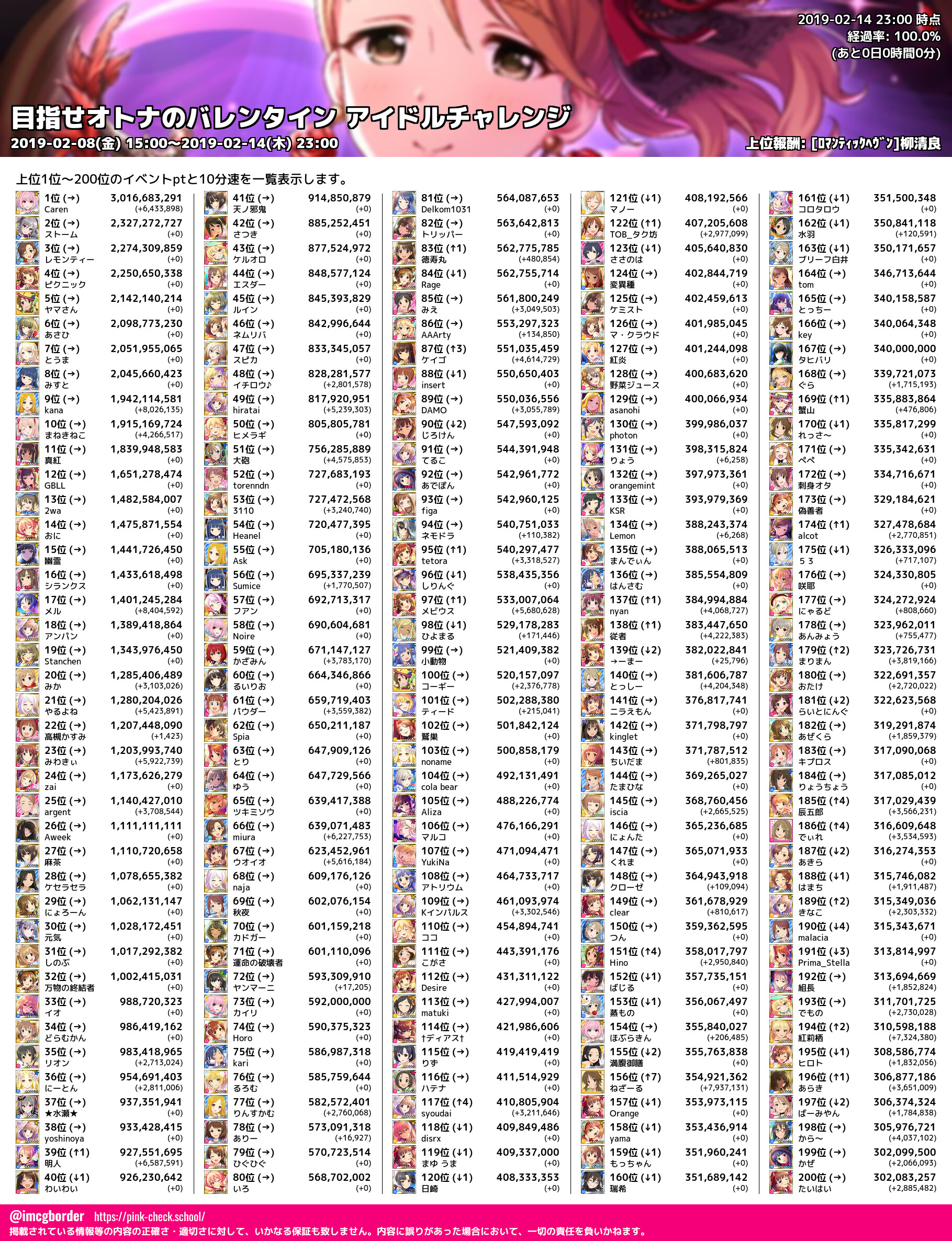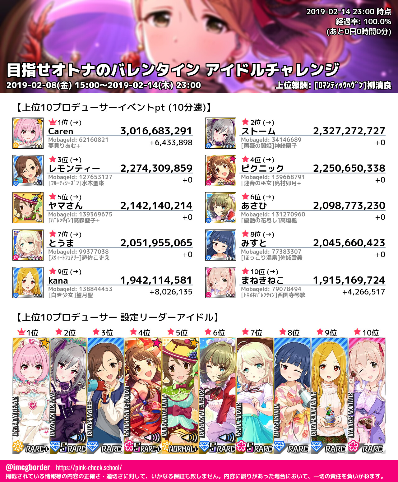 上位プロデューサースコア (2019-02-14 23:00 時点)