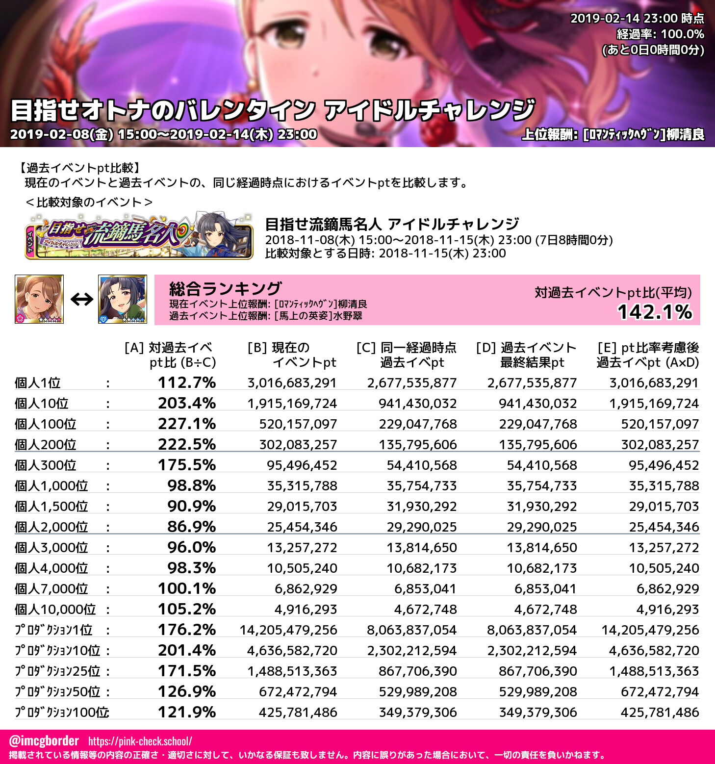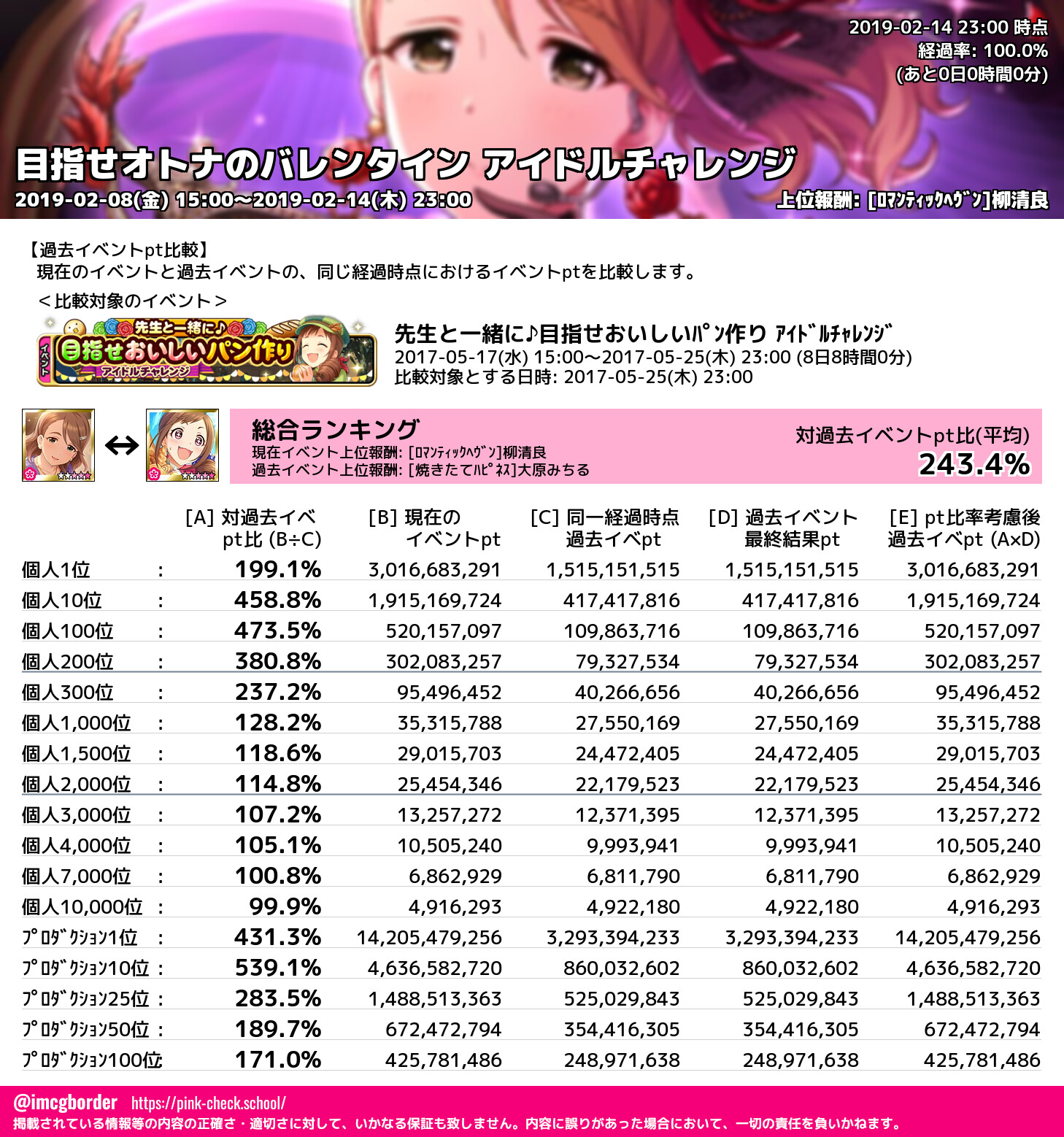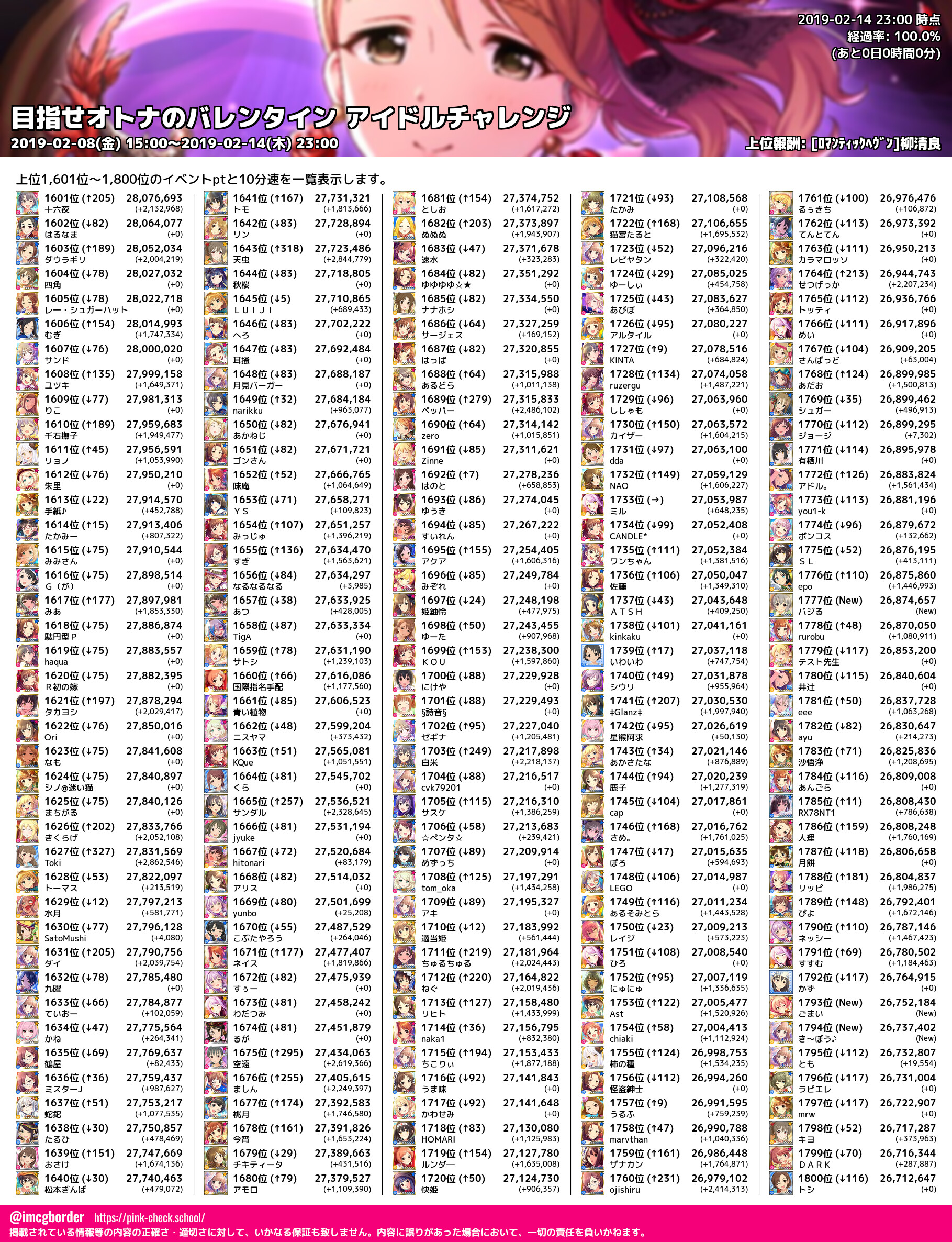 上位プロデューサースコア (2019-02-14 23:00 時点)