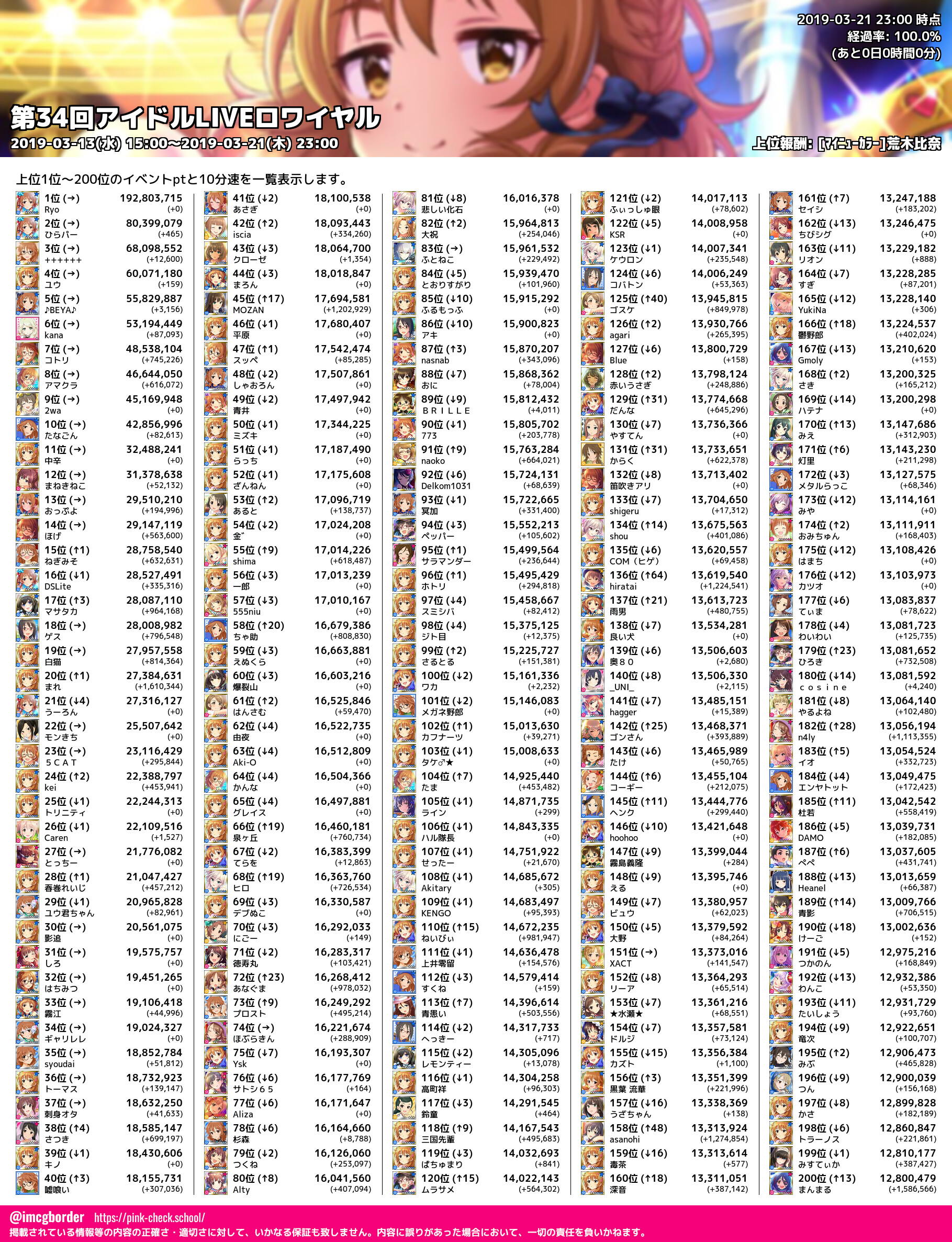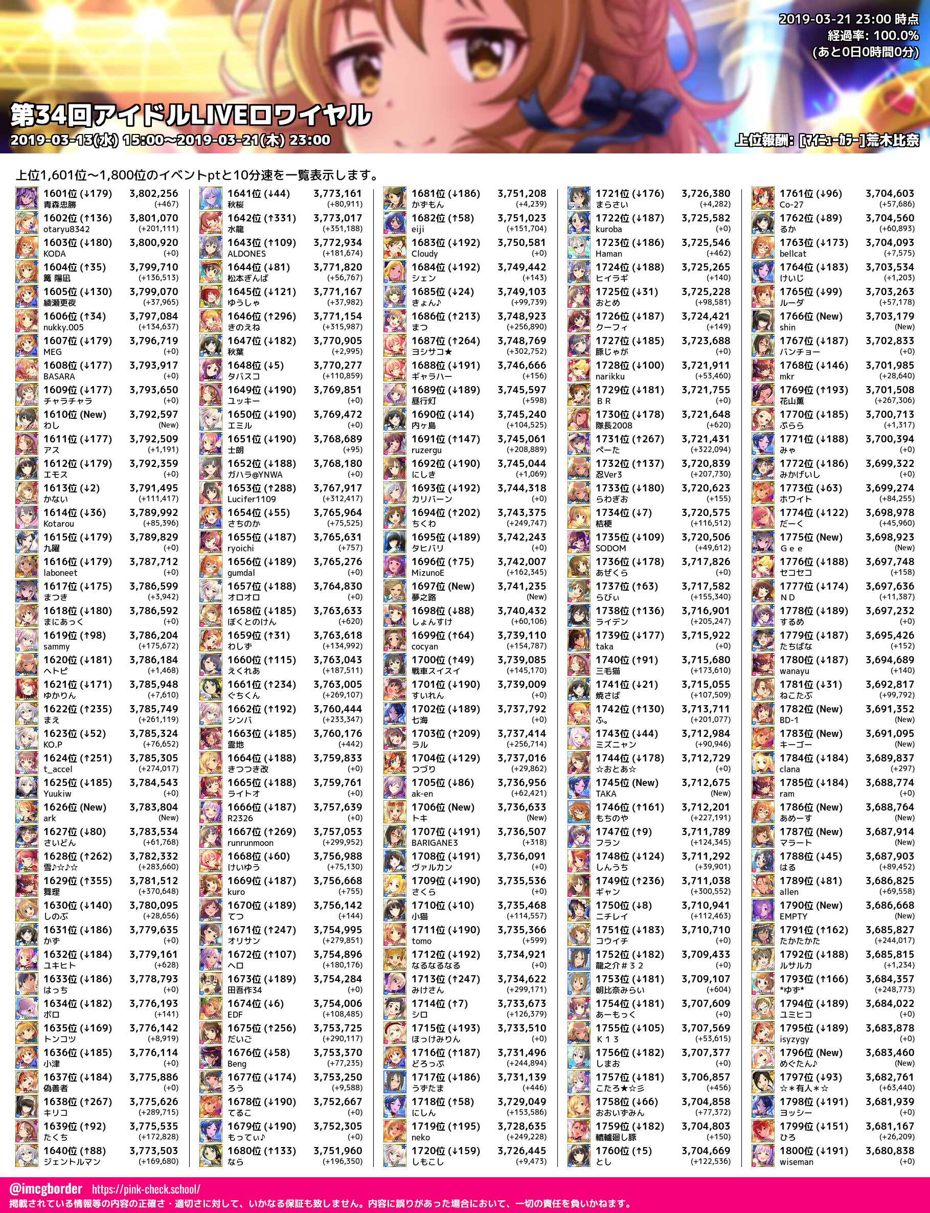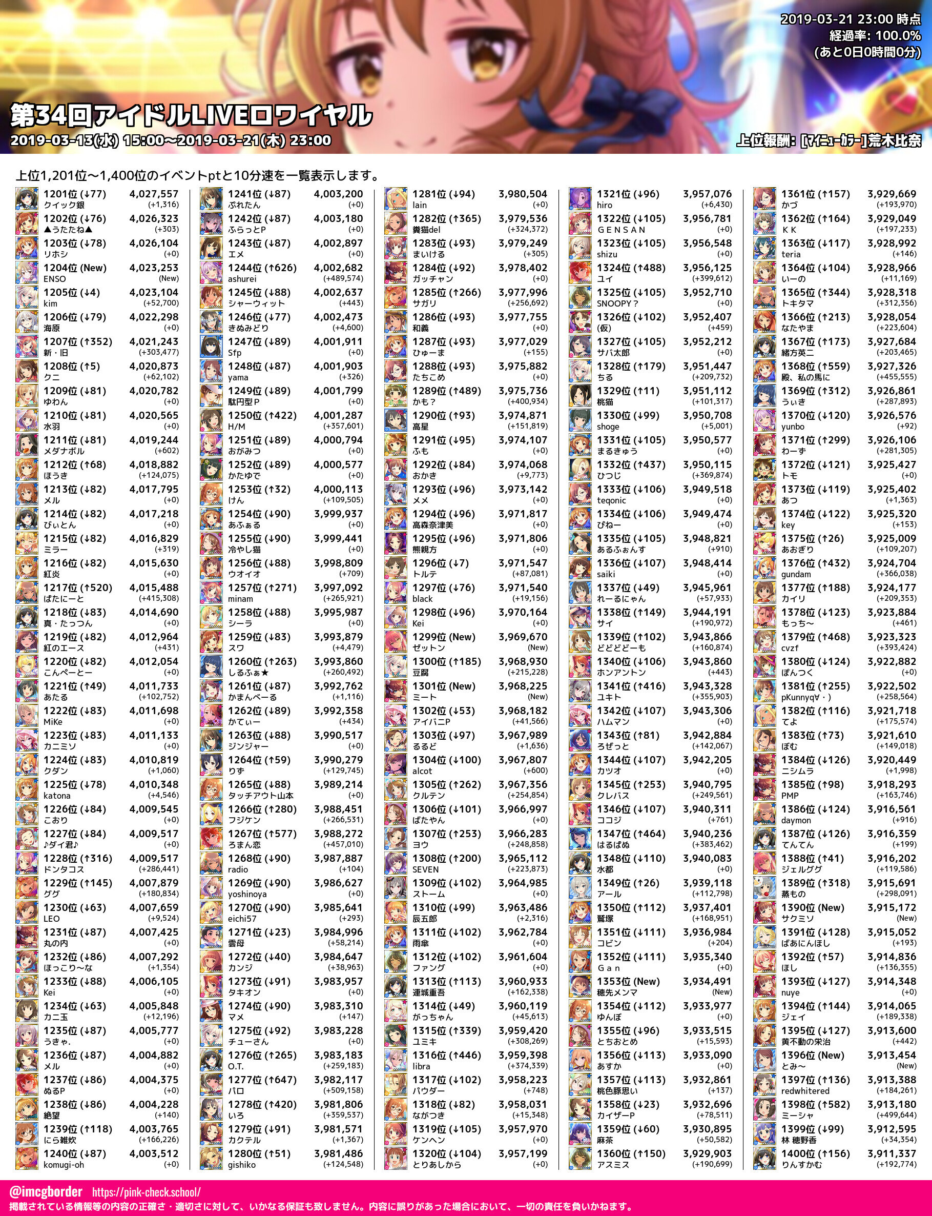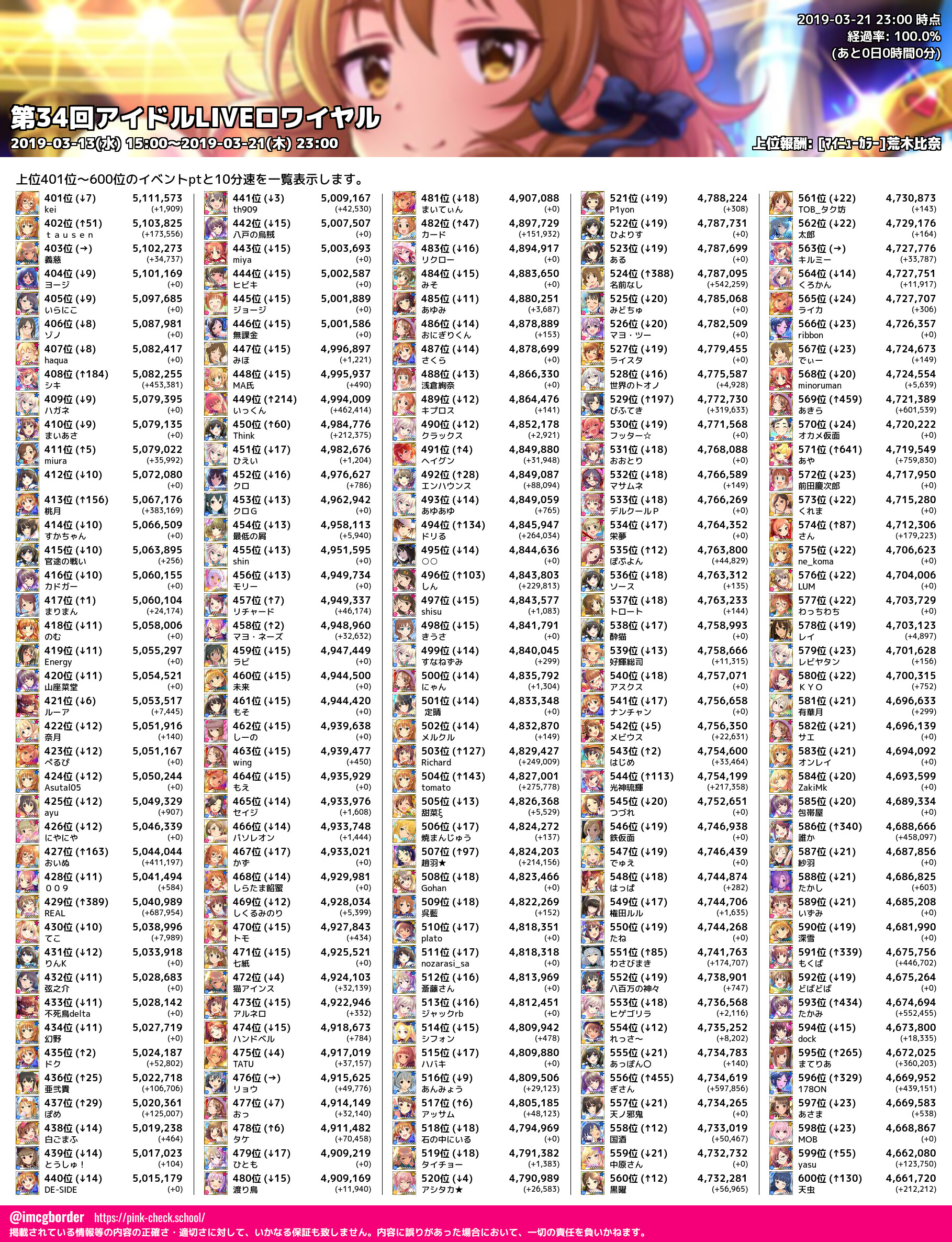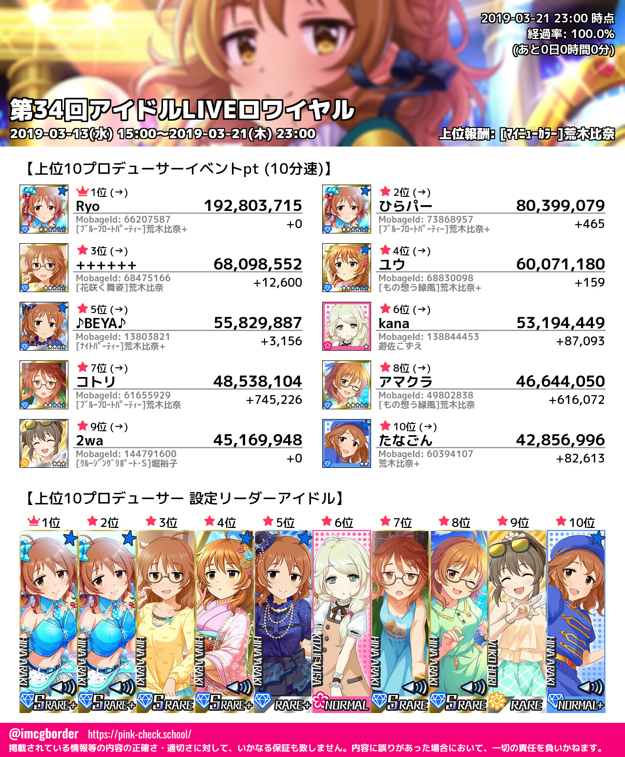 上位プロデューサースコア (2019-03-21 23:00 時点)