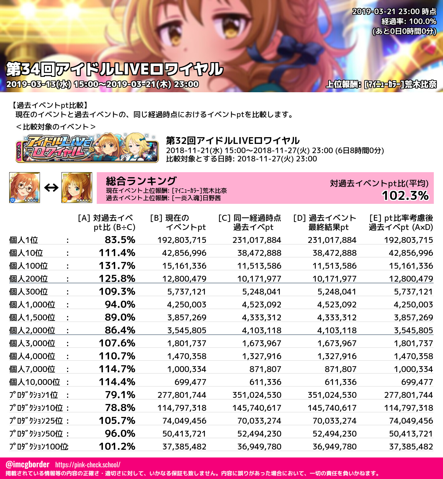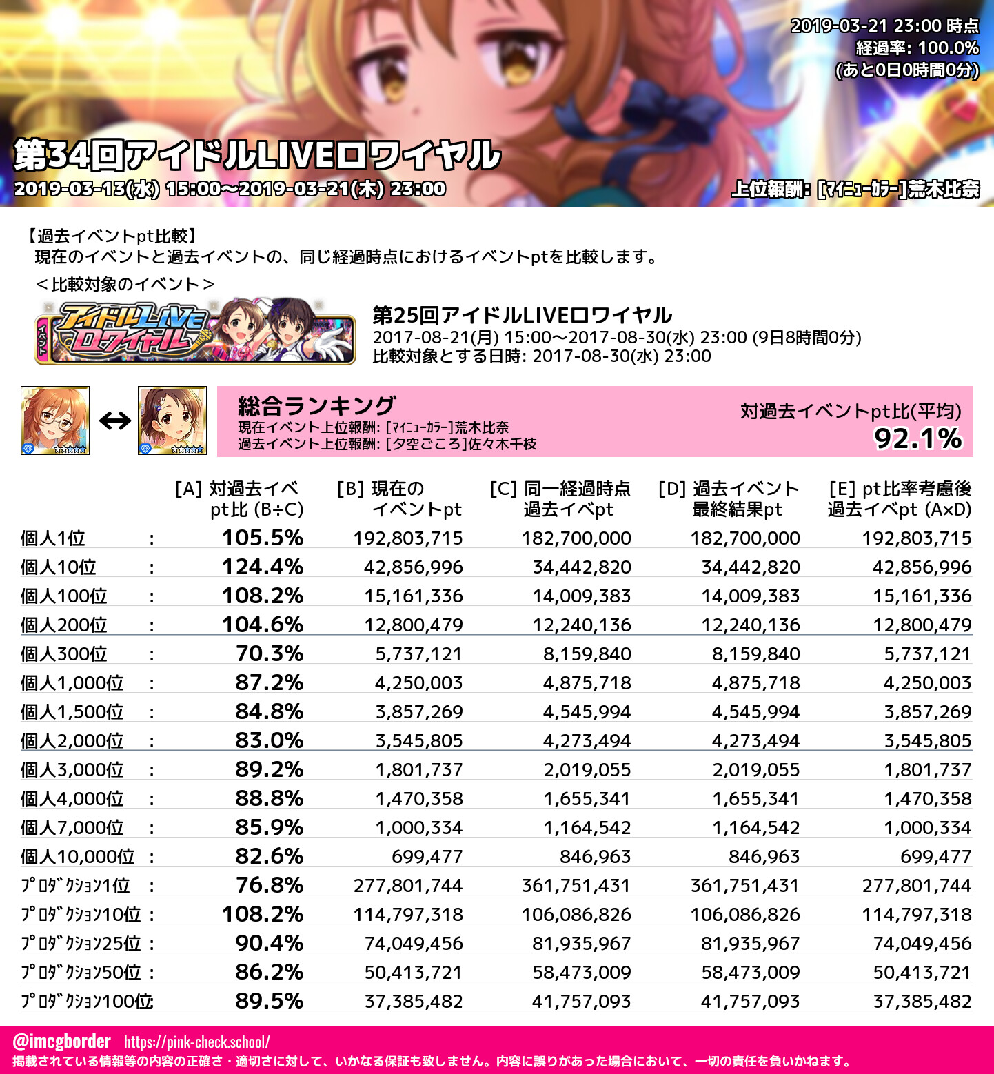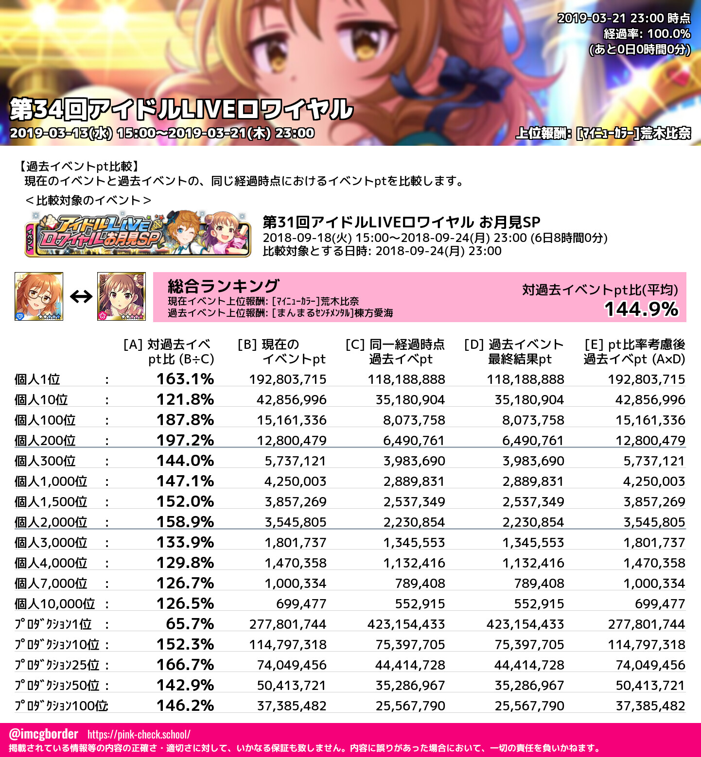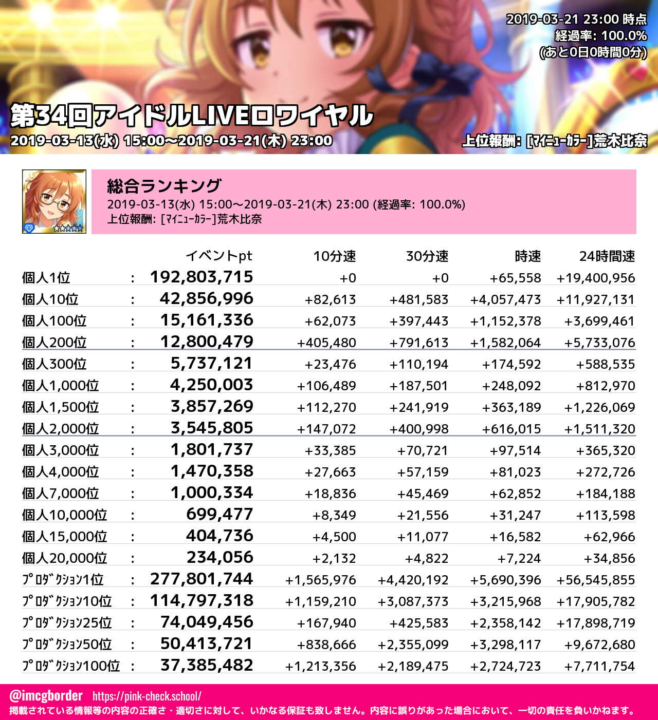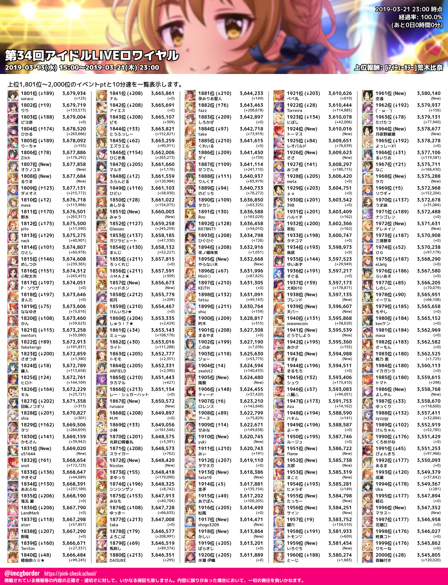 上位プロデューサースコア (2019-03-21 23:00 時点)