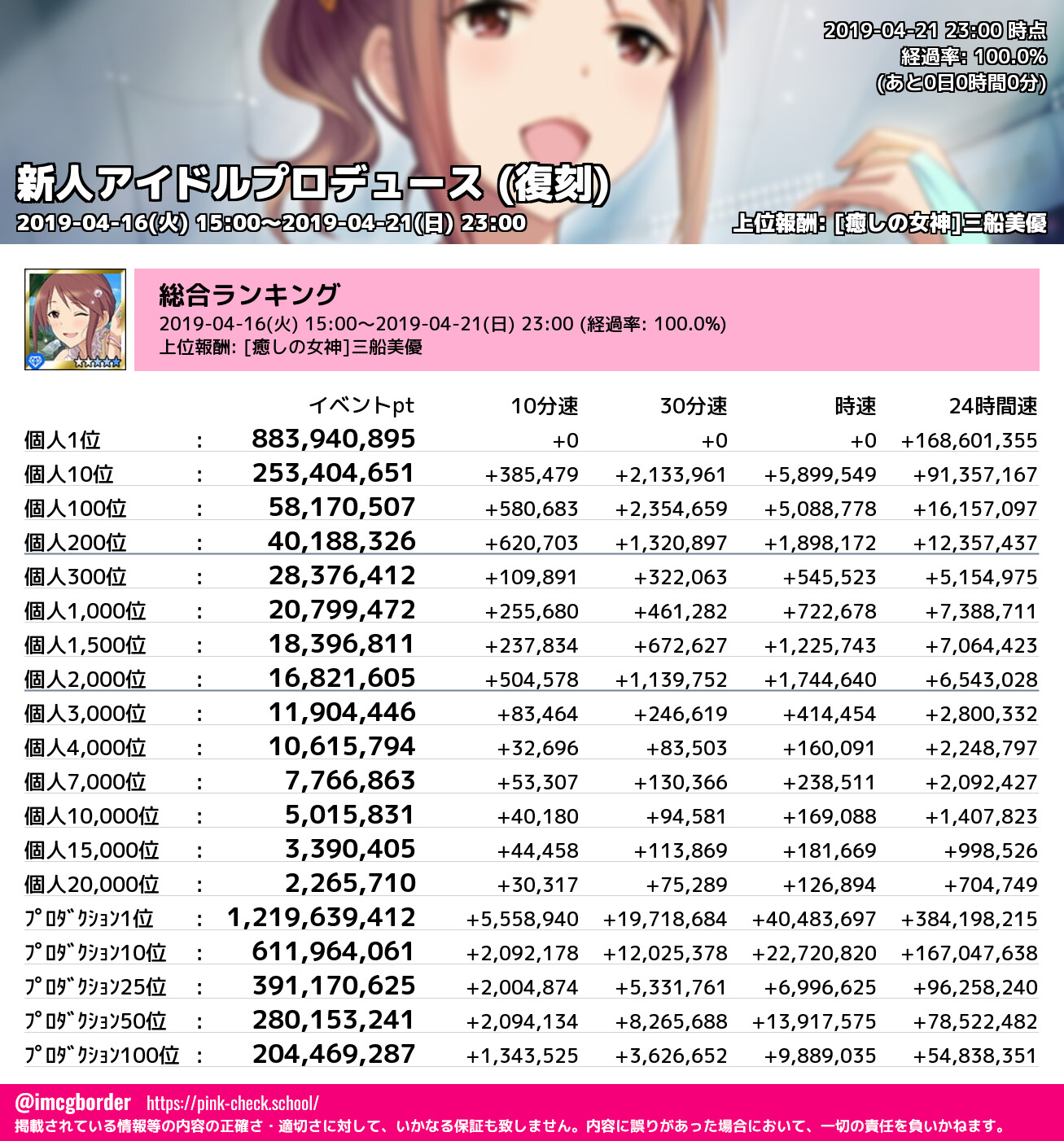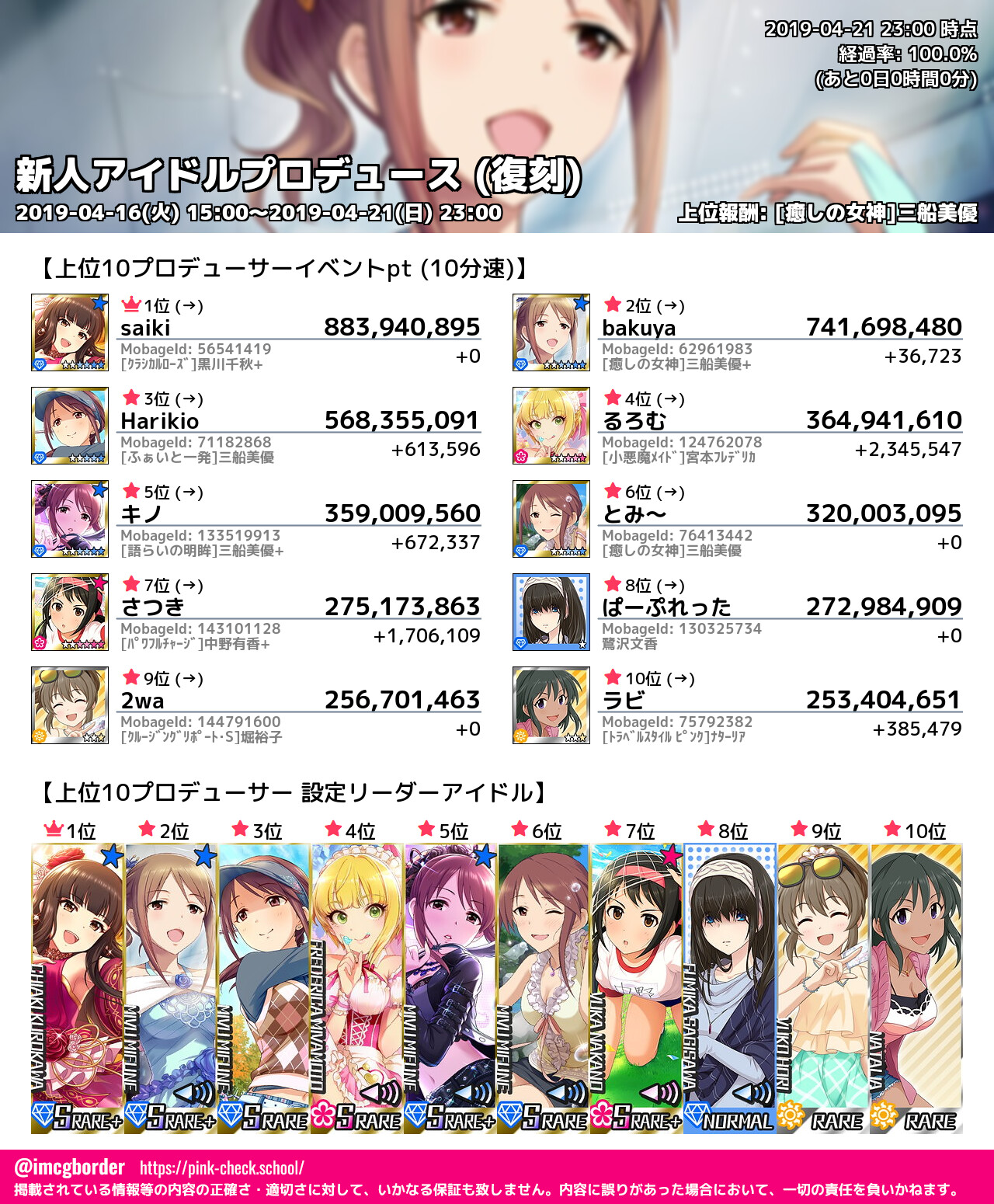 上位プロデューサースコア (2019-04-21 23:00 時点)