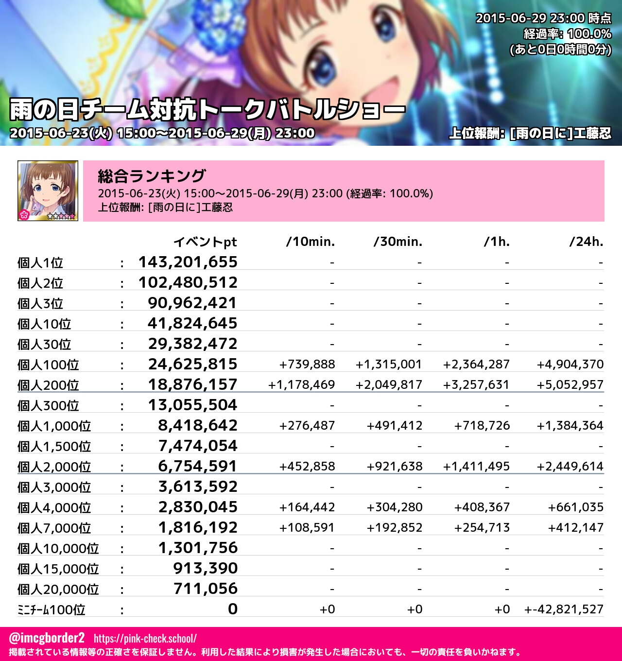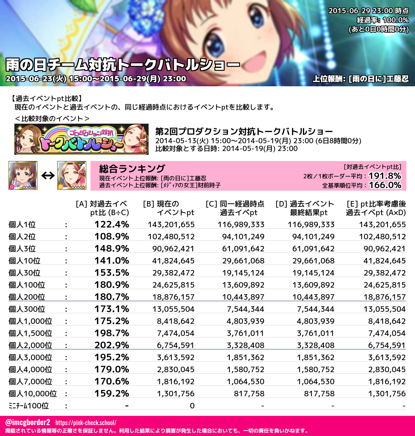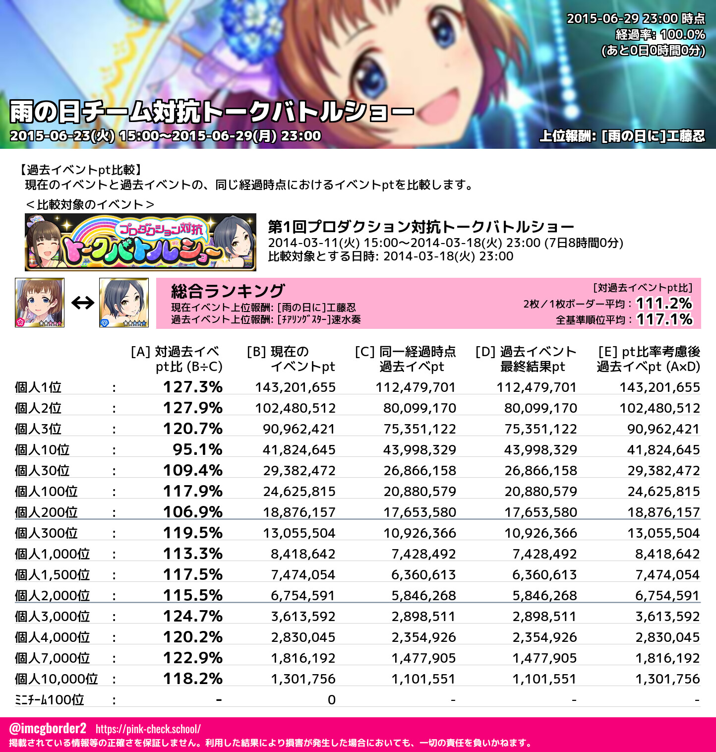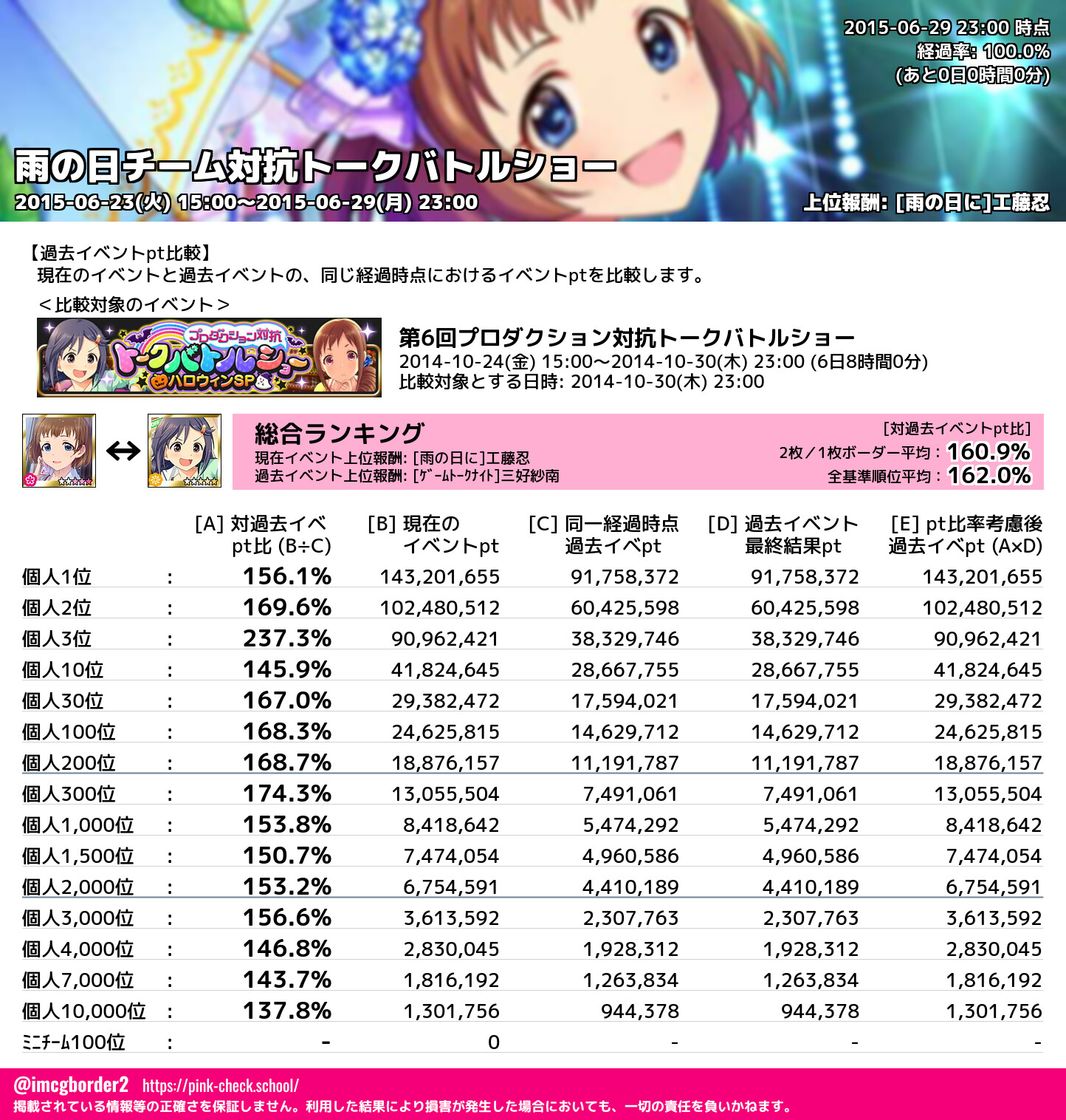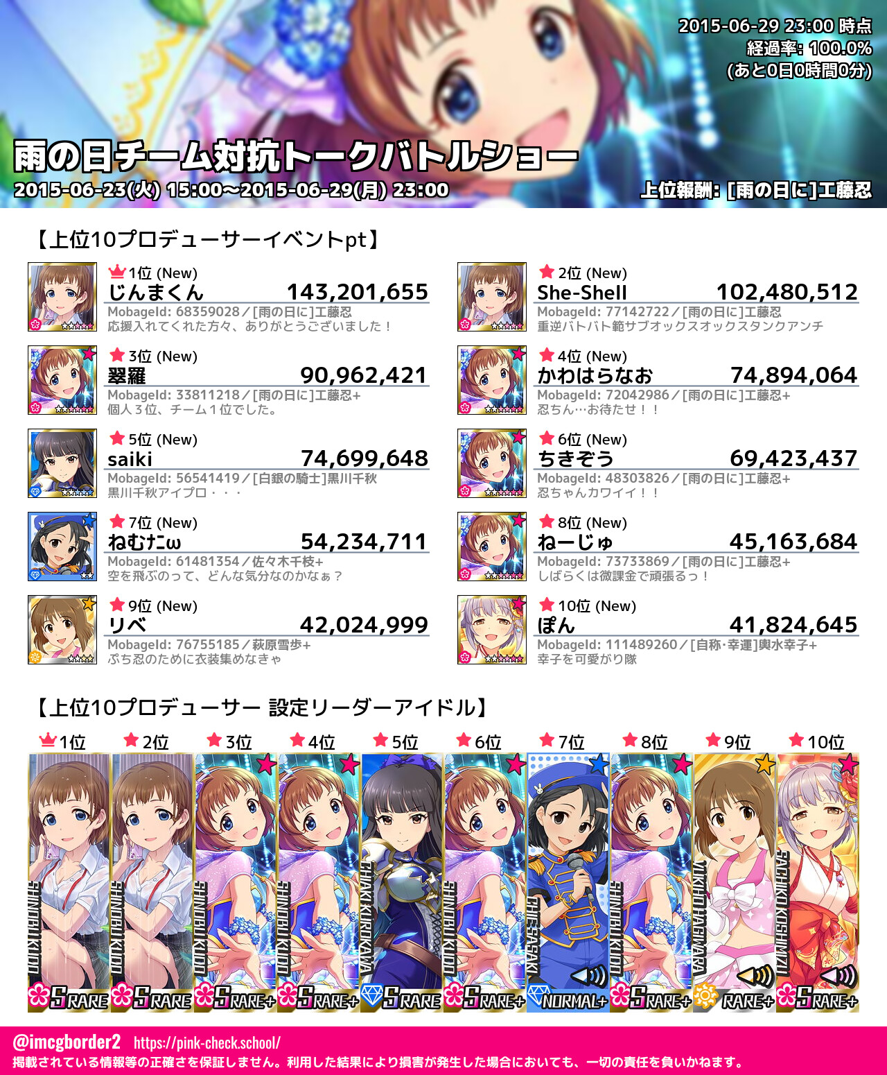 上位プロデューサースコア (2015-06-29 23:00 時点)