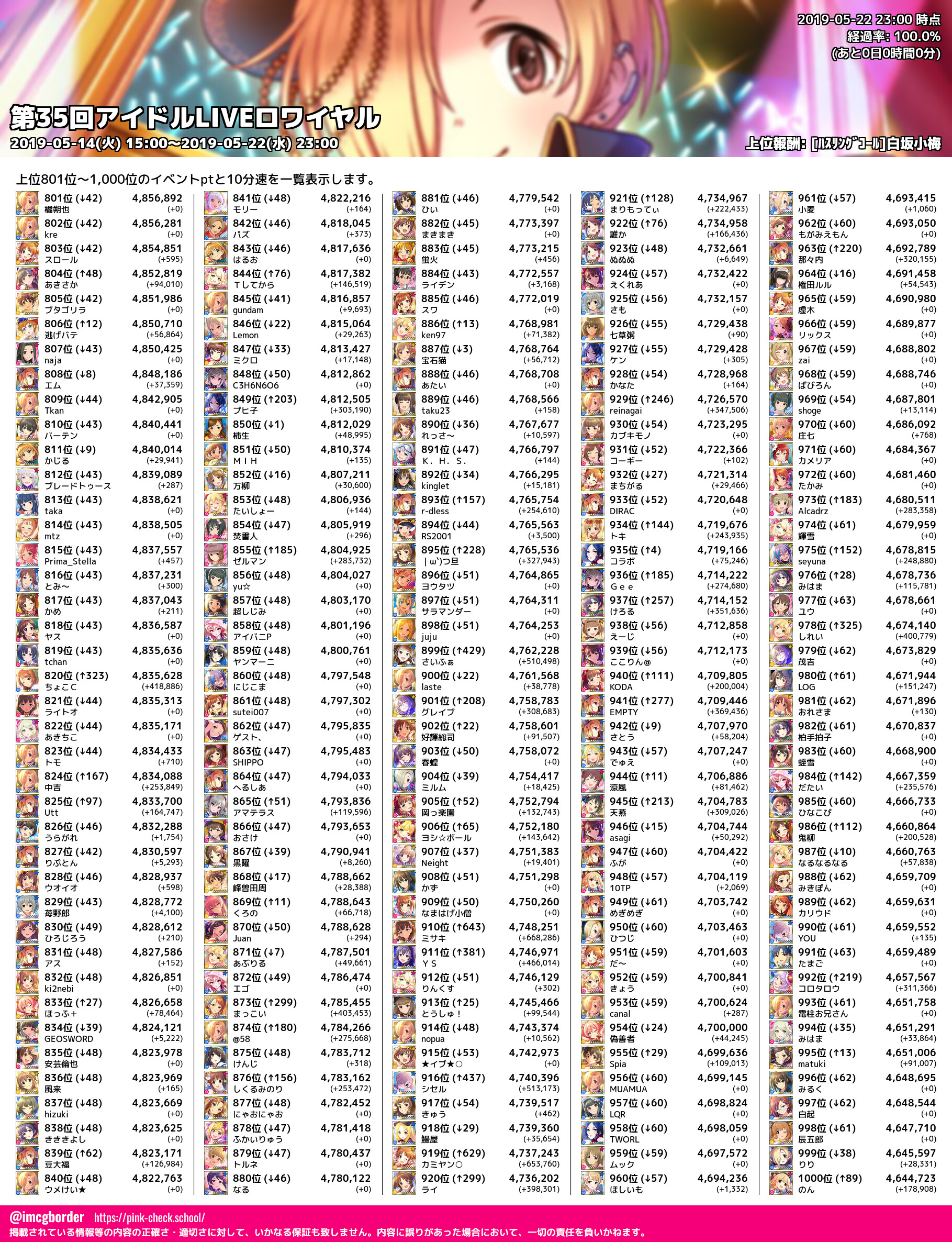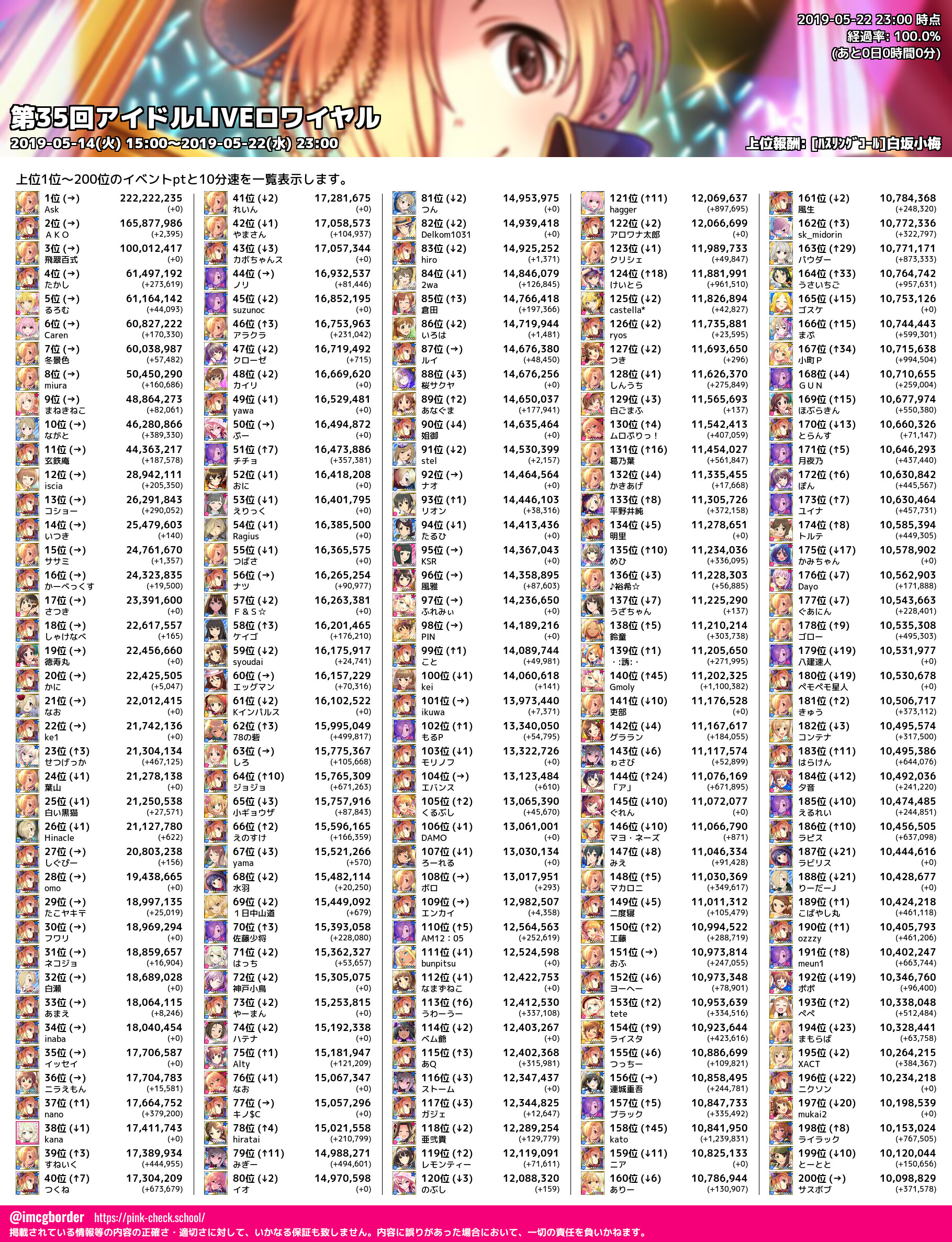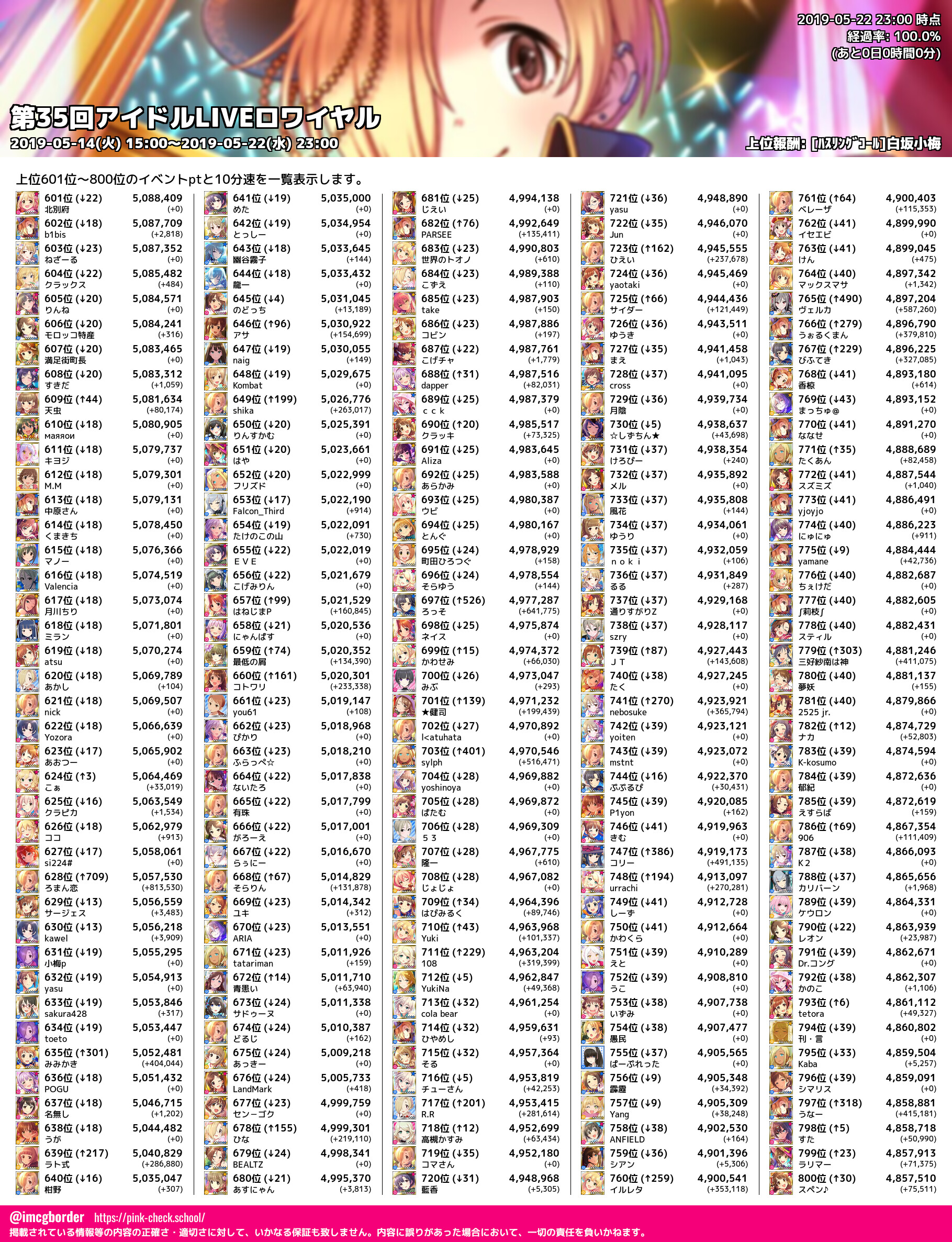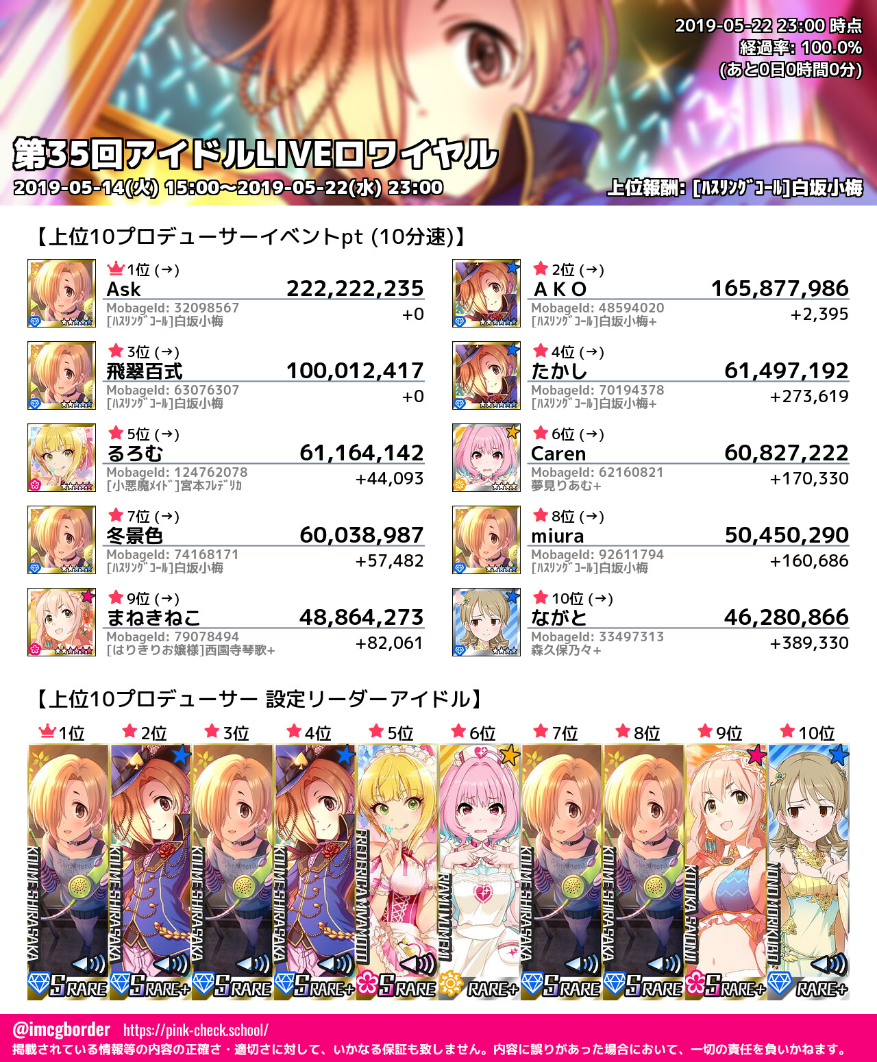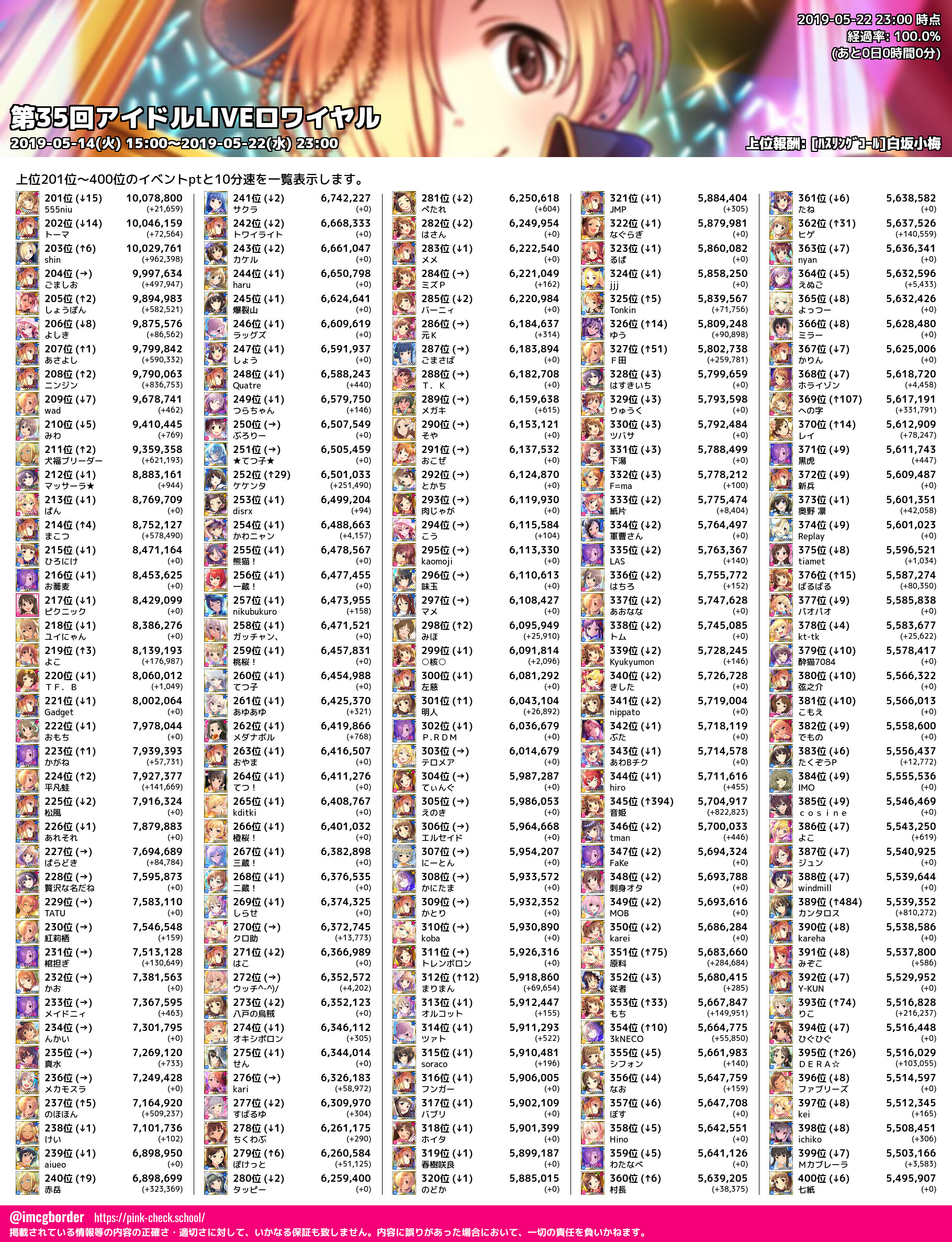上位プロデューサースコア (2019-05-22 23:00 時点)