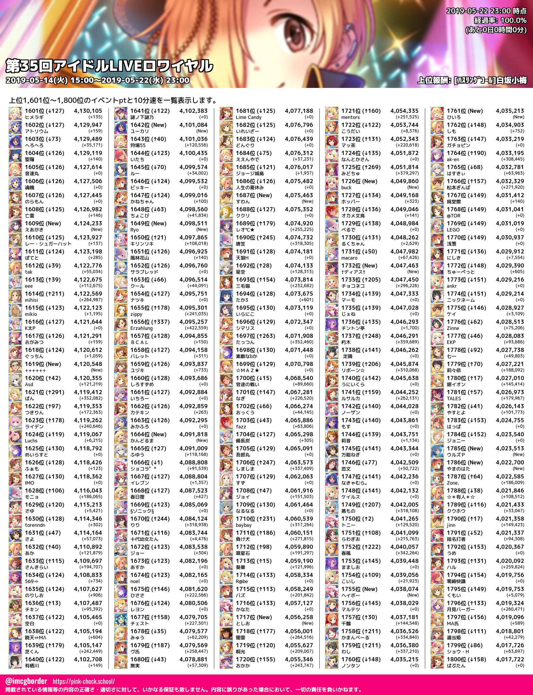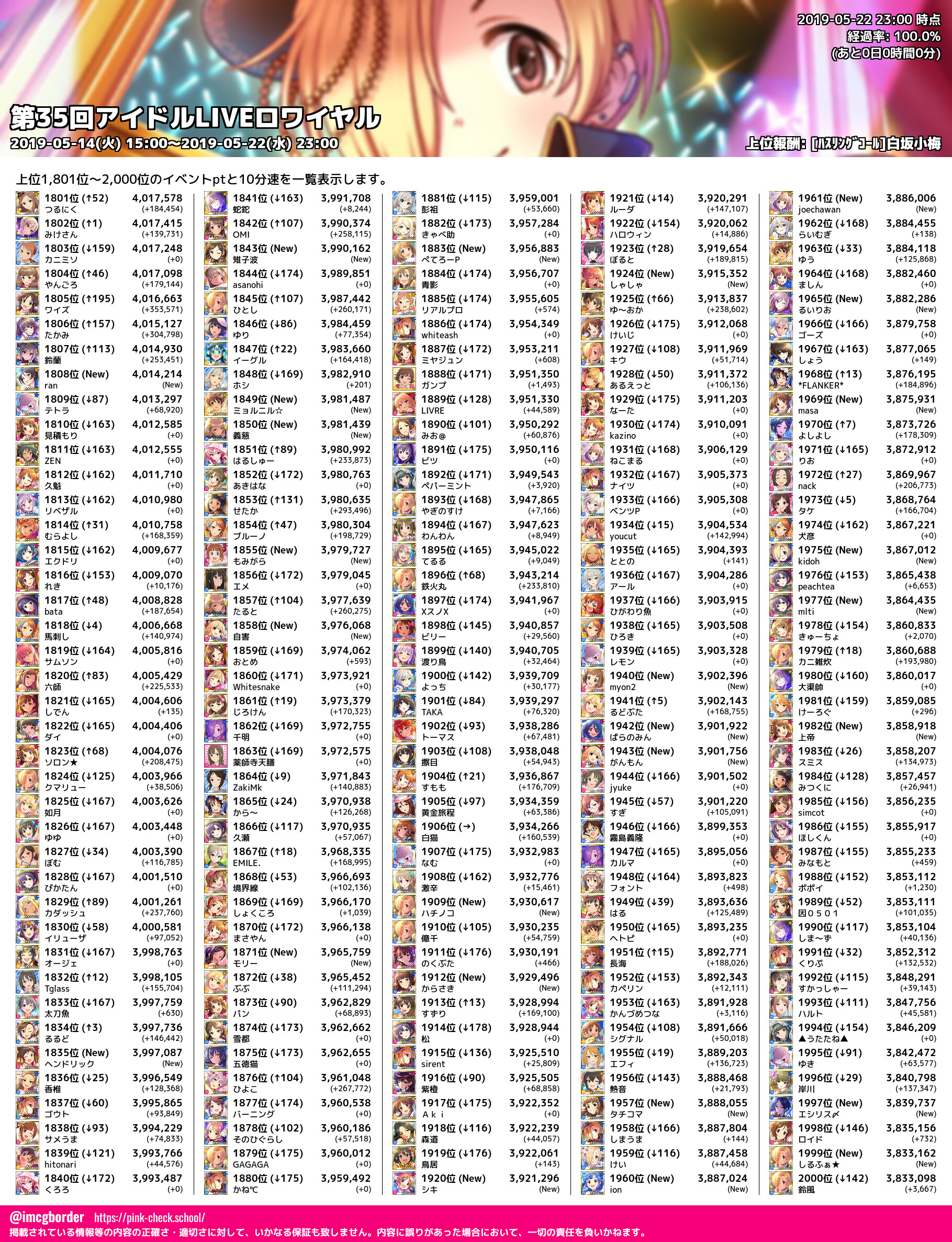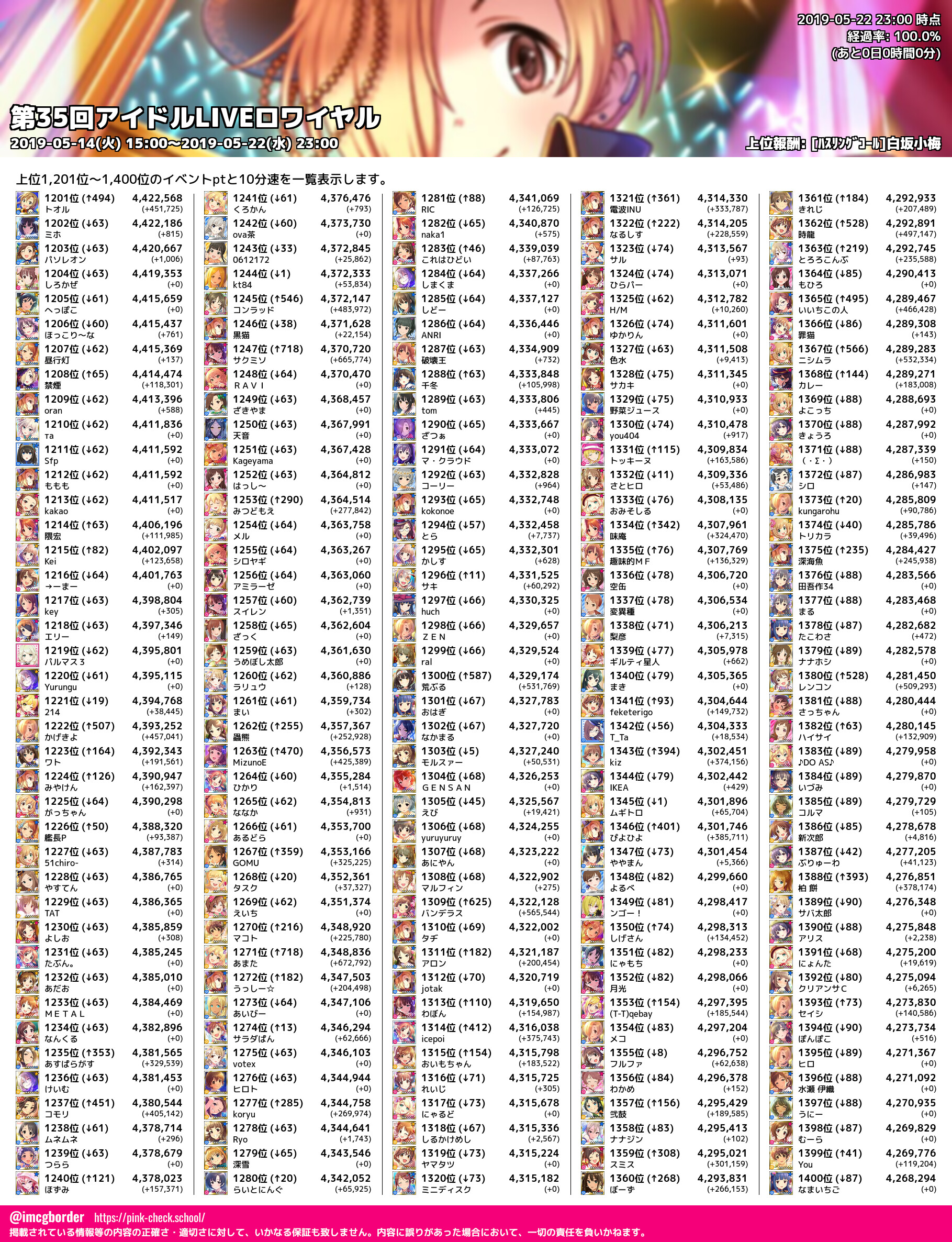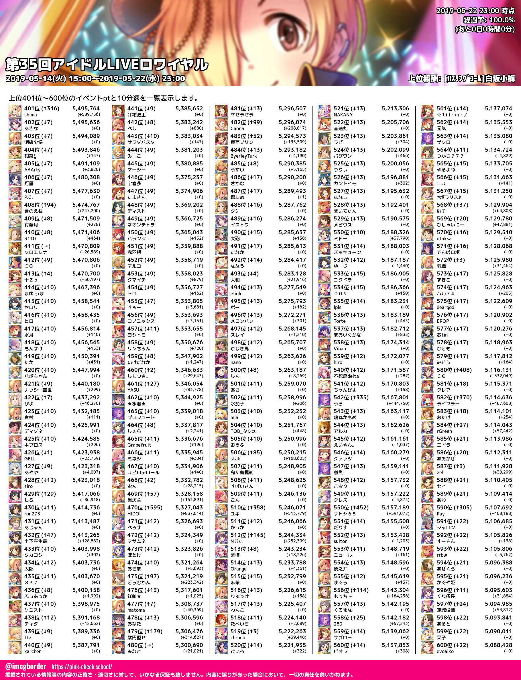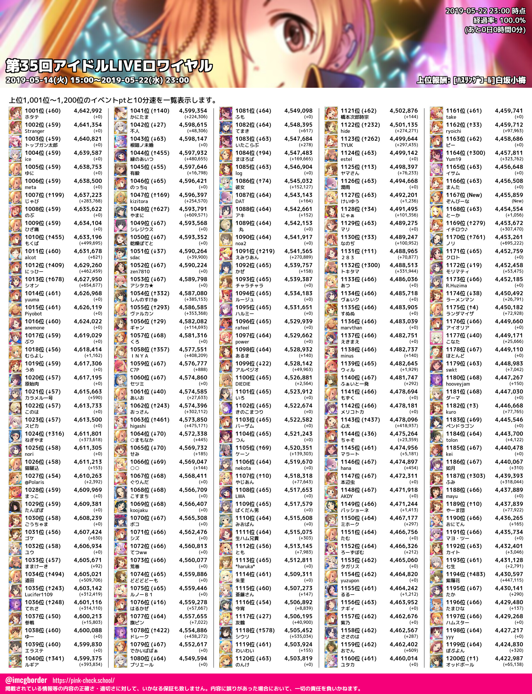 上位プロデューサースコア (2019-05-22 23:00 時点)
