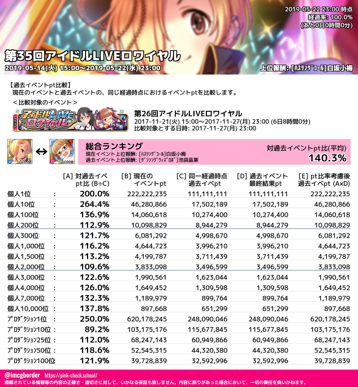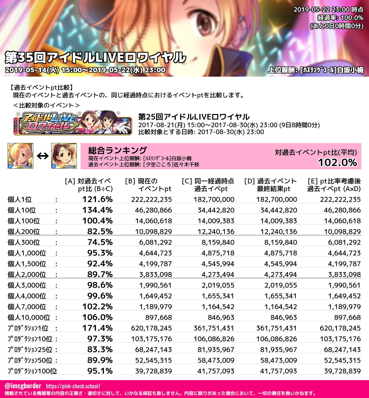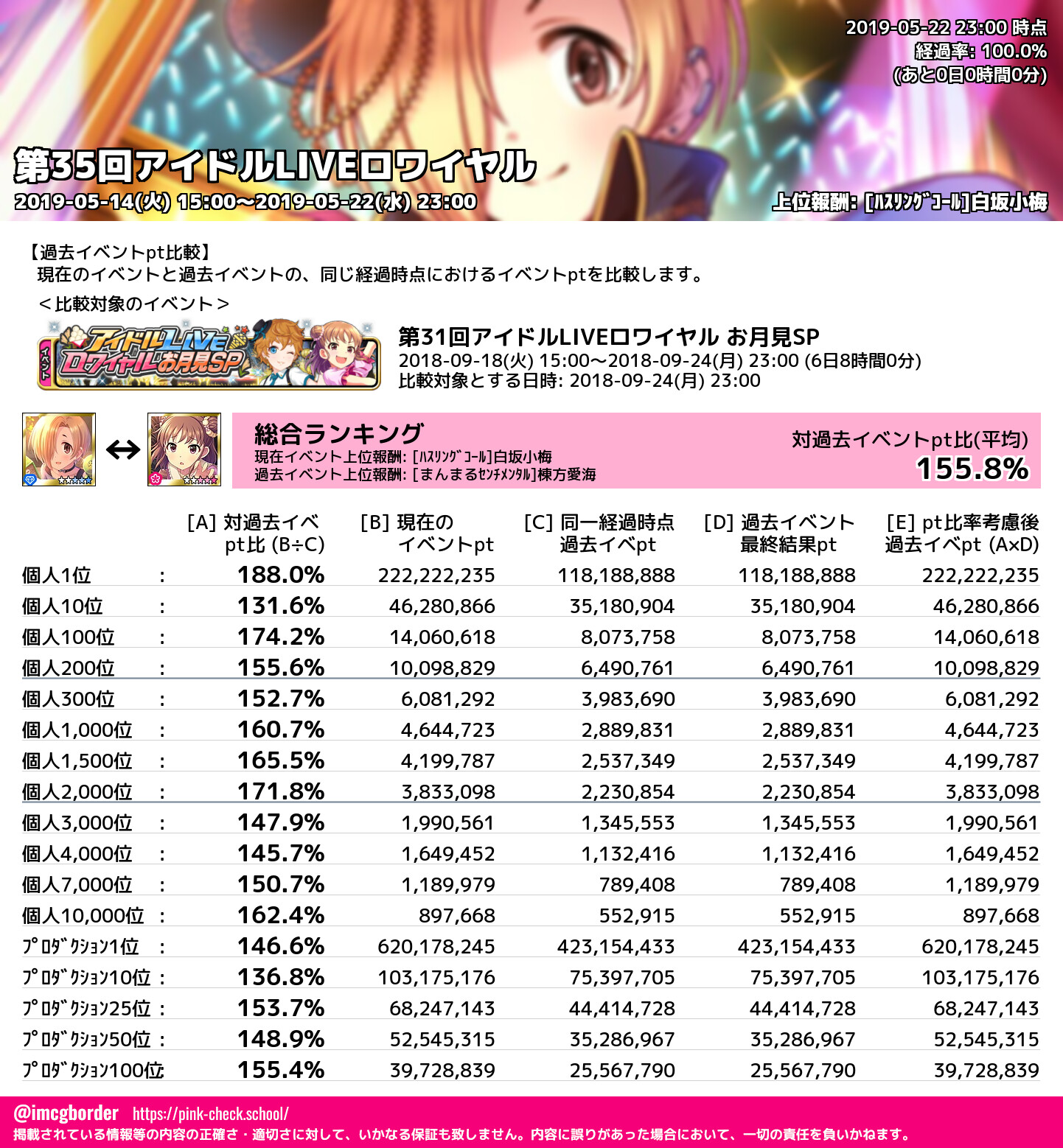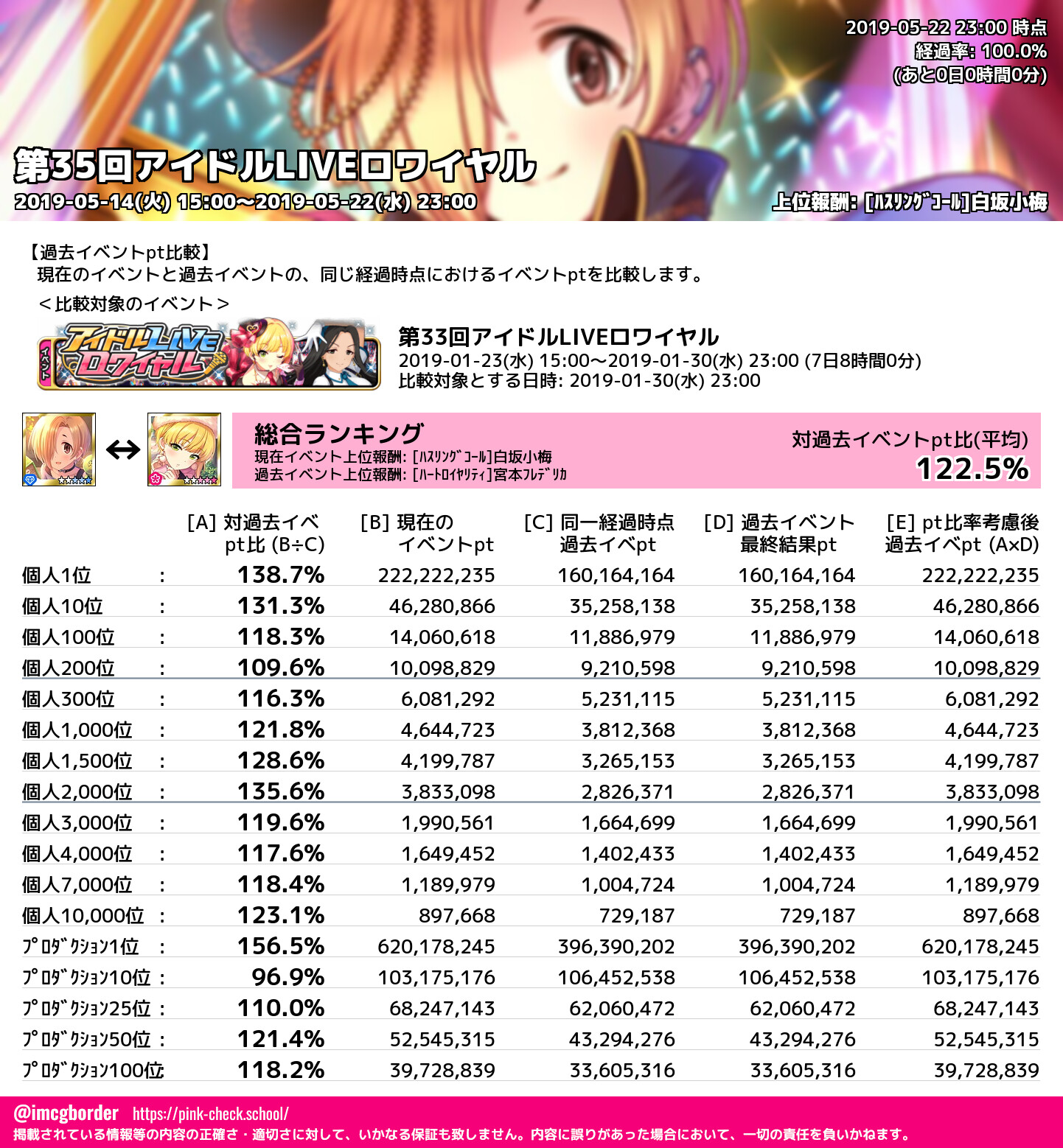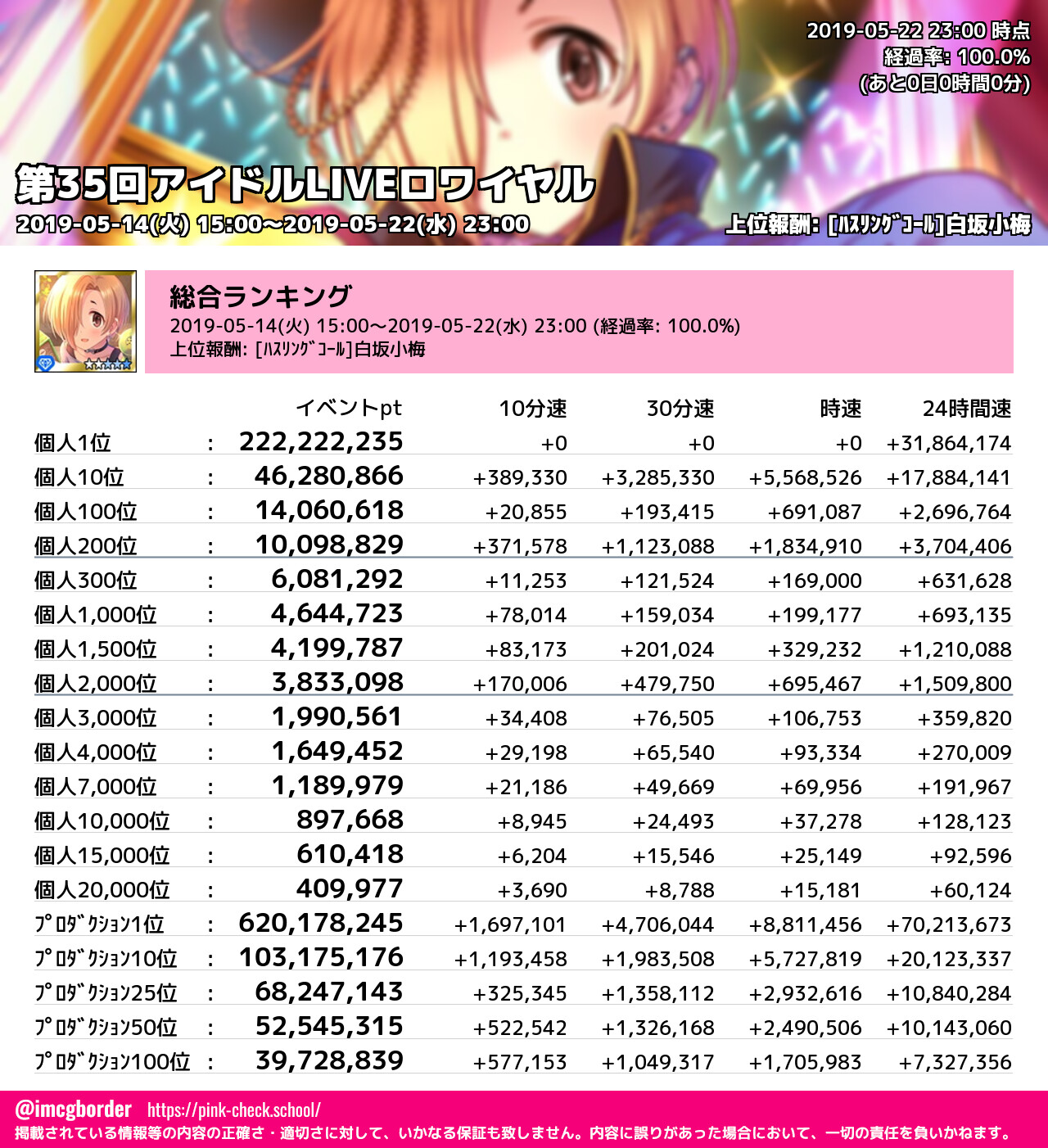 上位プロデューサースコア (2019-05-22 23:00 時点)