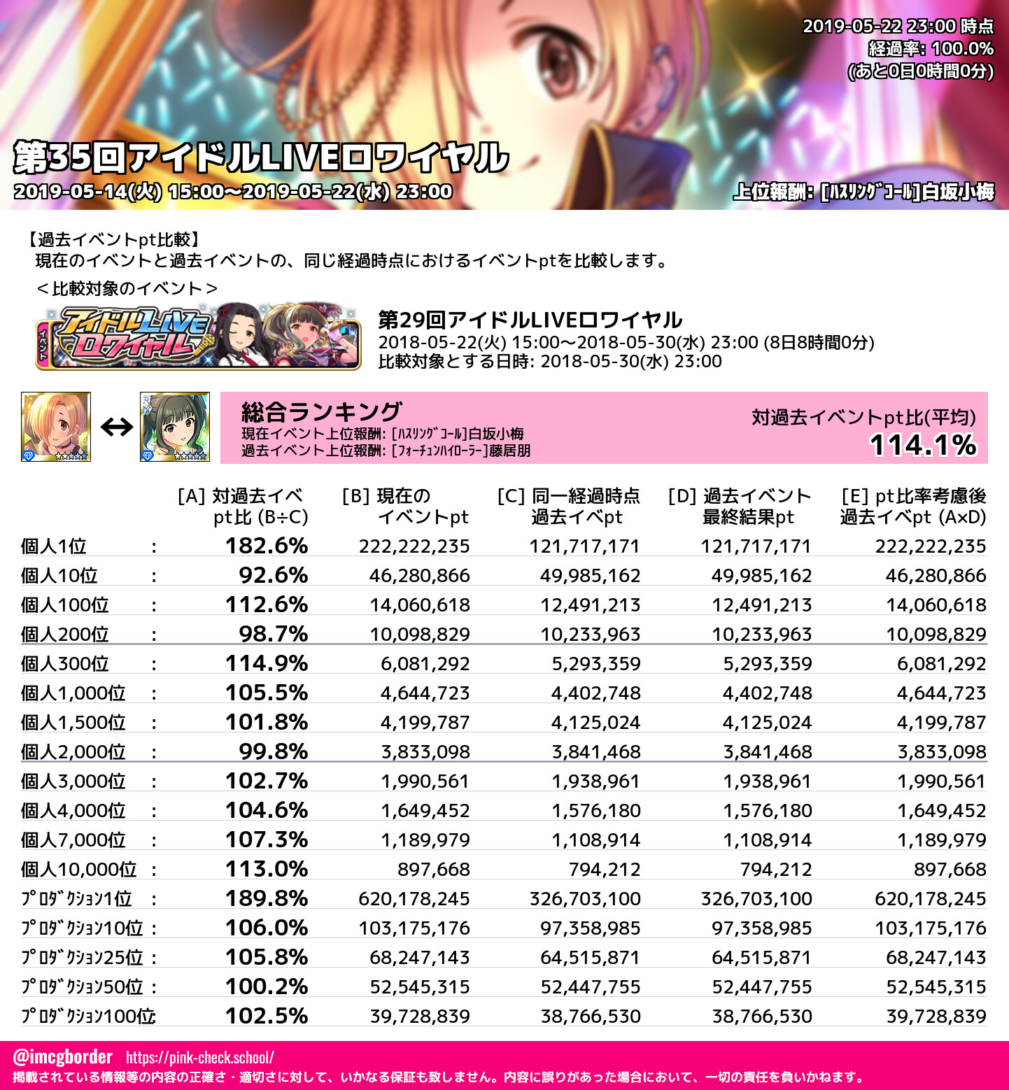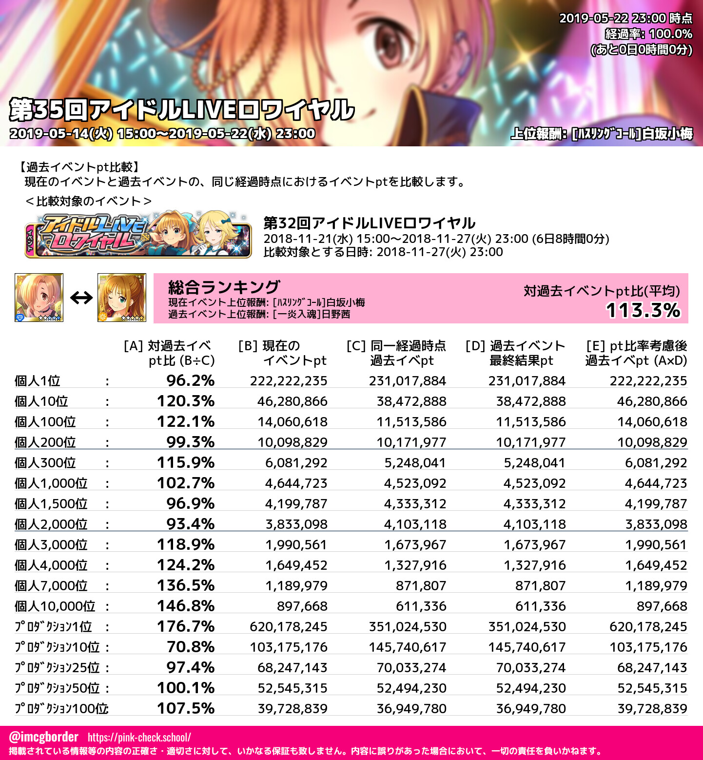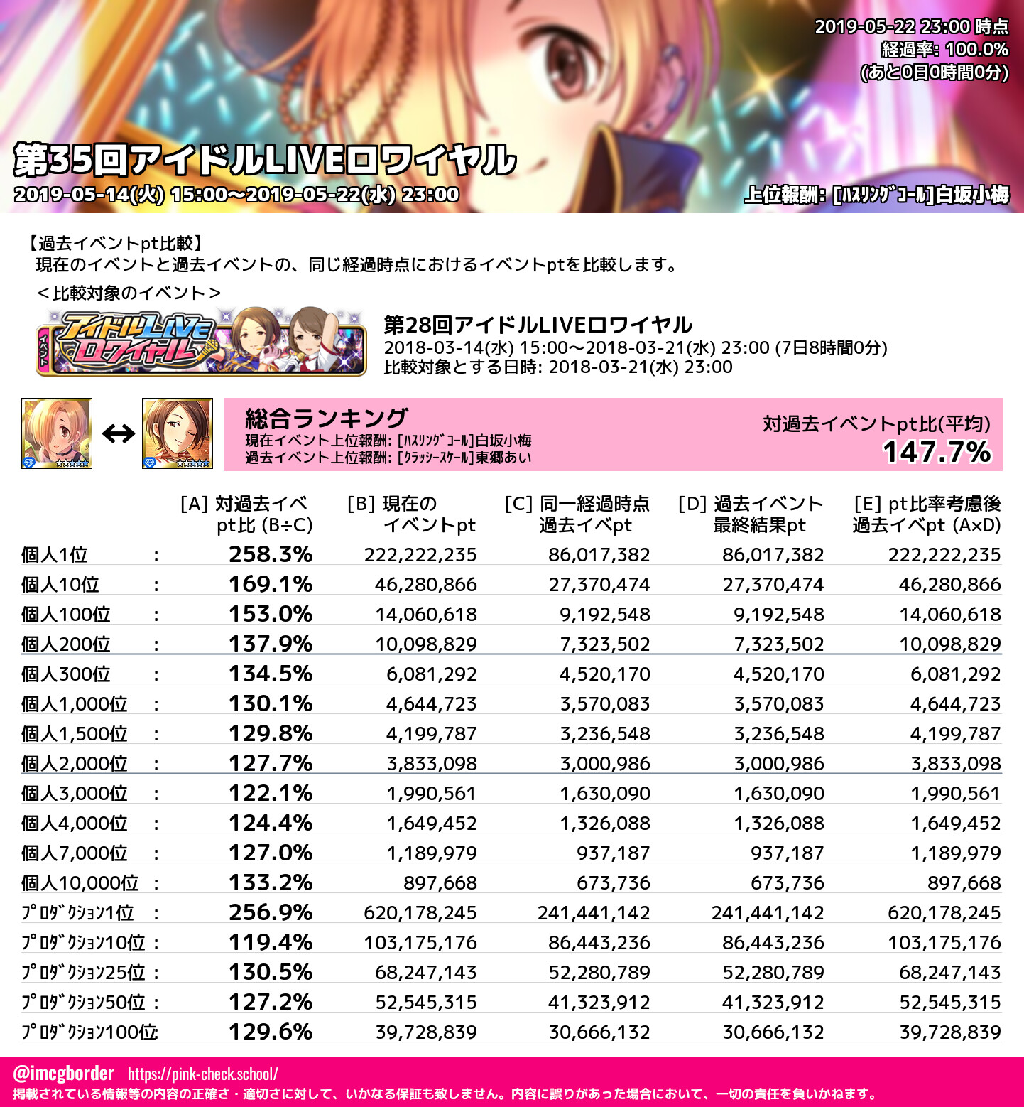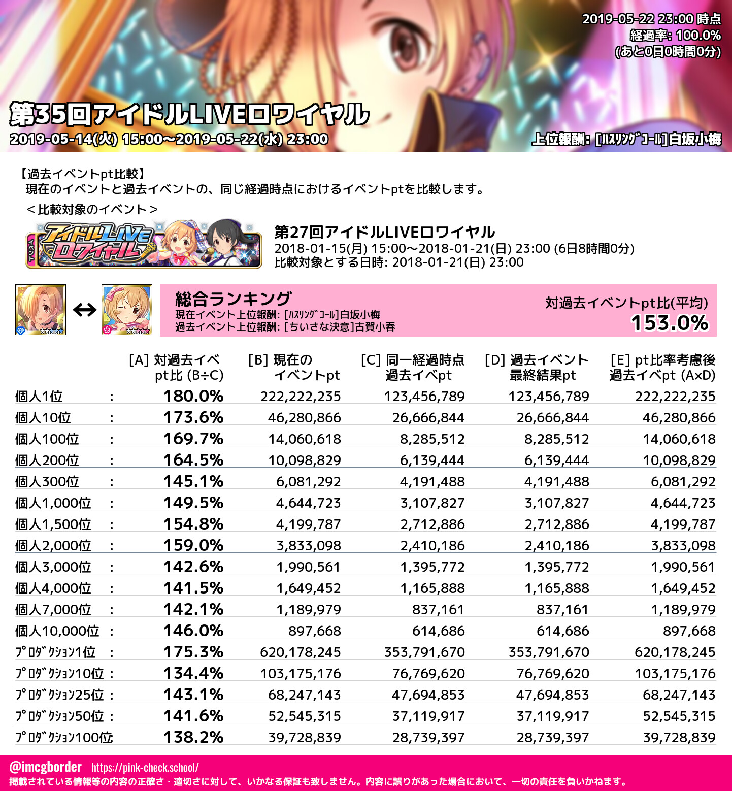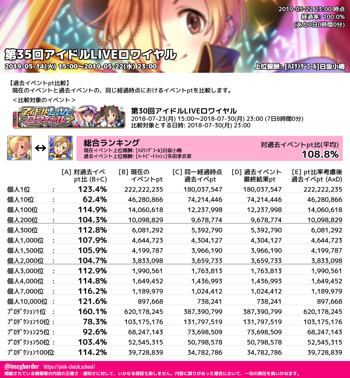 上位プロデューサースコア (2019-05-22 23:00 時点)