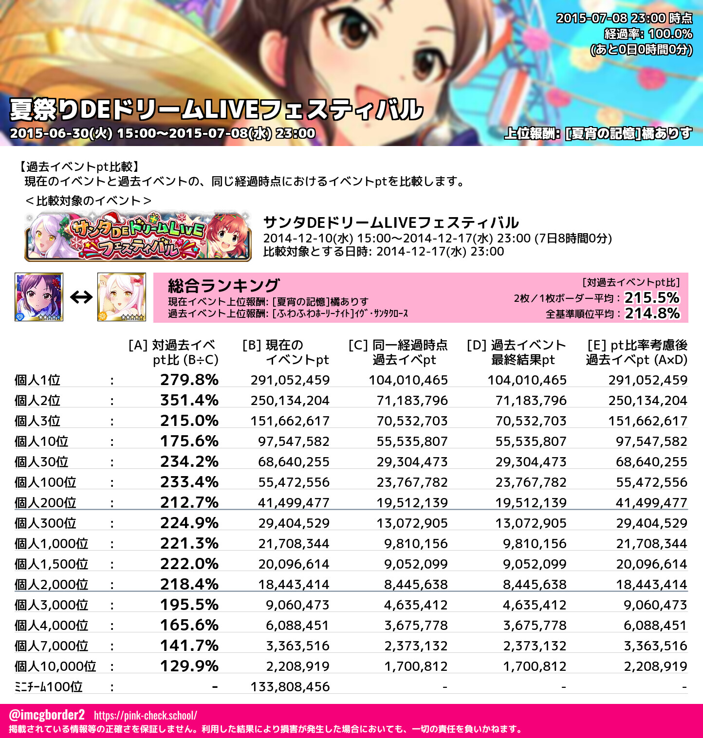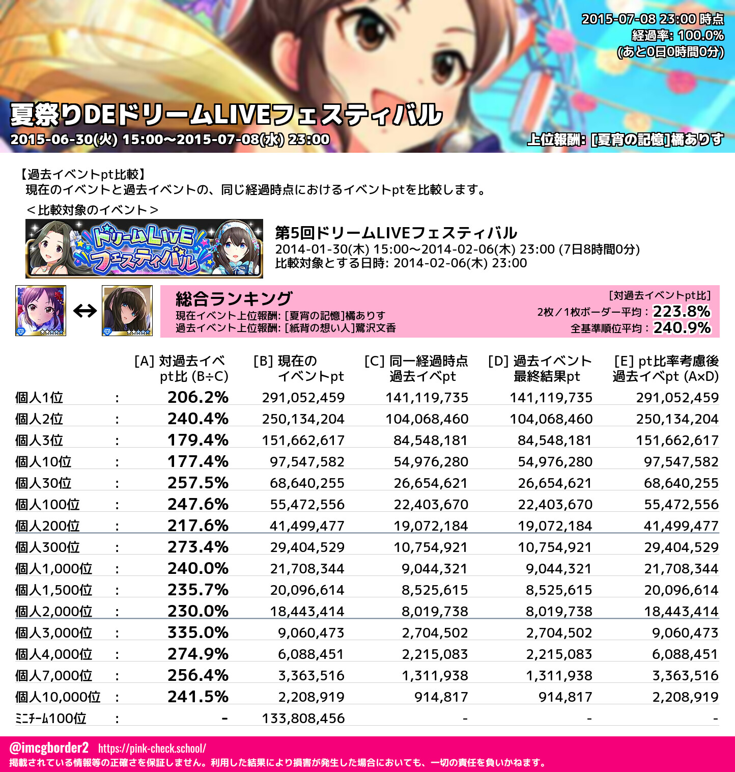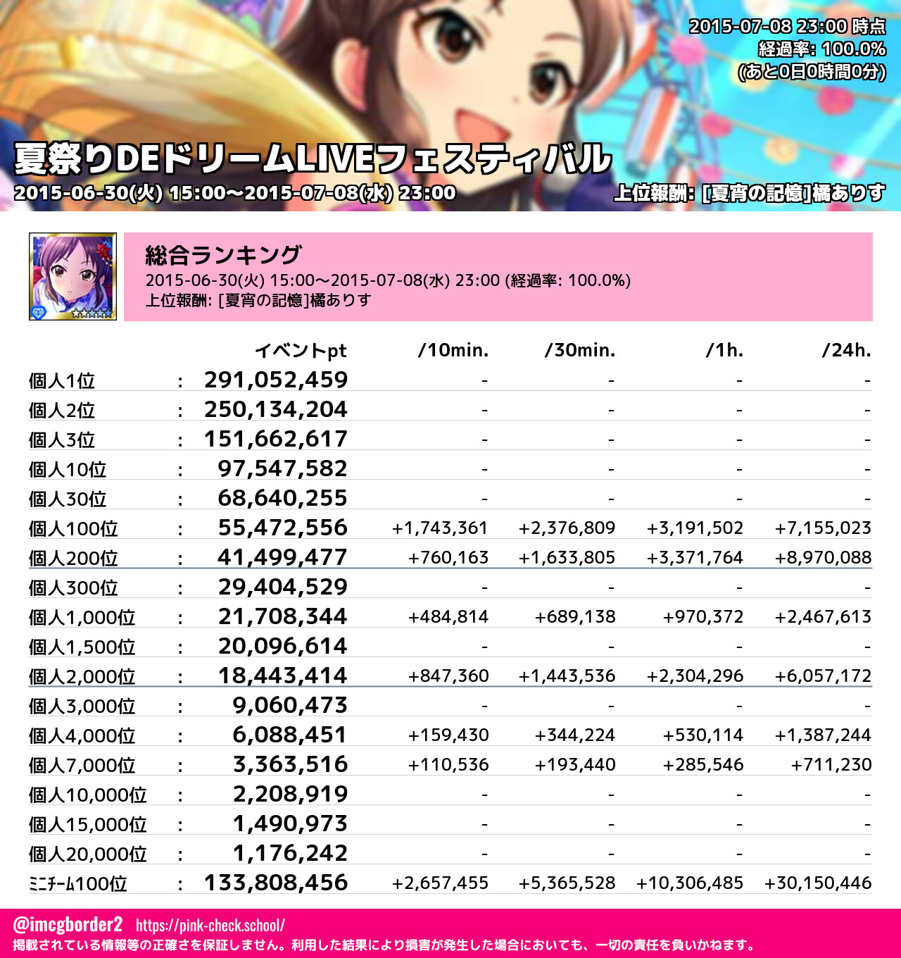 夏祭りDEドリームLIVEフェスティバル 結果集計完了