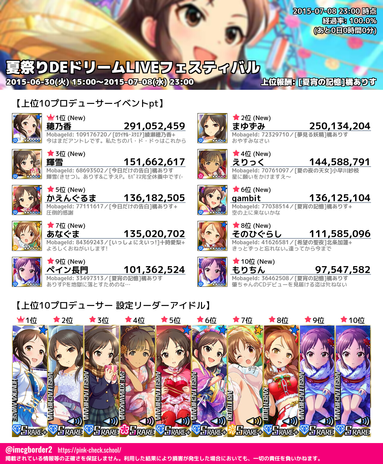 上位プロデューサースコア (2015-07-08 23:00 時点)