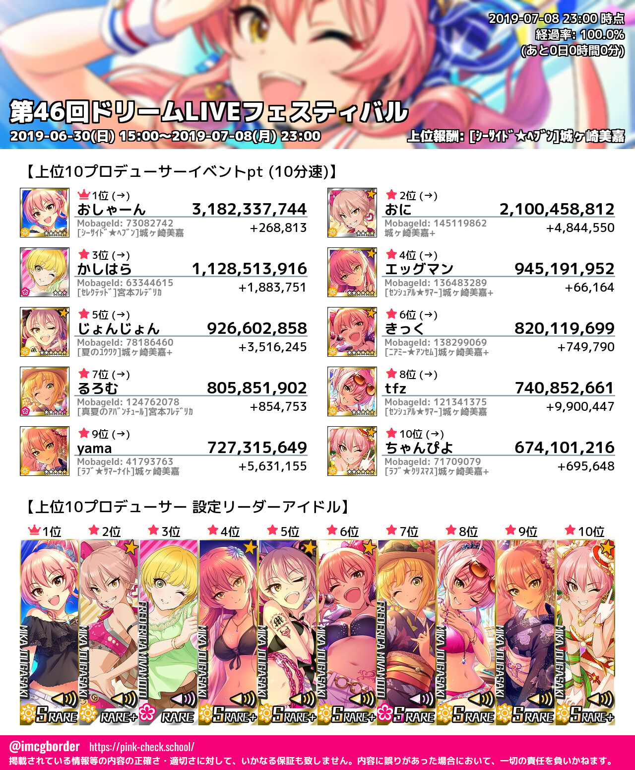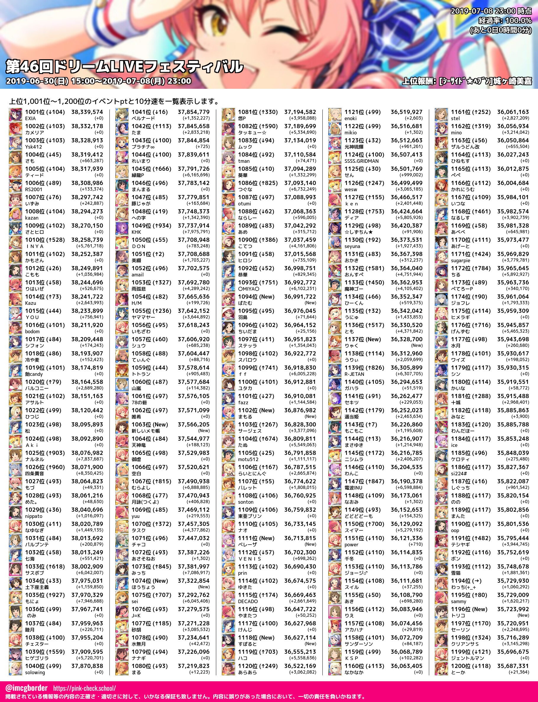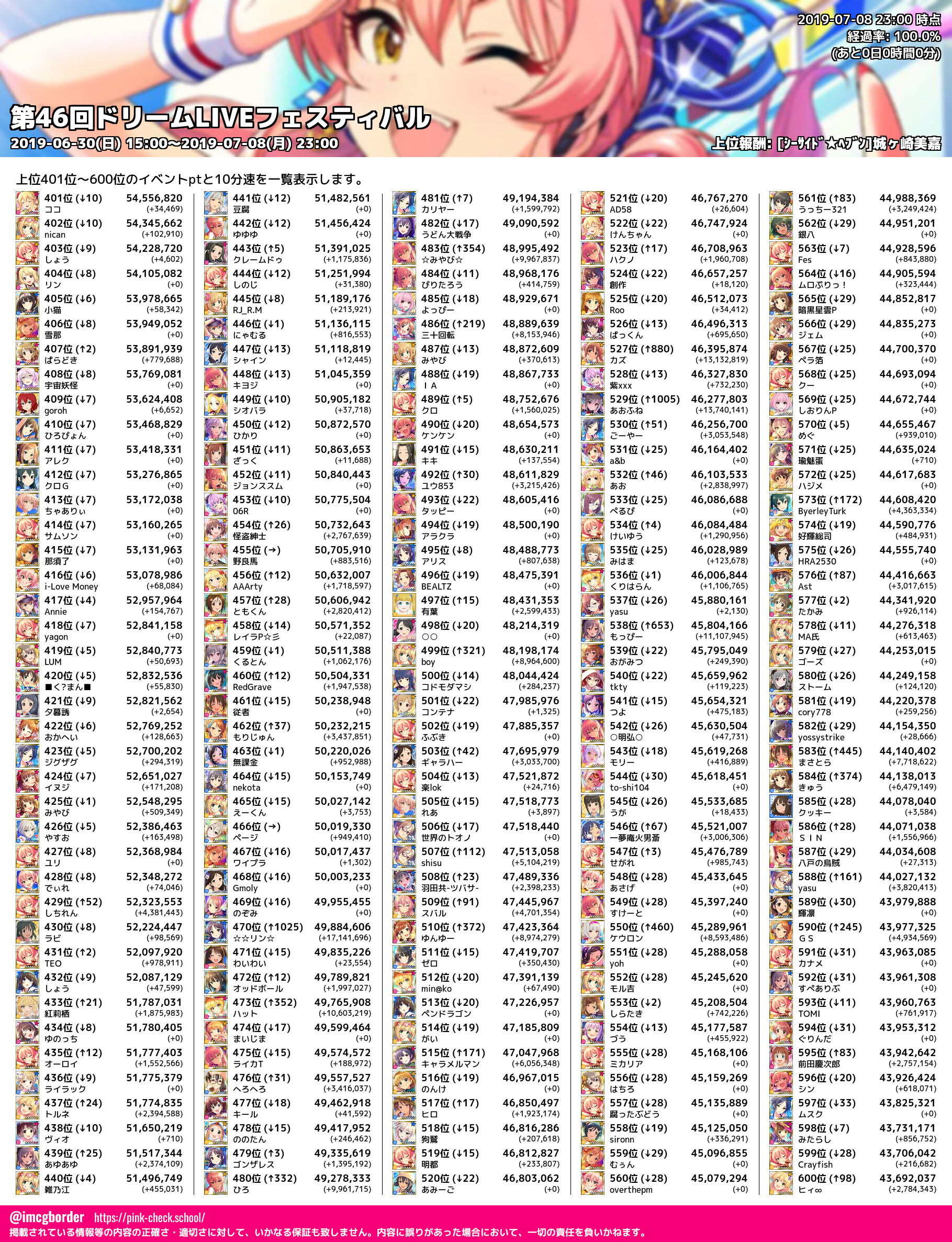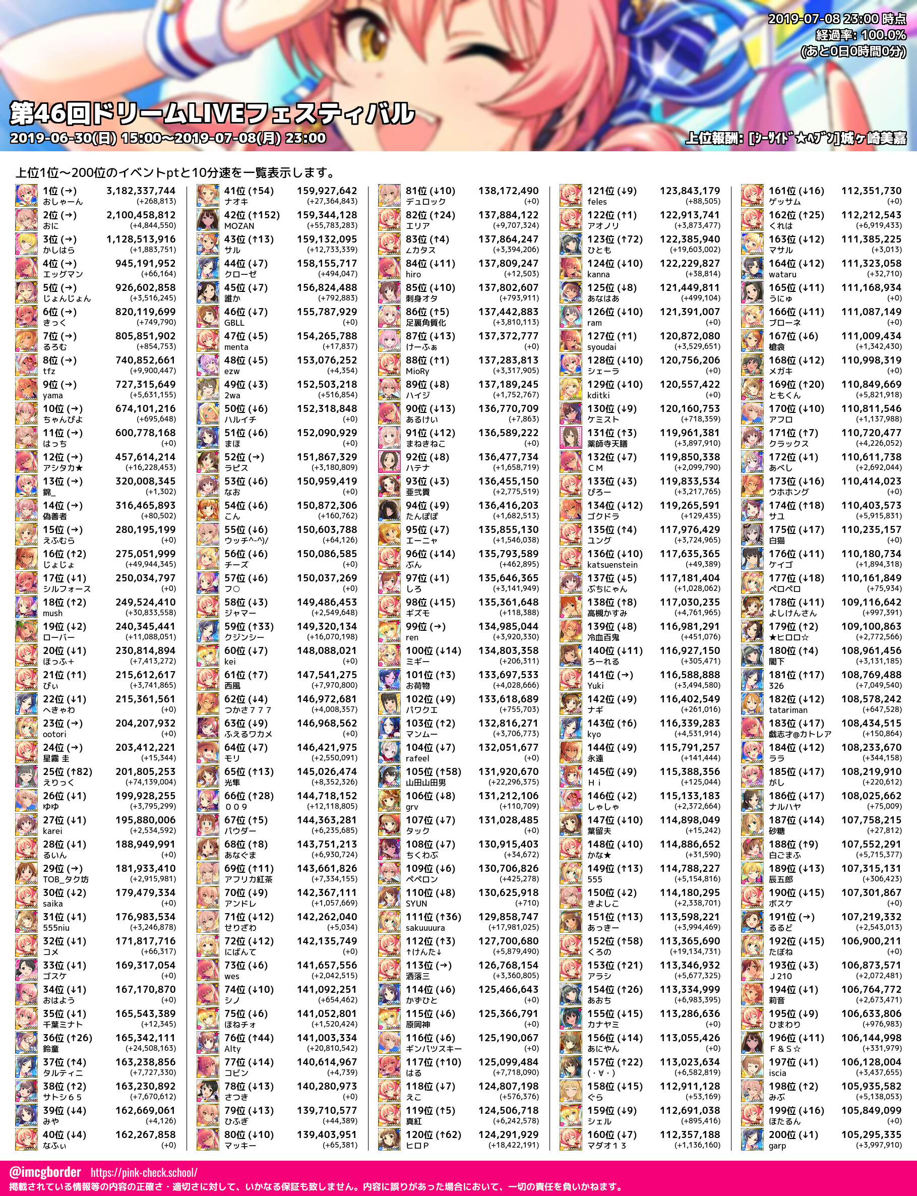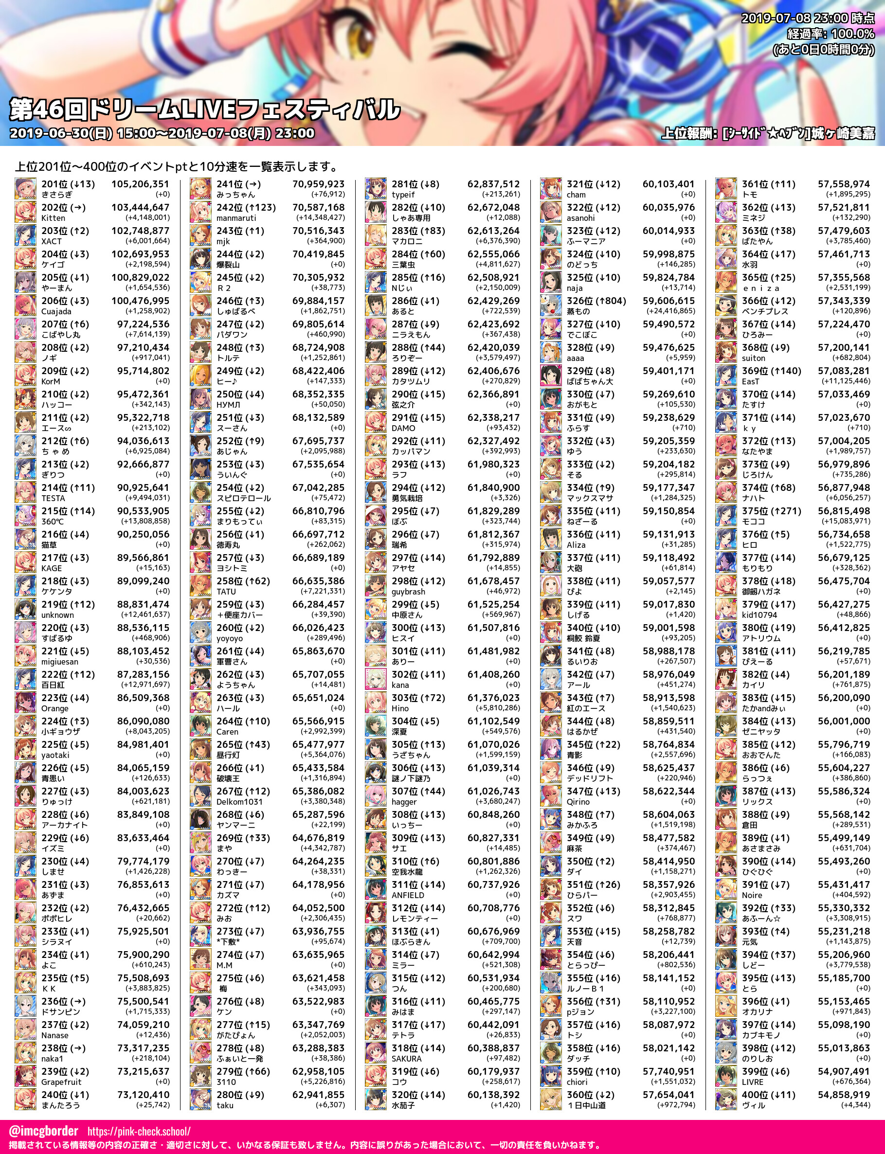 上位プロデューサースコア (2019-07-08 23:00 時点)
