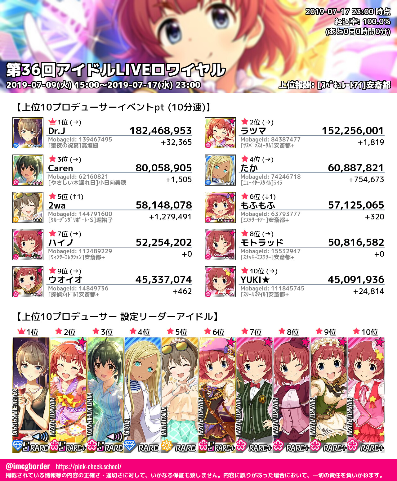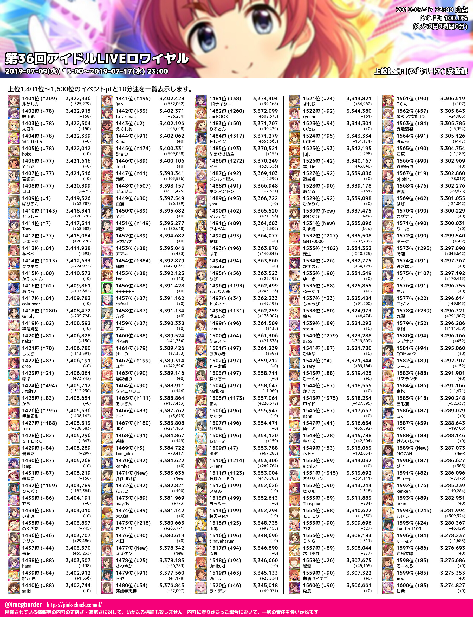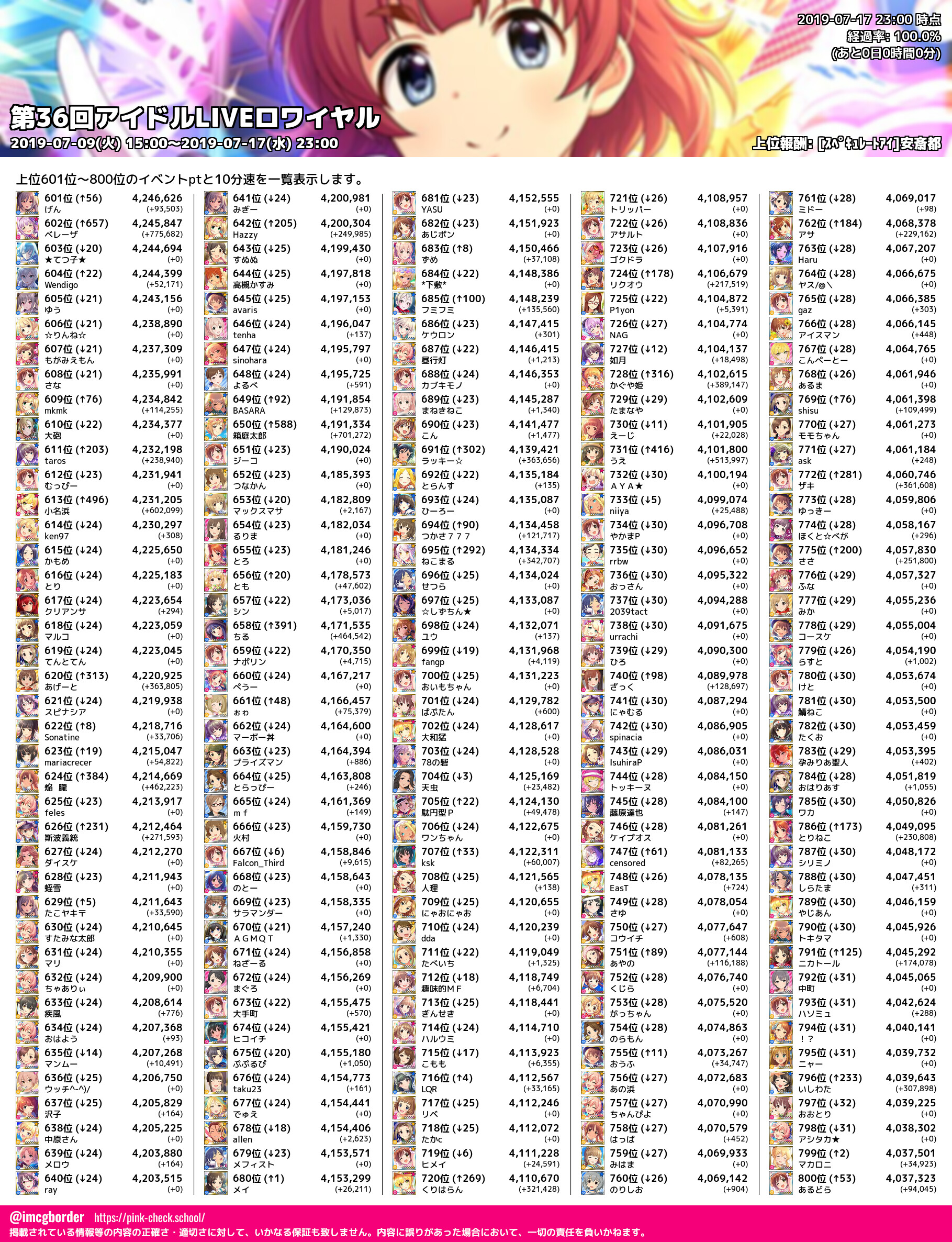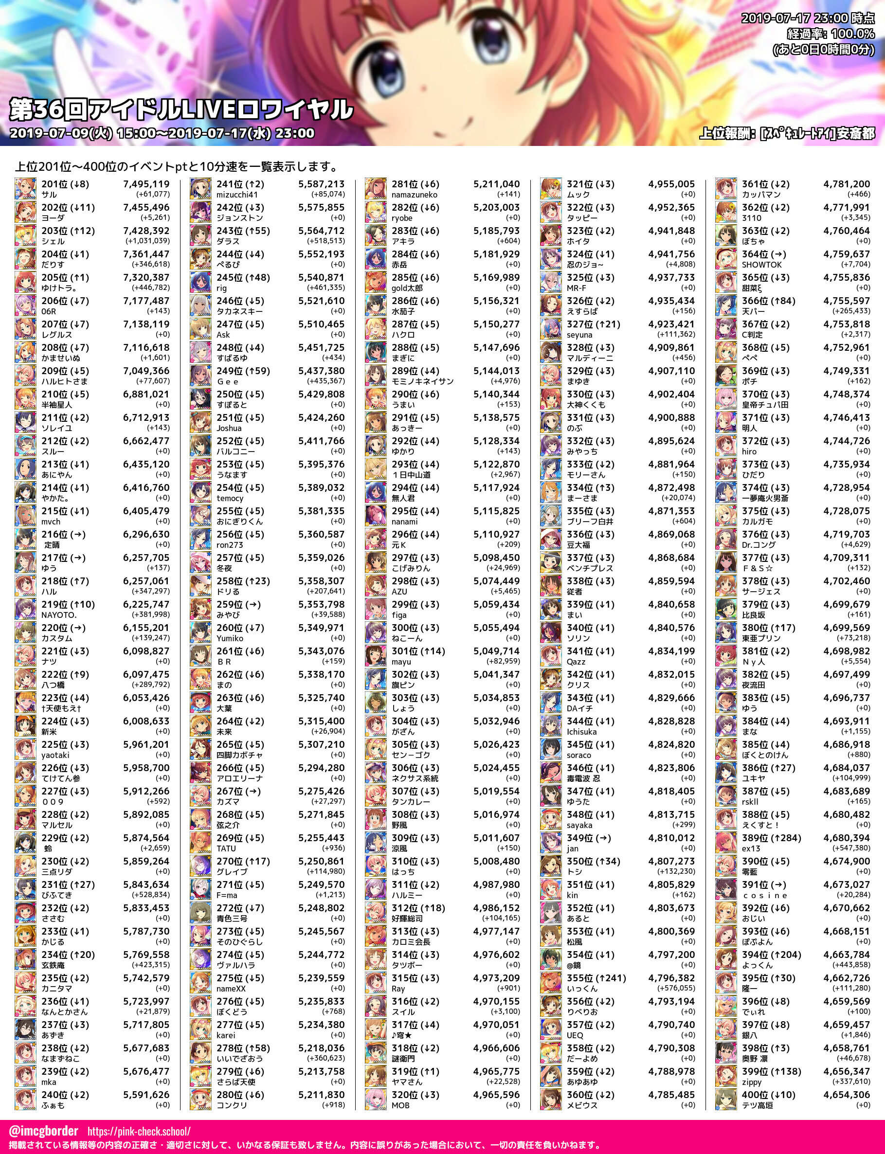 上位プロデューサースコア (2019-07-17 23:00 時点)