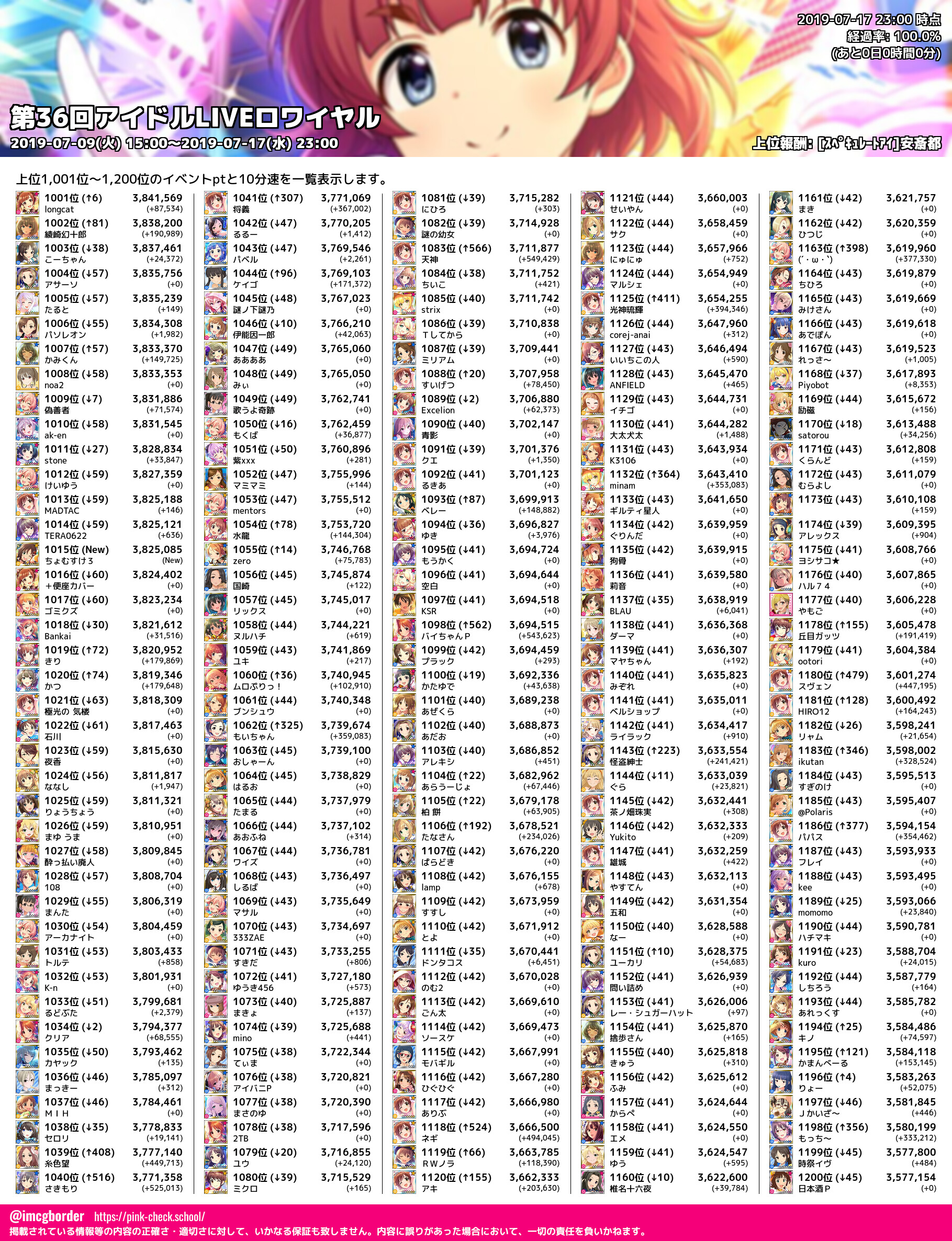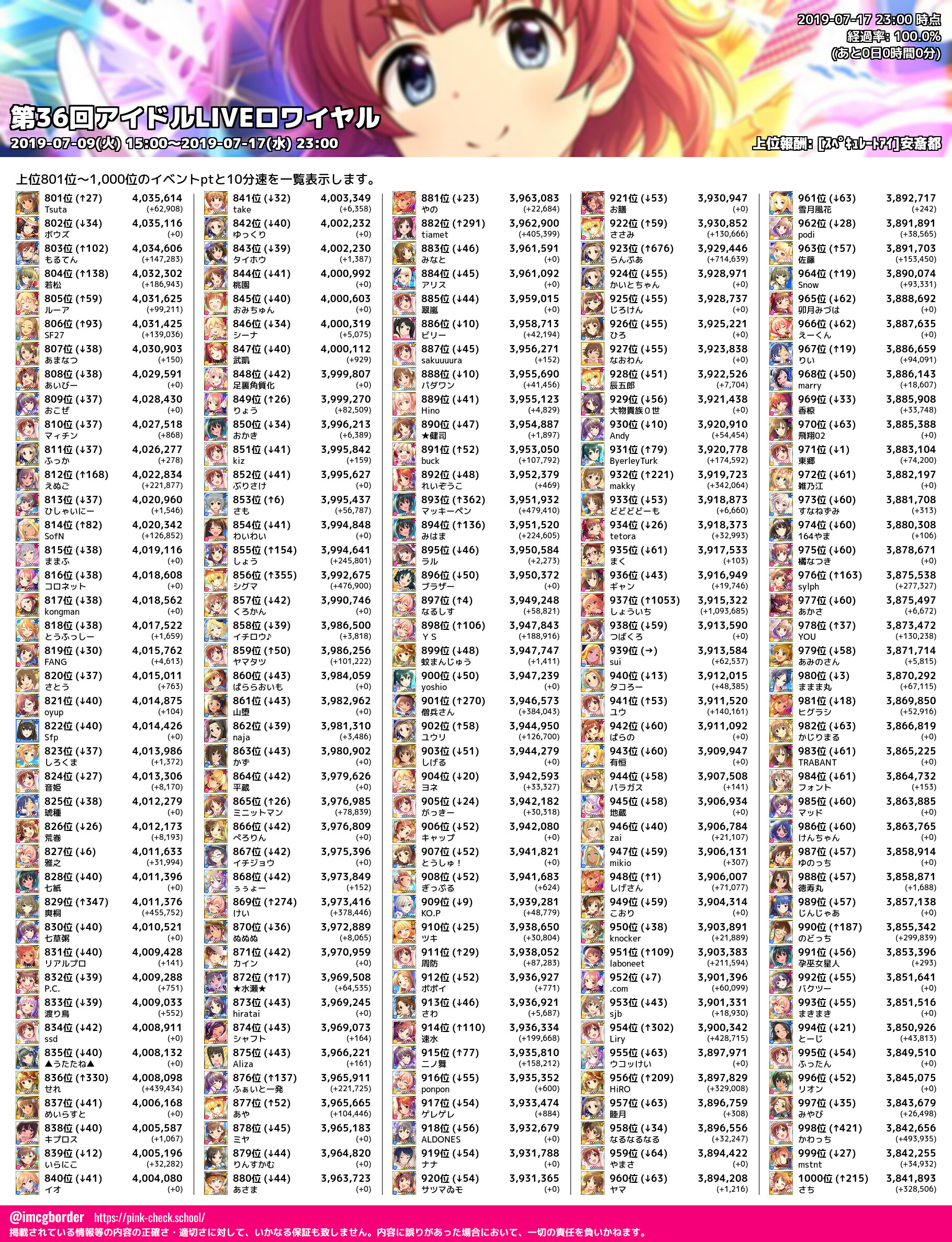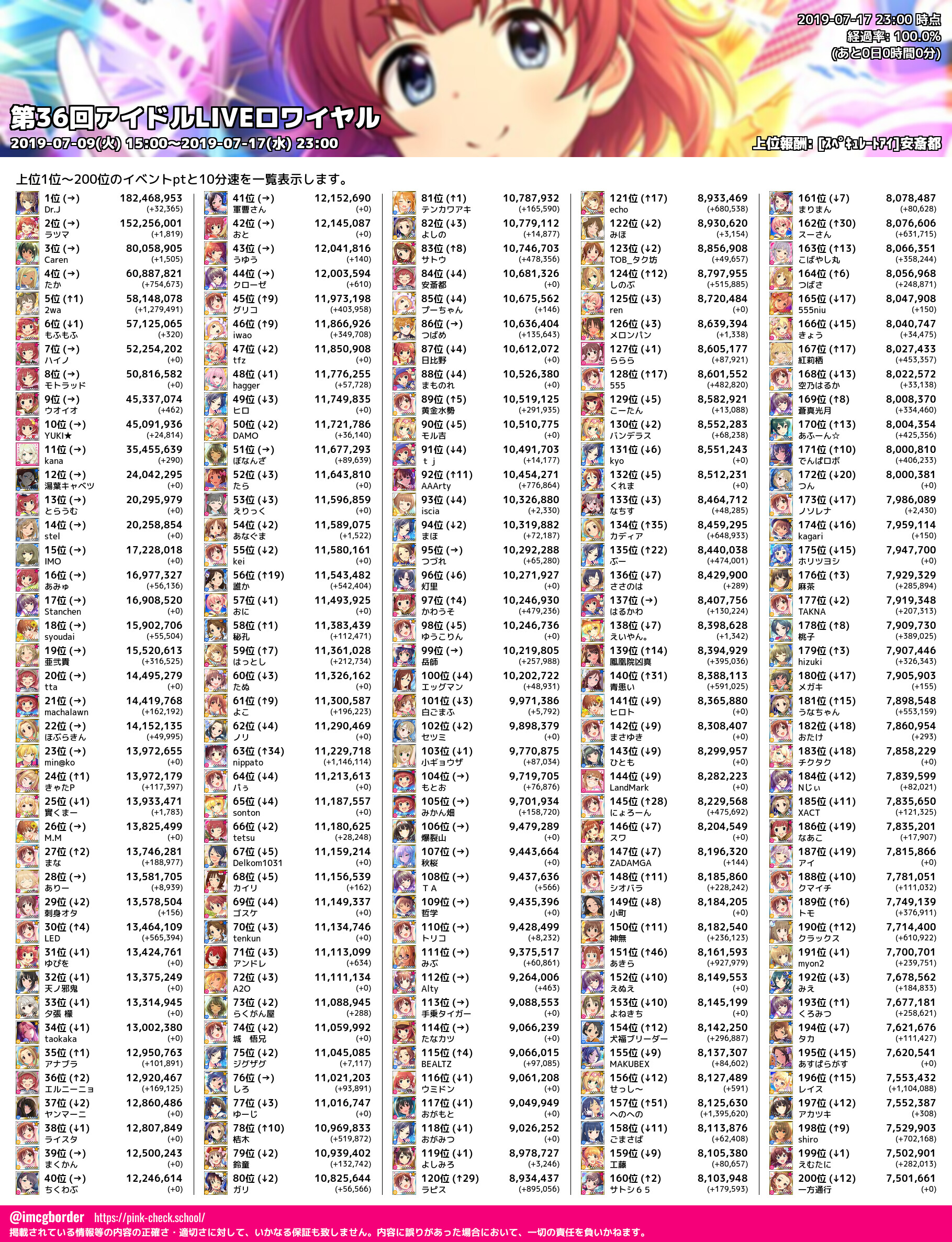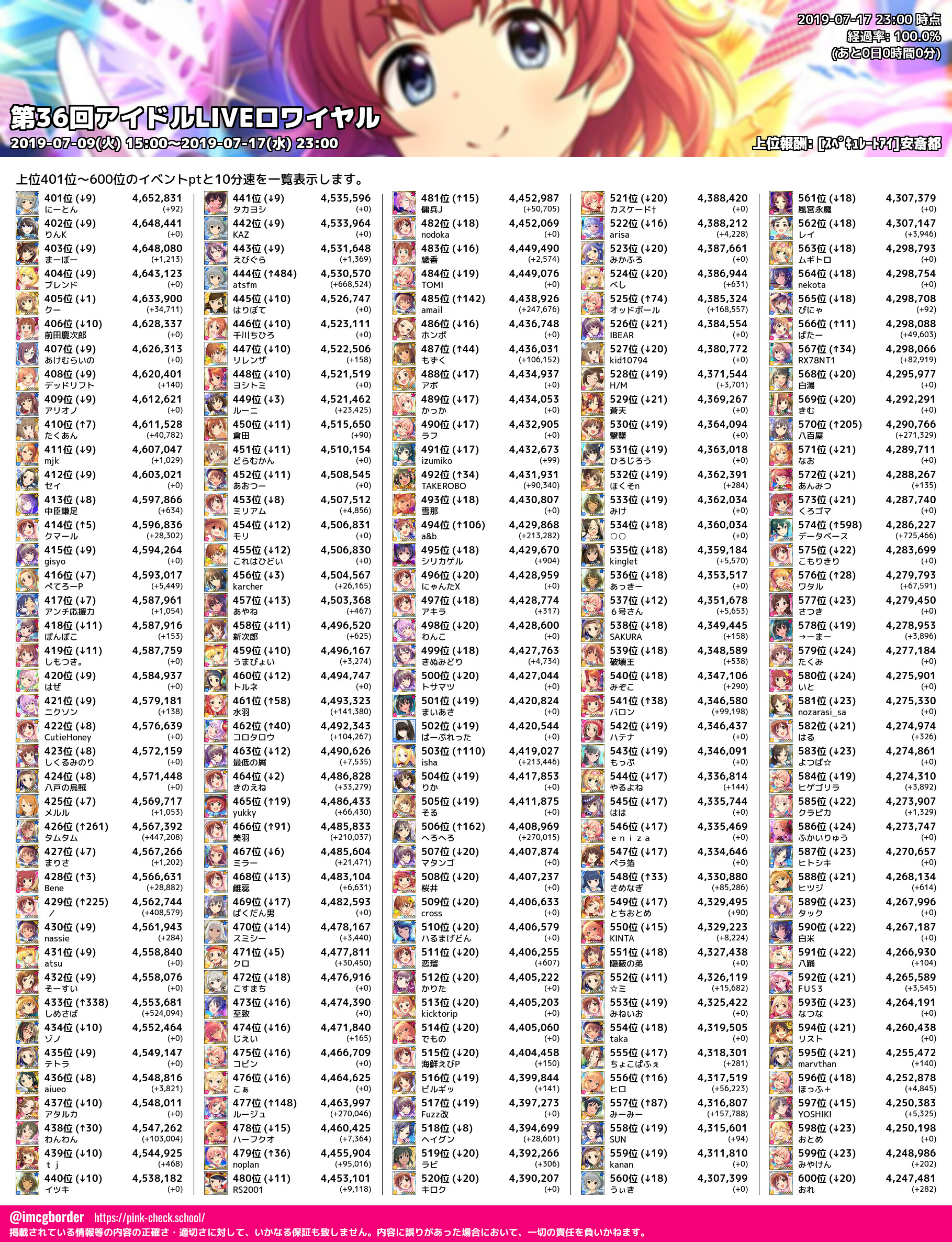 上位プロデューサースコア (2019-07-17 23:00 時点)