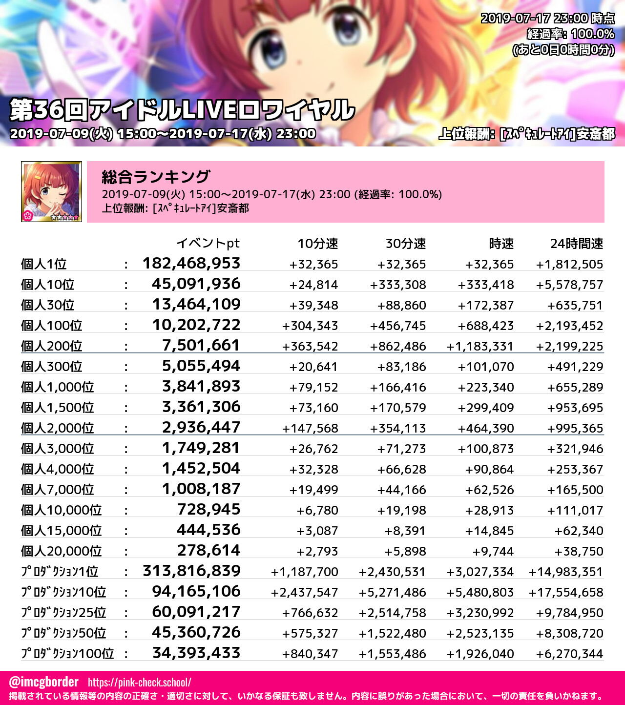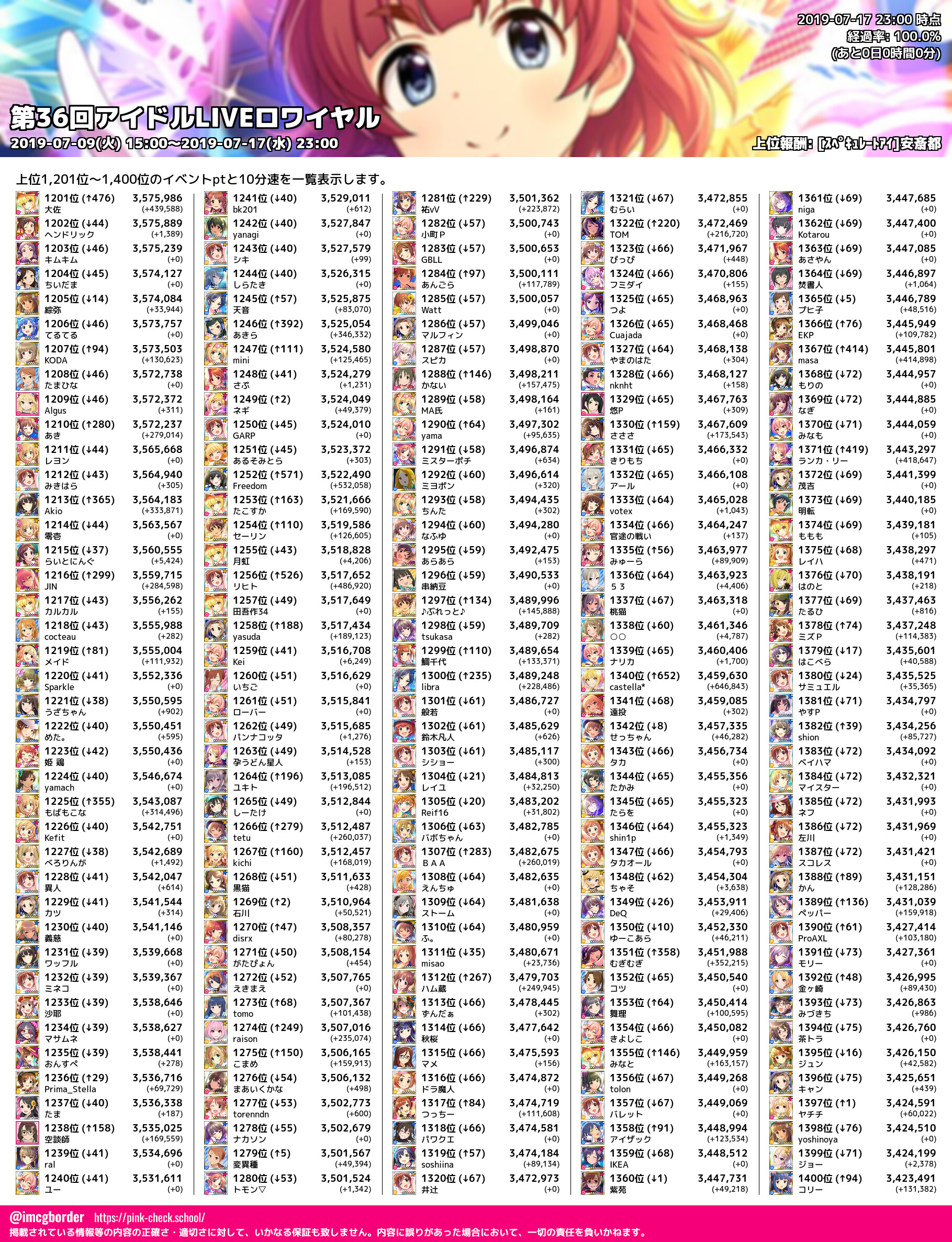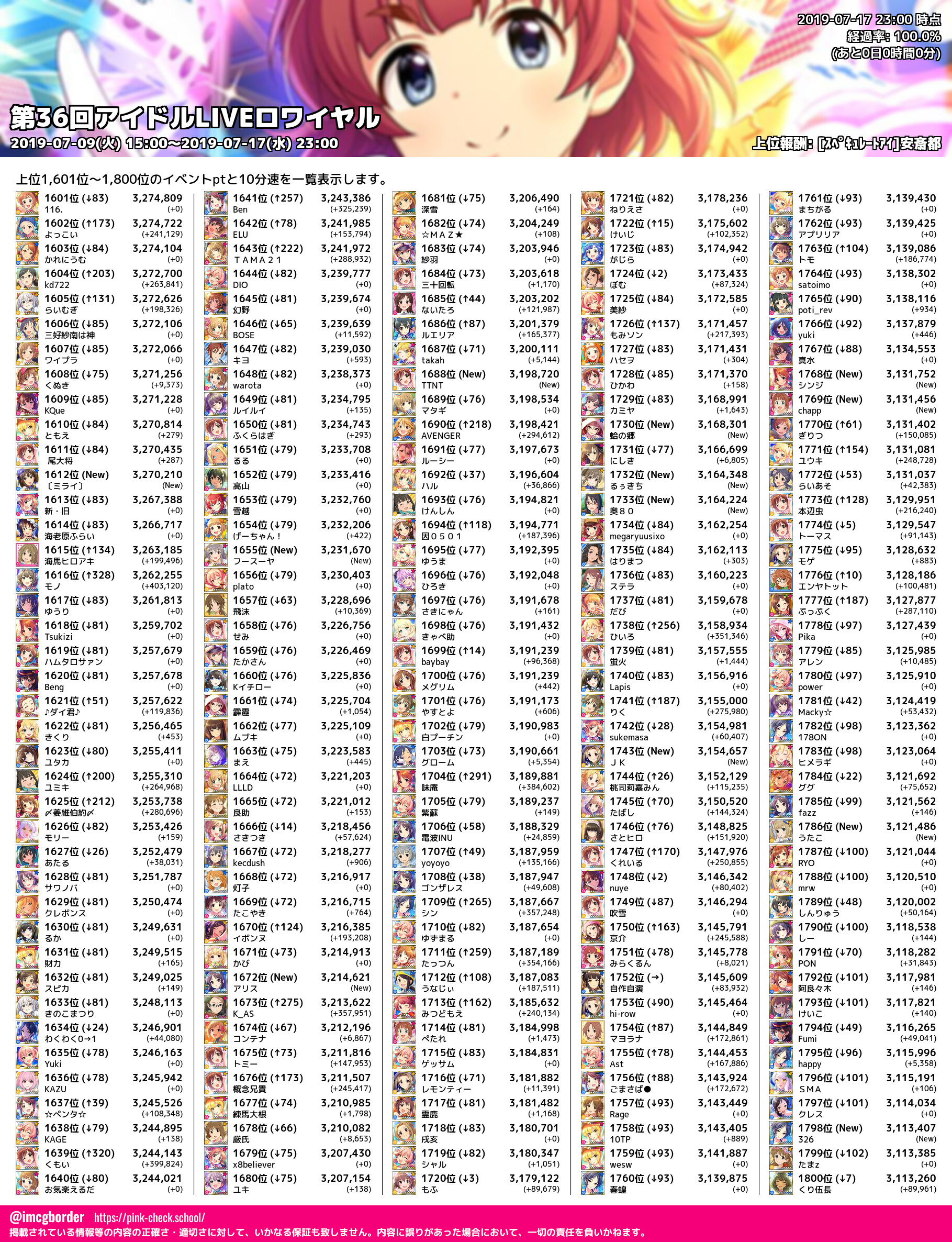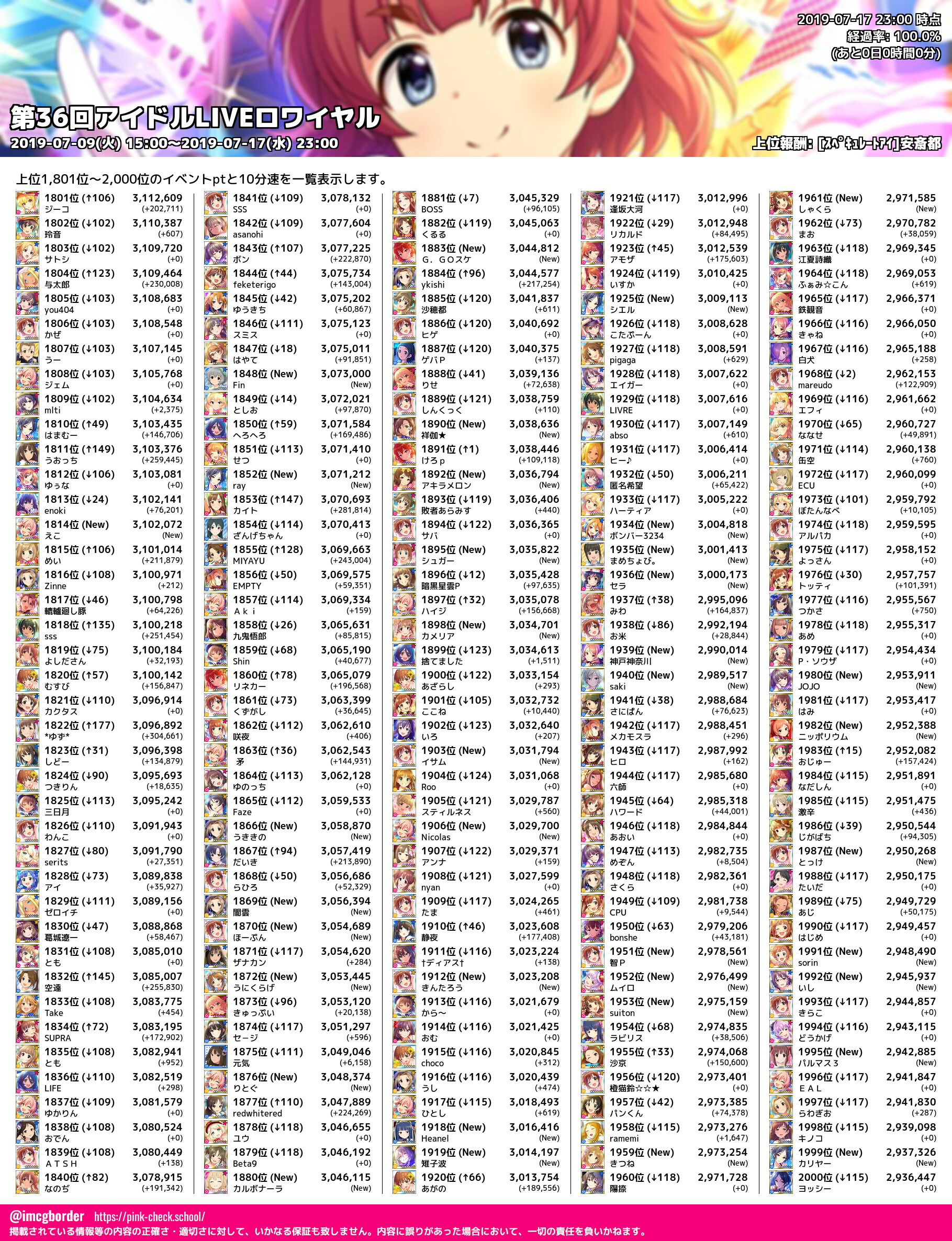 上位プロデューサースコア (2019-07-17 23:00 時点)