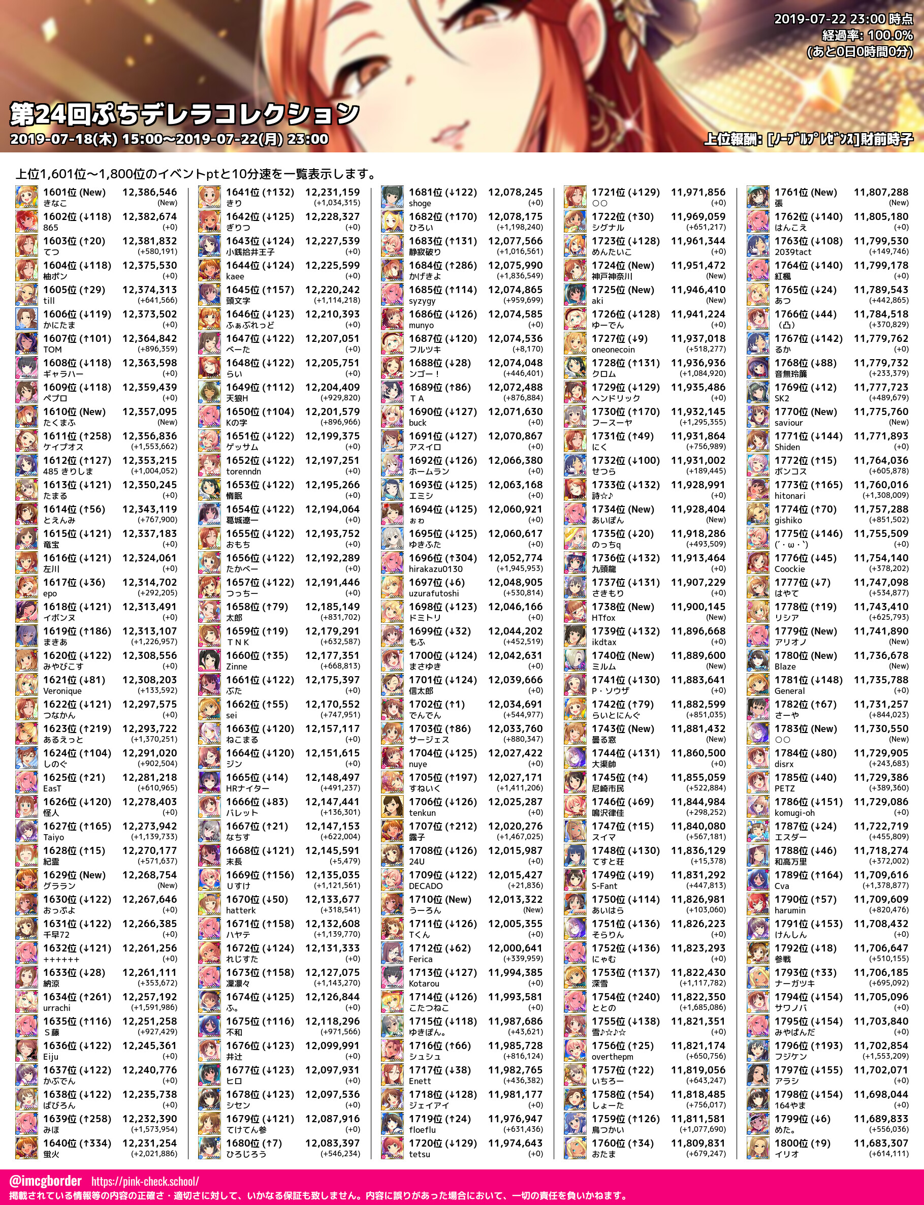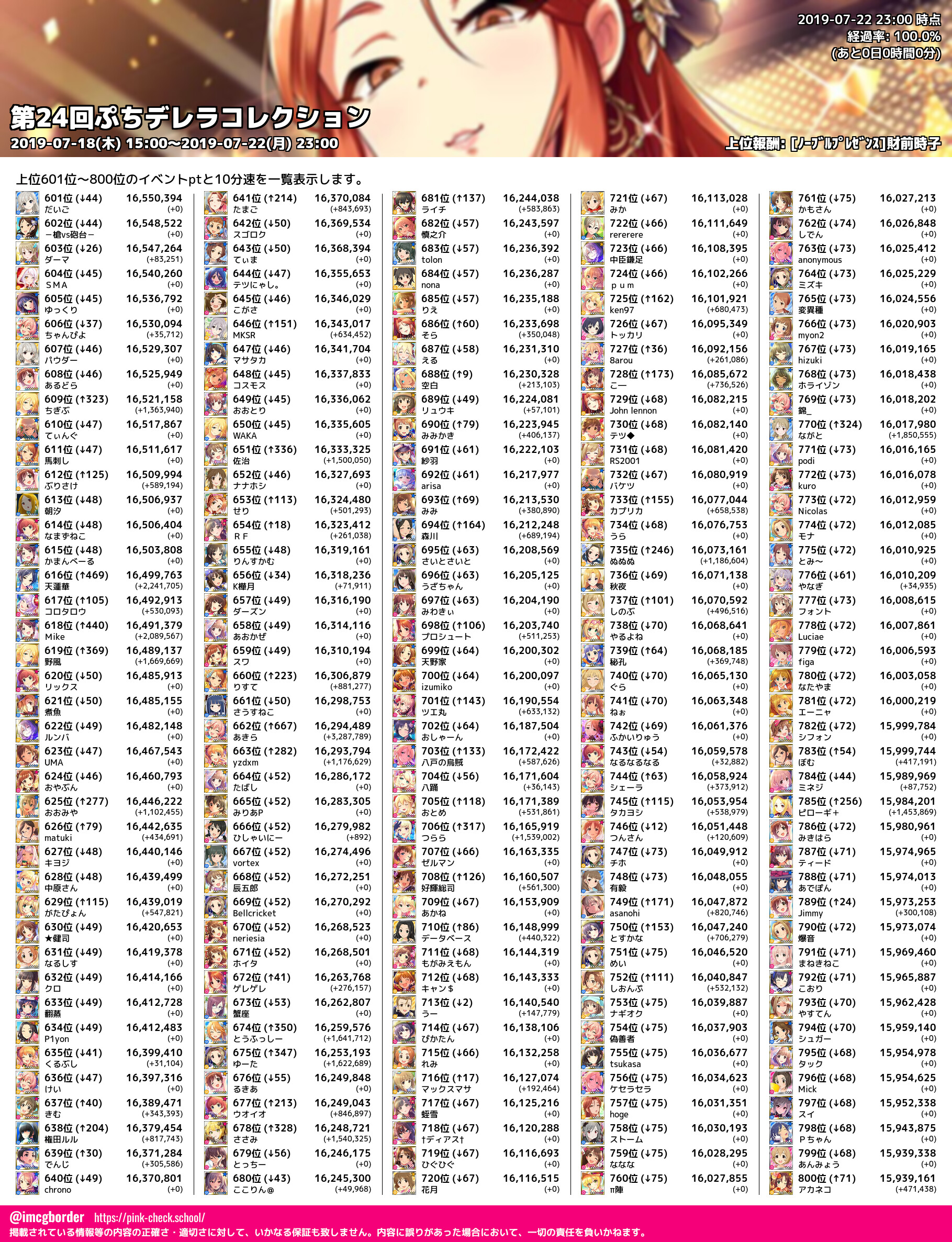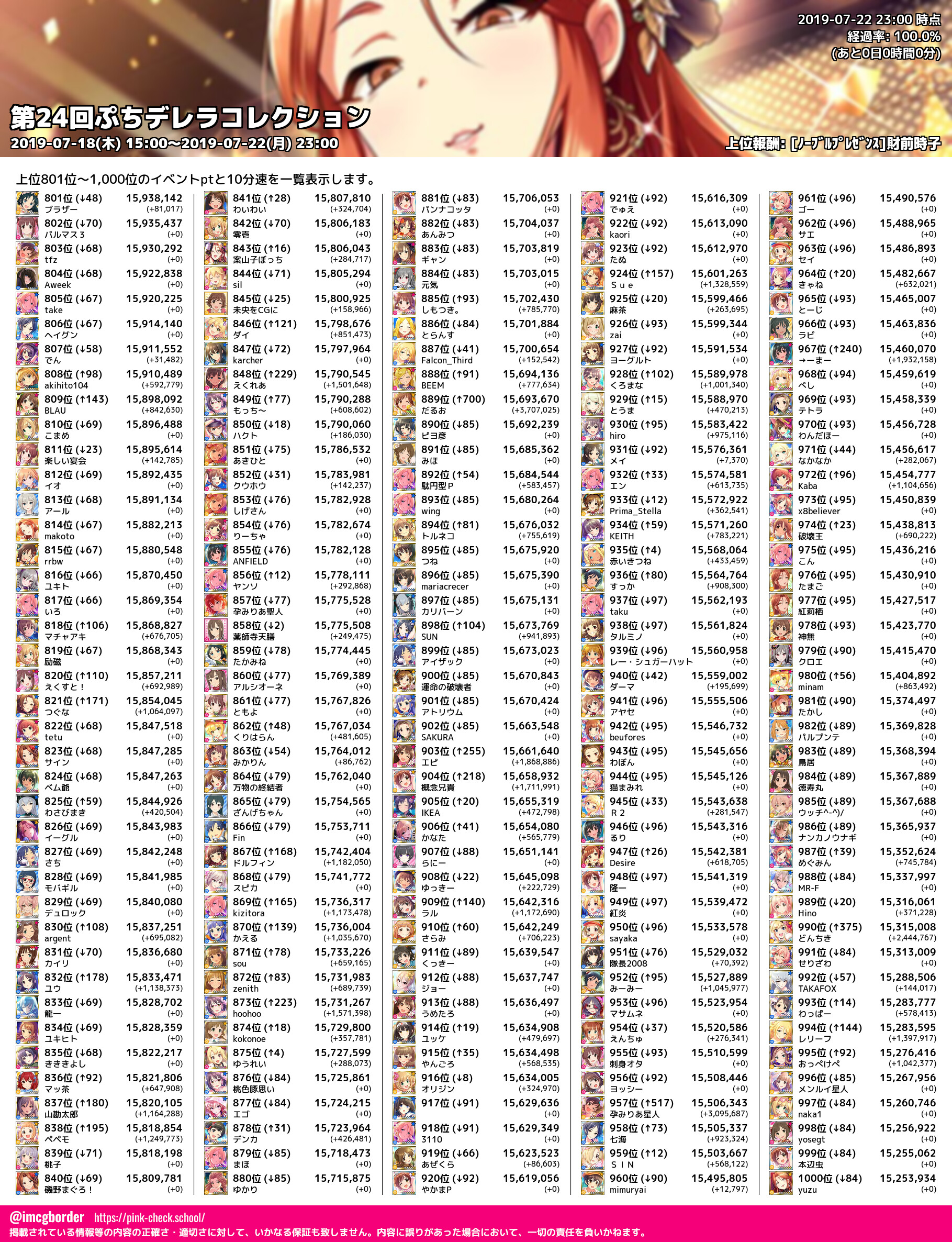 上位プロデューサースコア (2019-07-22 23:00 時点)