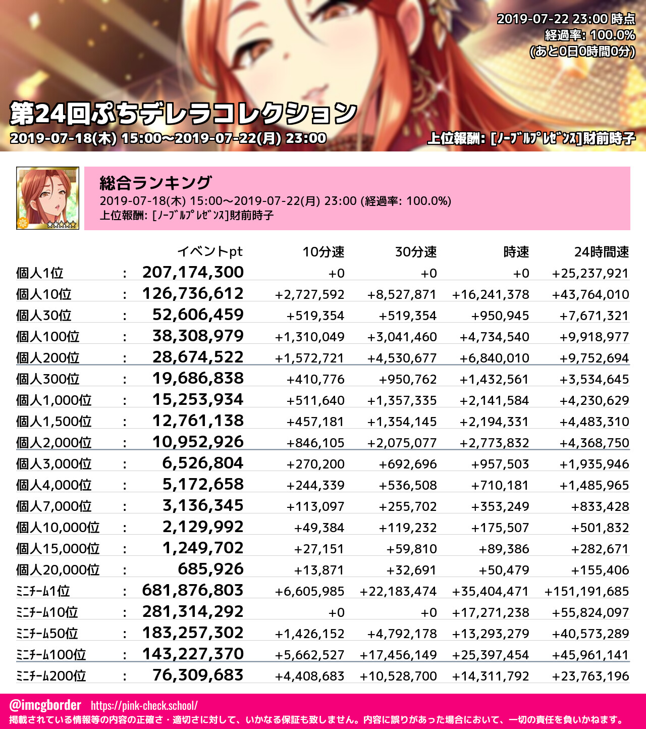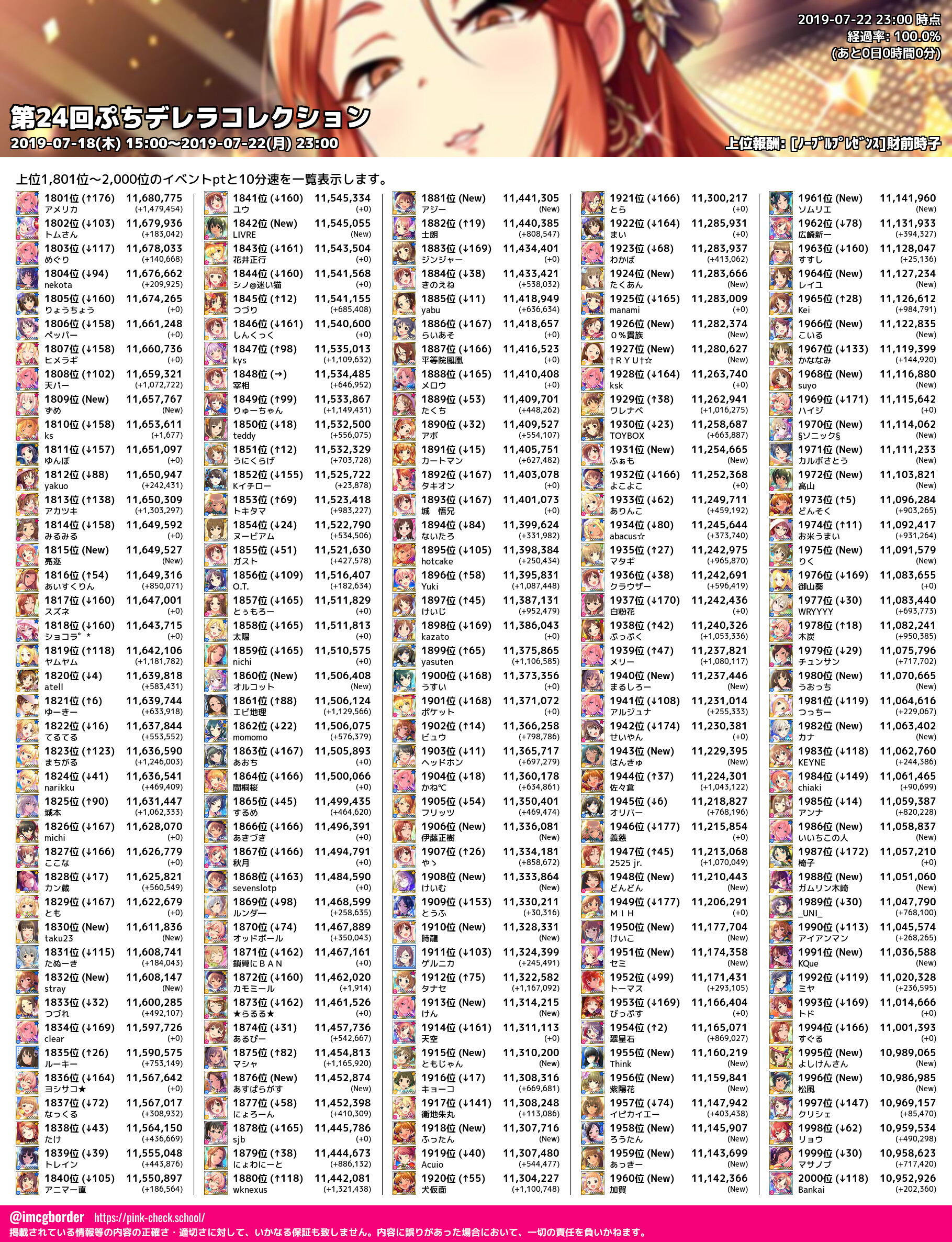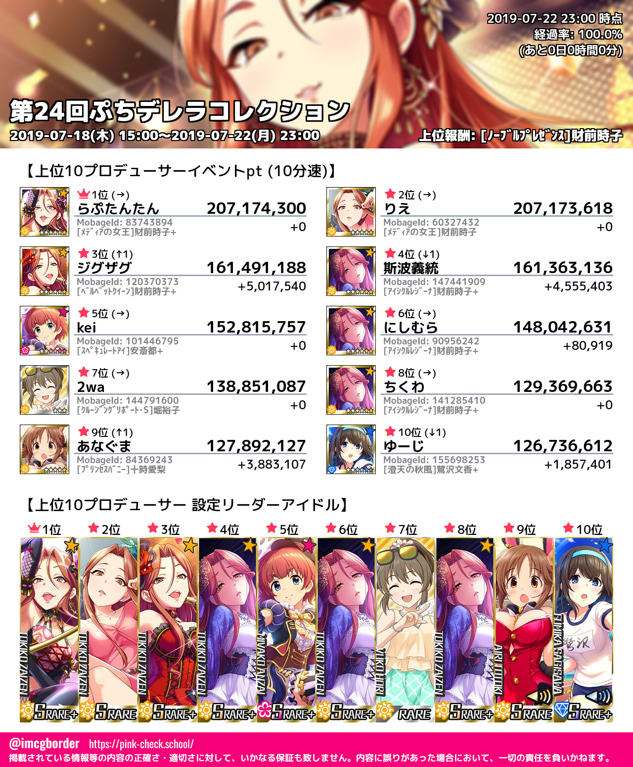 上位プロデューサースコア (2019-07-22 23:00 時点)