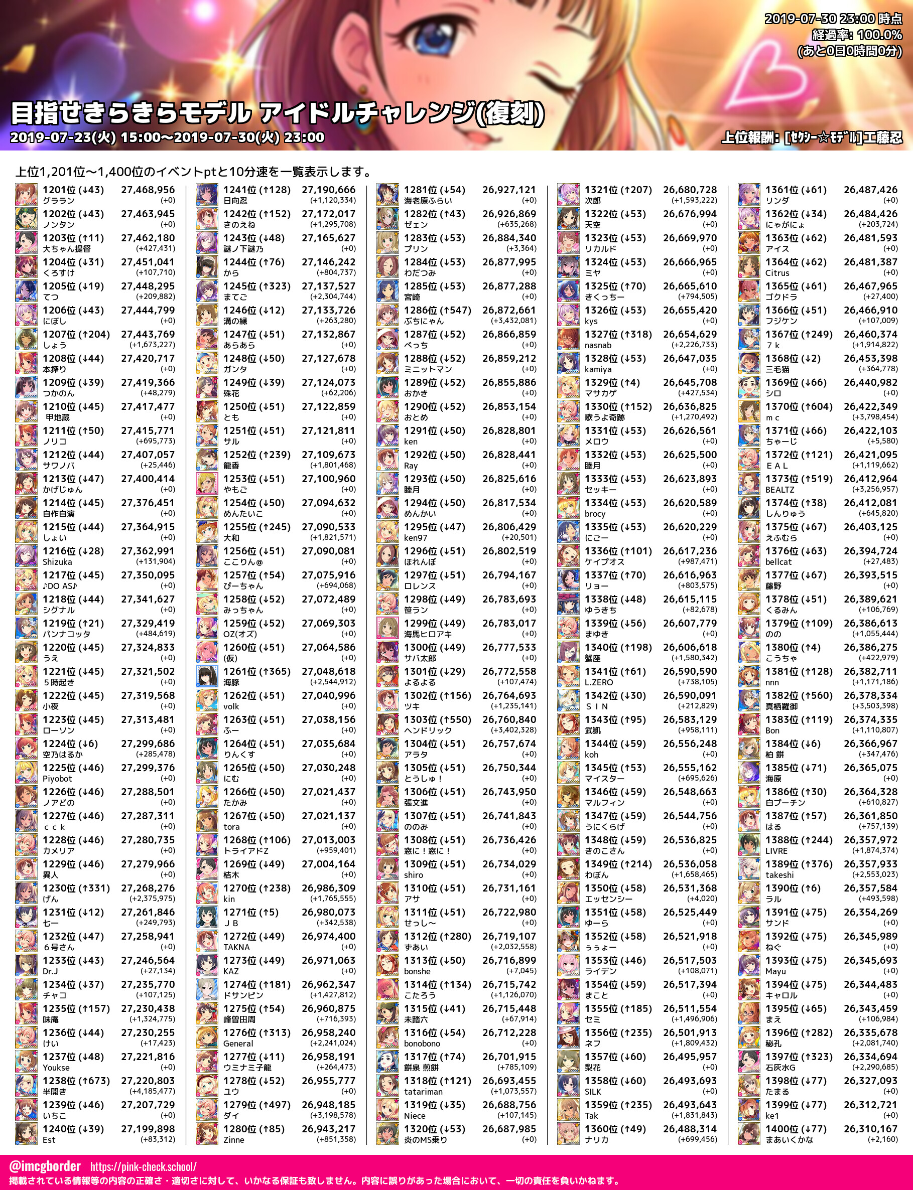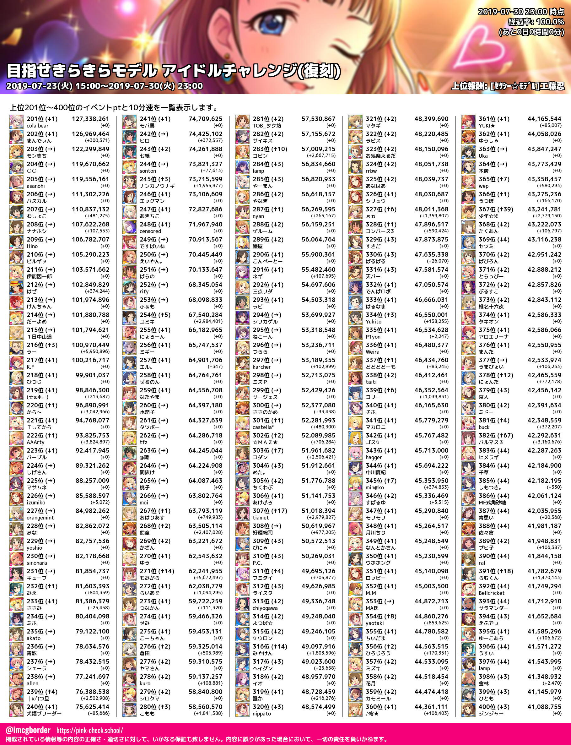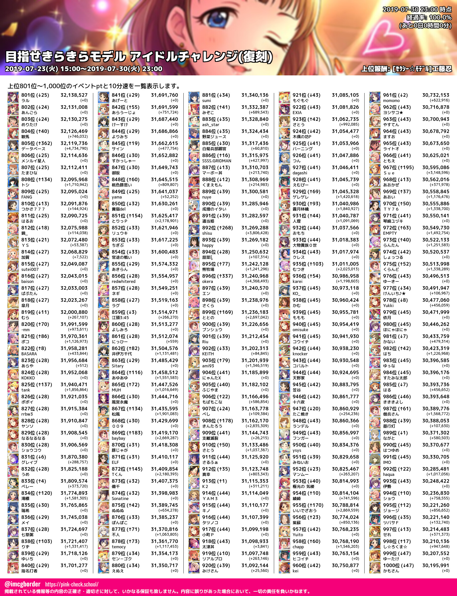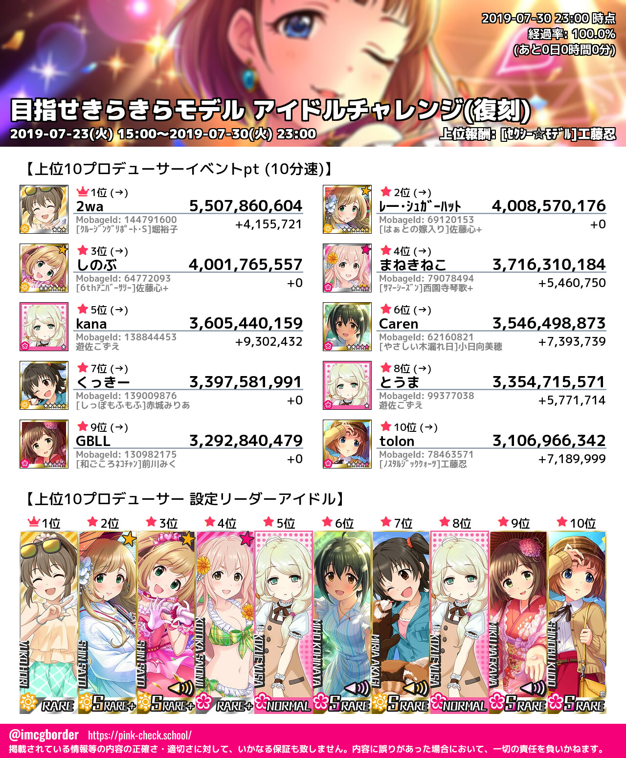 上位プロデューサースコア (2019-07-30 23:00 時点)