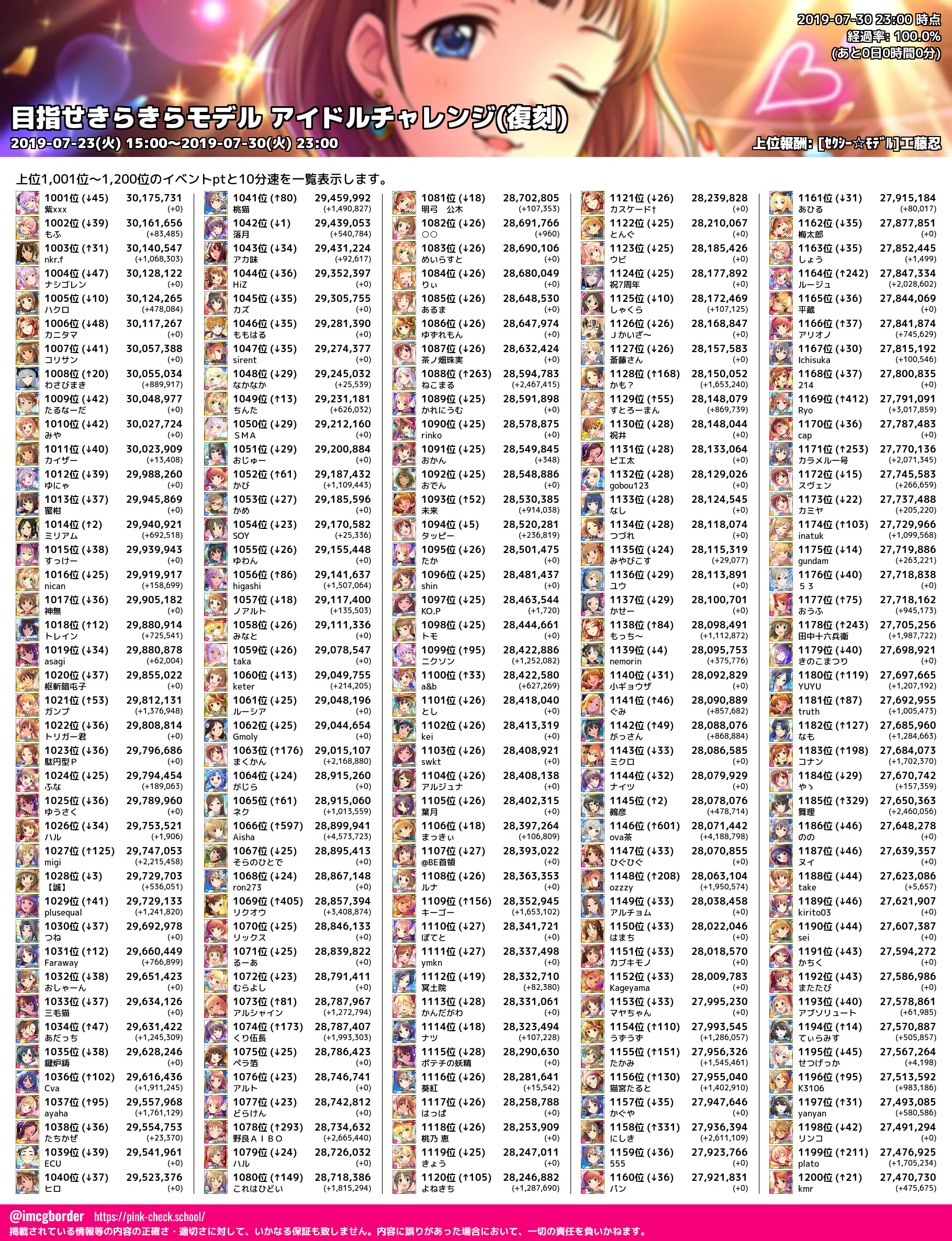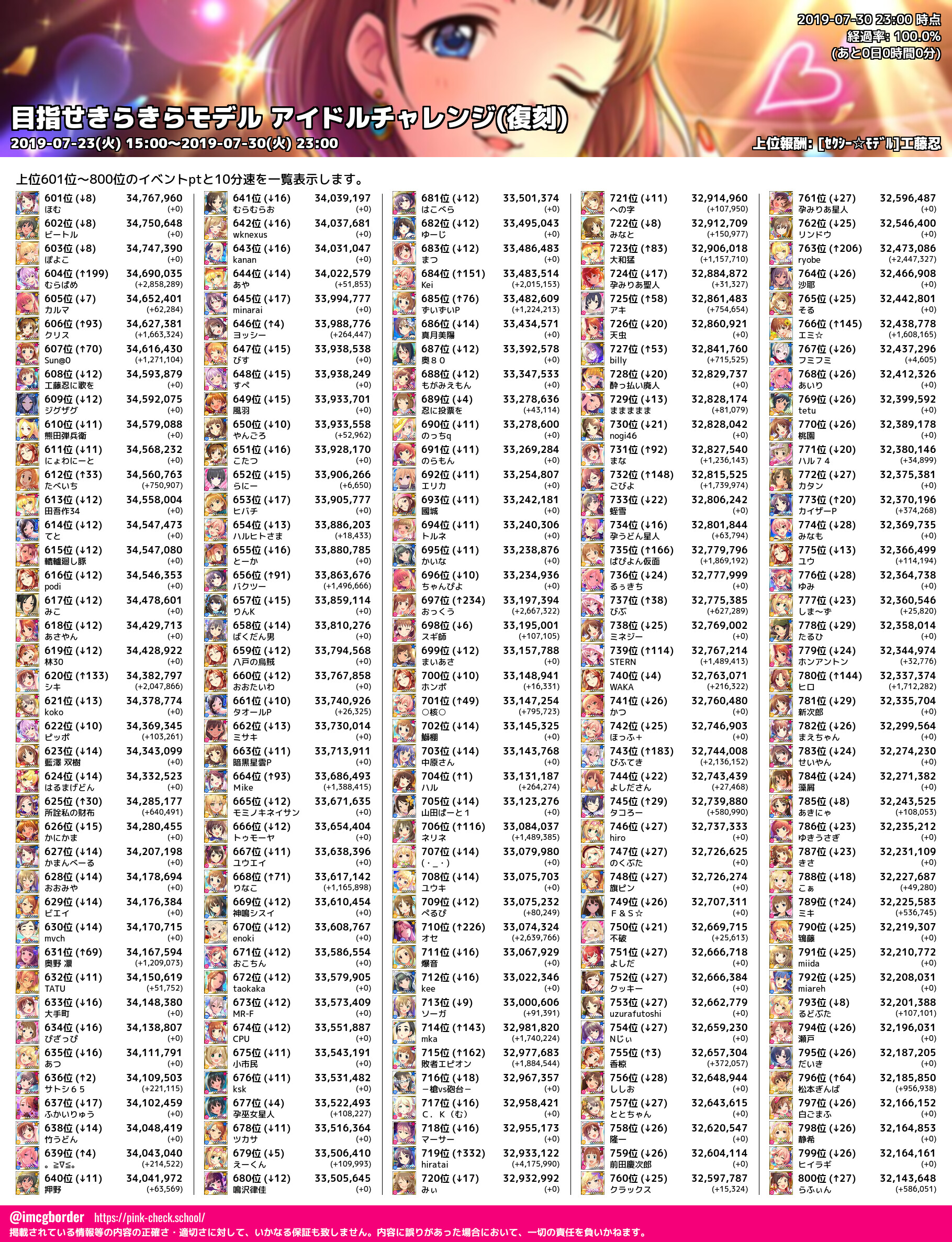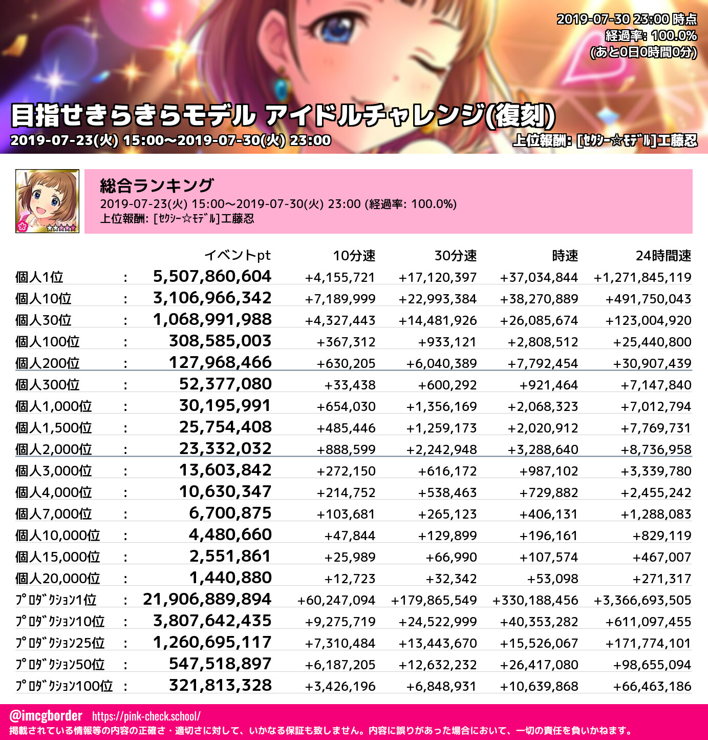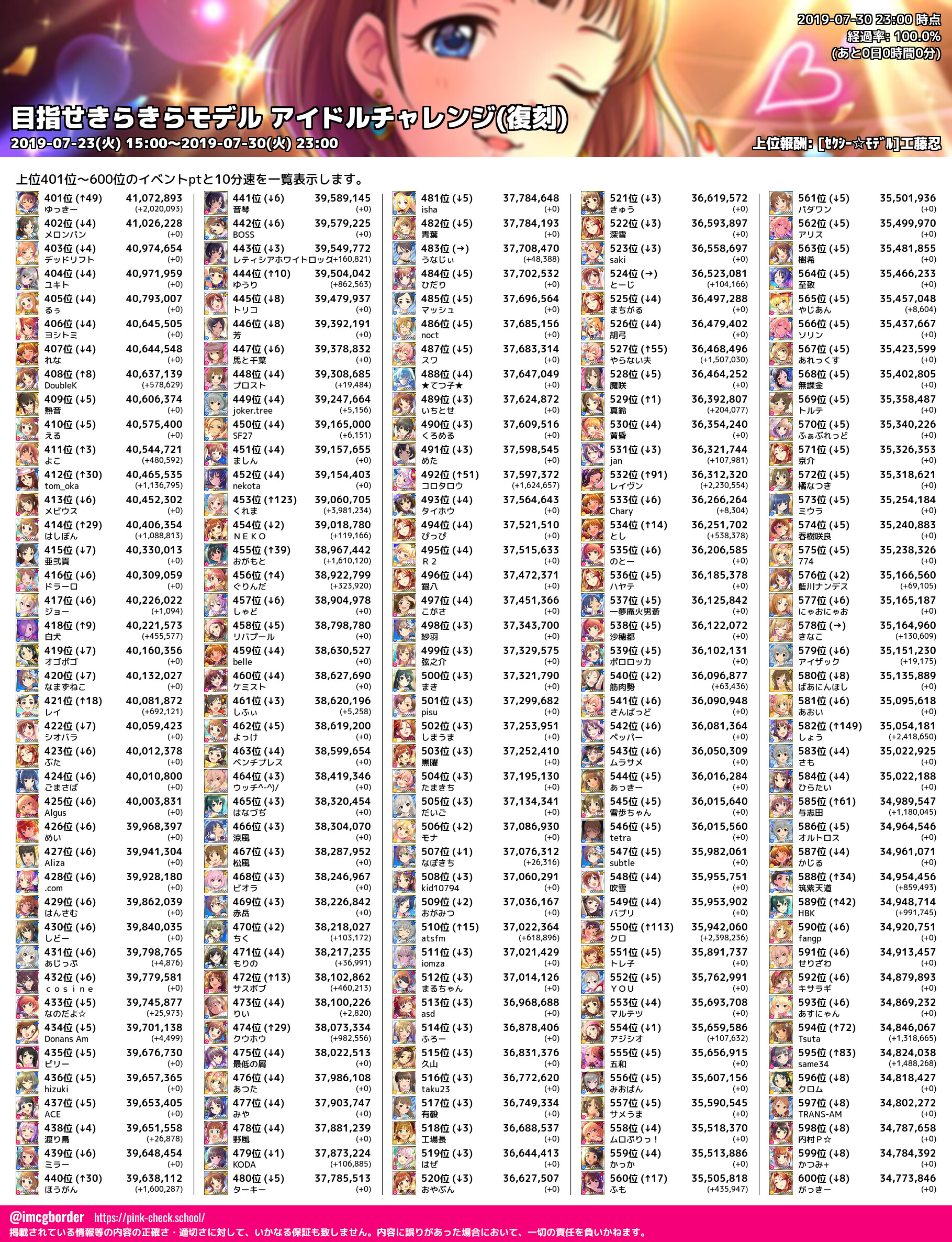 上位プロデューサースコア (2019-07-30 23:00 時点)