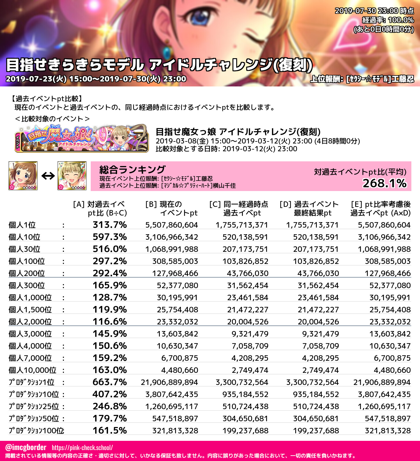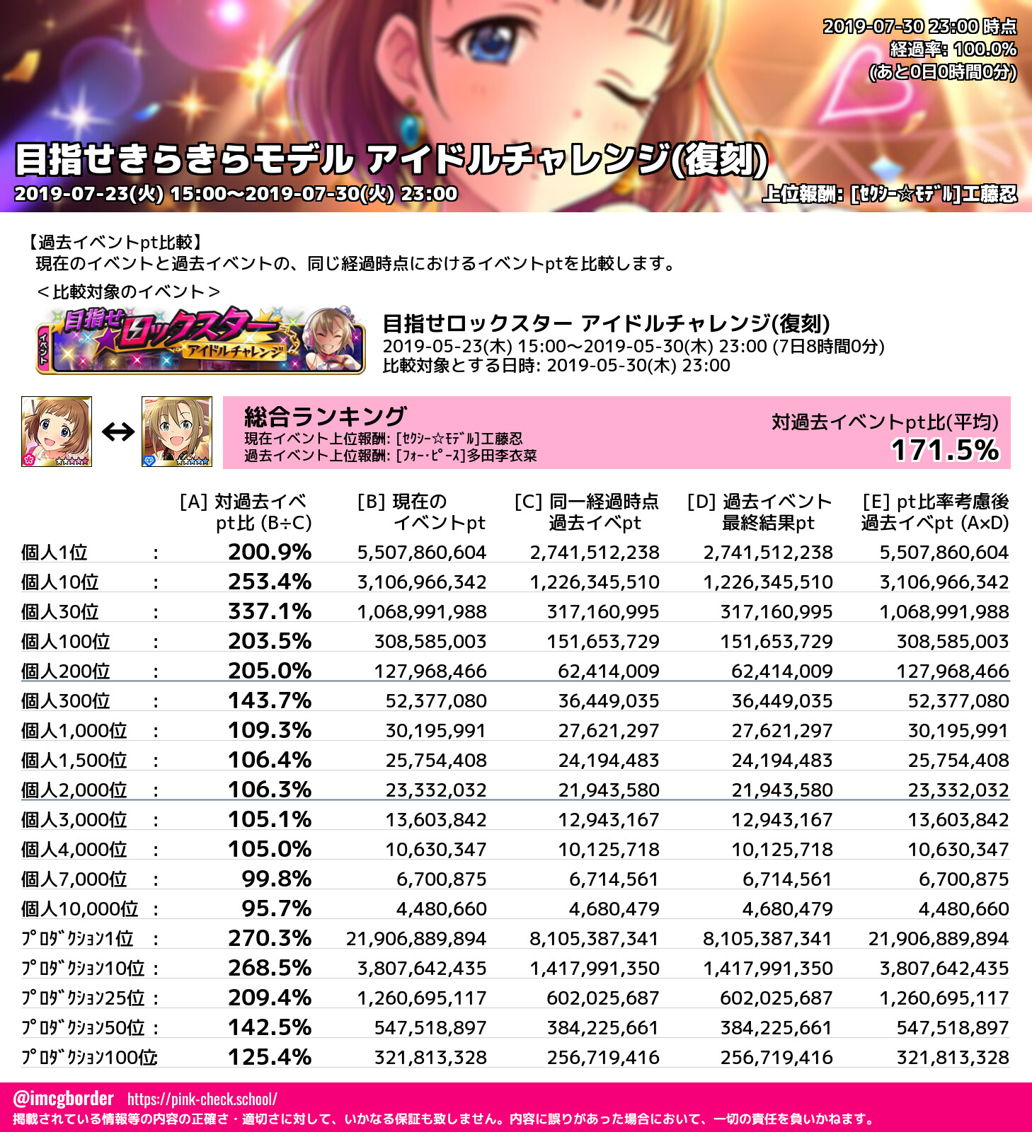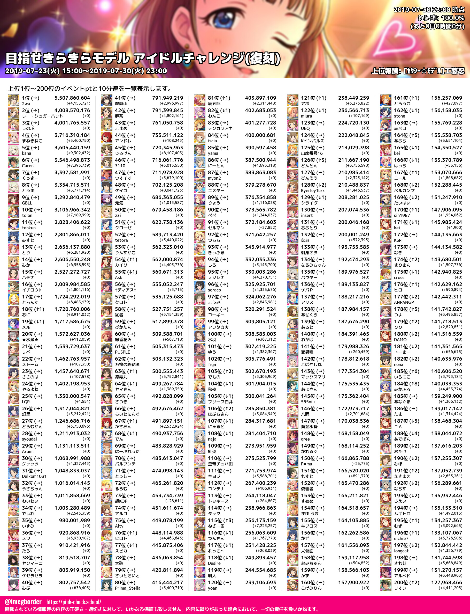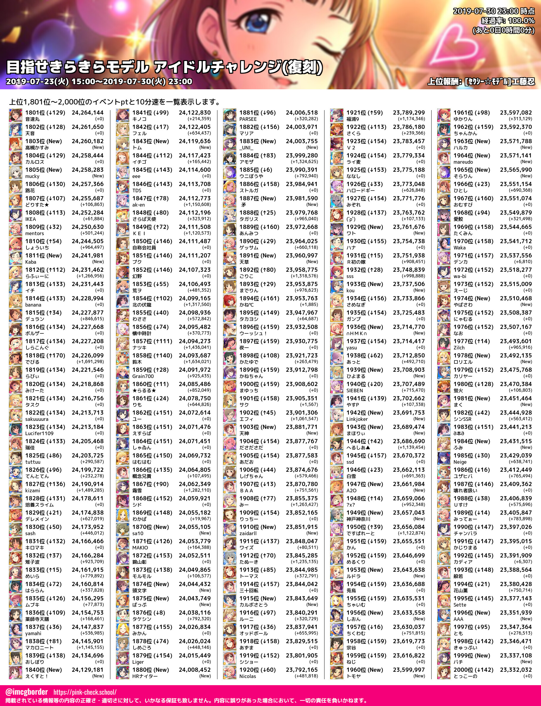 上位プロデューサースコア (2019-07-30 23:00 時点)