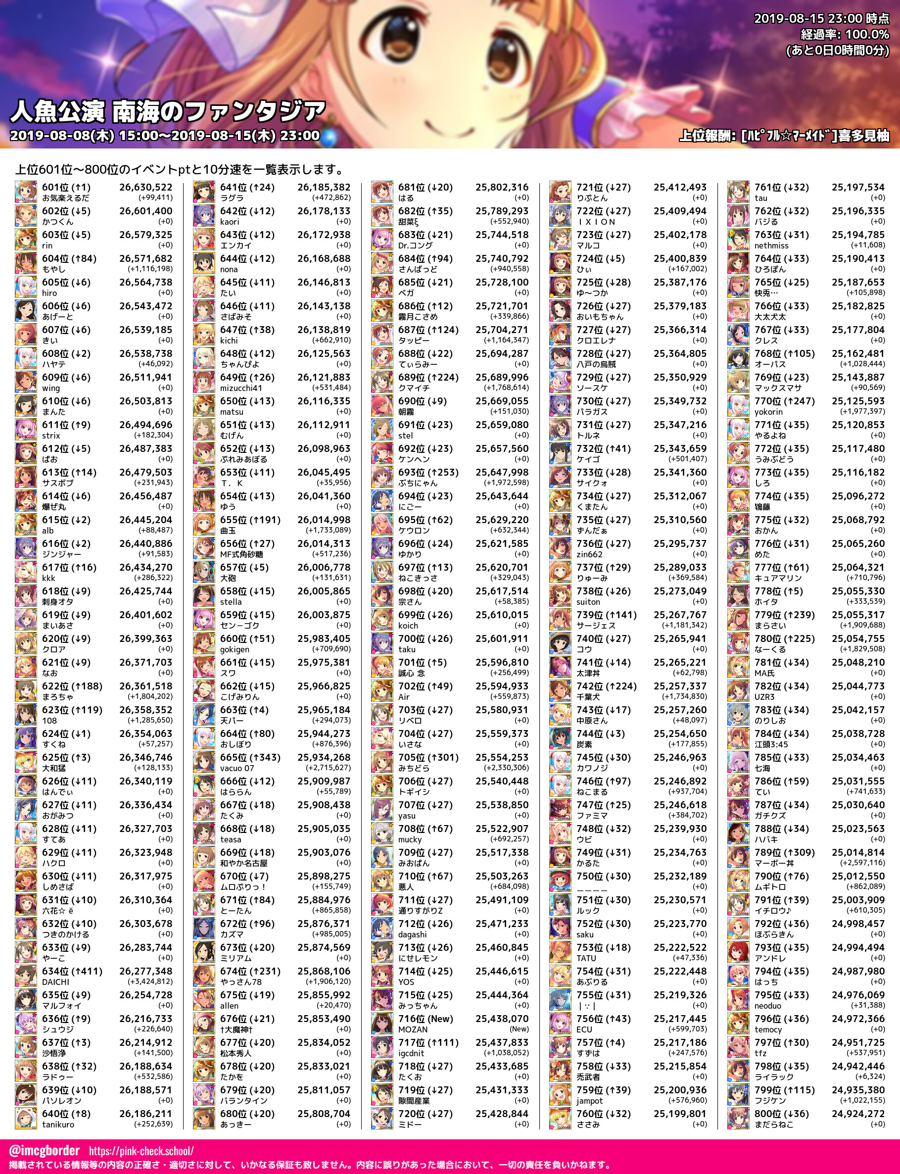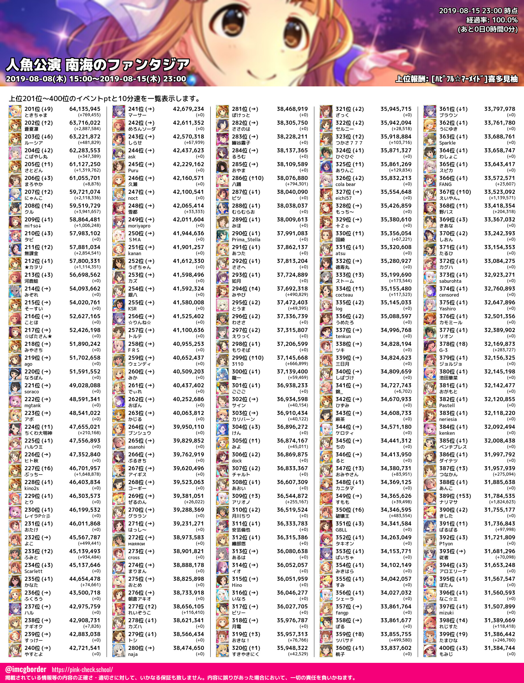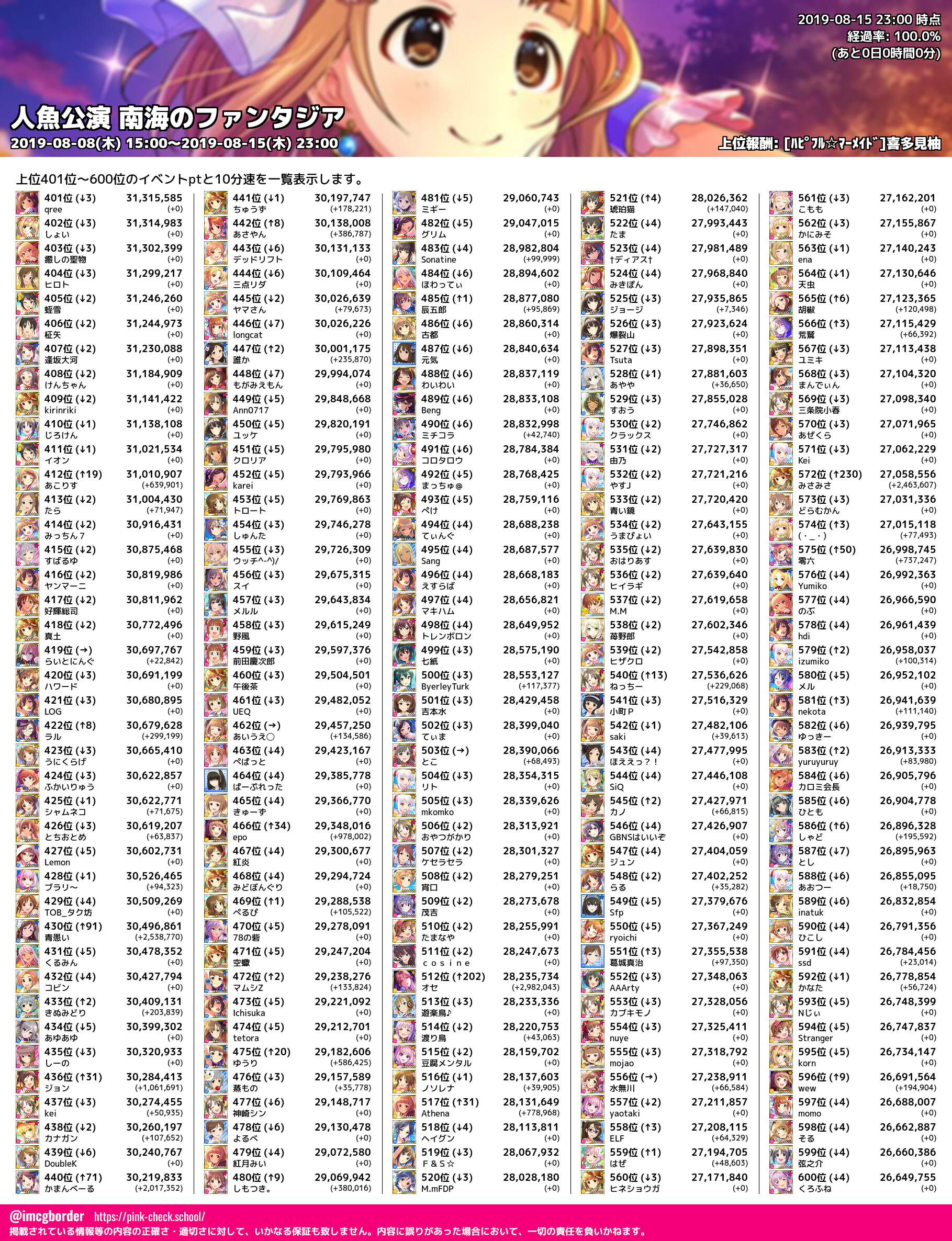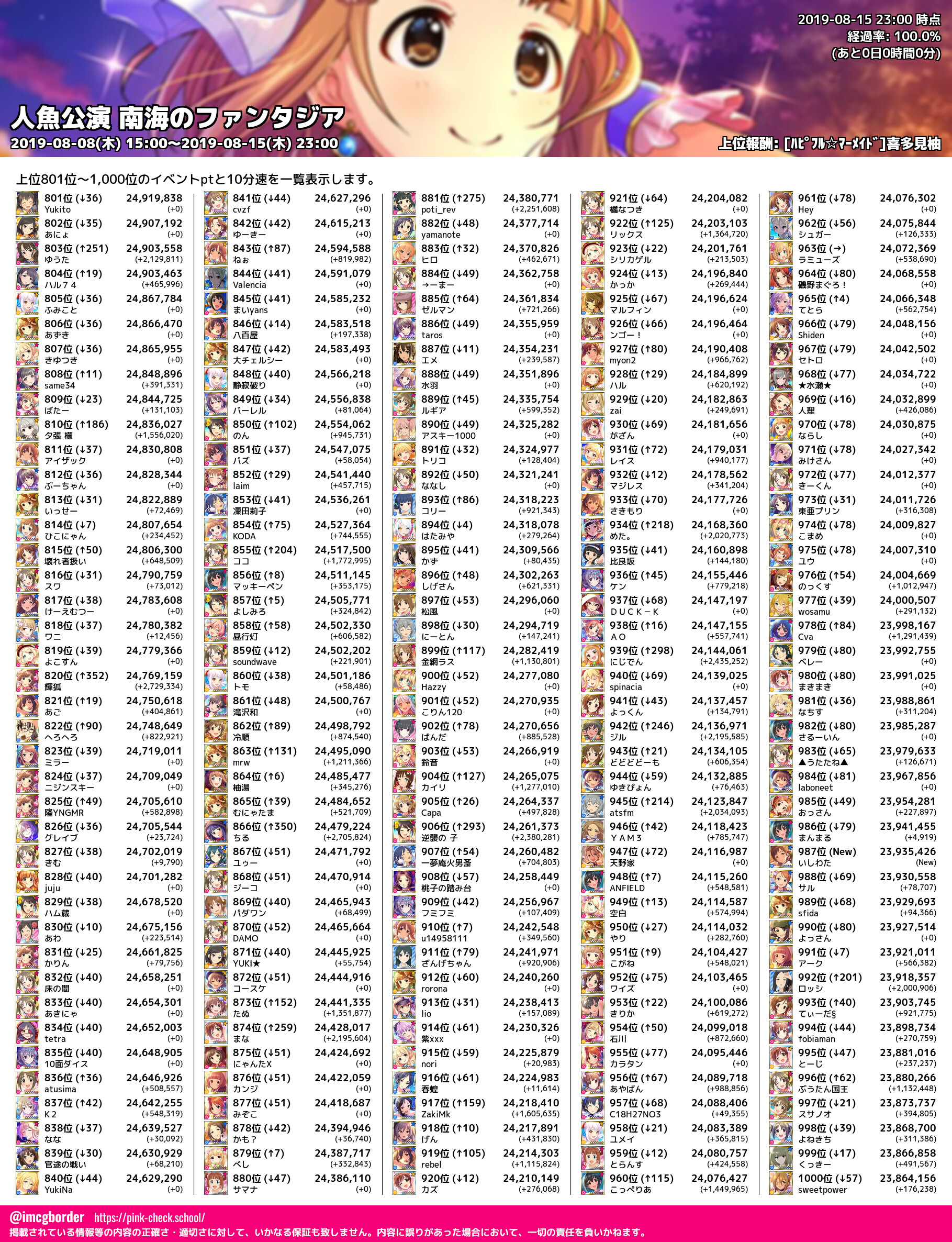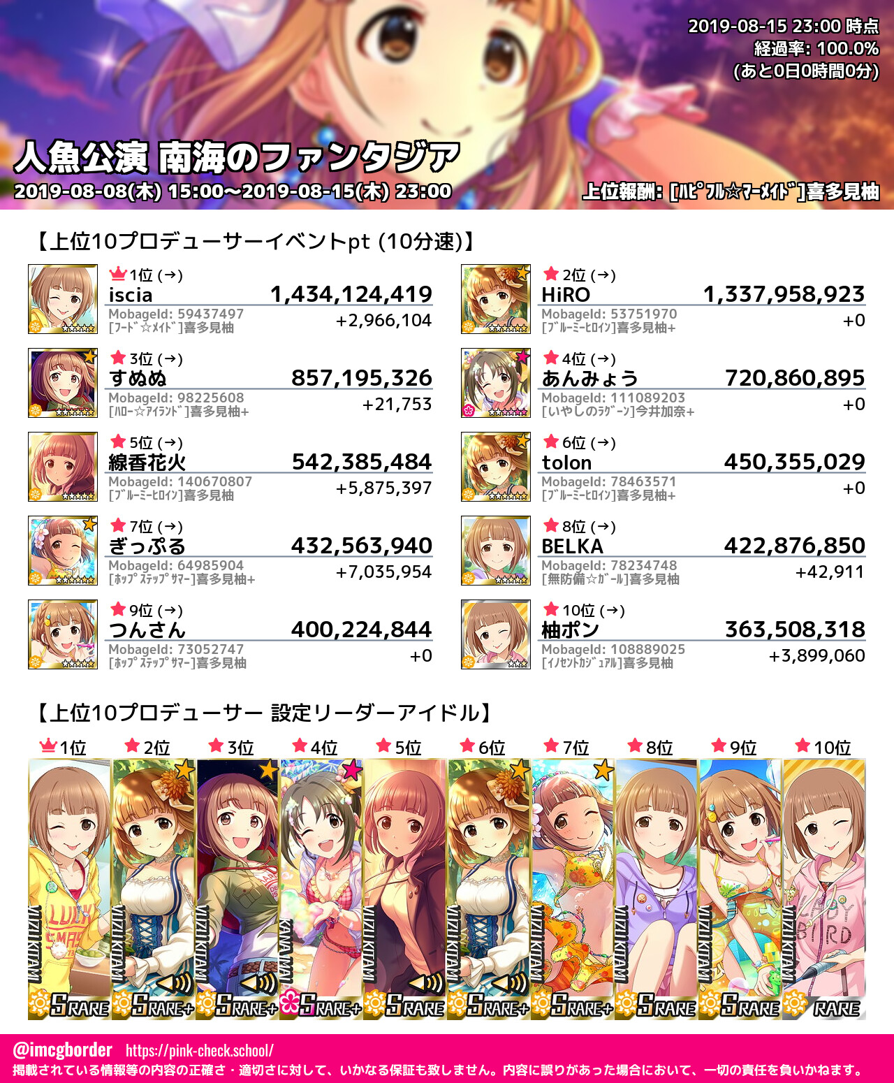 上位プロデューサースコア (2019-08-15 23:00 時点)