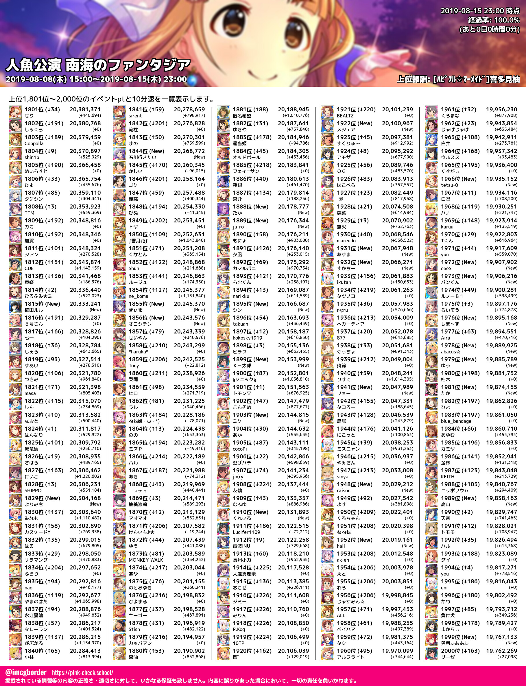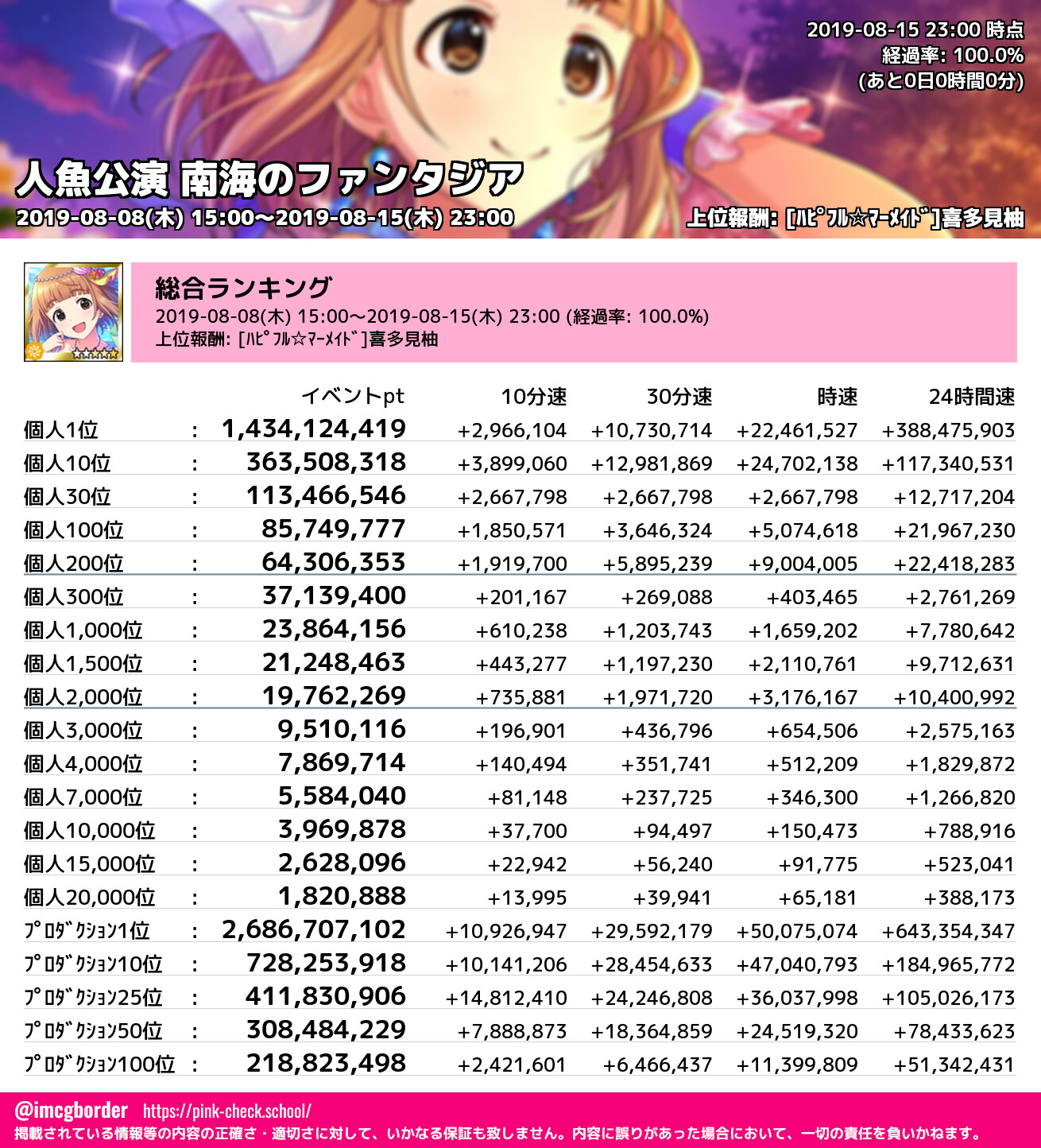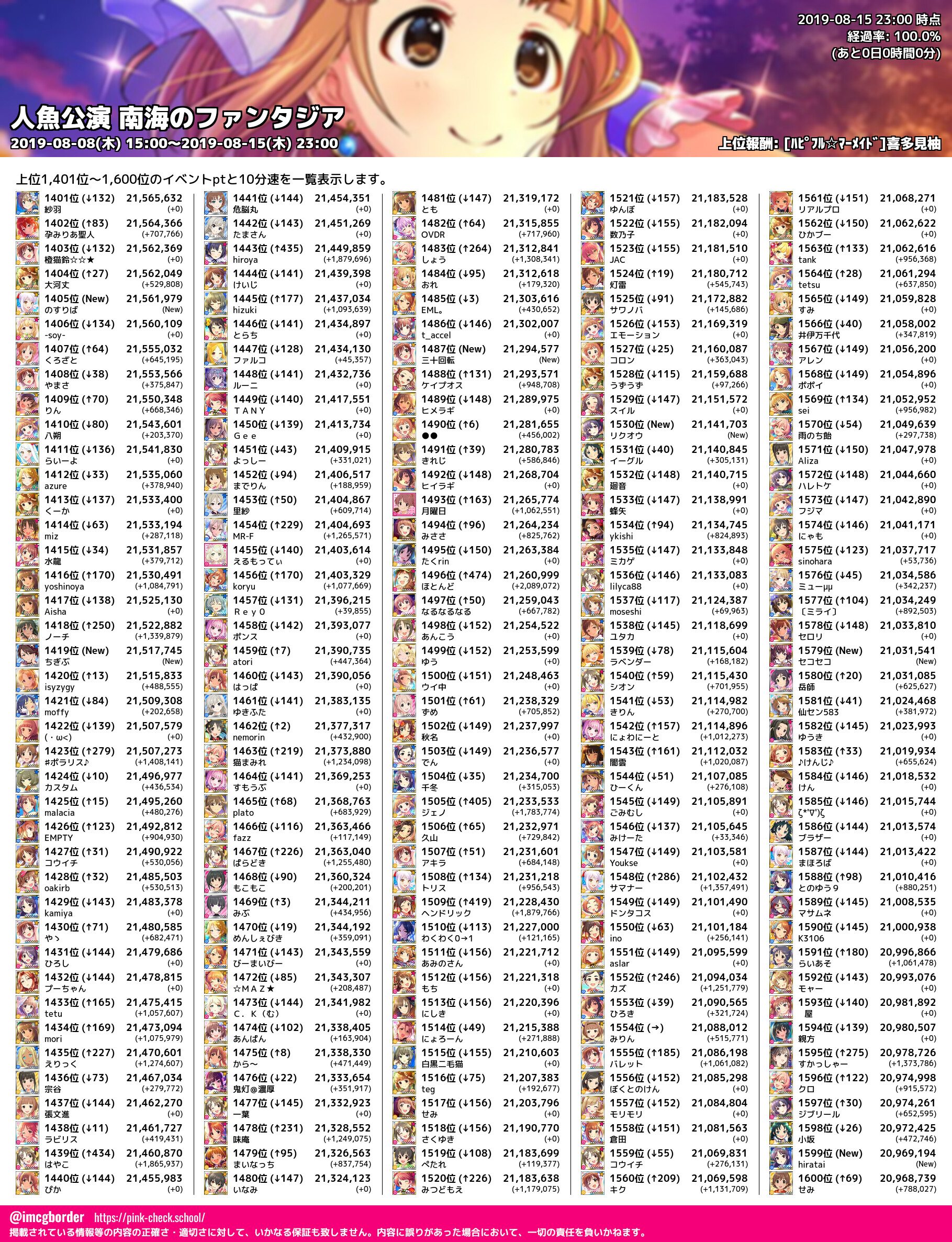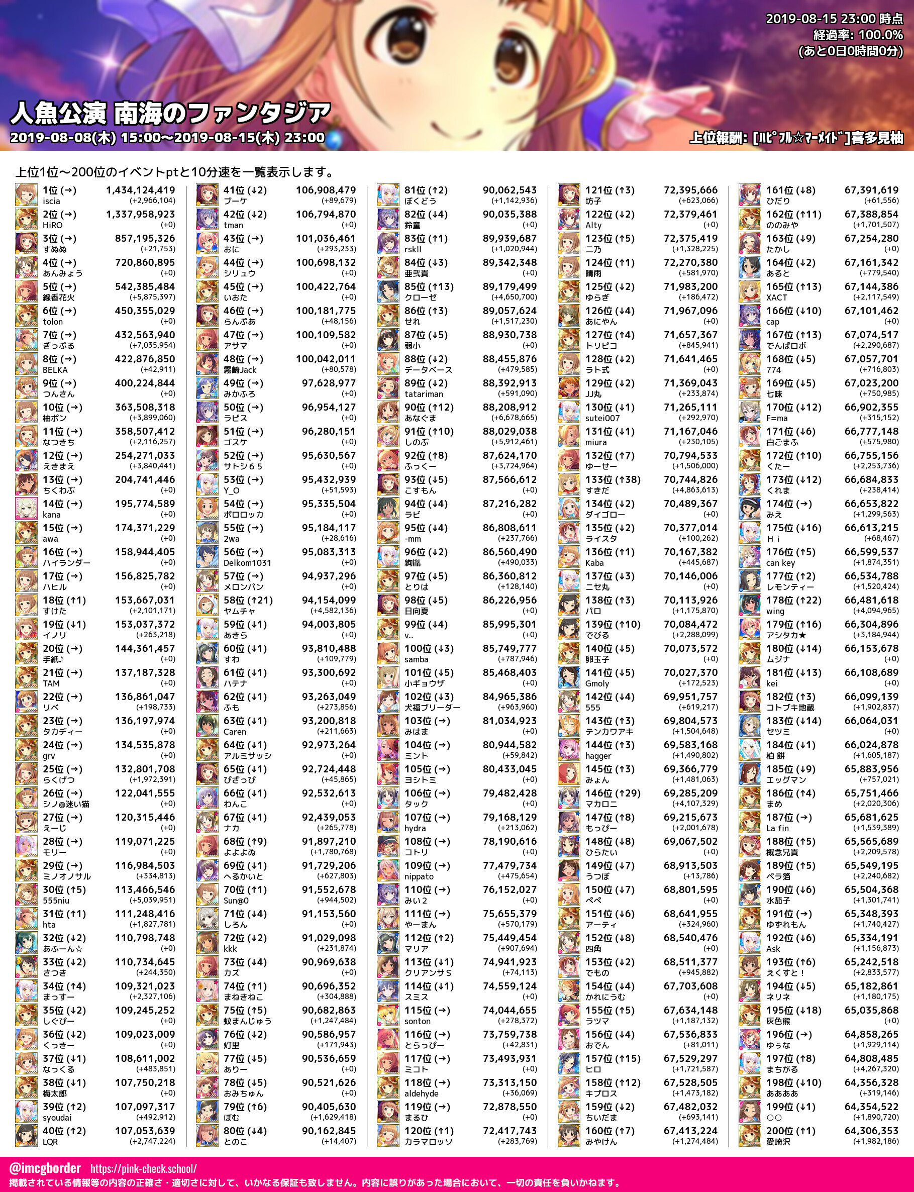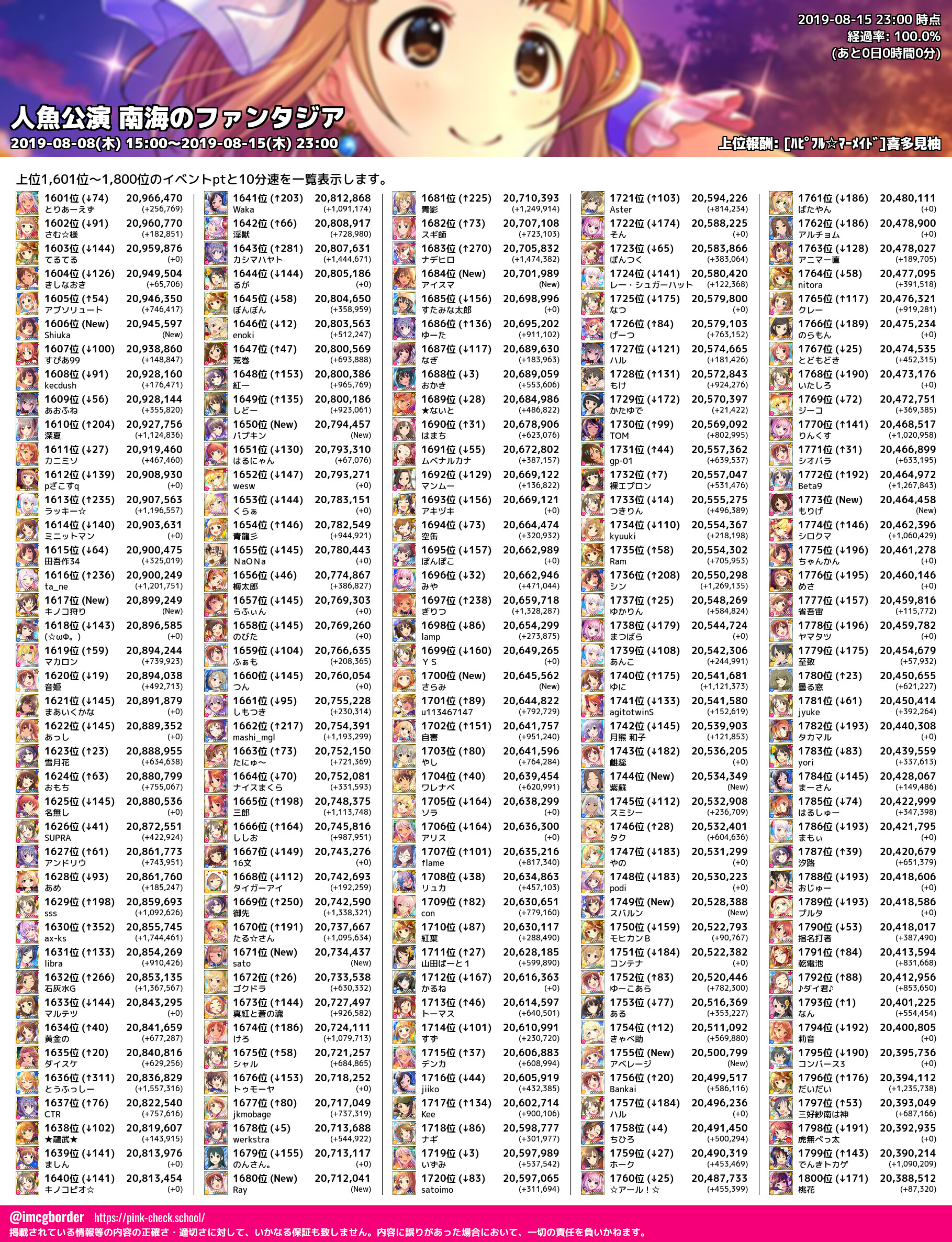 上位プロデューサースコア (2019-08-15 23:00 時点)