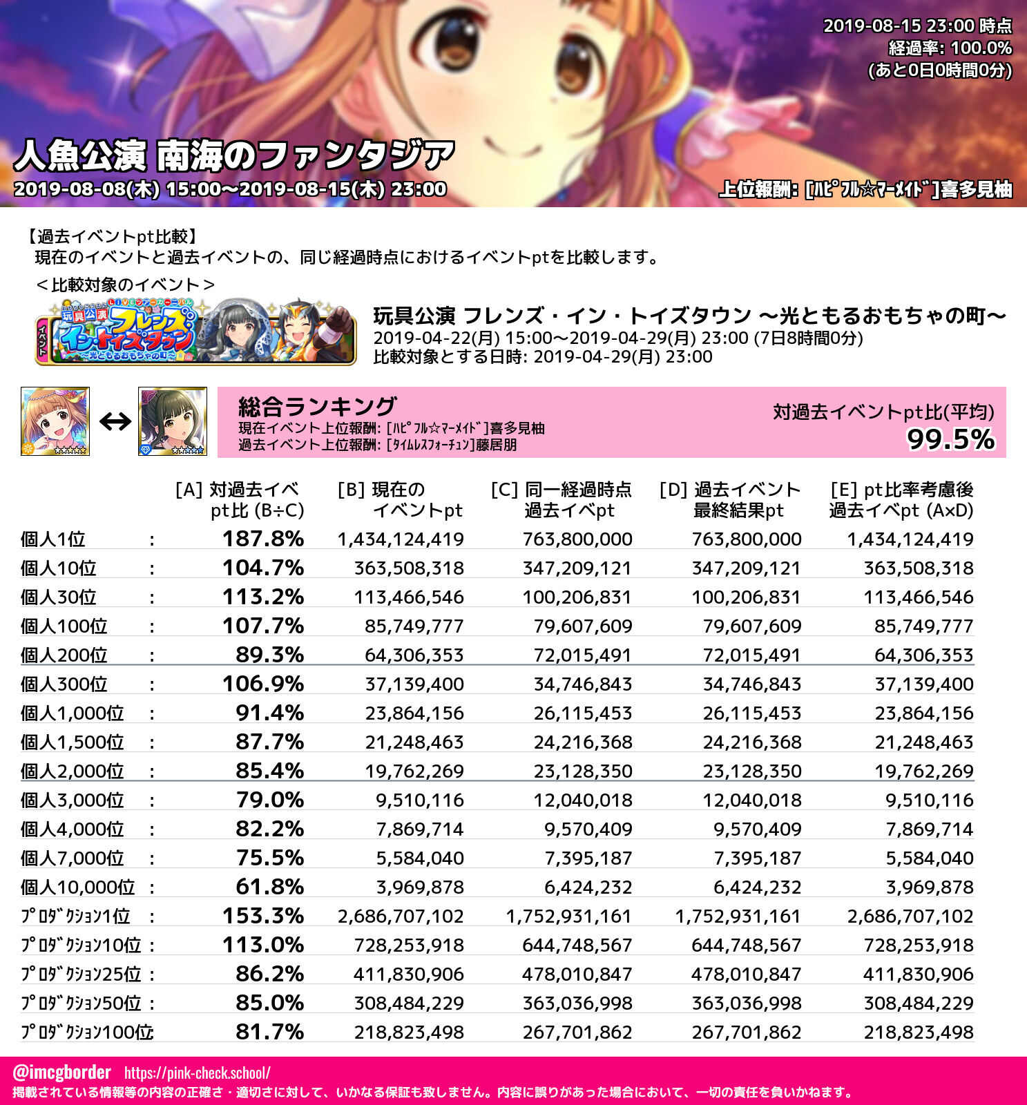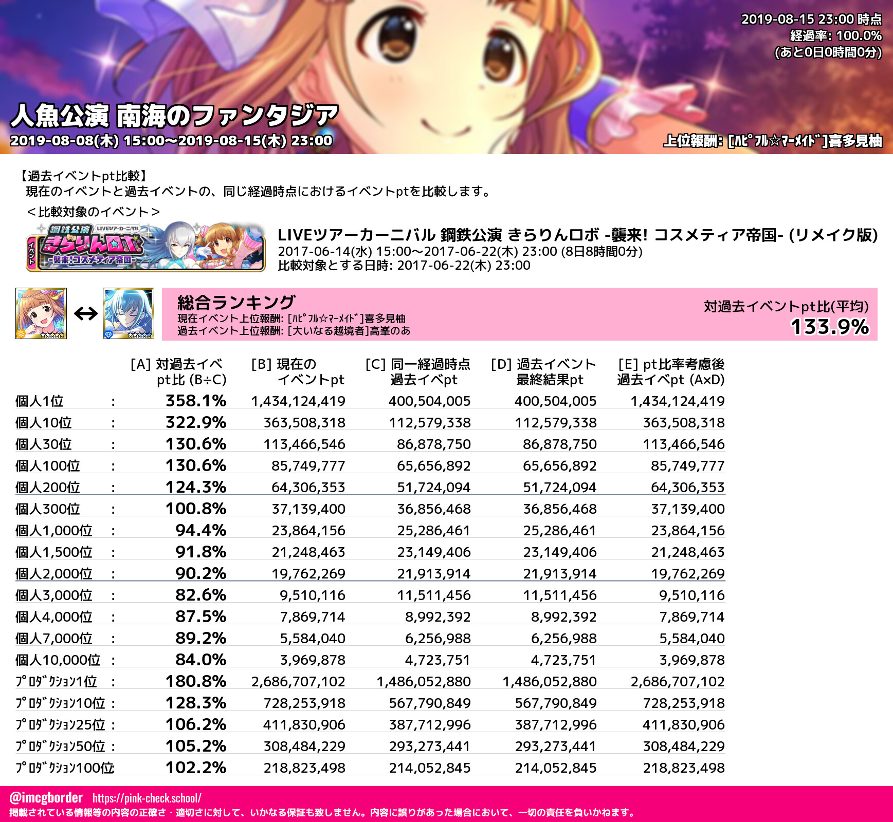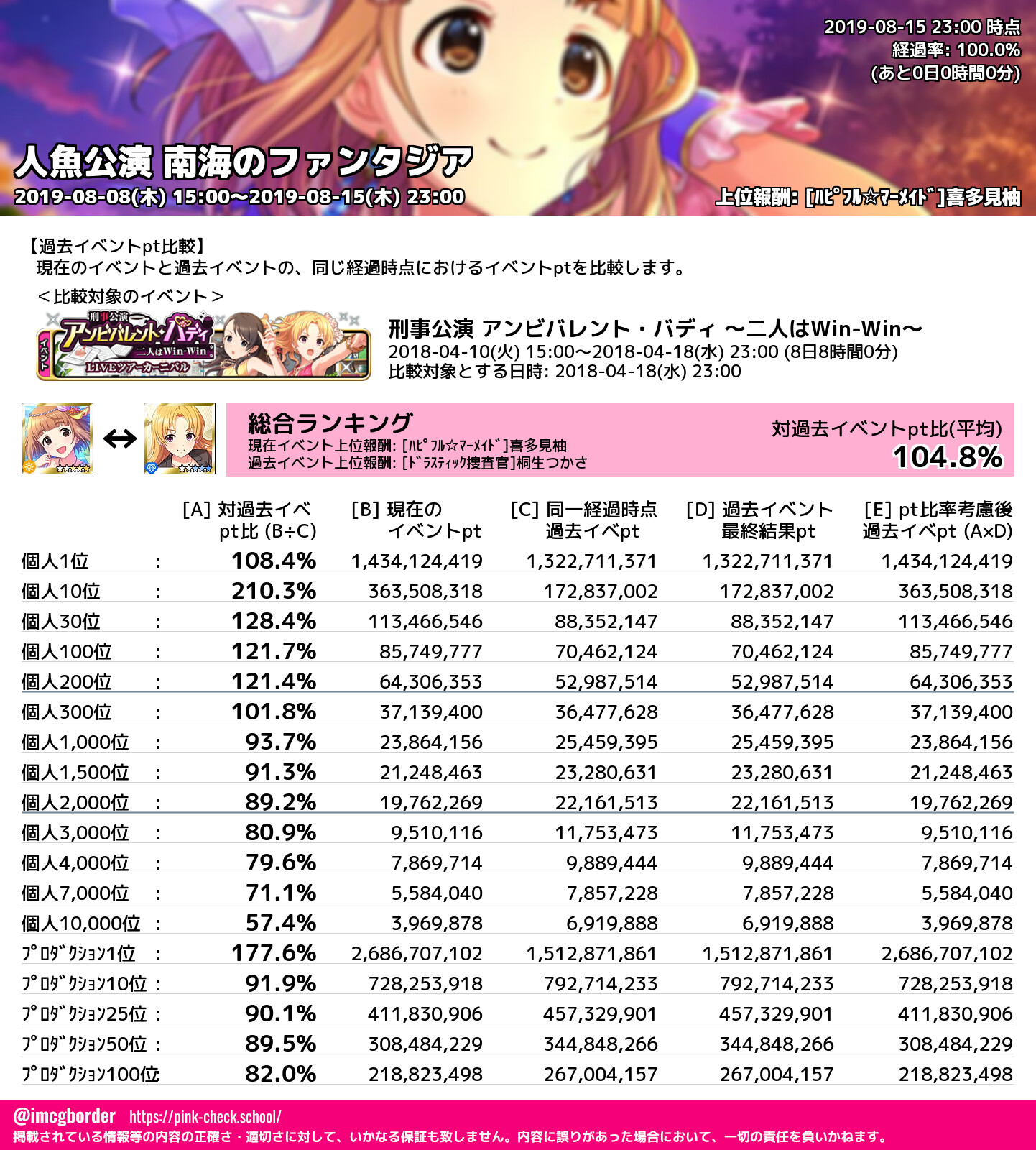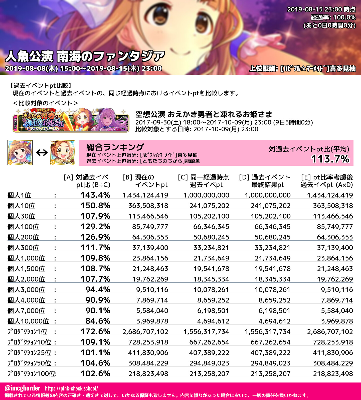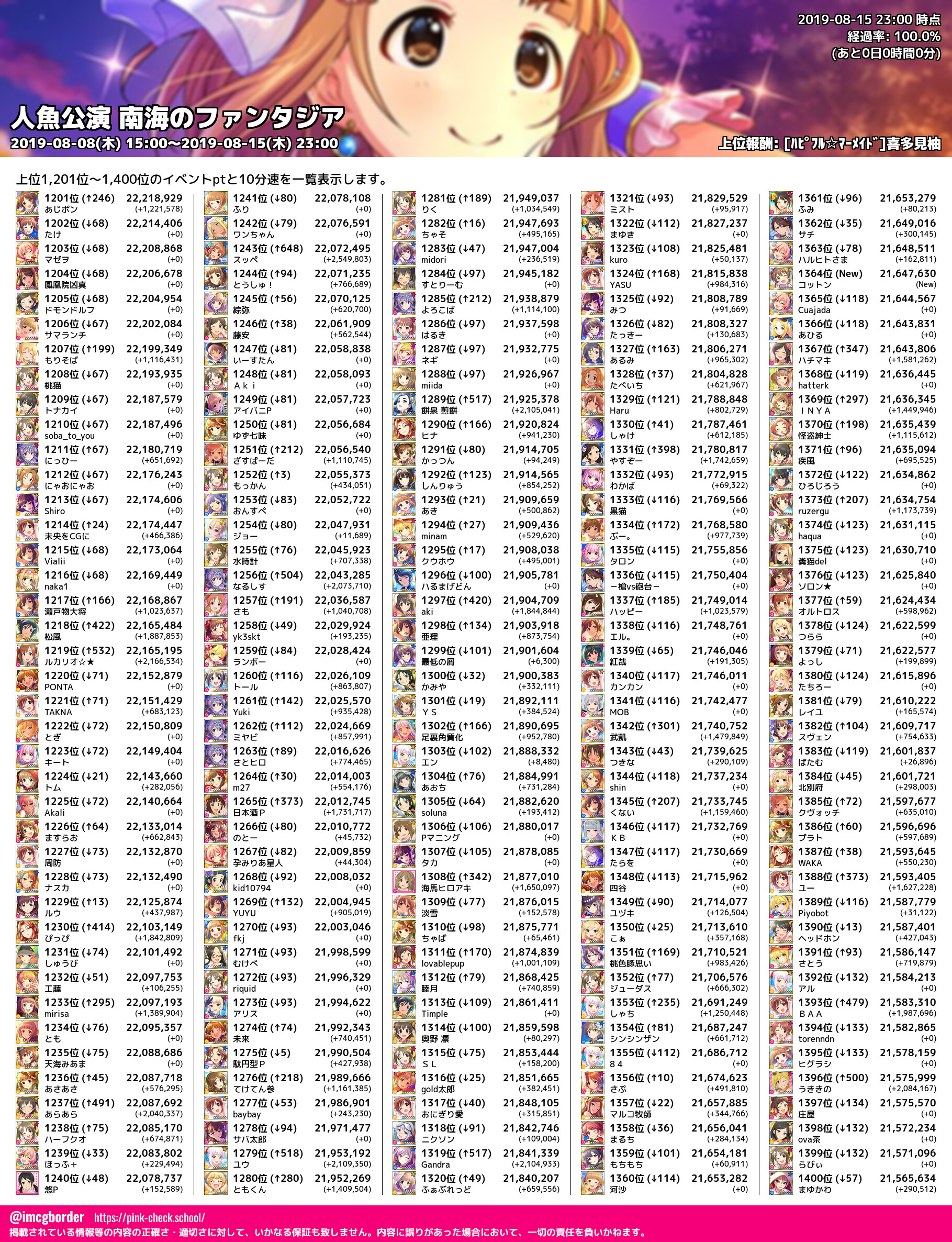 上位プロデューサースコア (2019-08-15 23:00 時点)