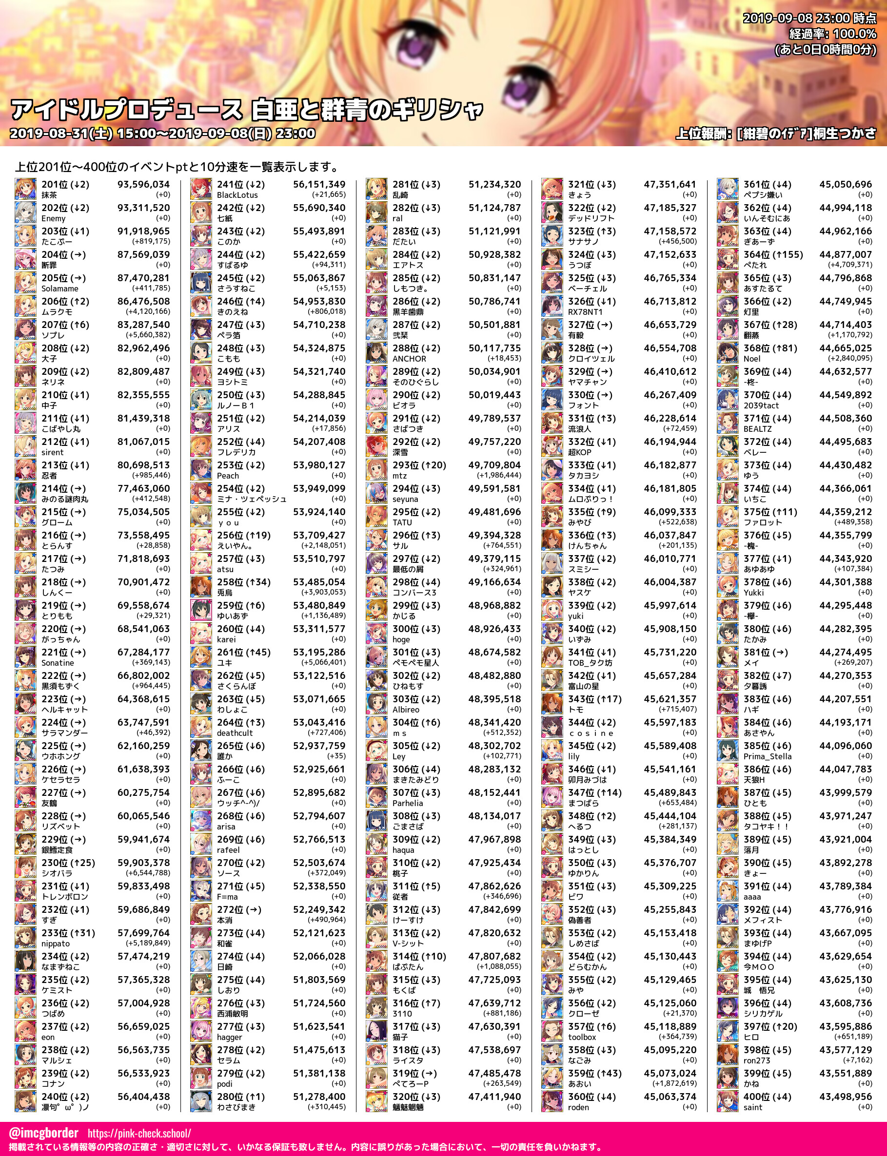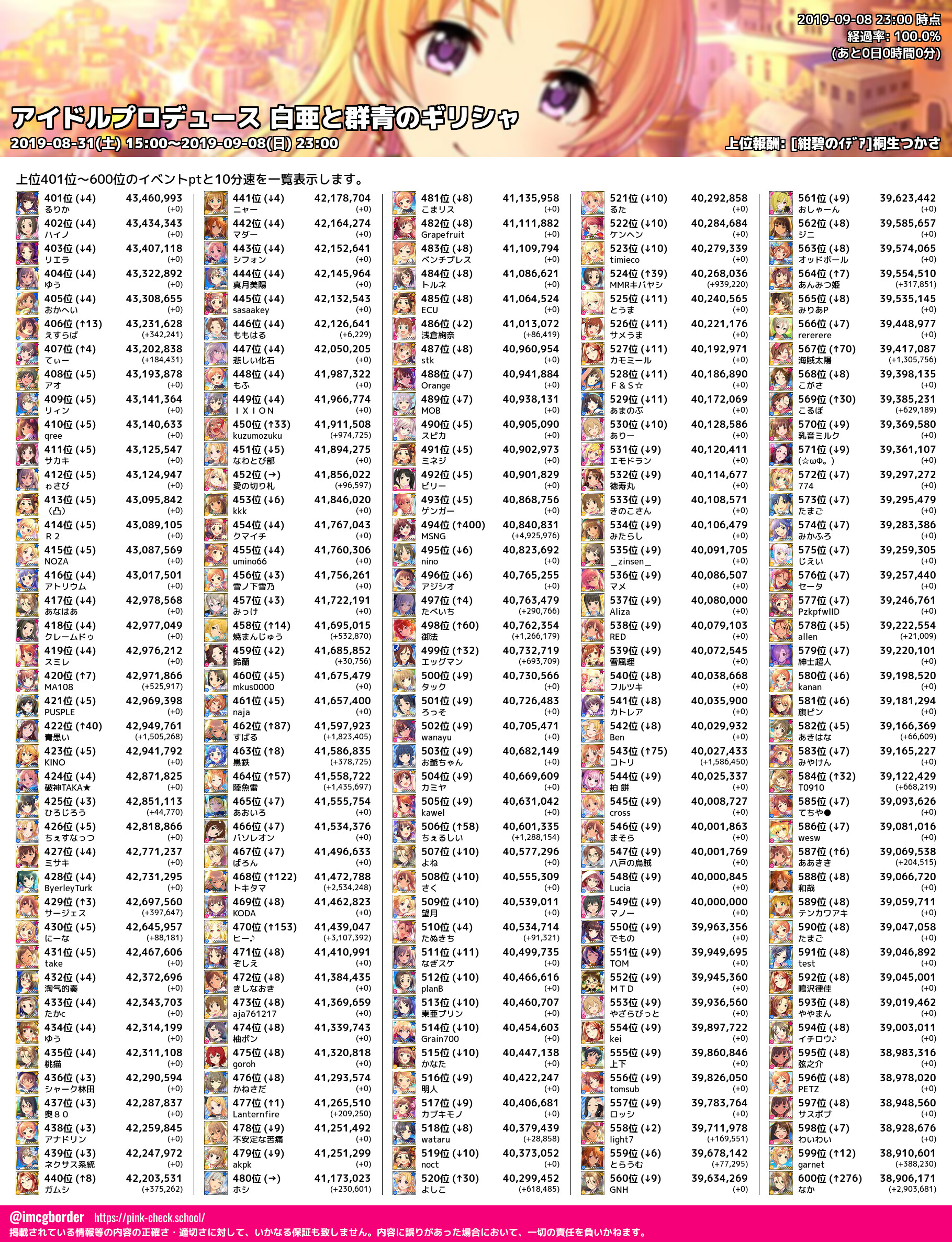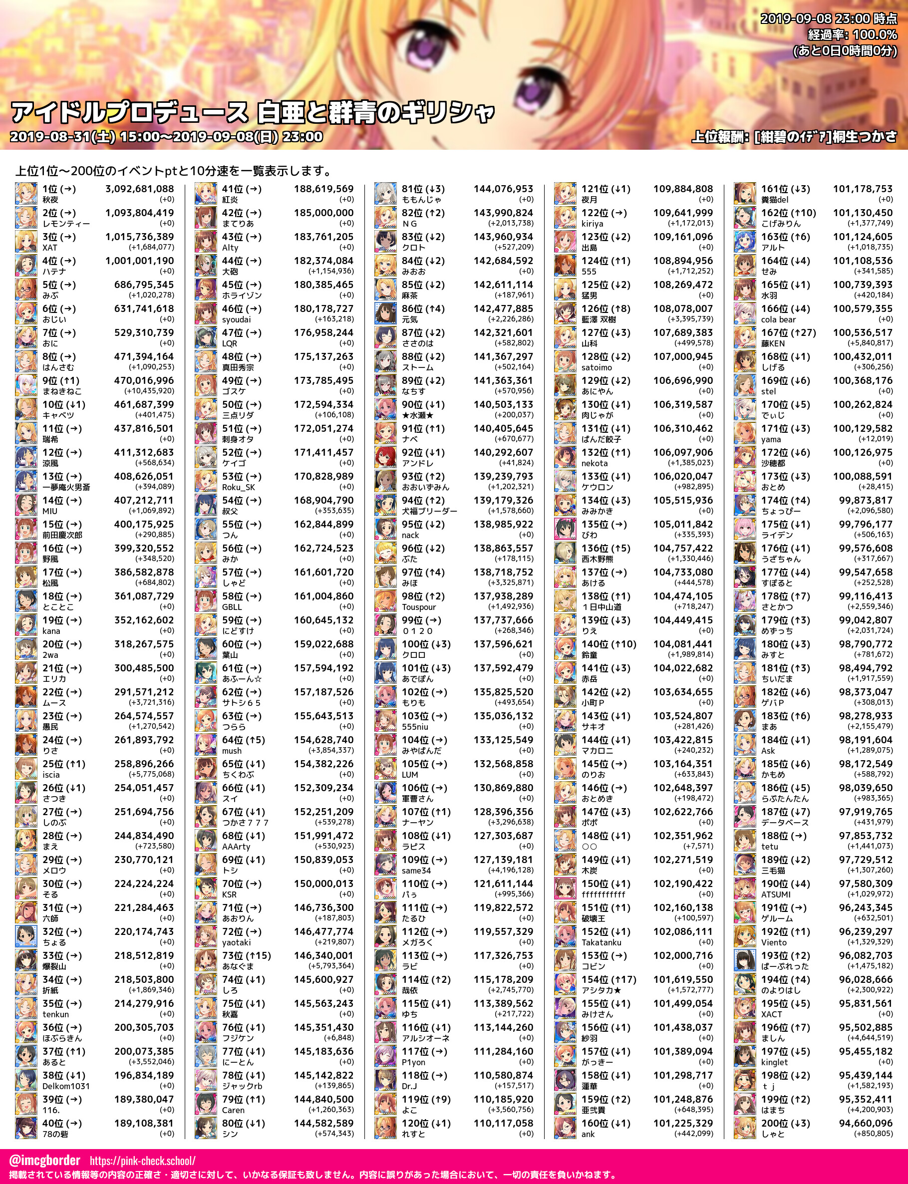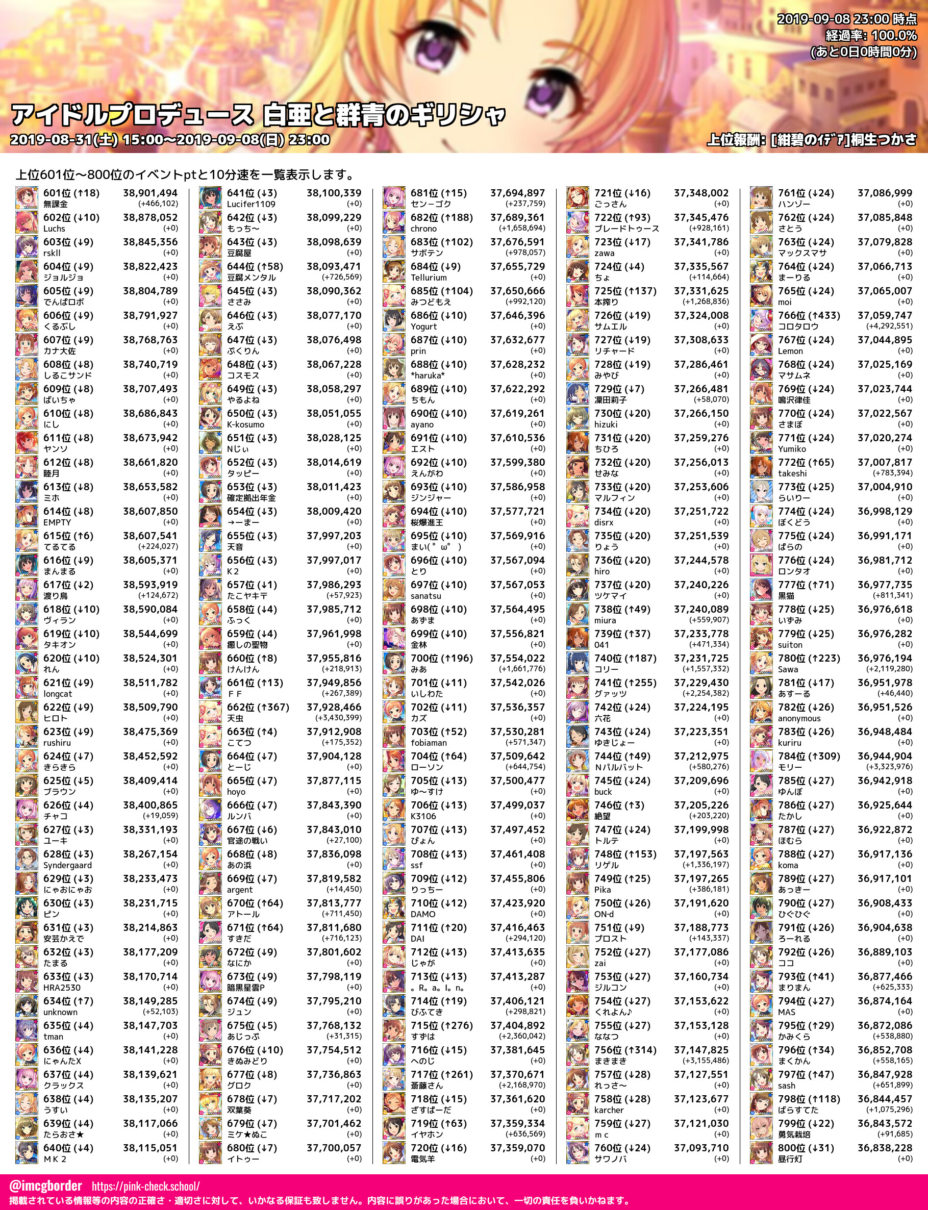 上位プロデューサースコア (2019-09-08 23:00 時点)