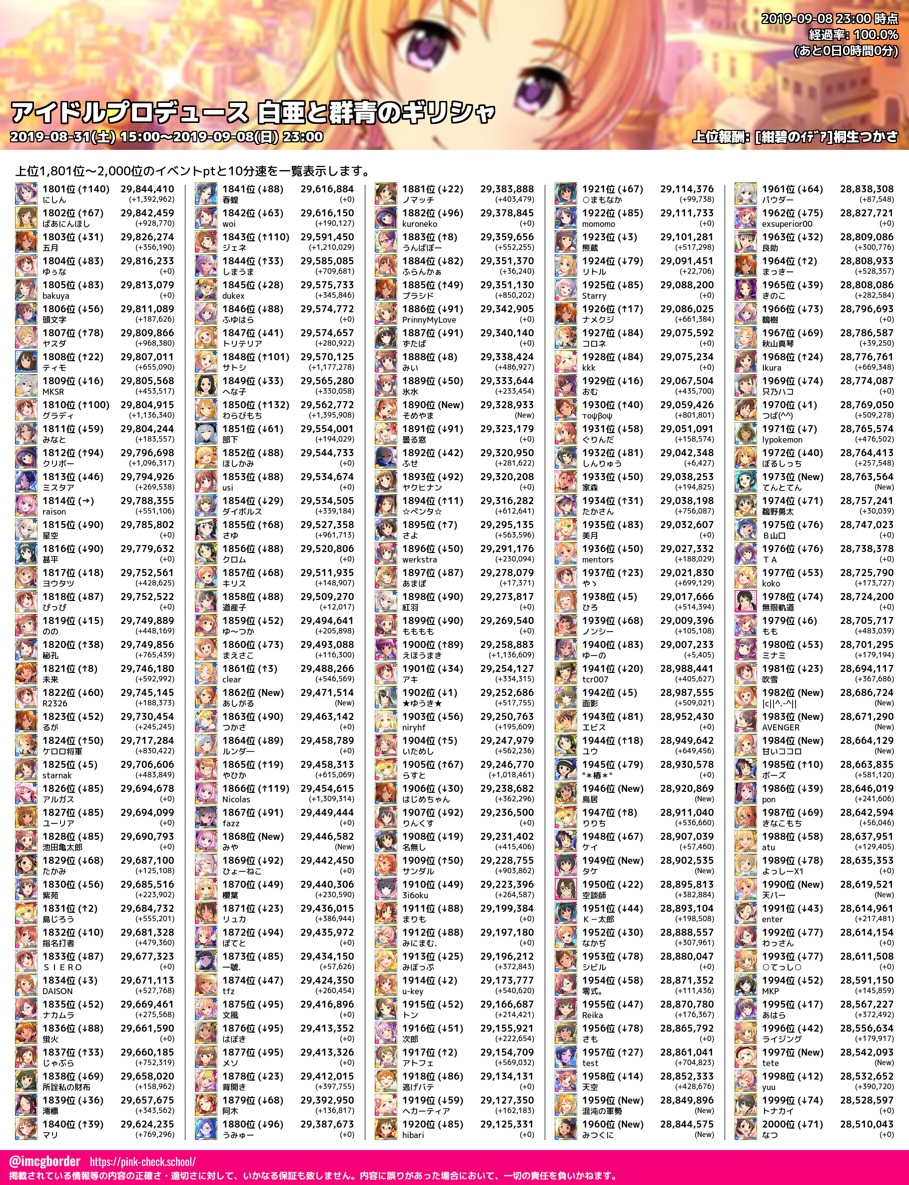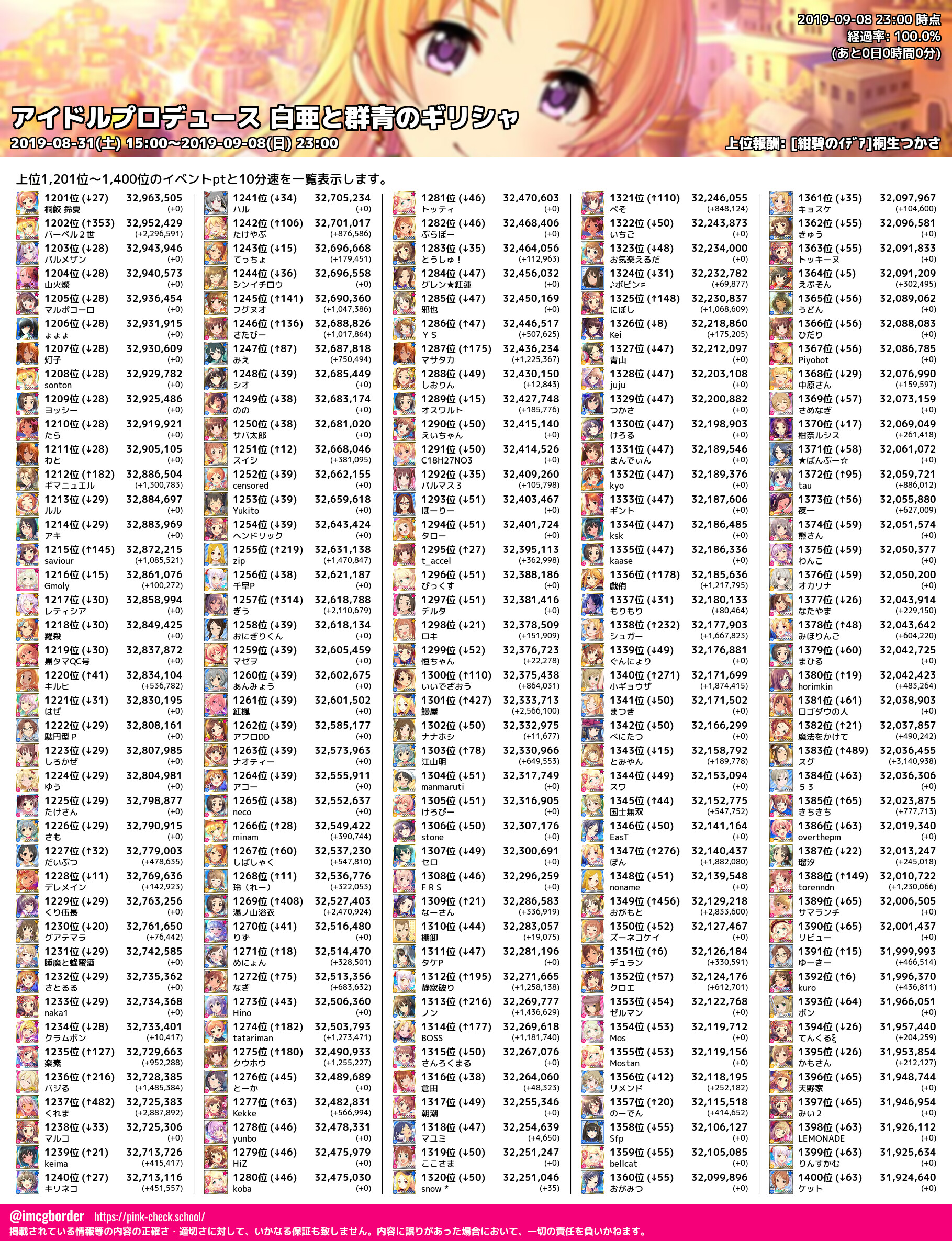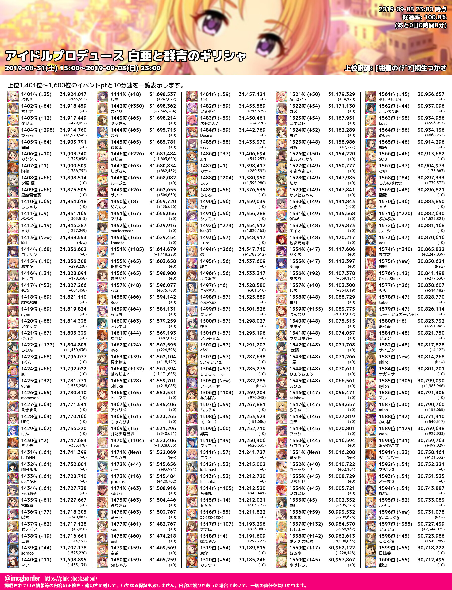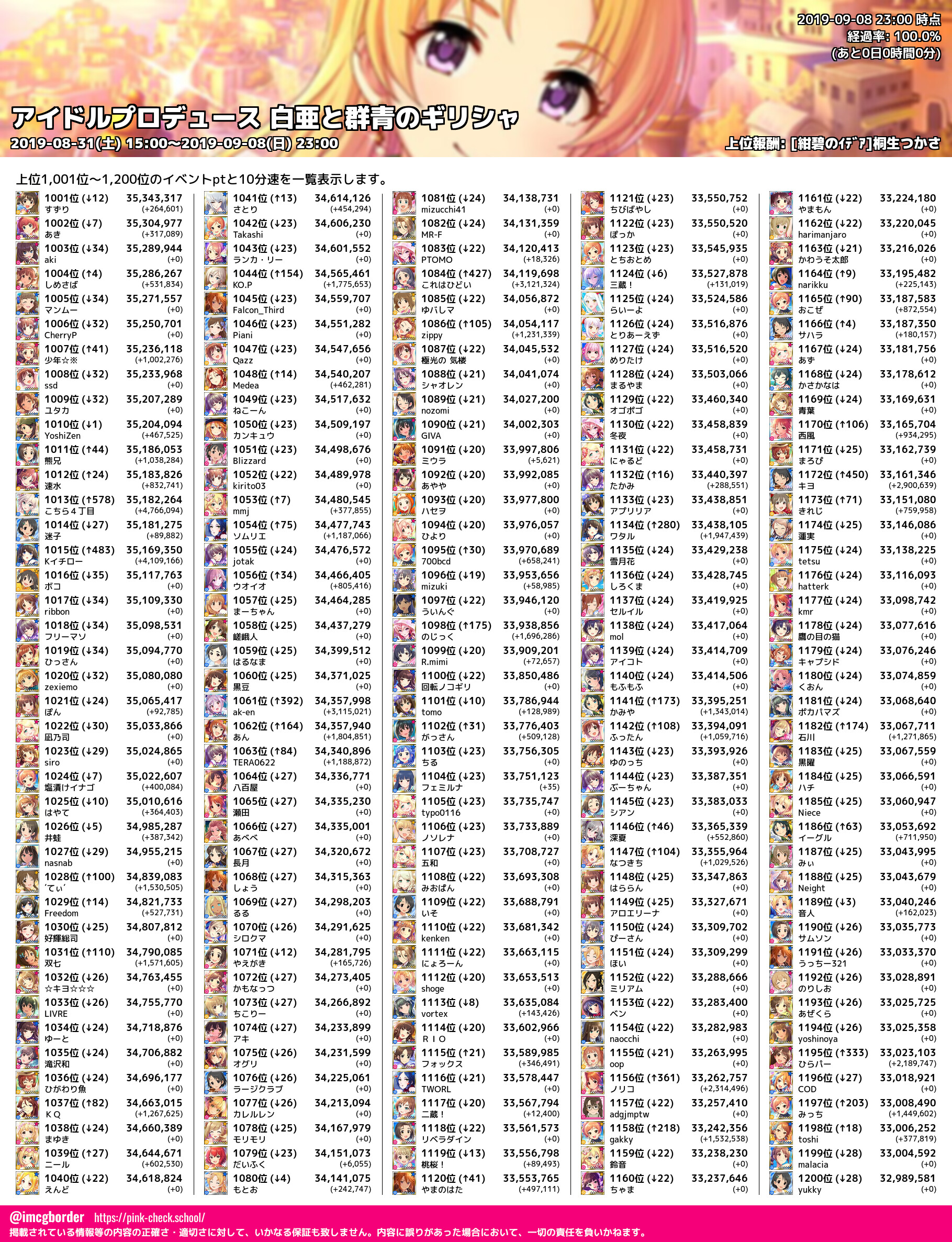 上位プロデューサースコア (2019-09-08 23:00 時点)