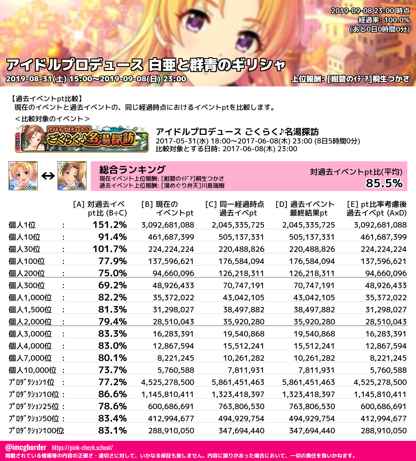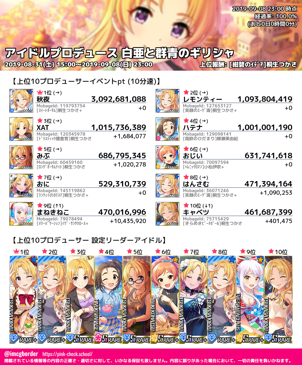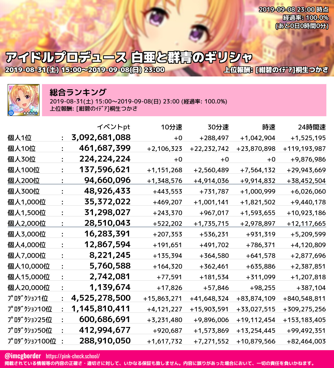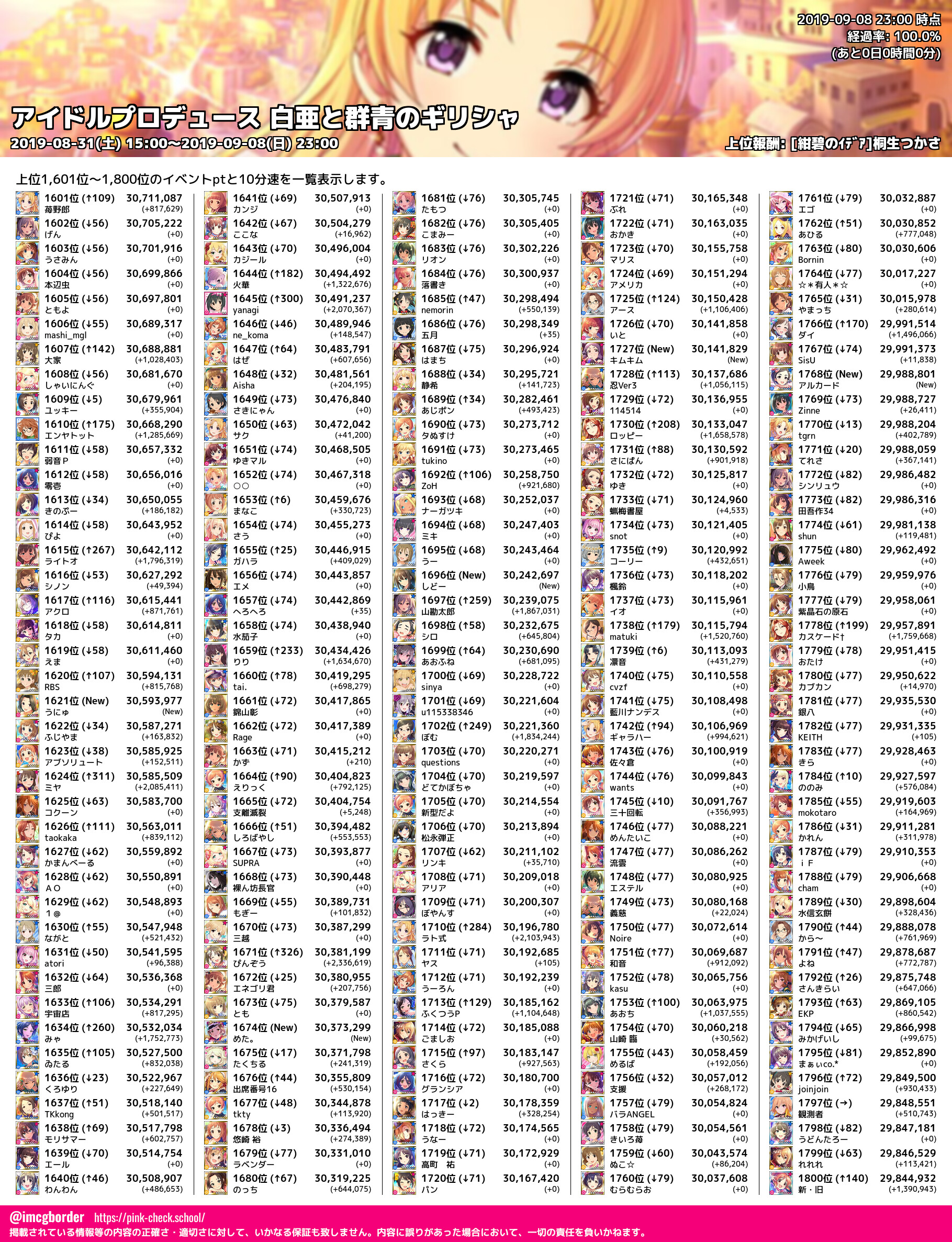 上位プロデューサースコア (2019-09-08 23:00 時点)