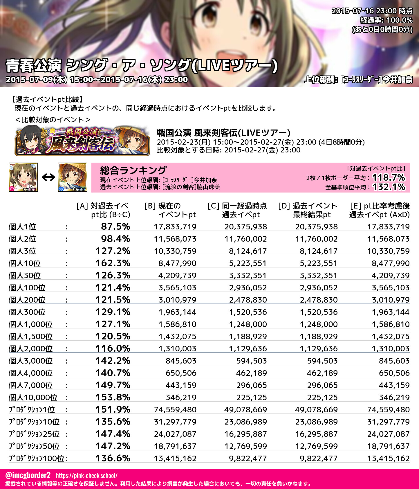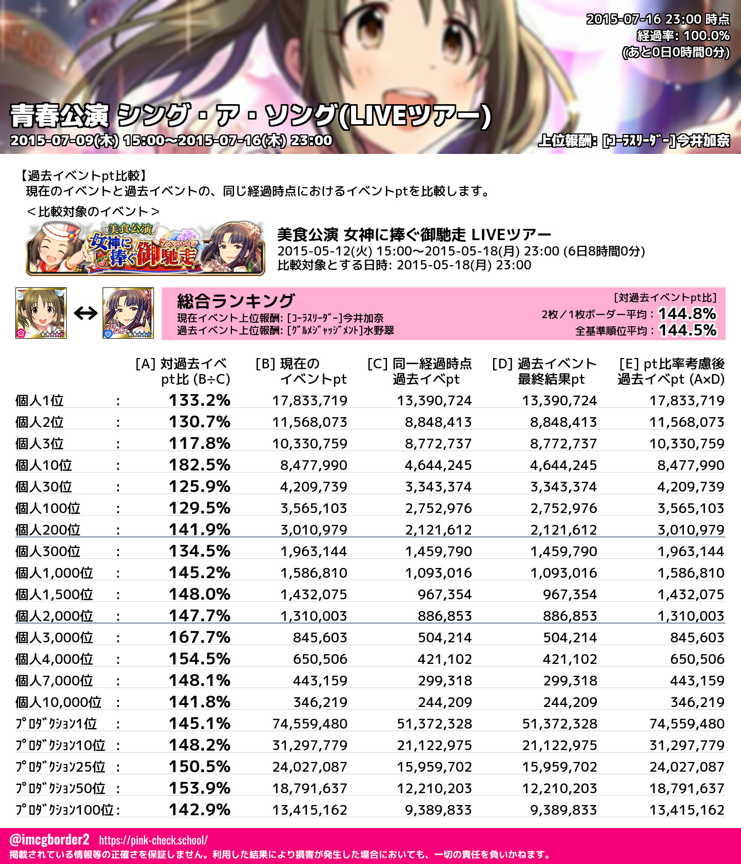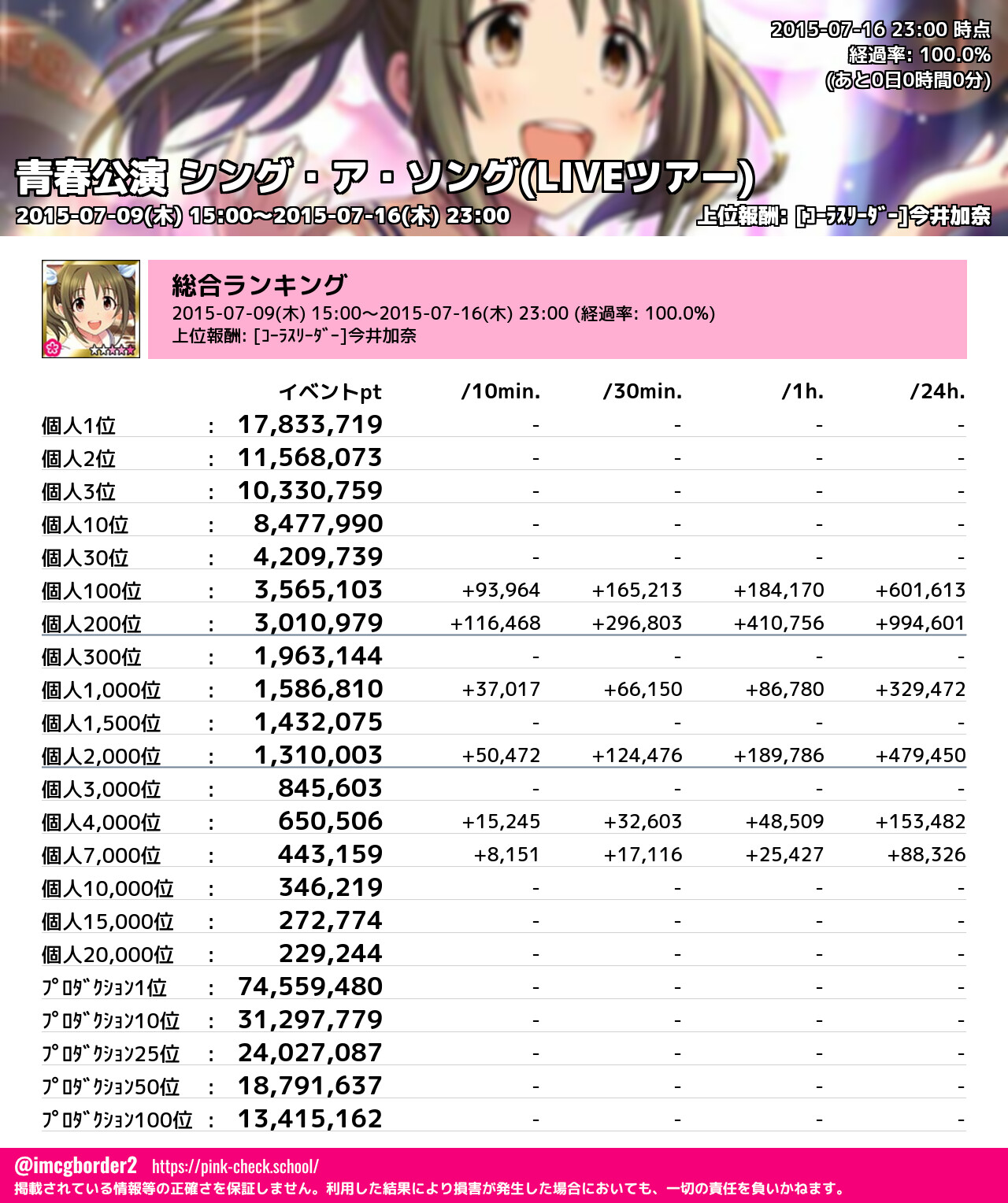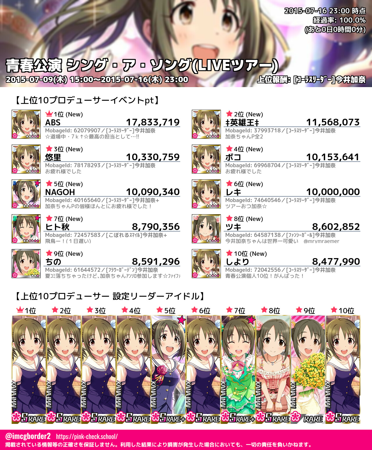 上位プロデューサースコア (2015-07-16 23:00 時点)