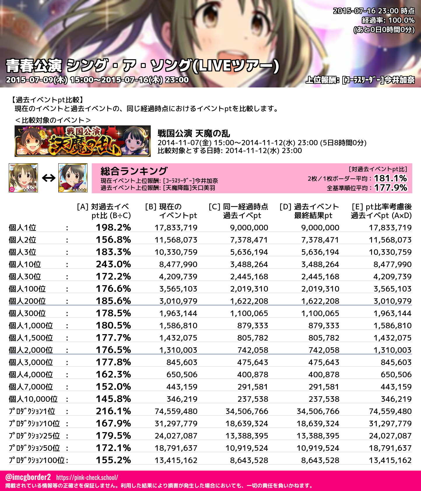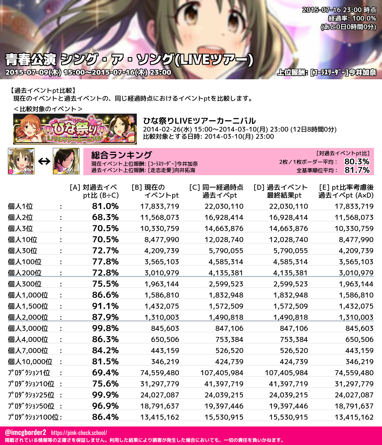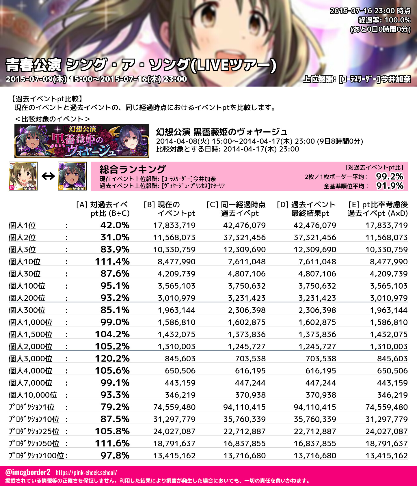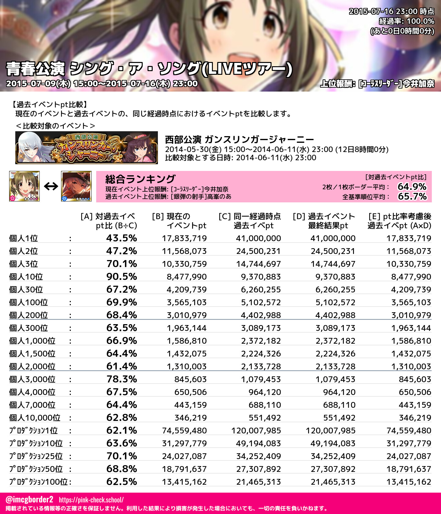 上位プロデューサースコア (2015-07-16 23:00 時点)