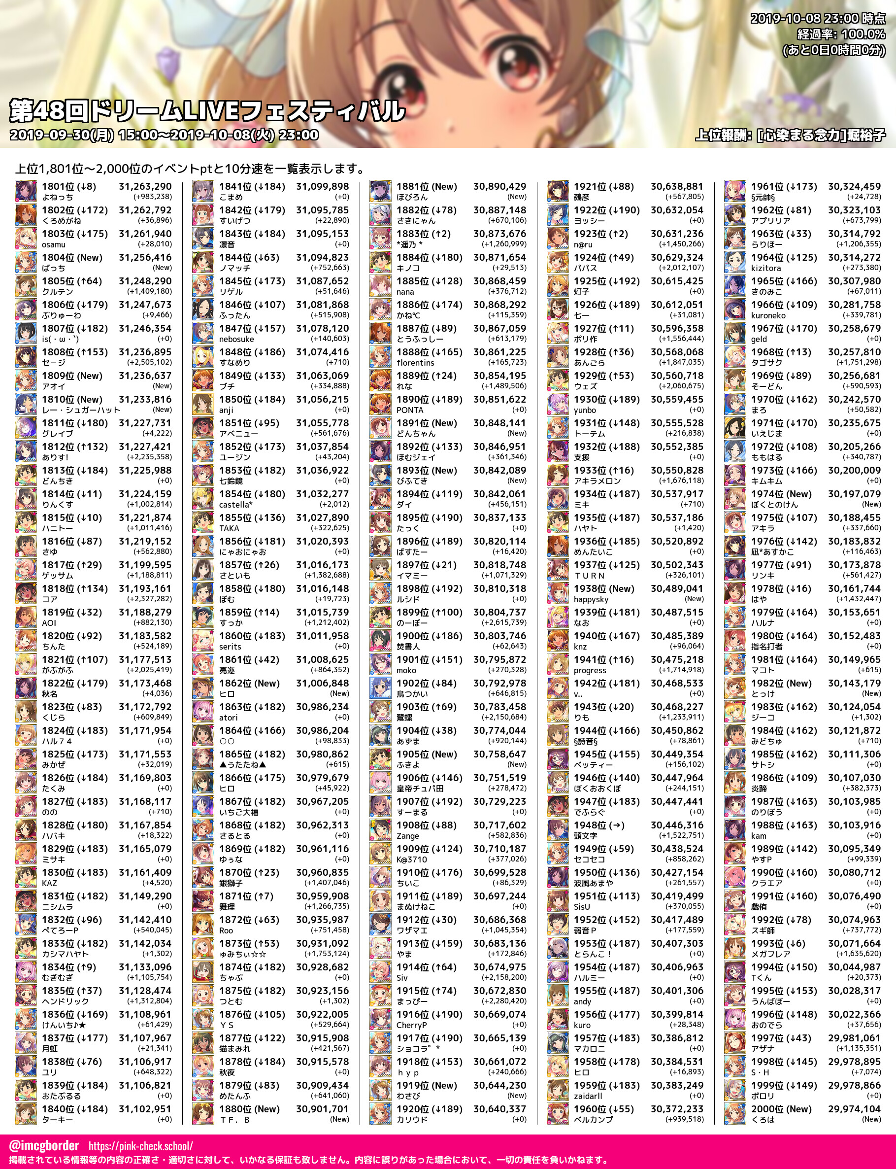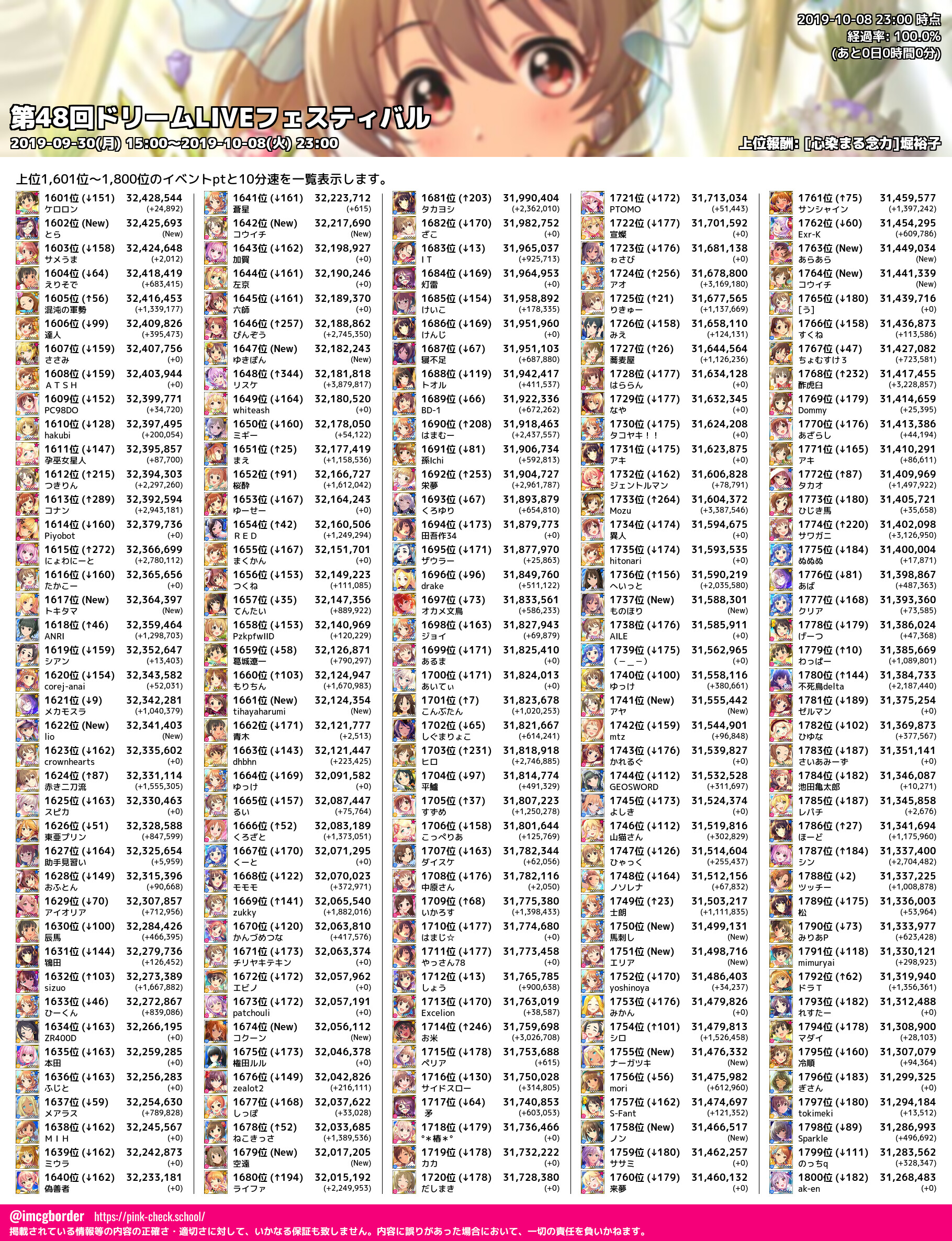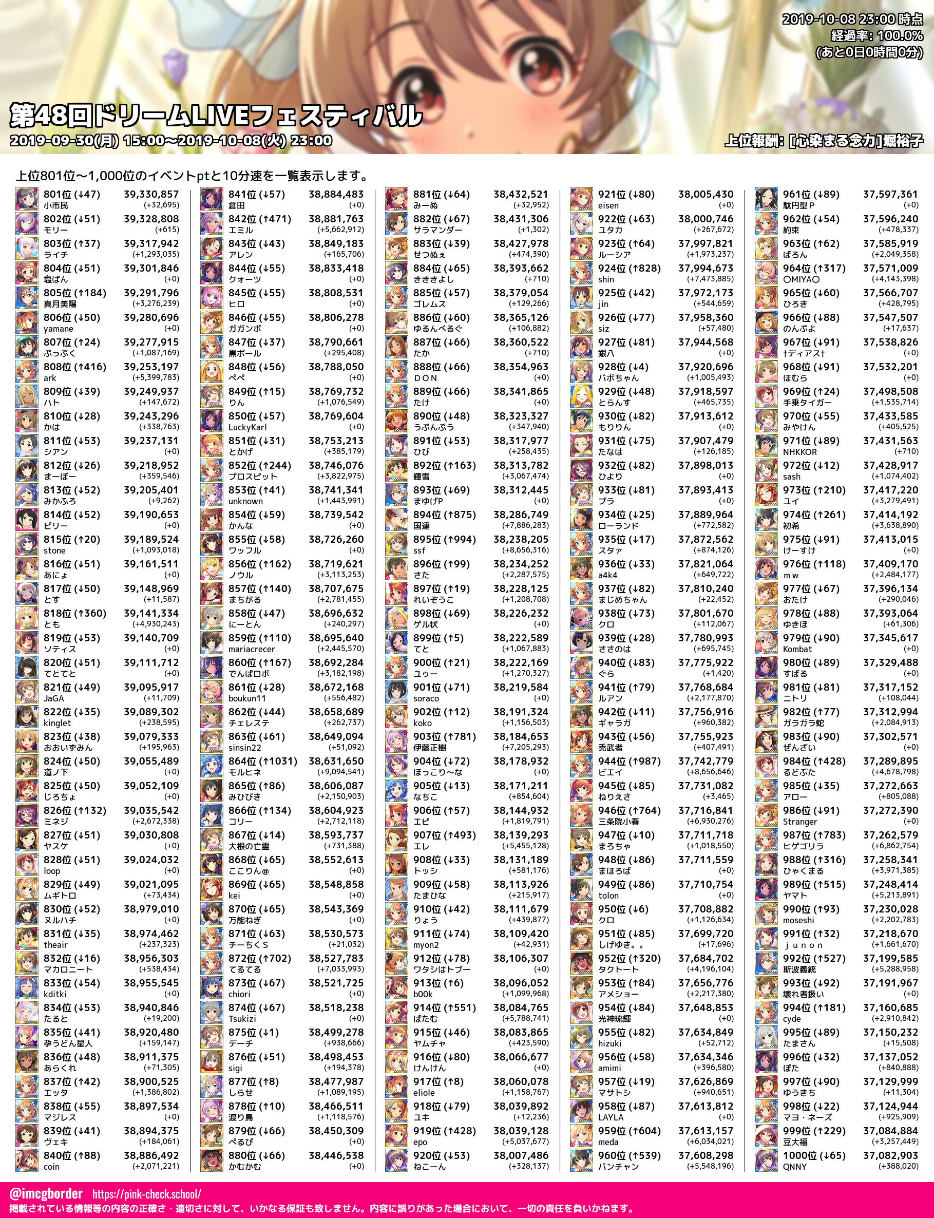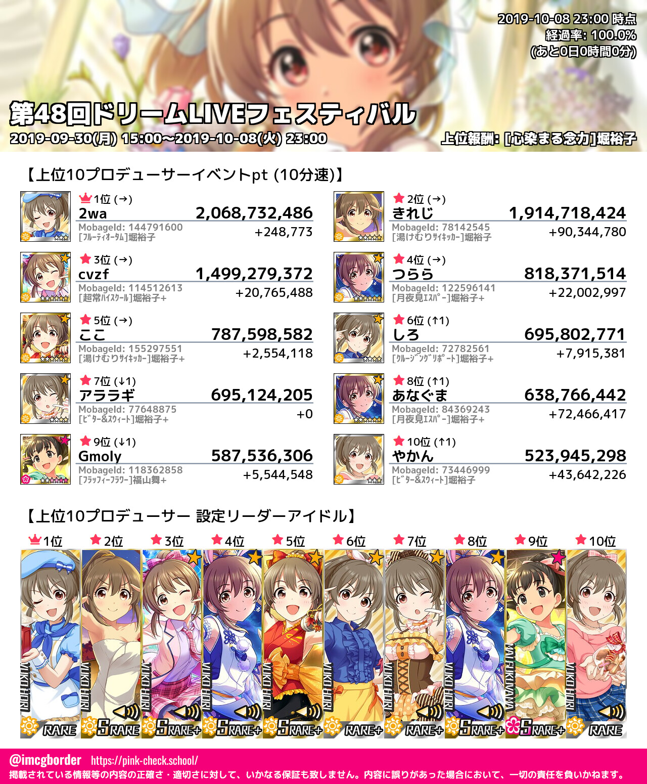 上位プロデューサースコア (2019-10-08 23:00 時点)