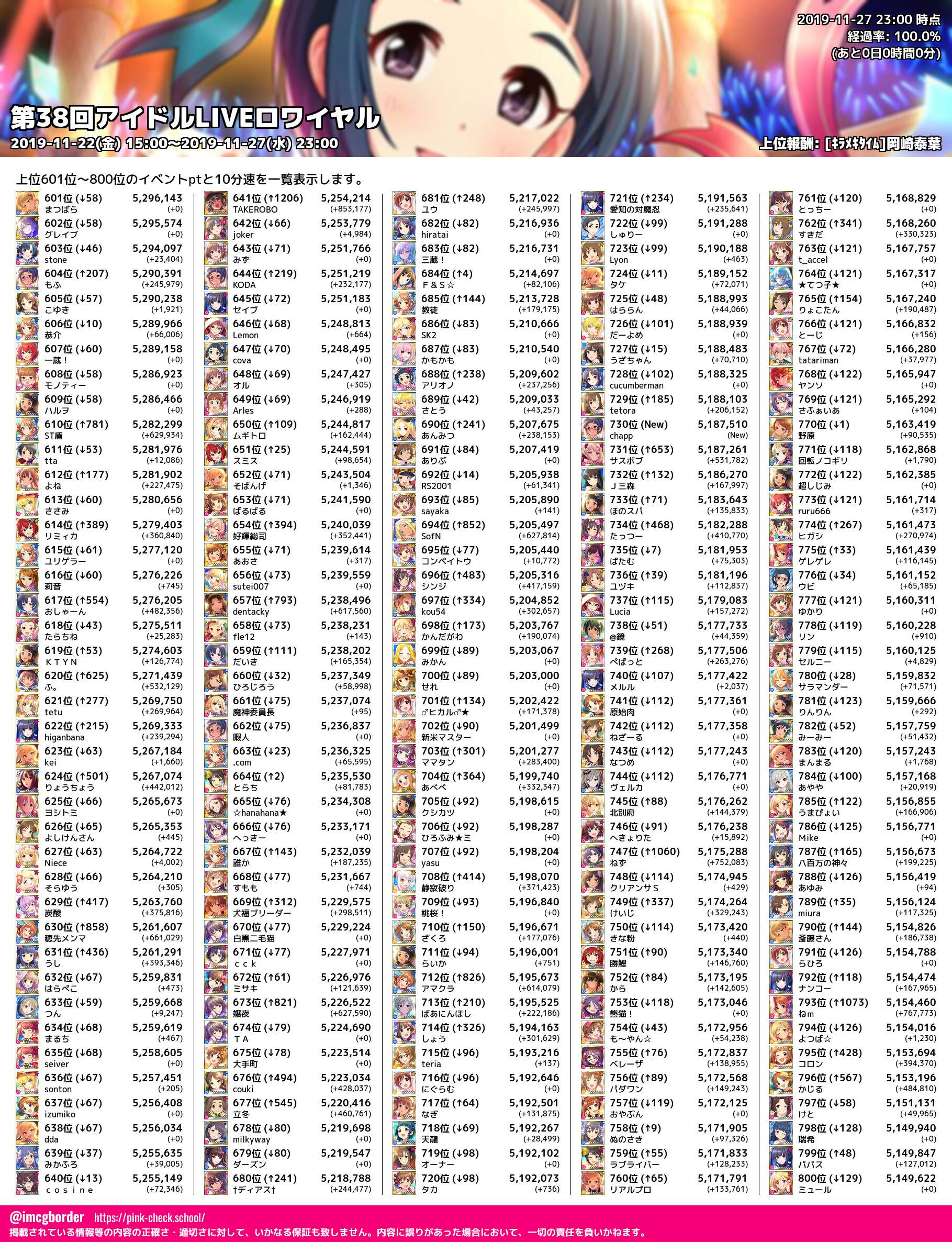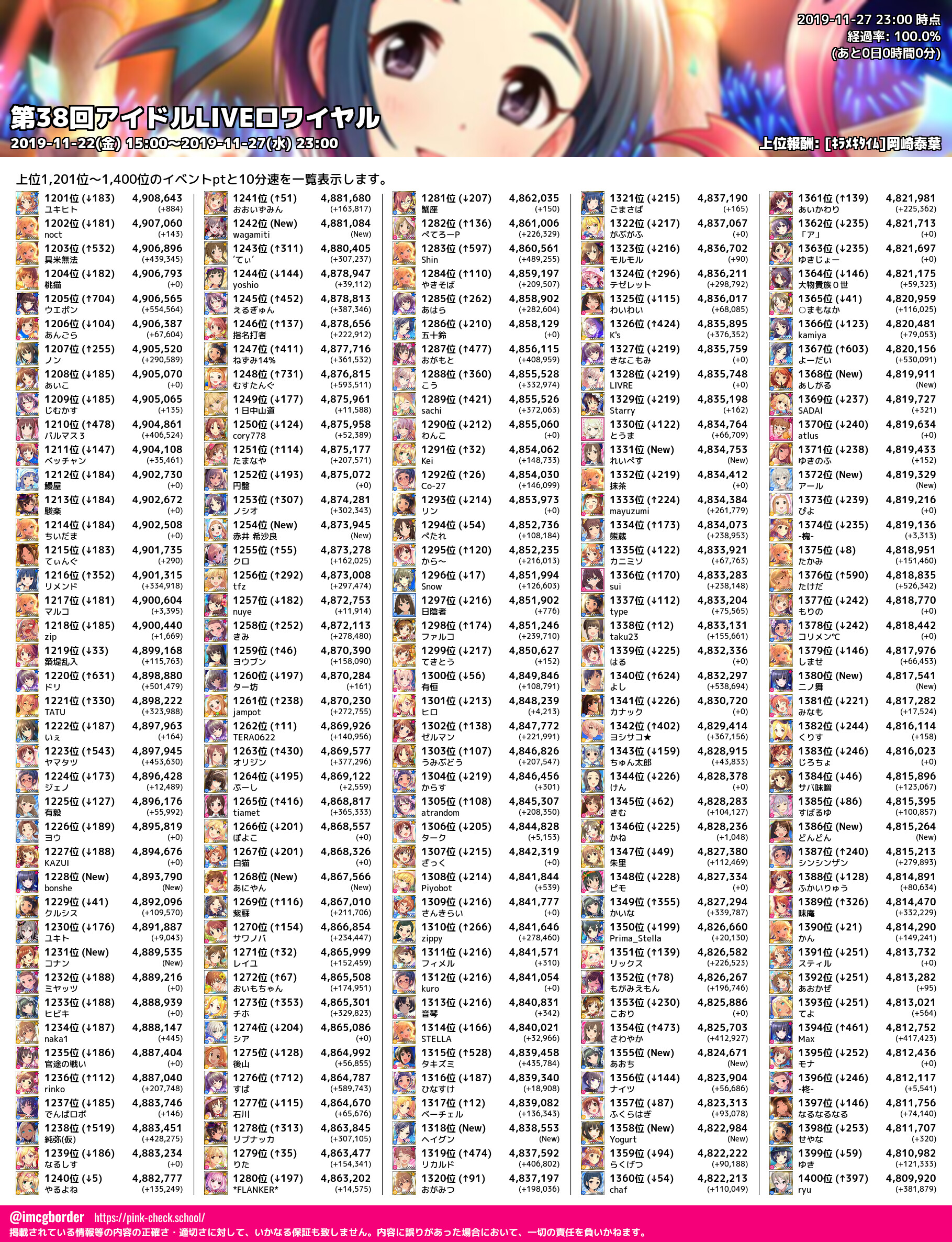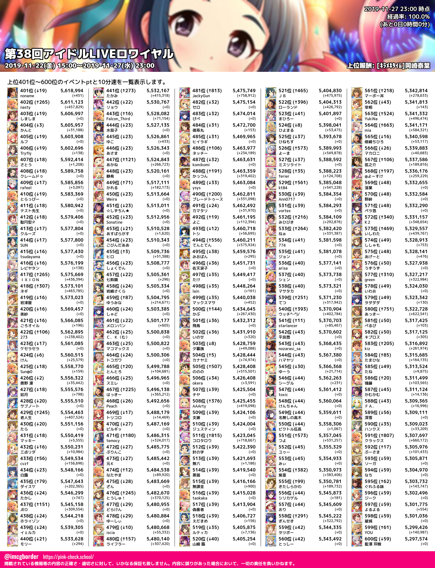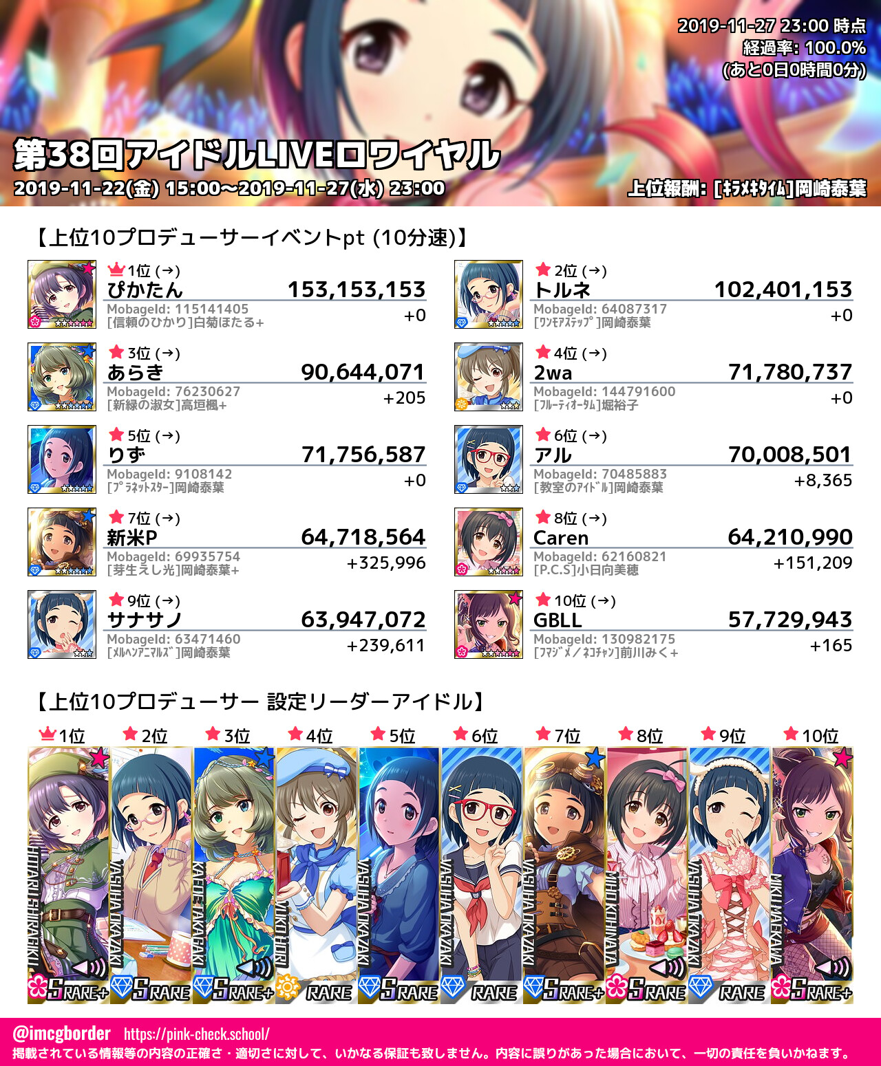上位プロデューサースコア (2019-11-27 23:00 時点)