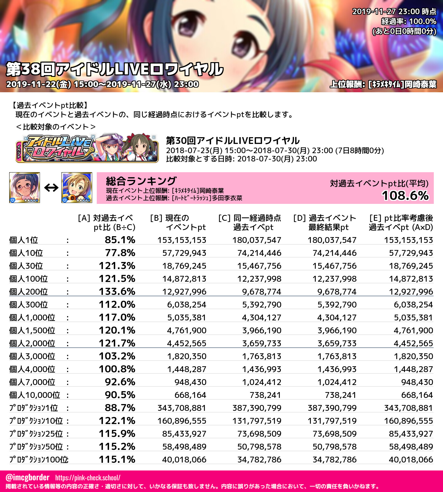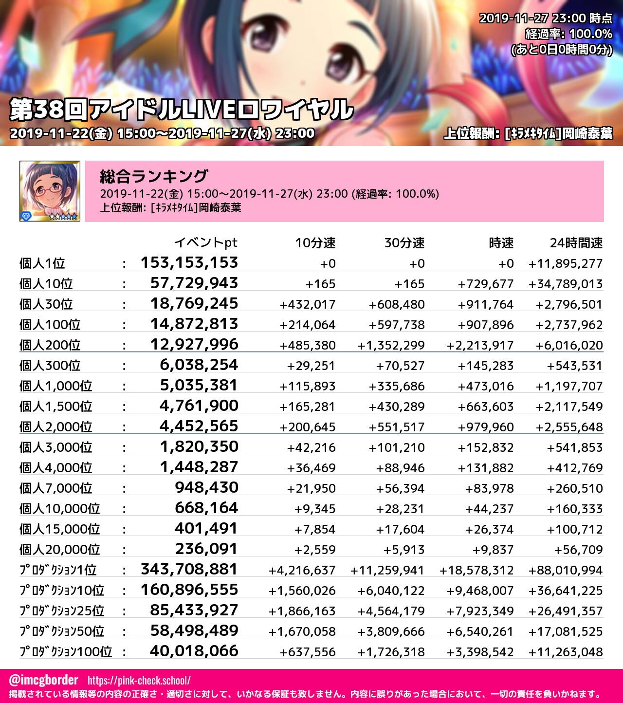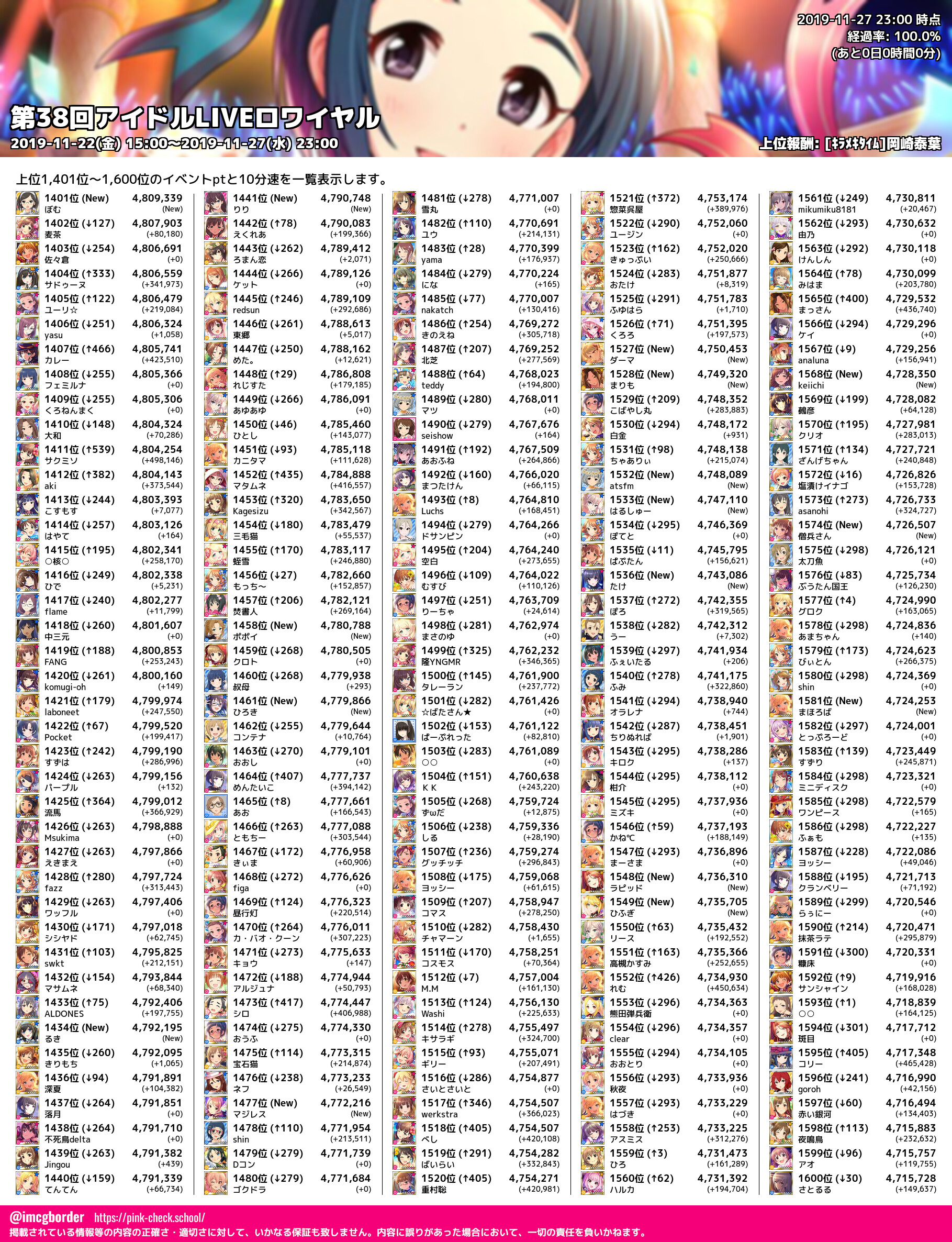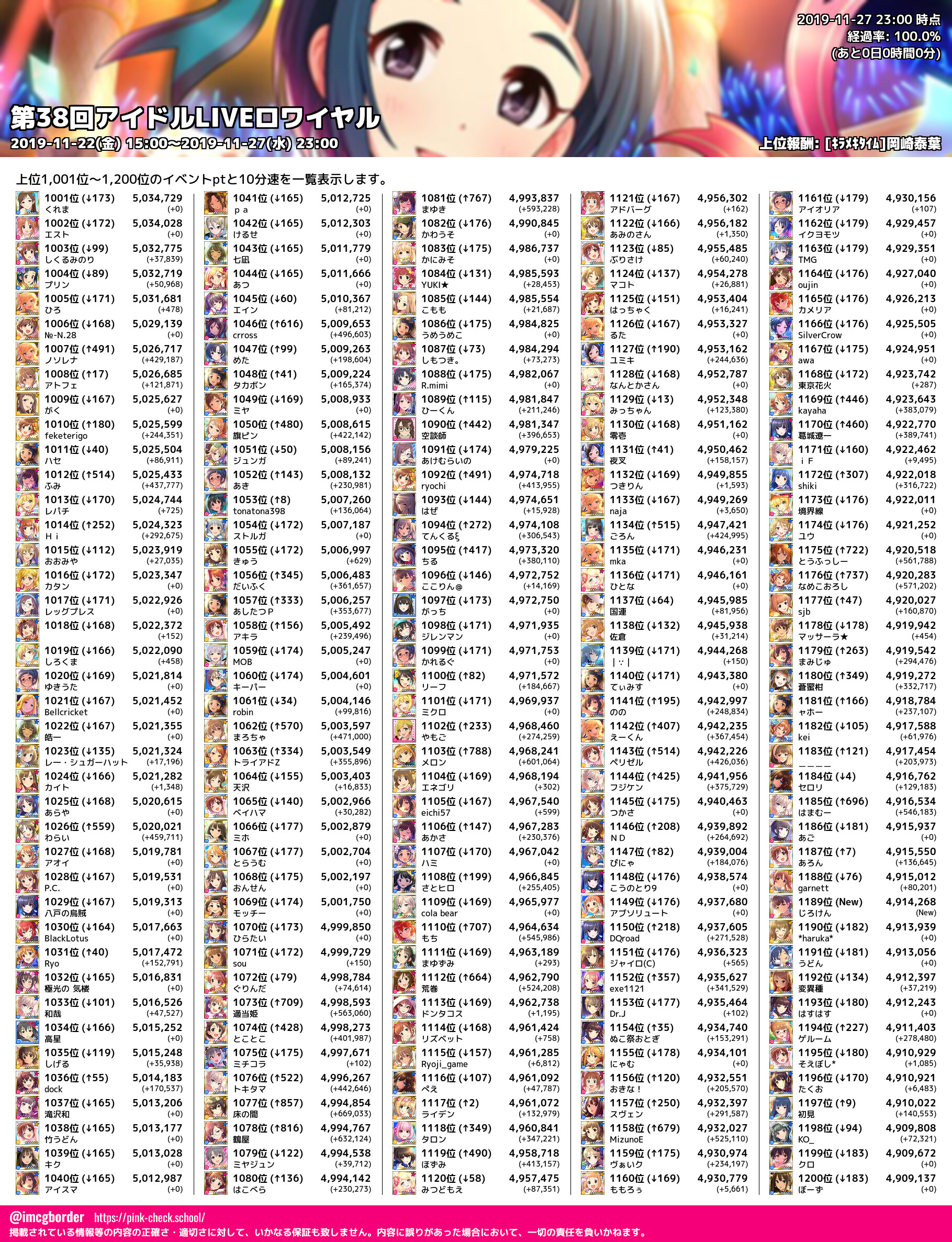 上位プロデューサースコア (2019-11-27 23:00 時点)