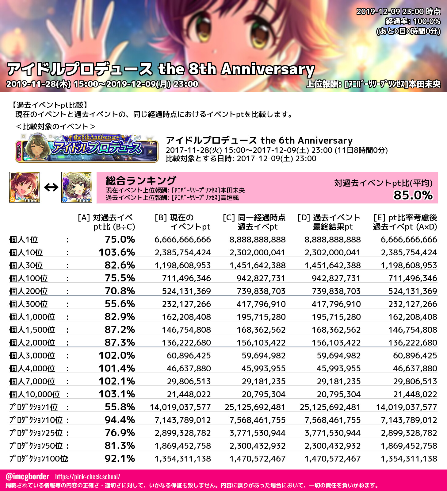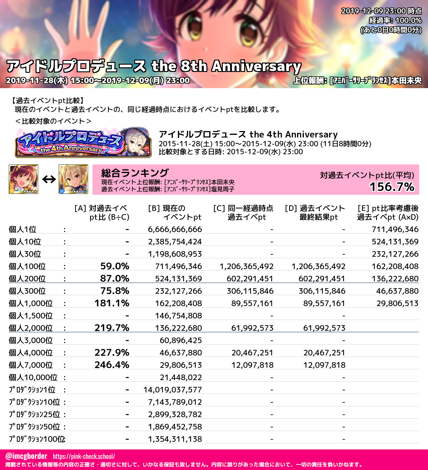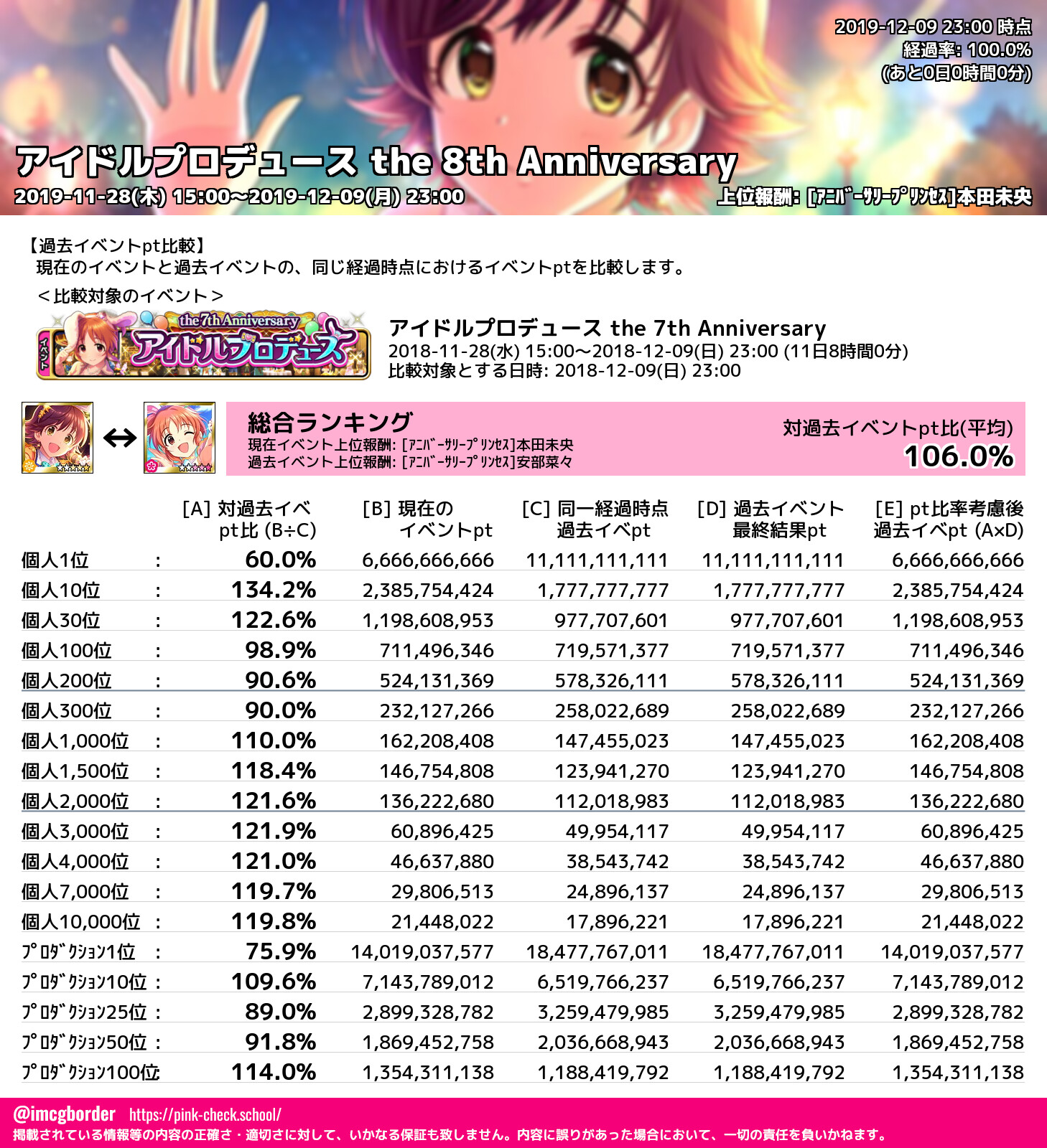 アイドルプロデュース the 8th Anniversary 結果集計完了