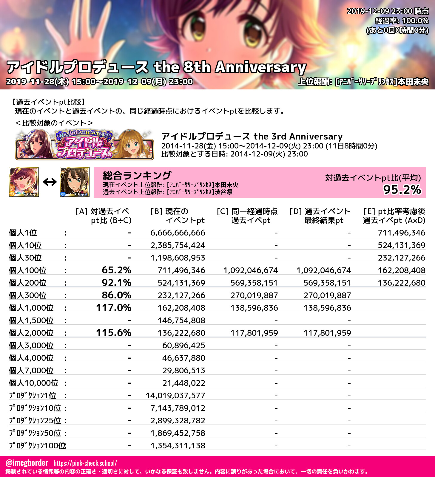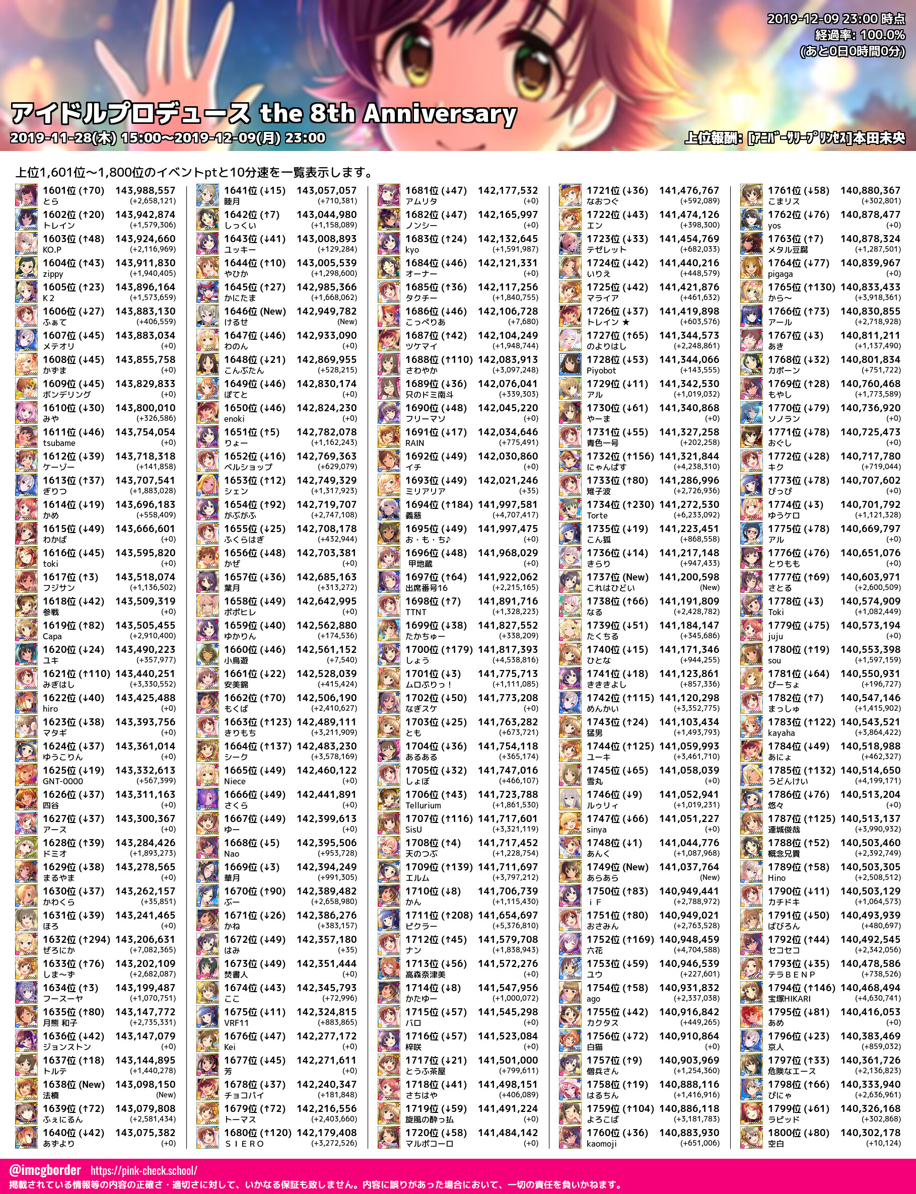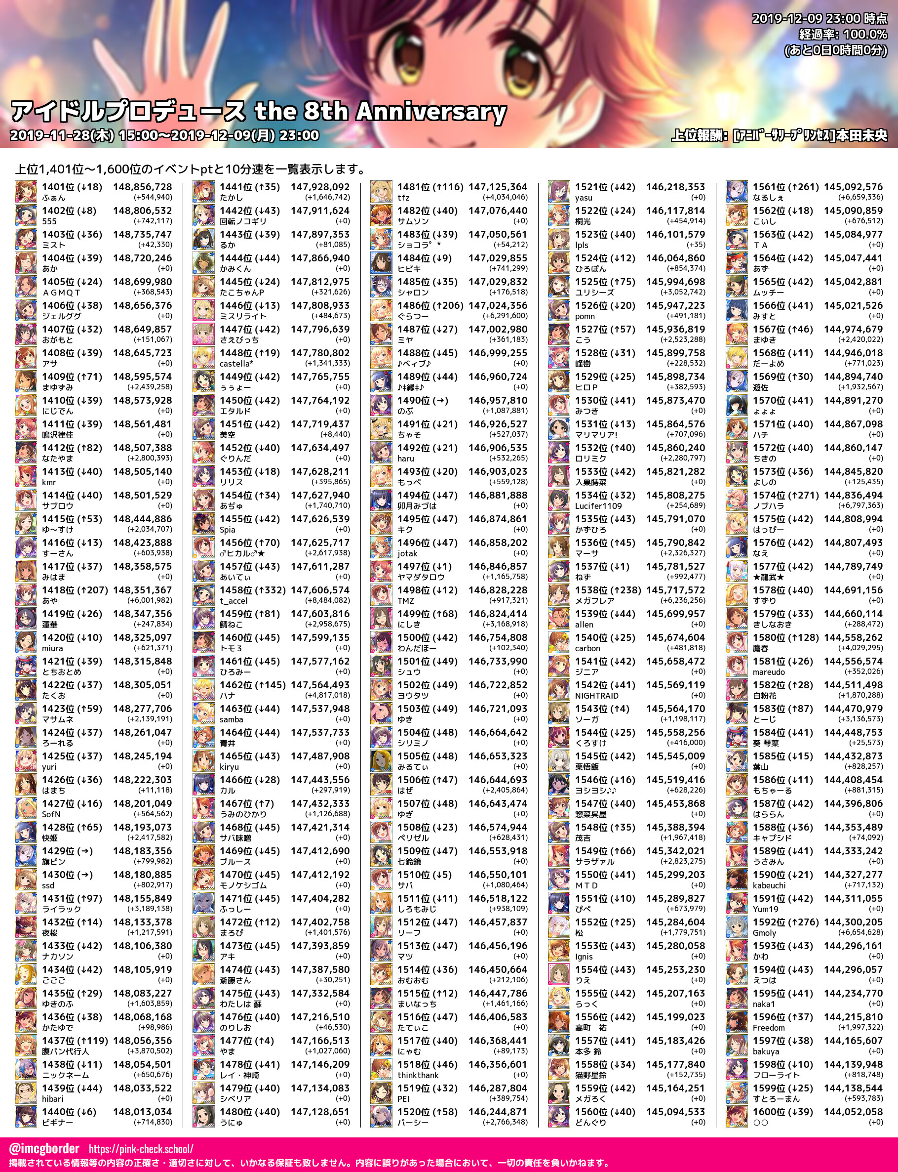 アイドルプロデュース the 8th Anniversary 結果集計完了