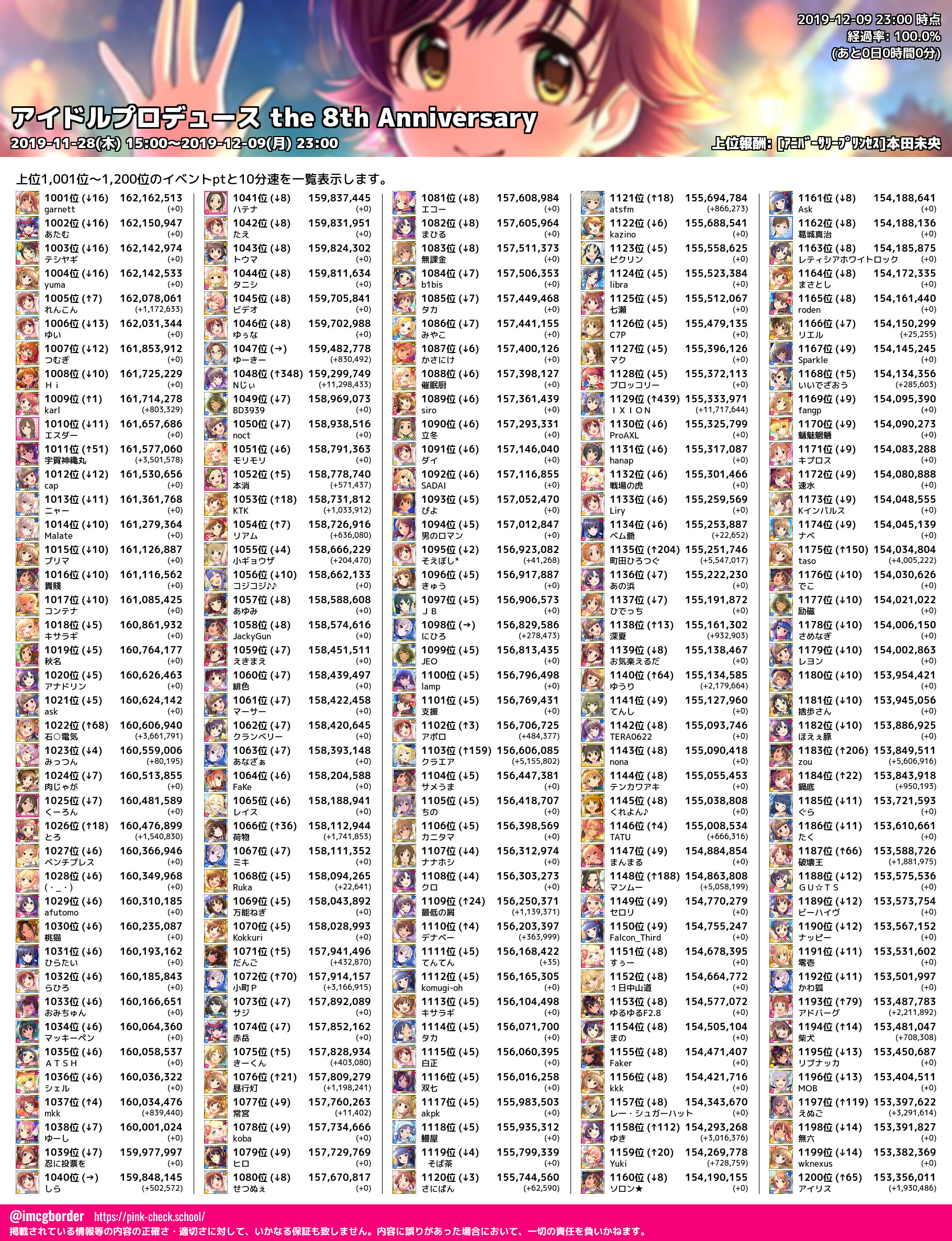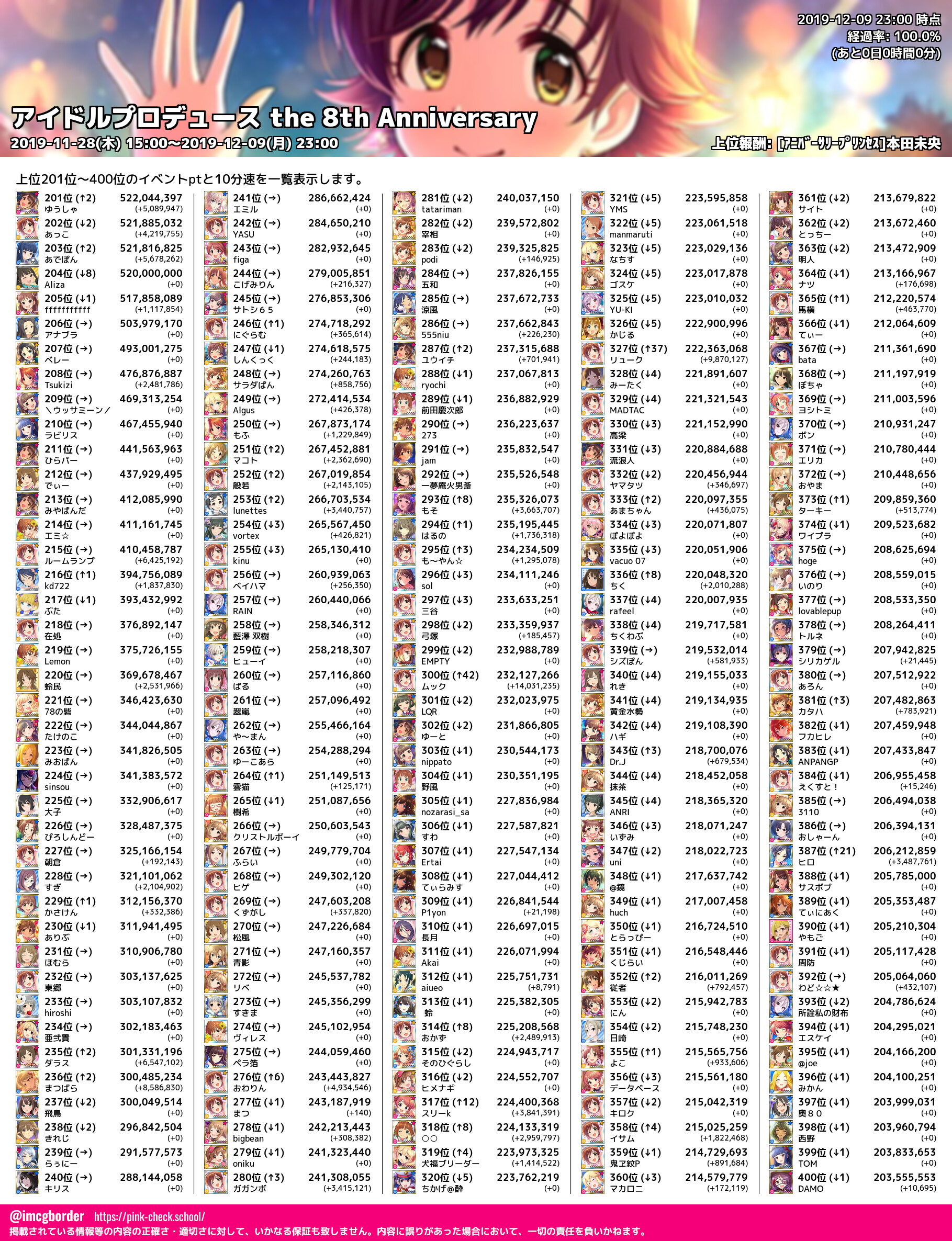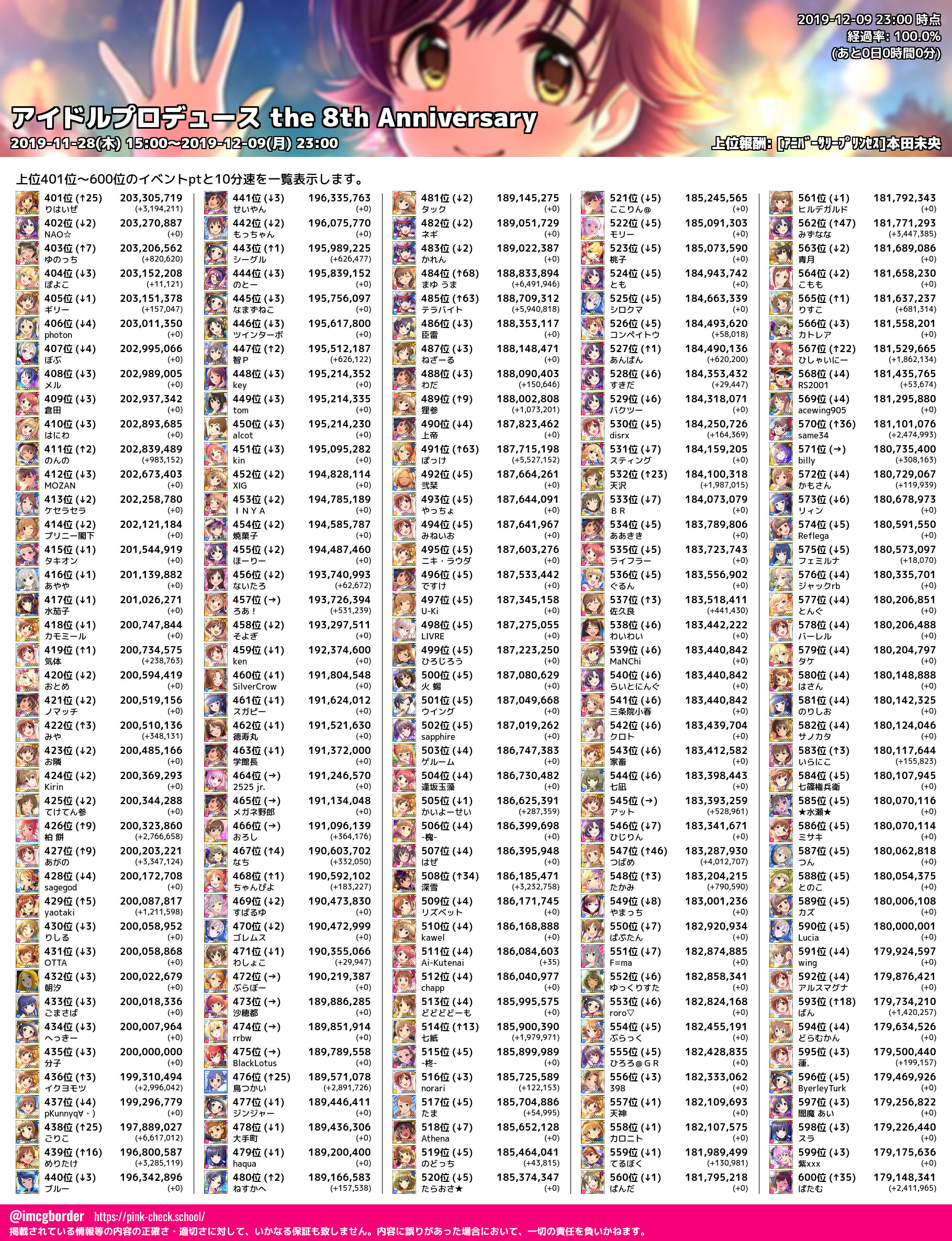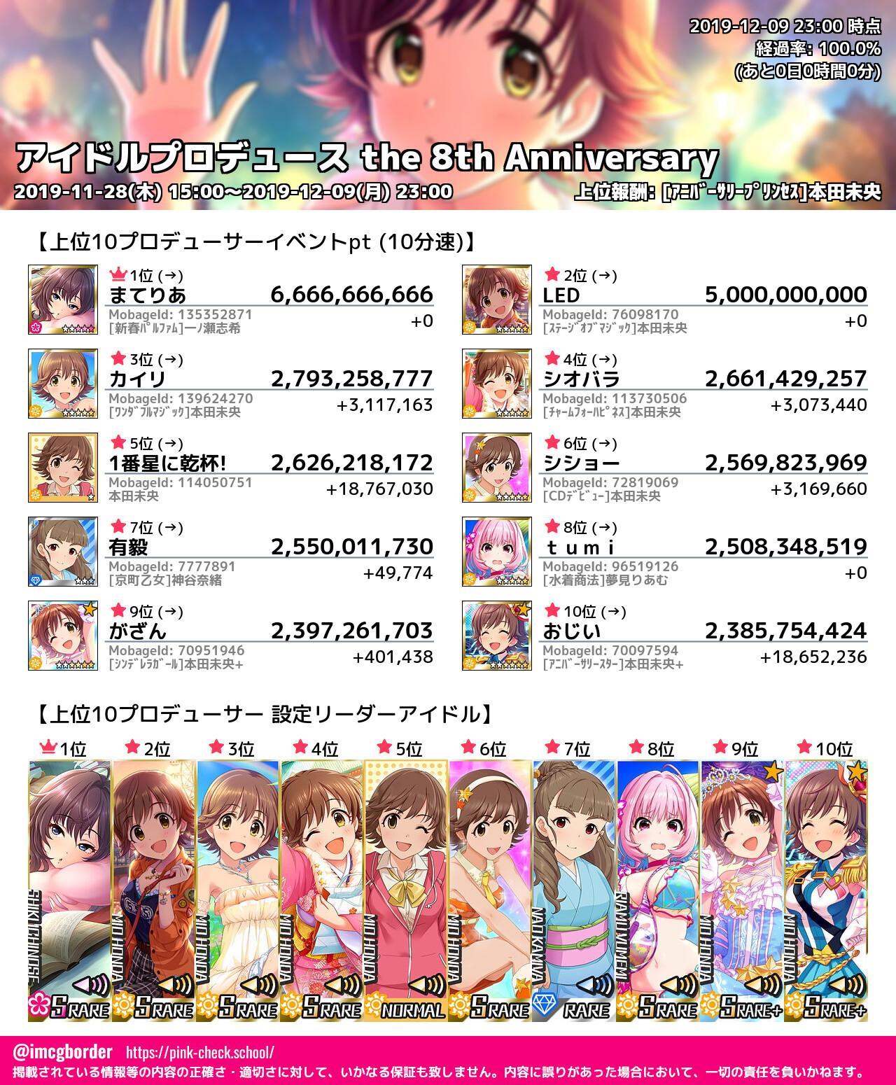 上位プロデューサースコア (2019-12-09 23:00 時点)