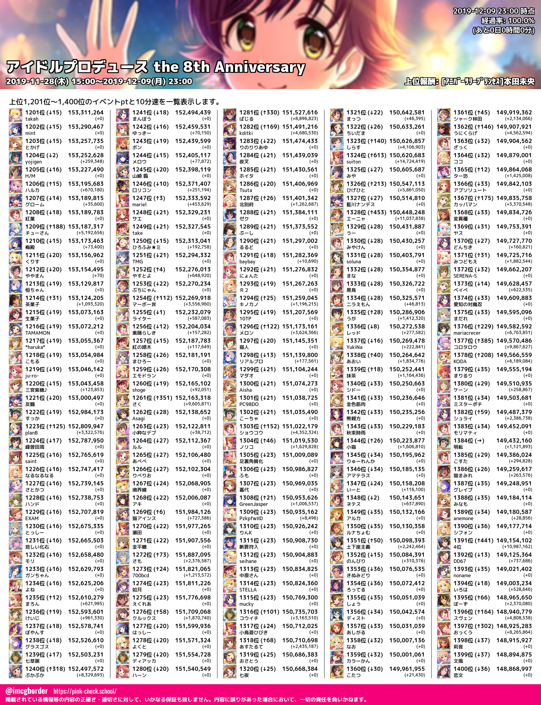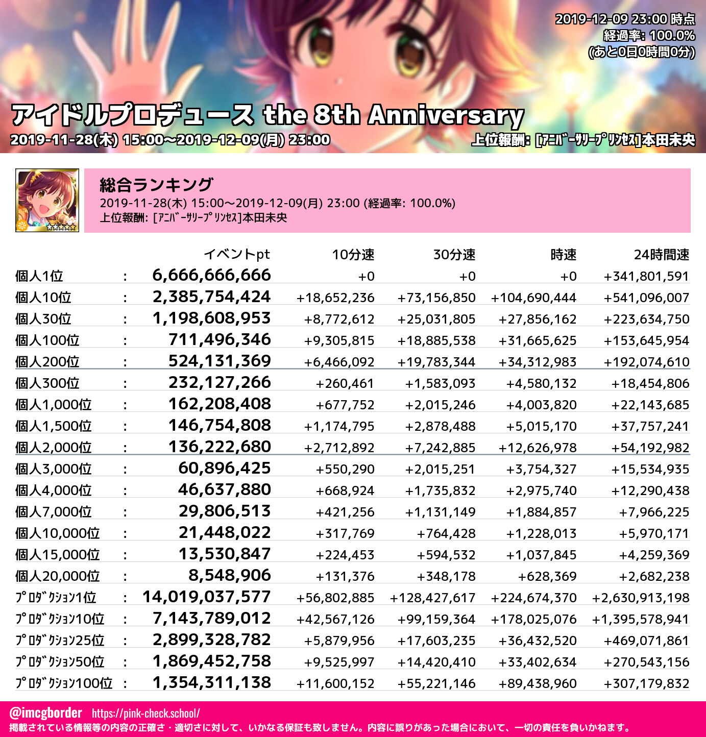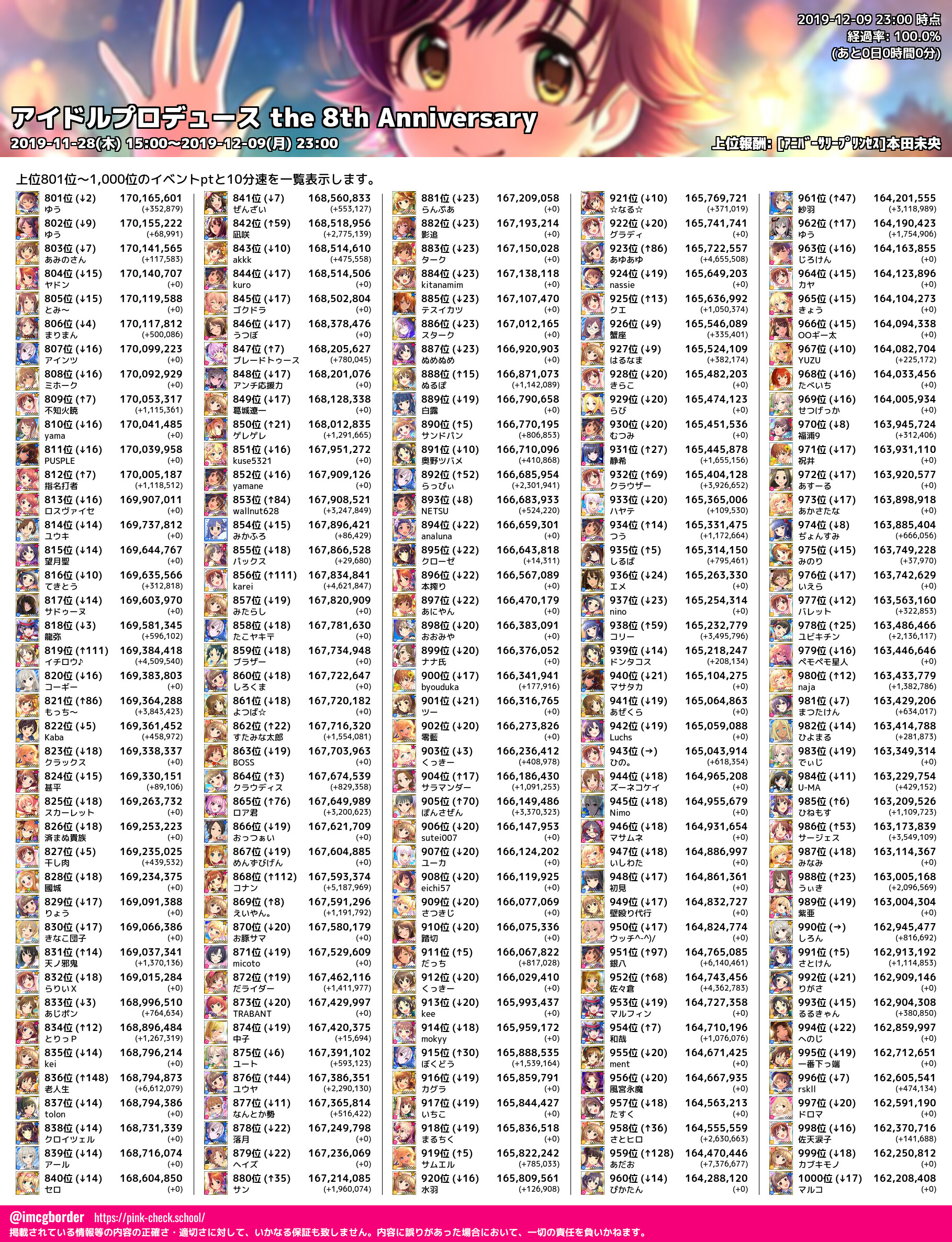 上位プロデューサースコア (2019-12-09 23:00 時点)