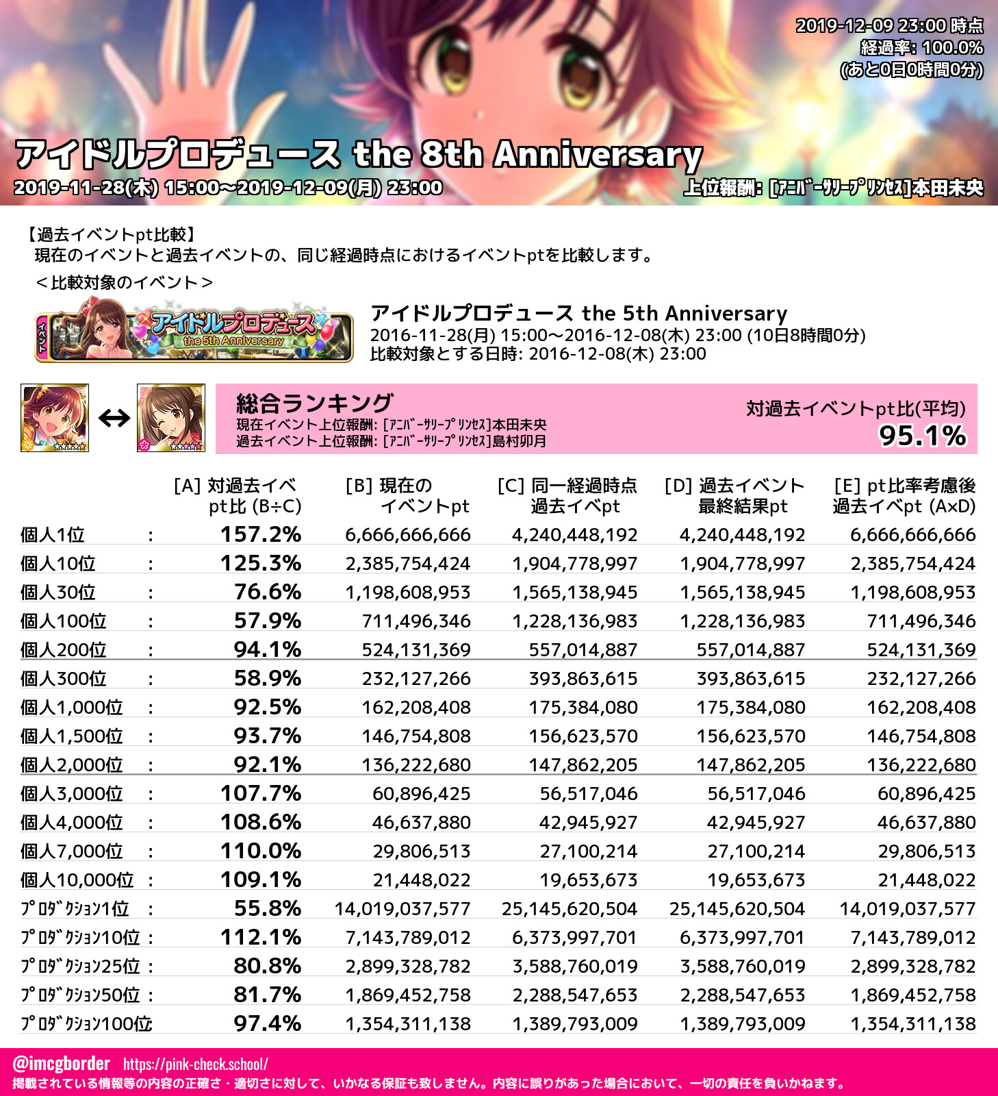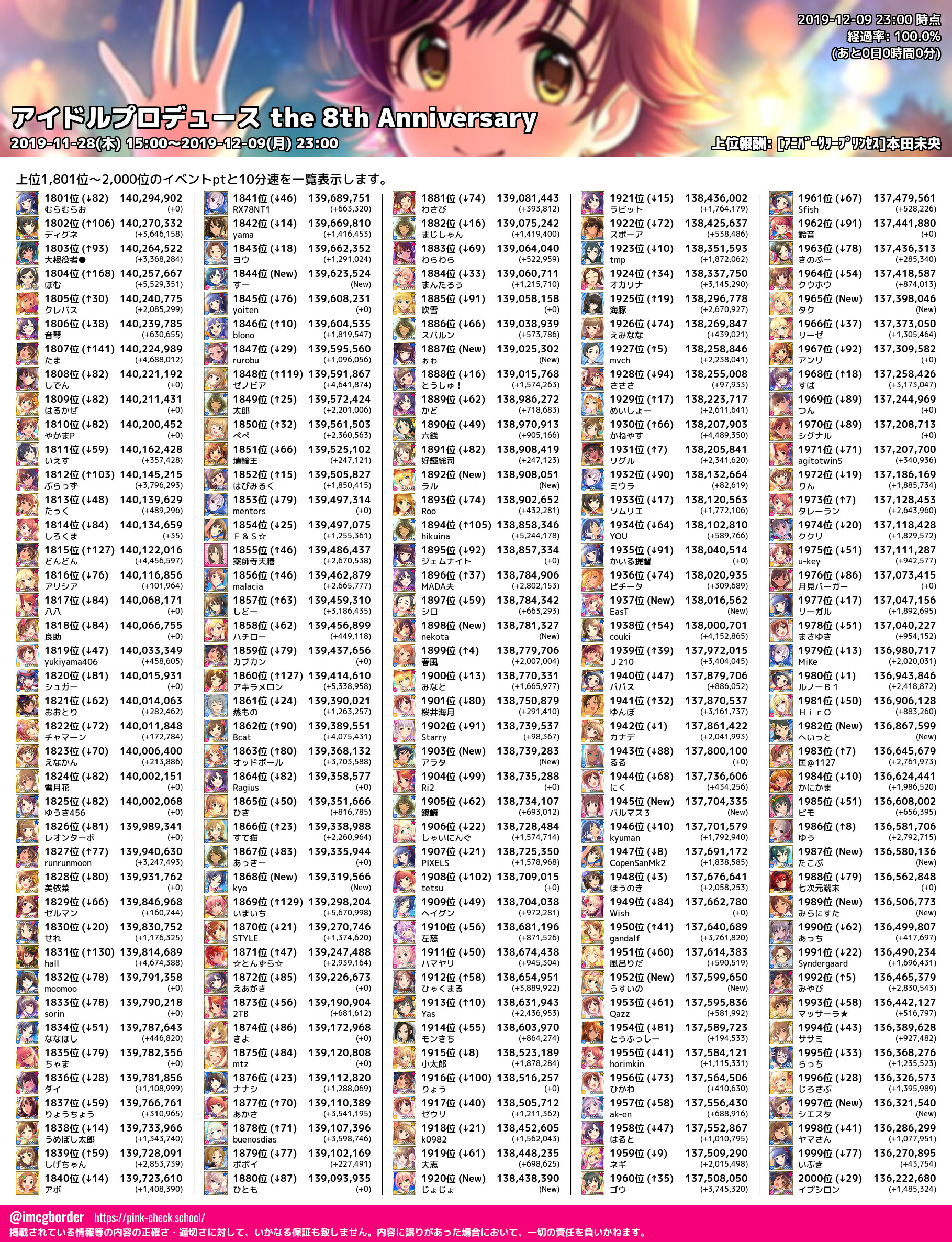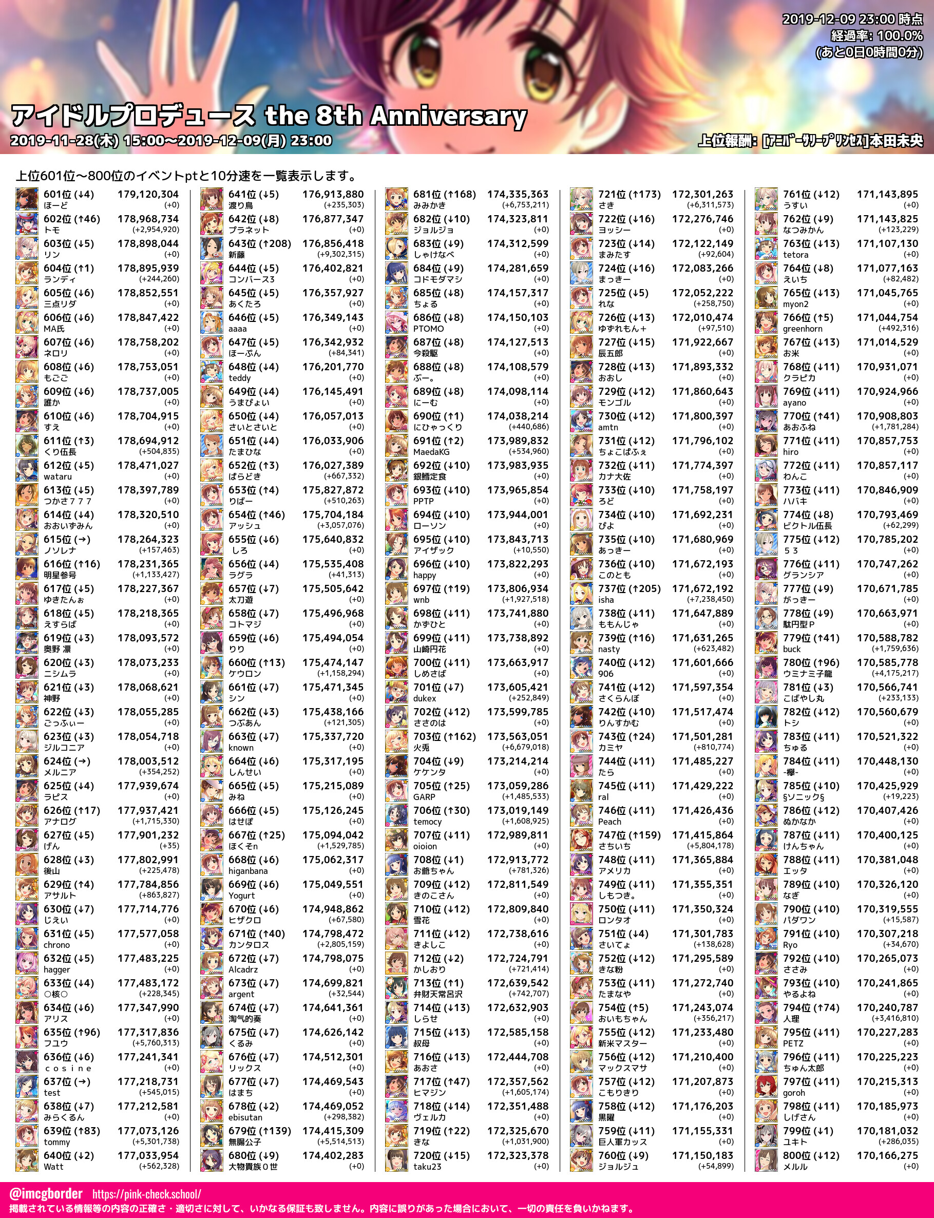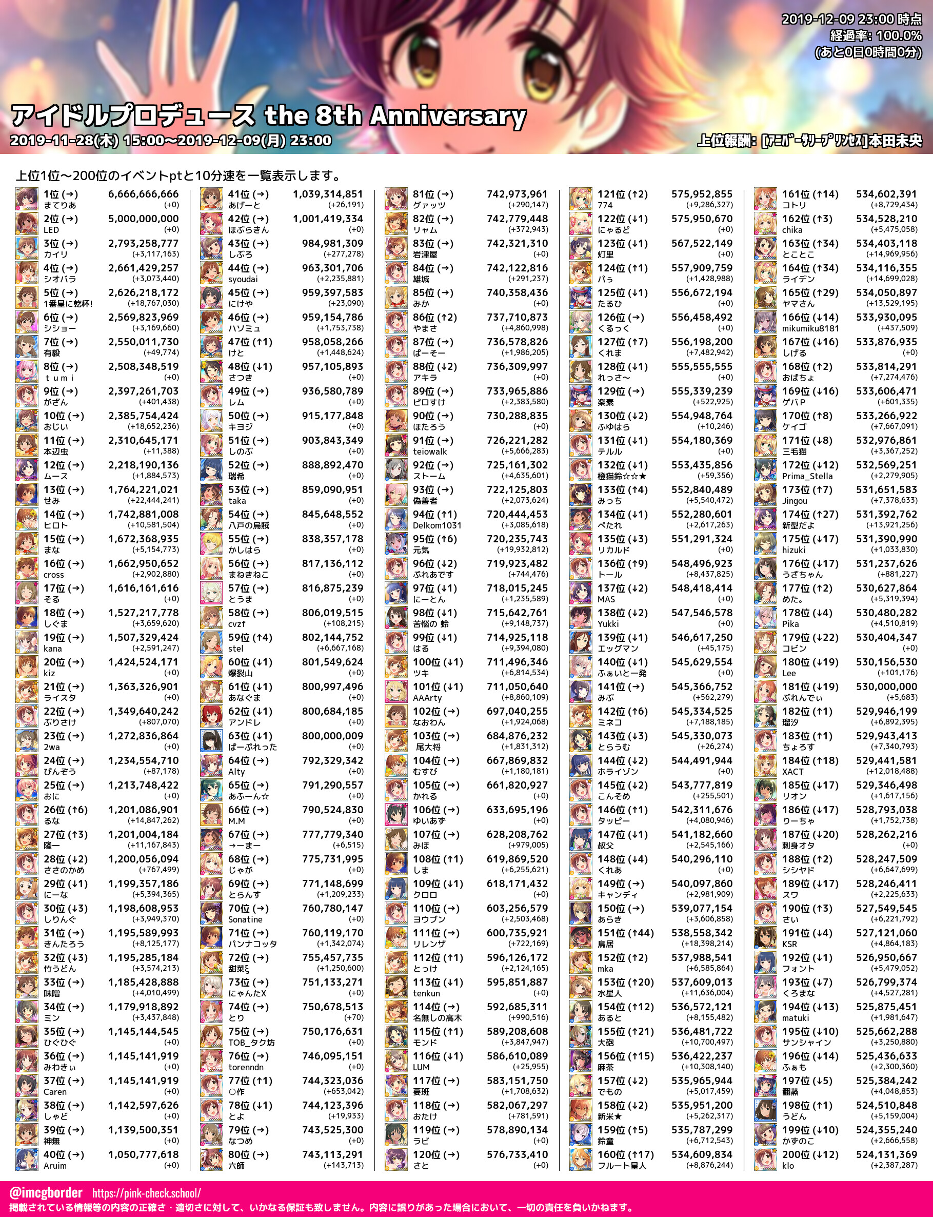 上位プロデューサースコア (2019-12-09 23:00 時点)