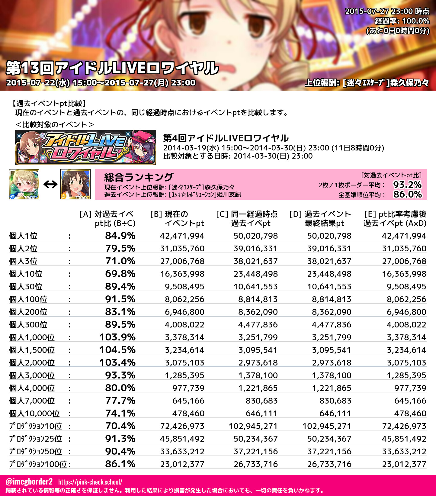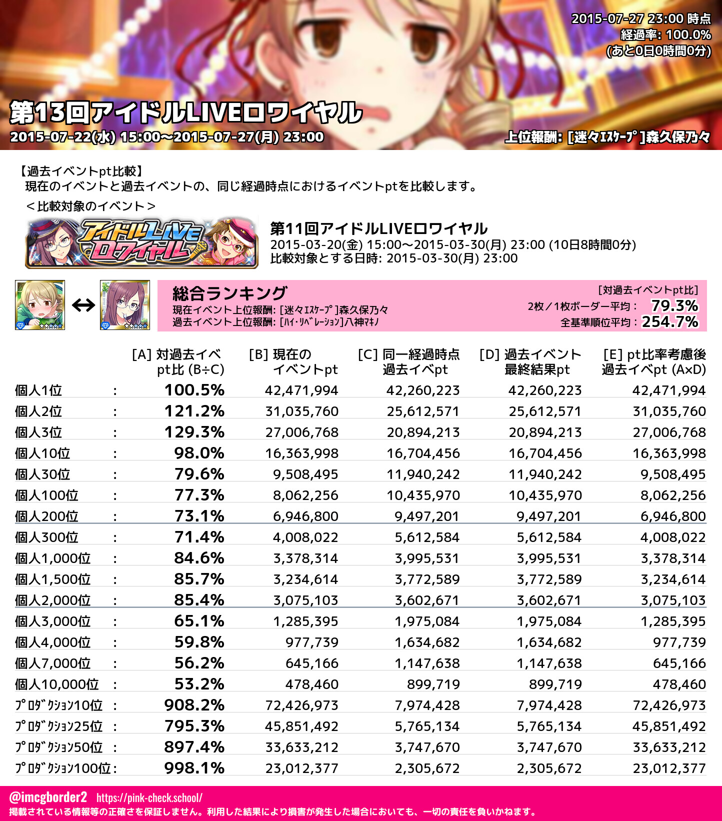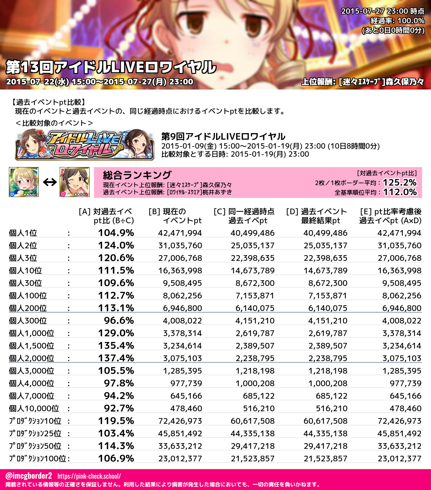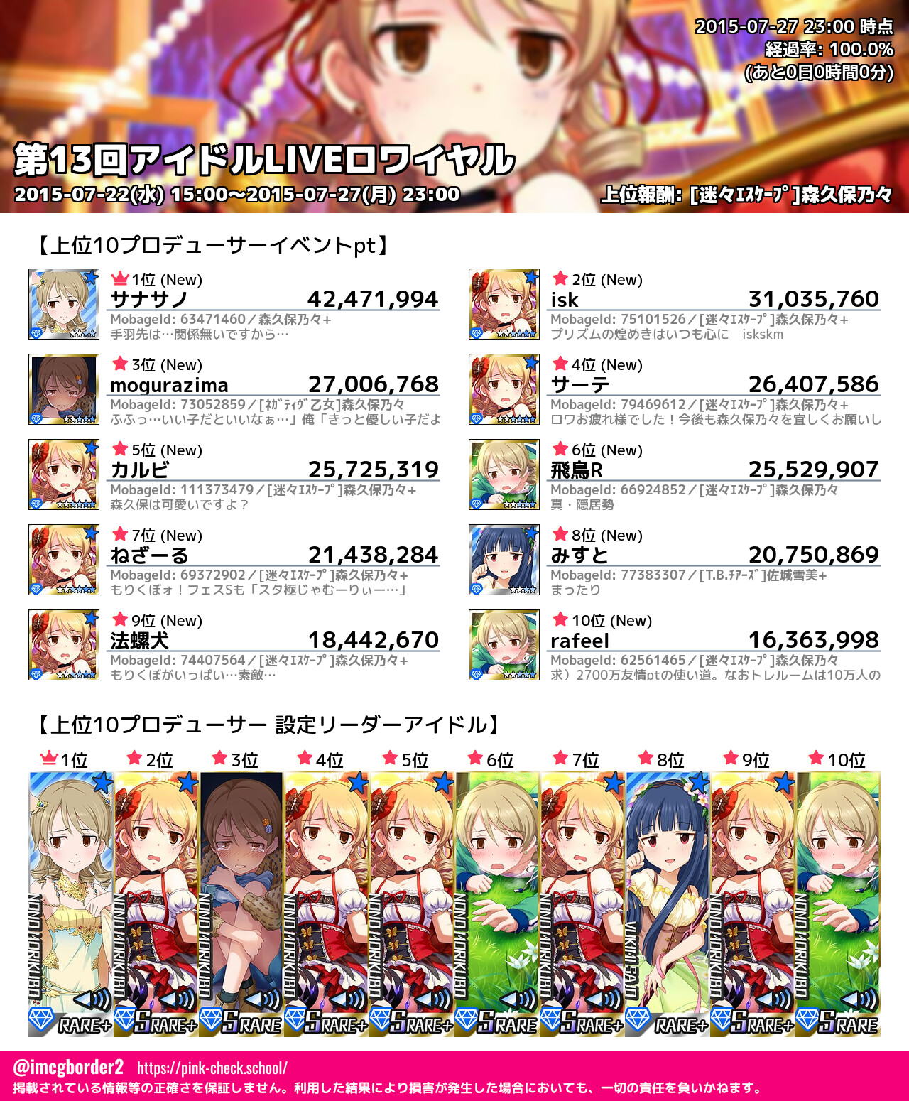 上位プロデューサースコア (2015-07-27 23:00 時点)