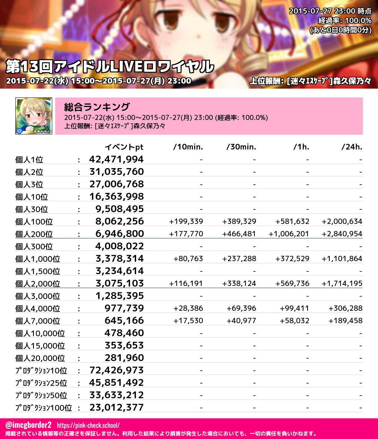 | 結果発表 | 2015-07-27(月) 23:00 |