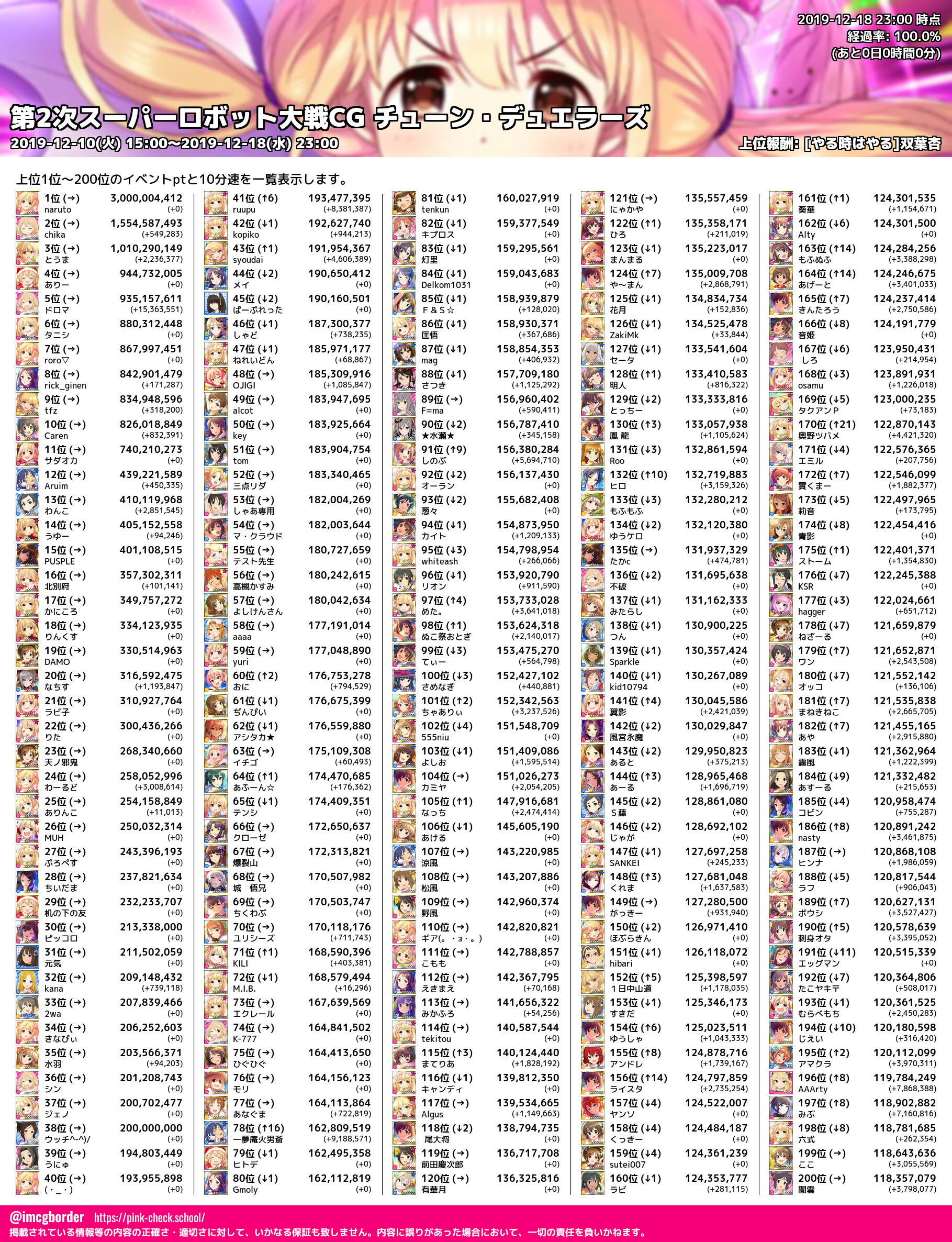 第2次スーパーロボット大戦CG チューン・デュエラーズ 結果集計完了