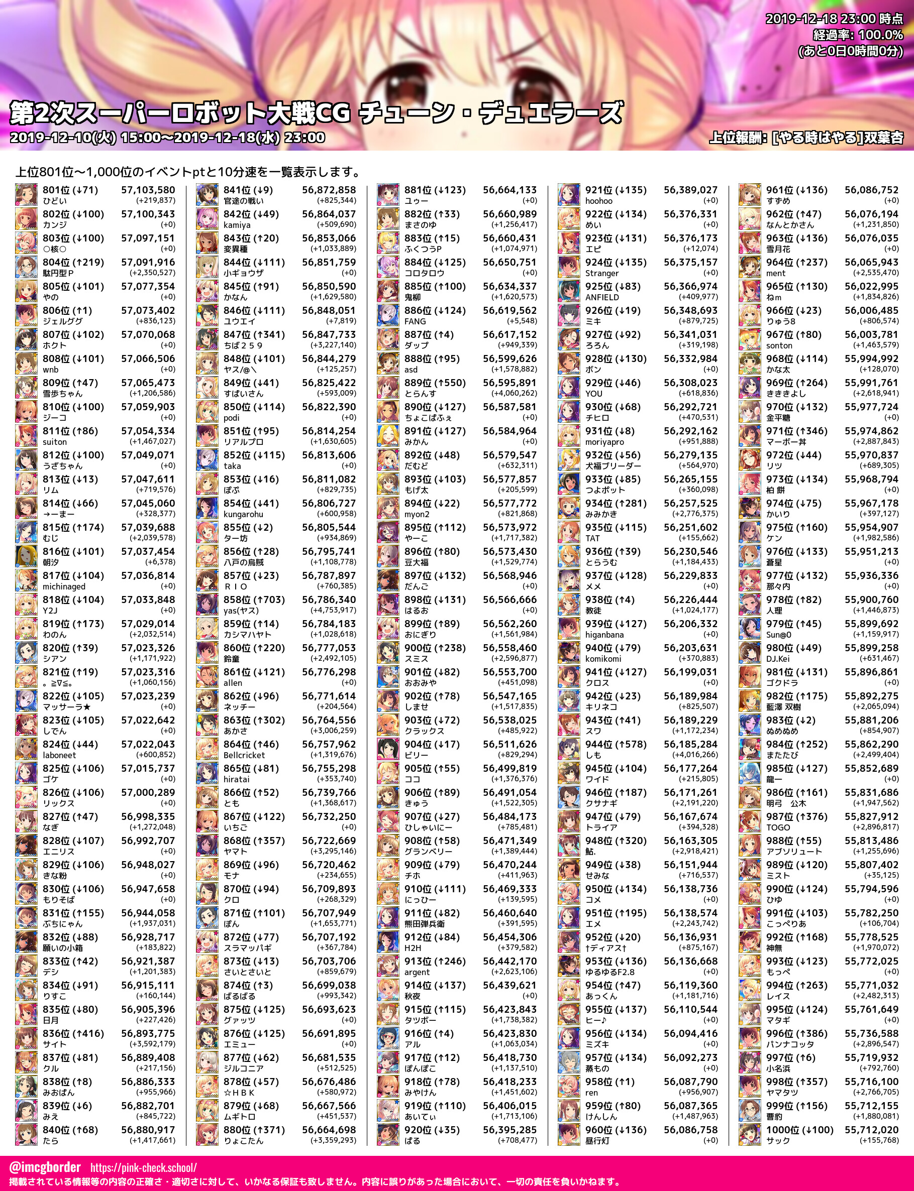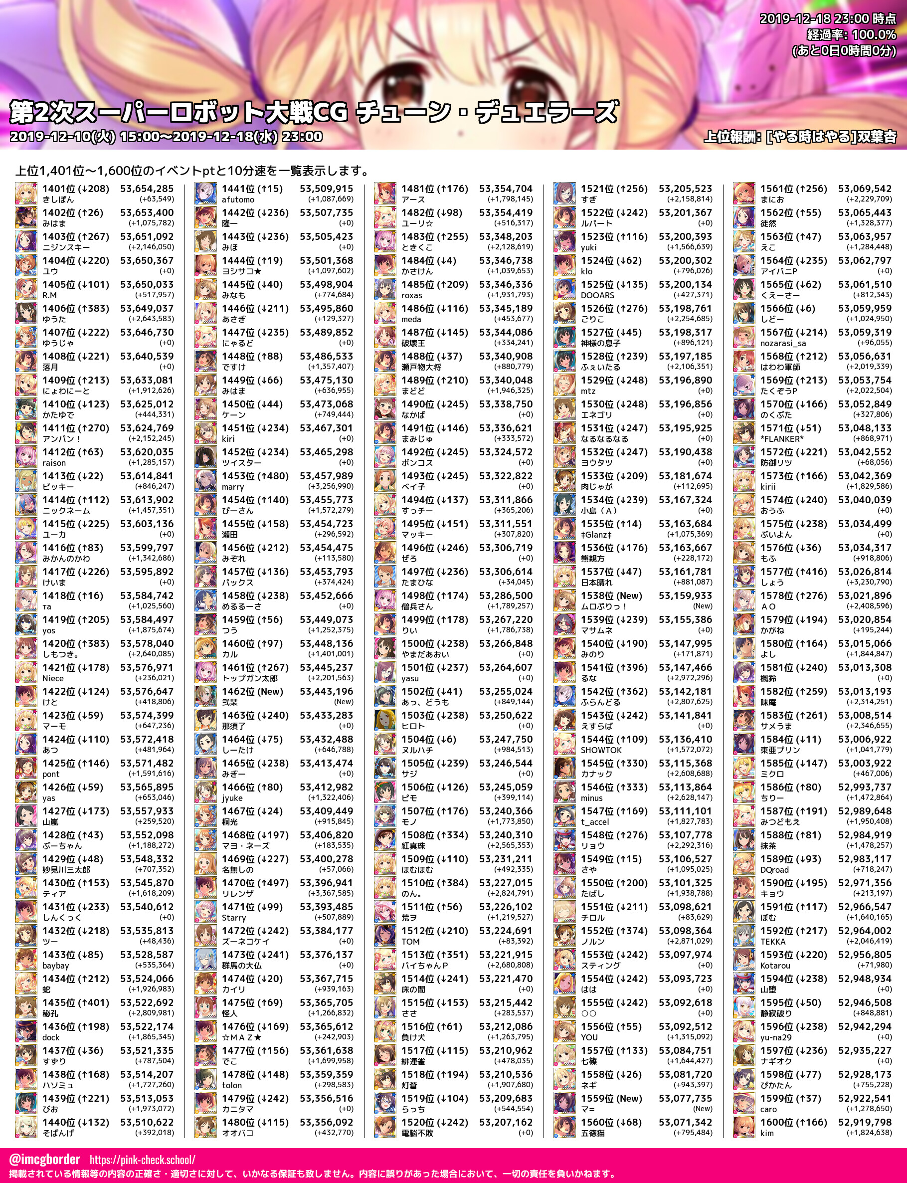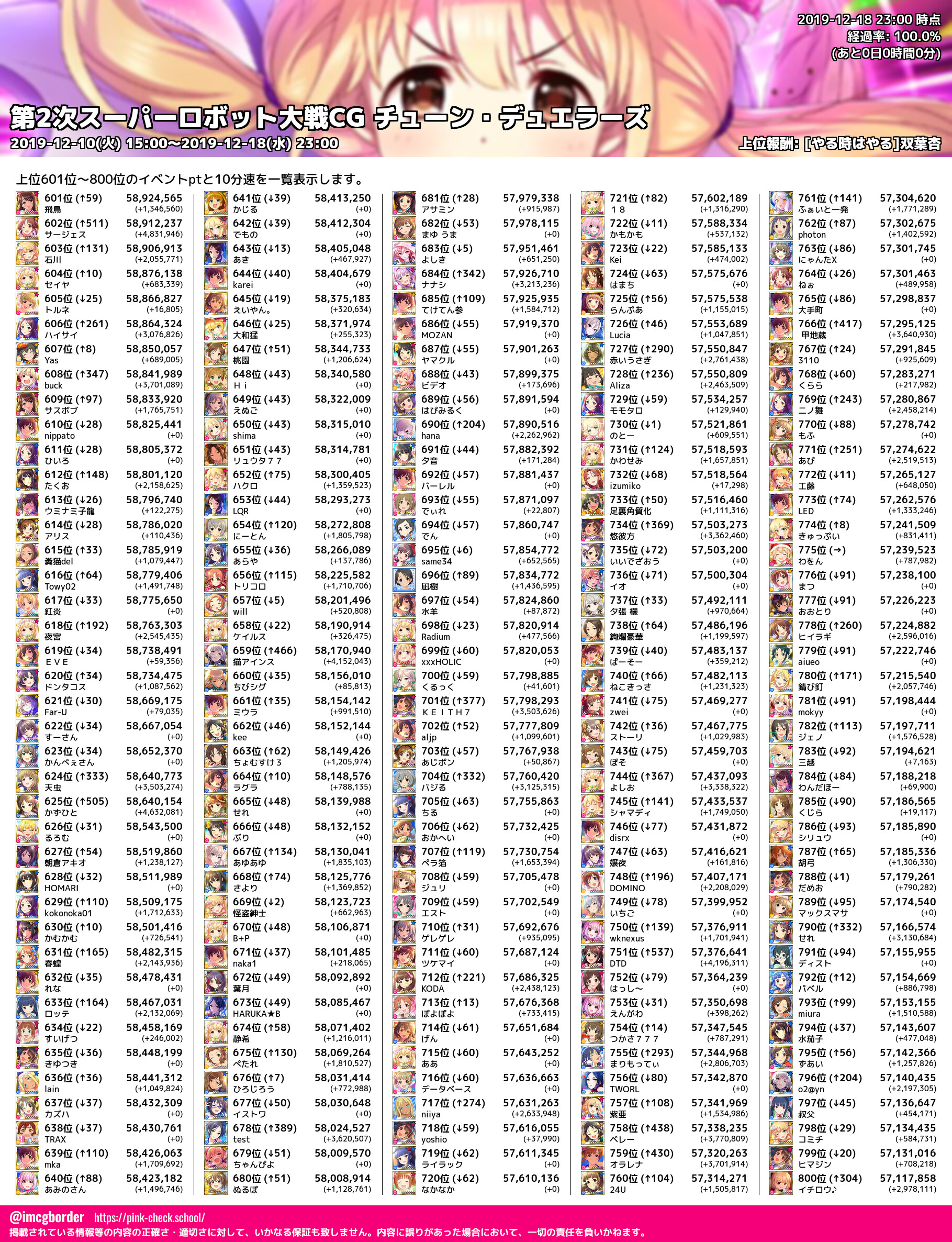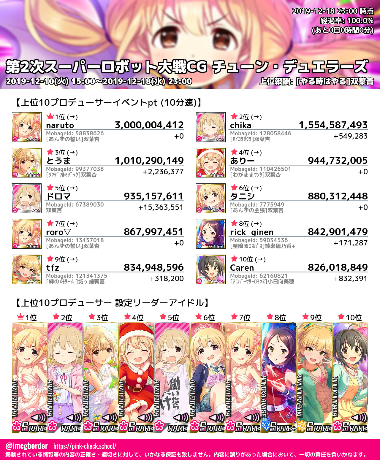 上位プロデューサースコア (2019-12-18 23:00 時点)