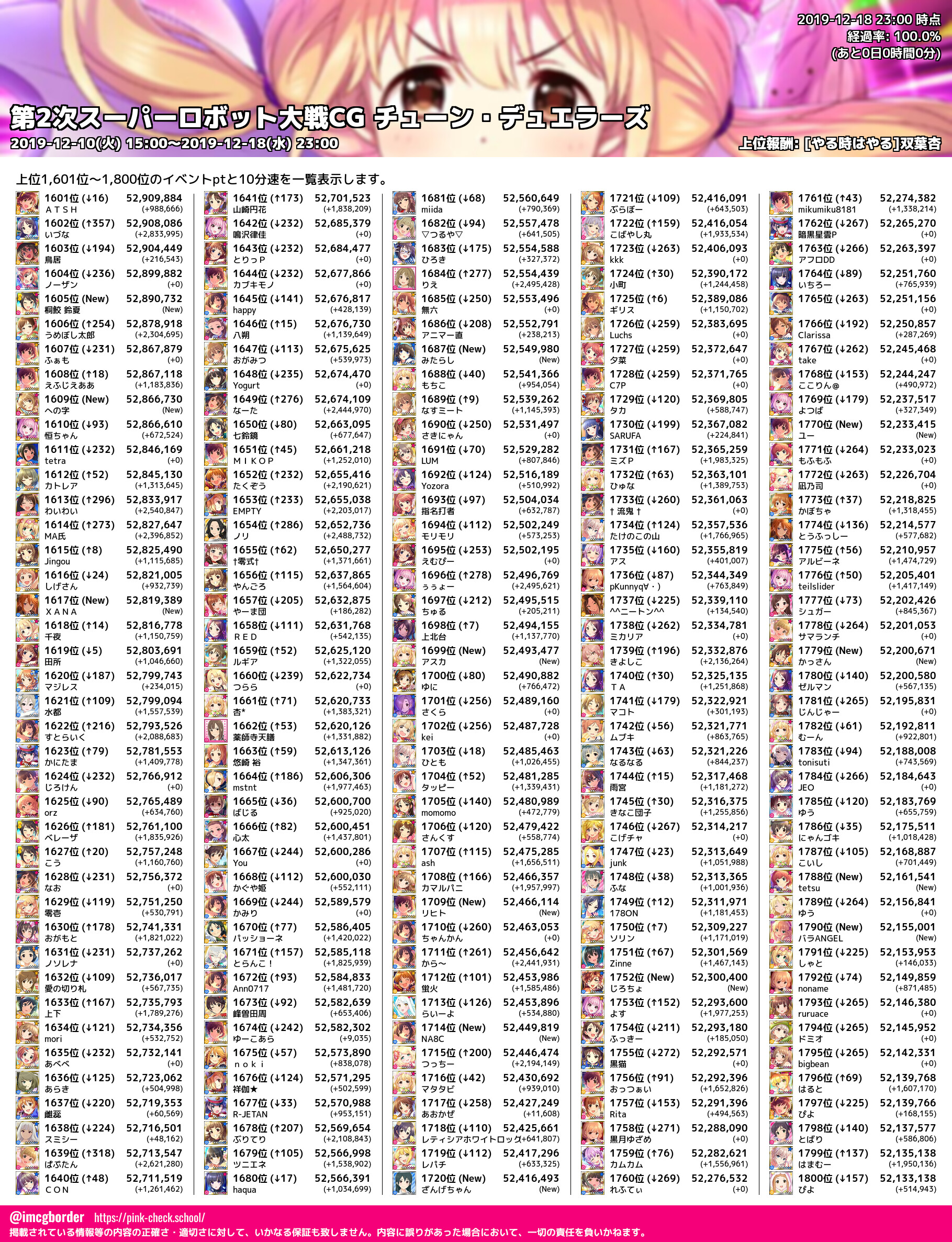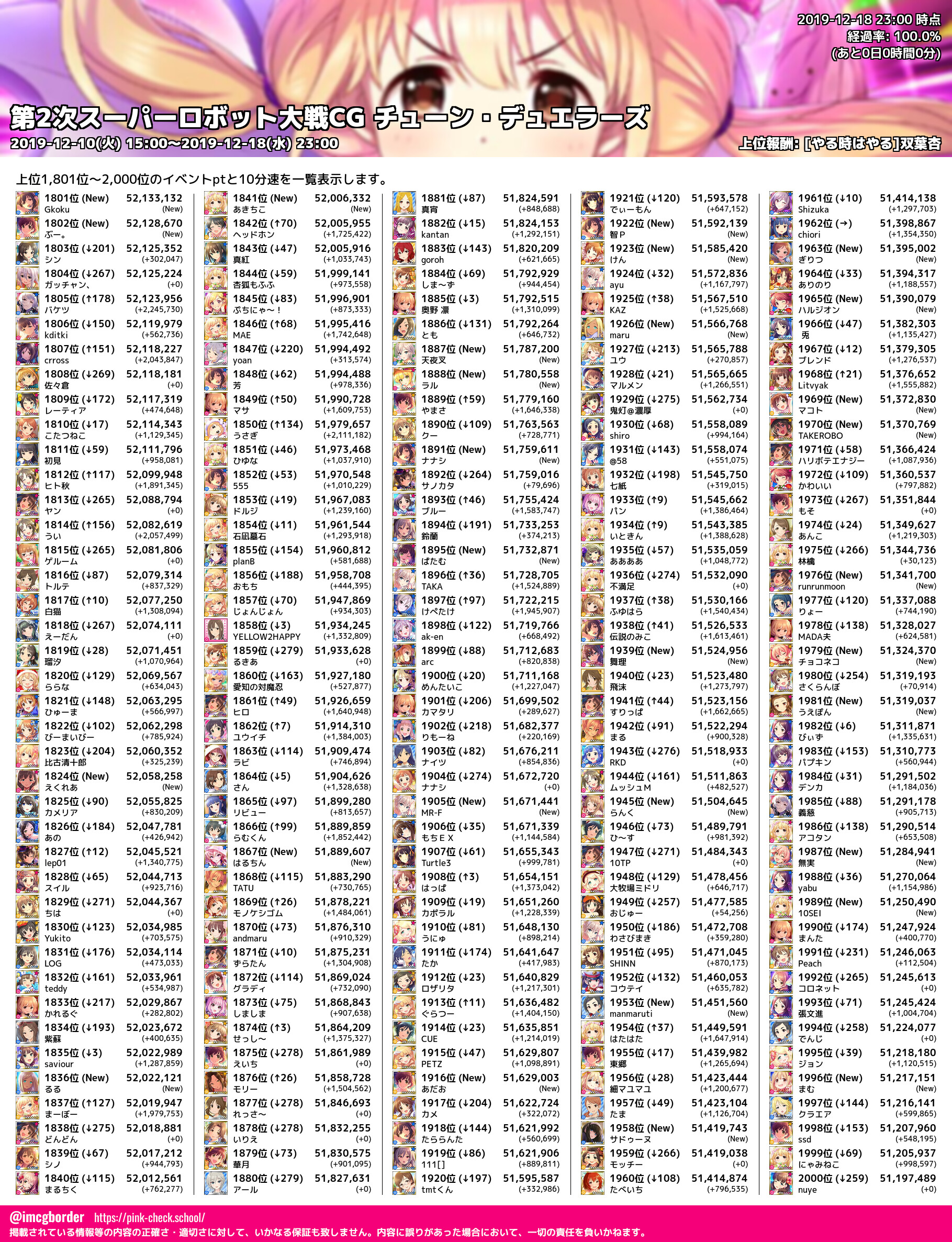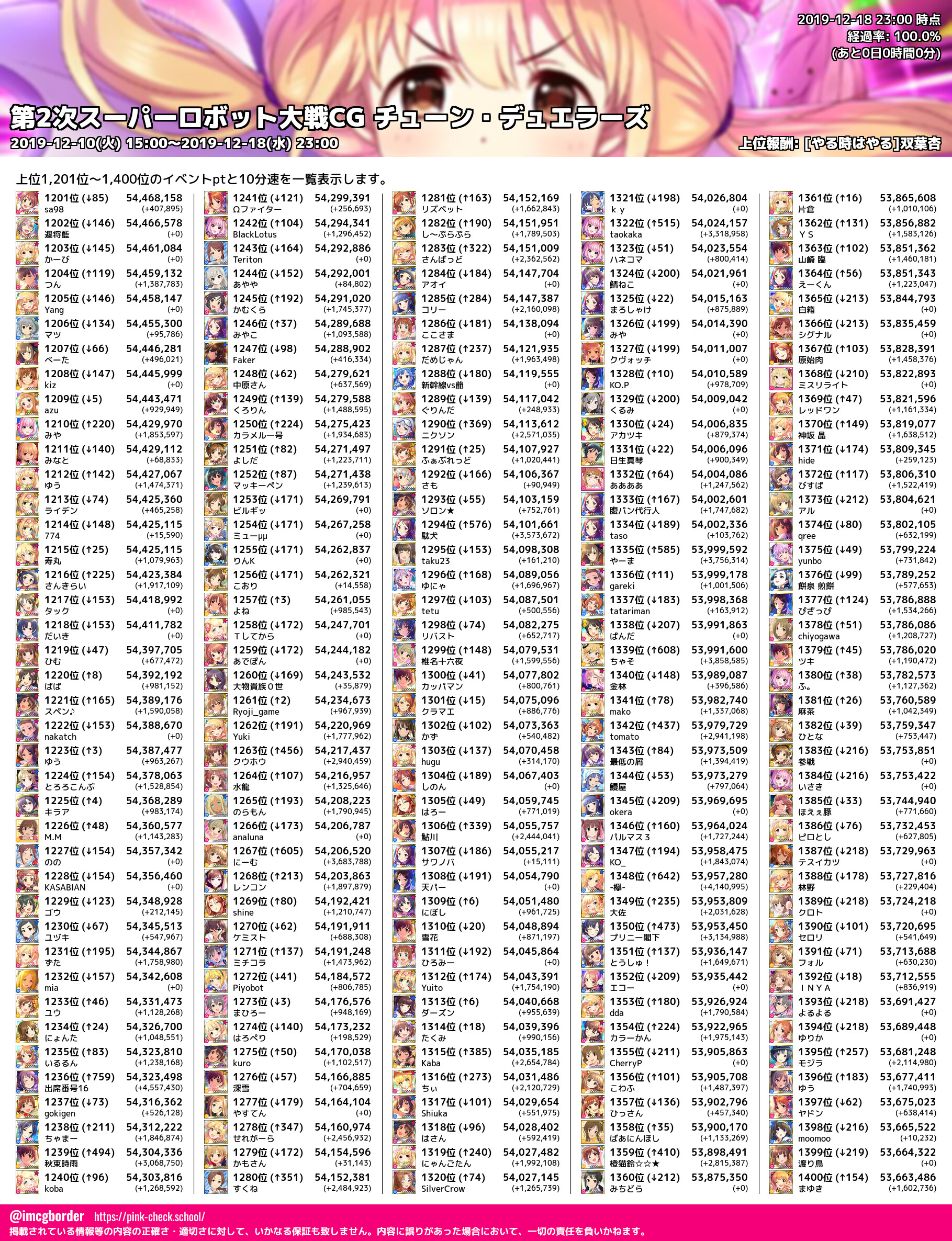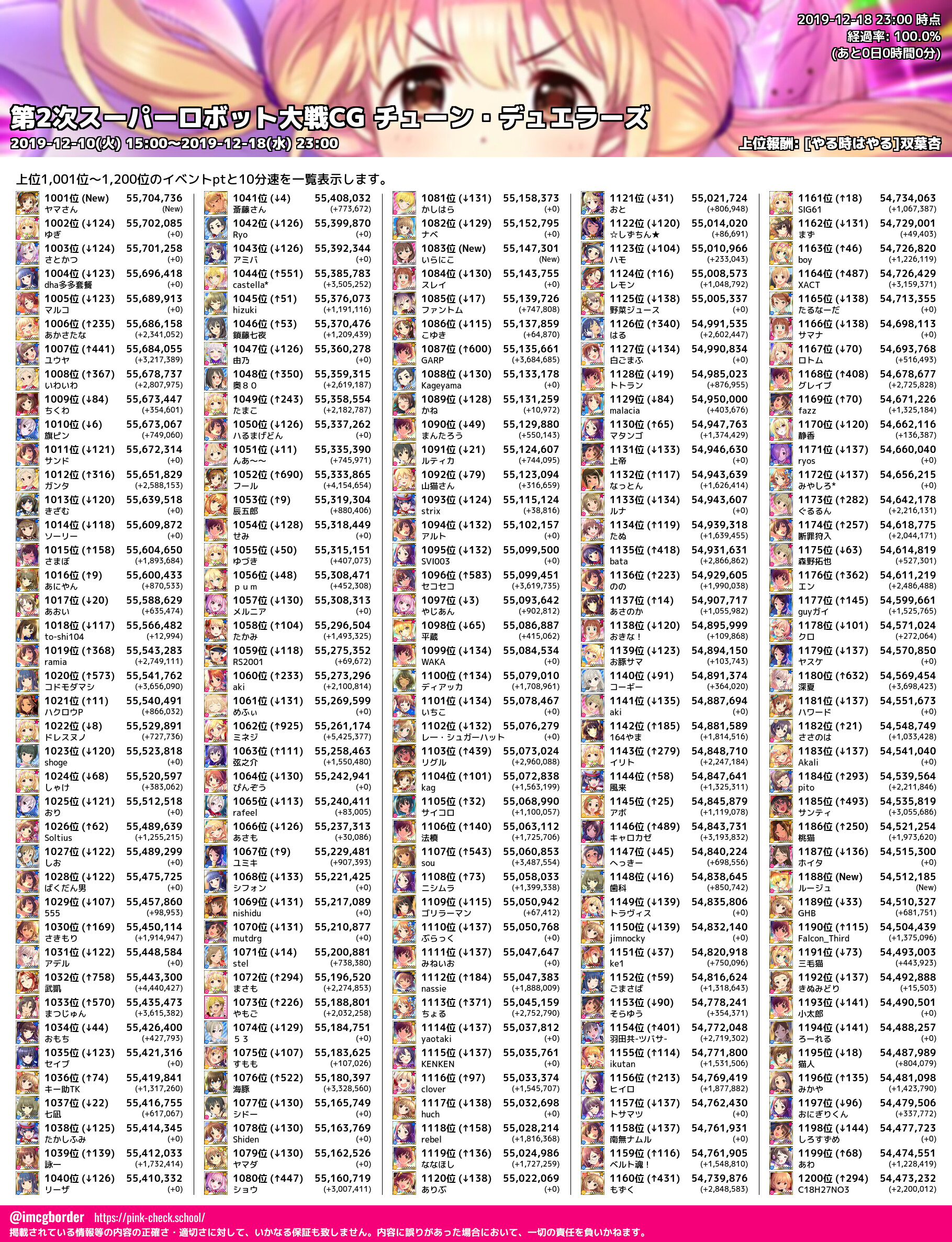 上位プロデューサースコア (2019-12-18 23:00 時点)